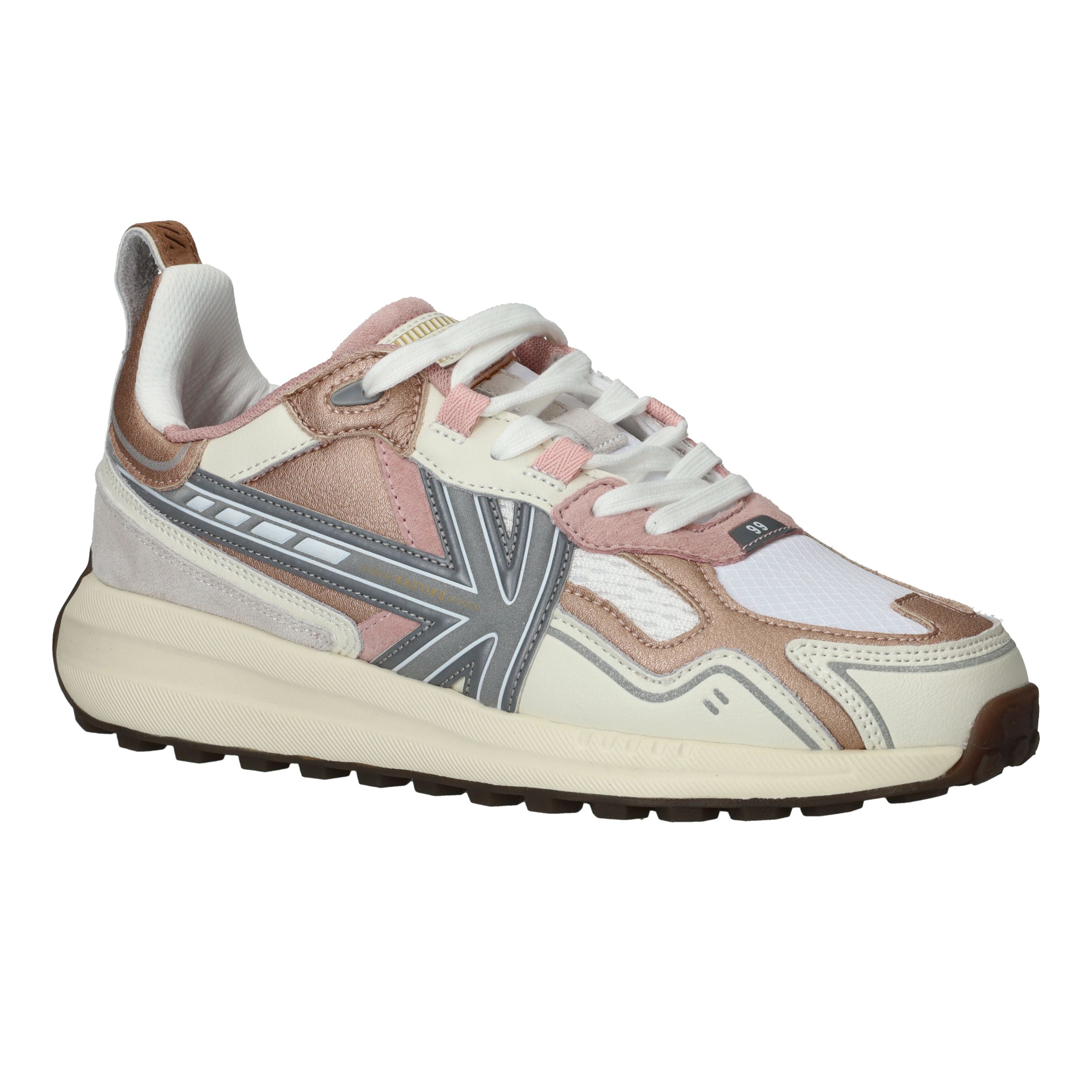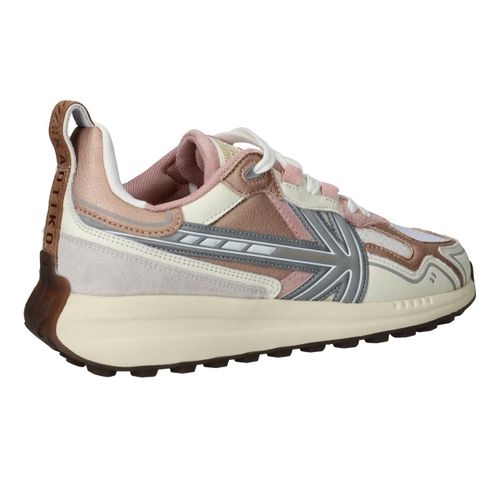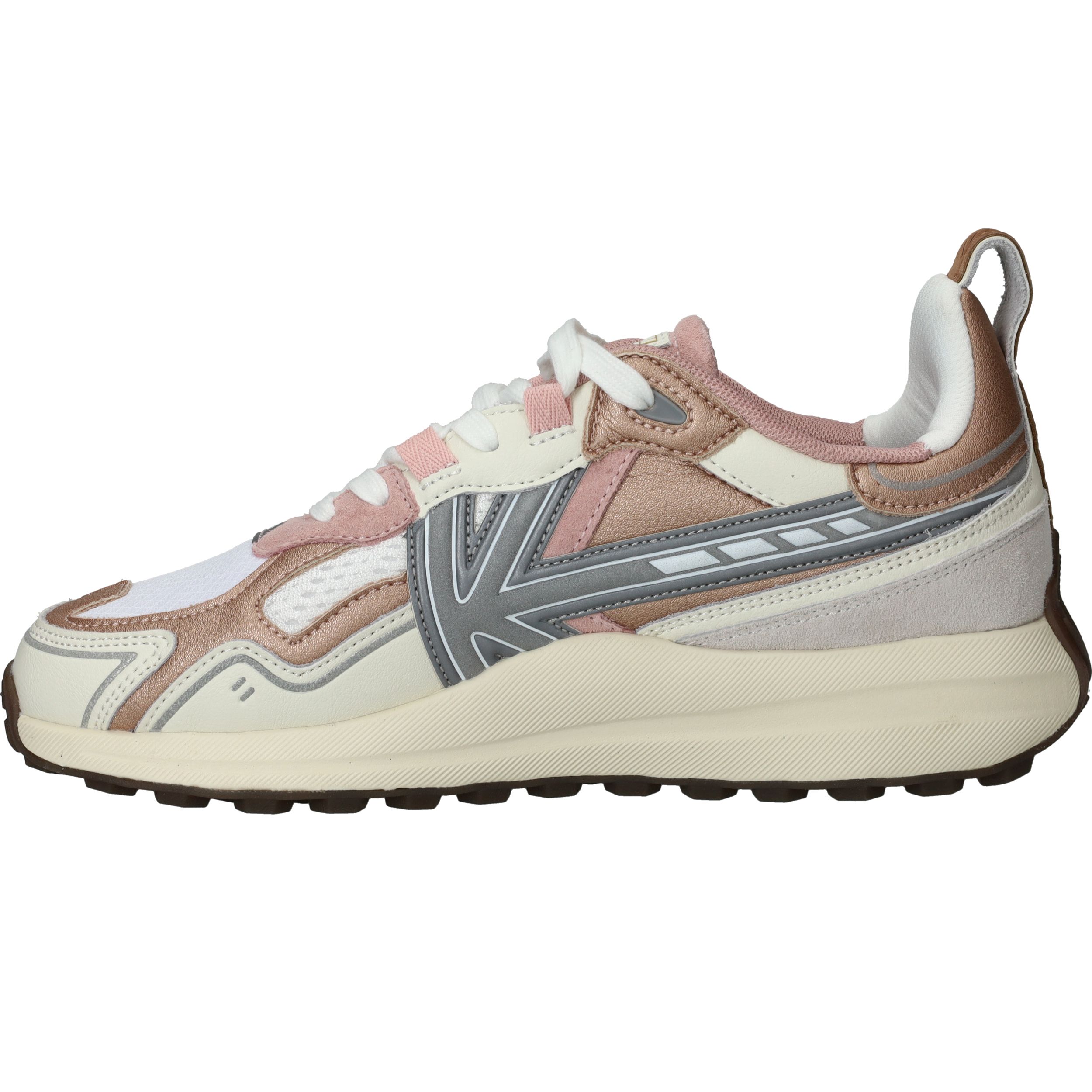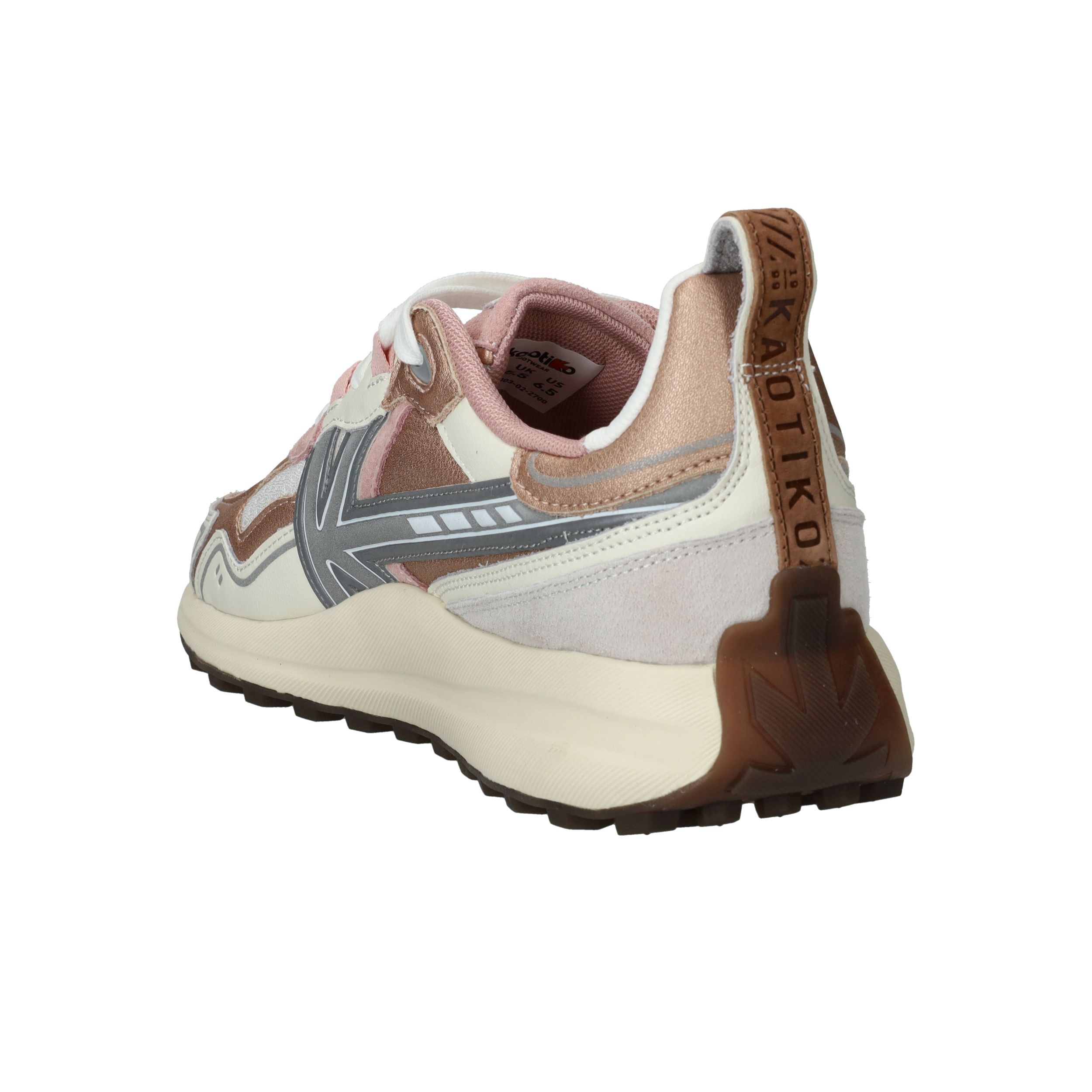 Hippe Kaotiko Detroit Tach sneaker in wit, roze, brons en grijze tinten. De damessneaker is afgewerkt met vrolijke details.