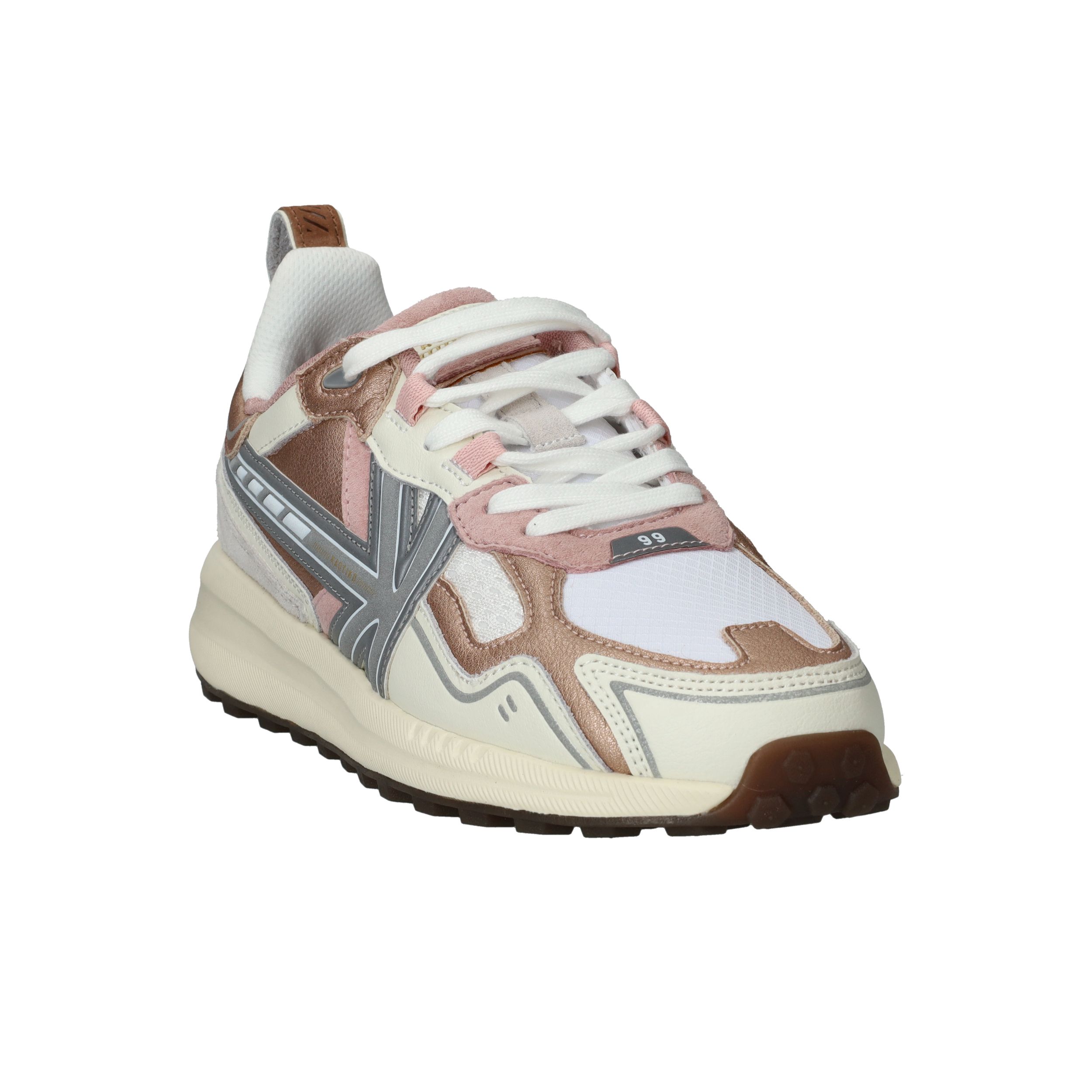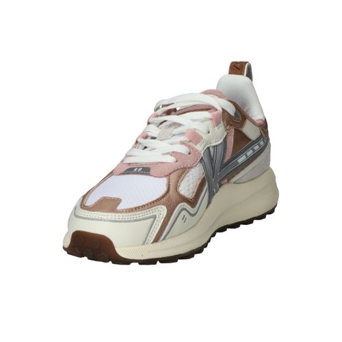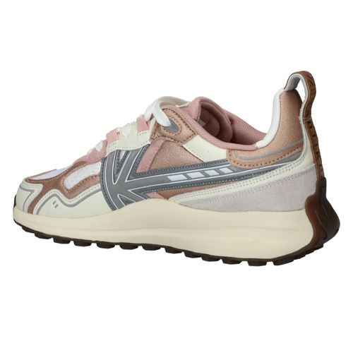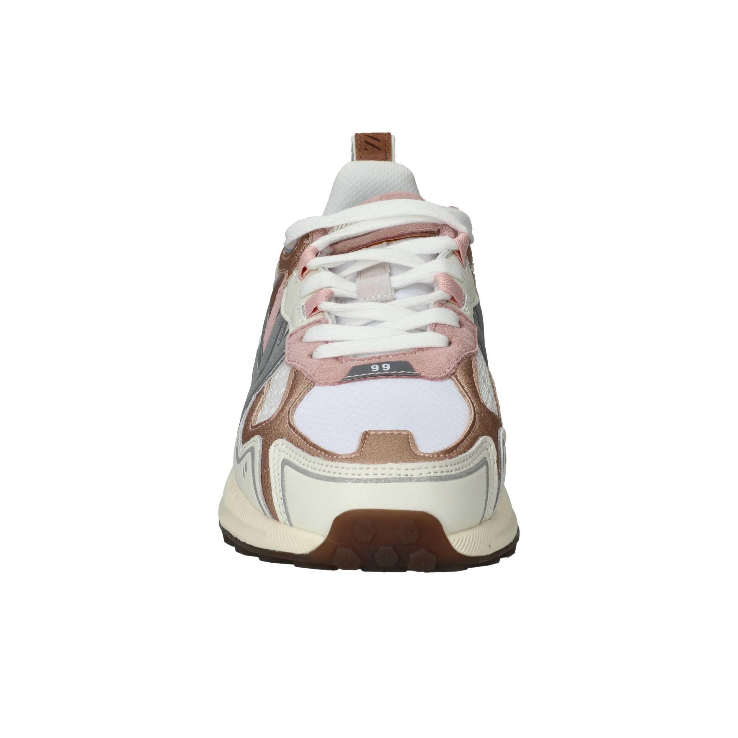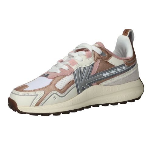 Hippe Kaotiko Detroit Tach sneaker in wit, roze, brons en grijze tinten. De damessneaker is afgewerkt met vrolijke details.