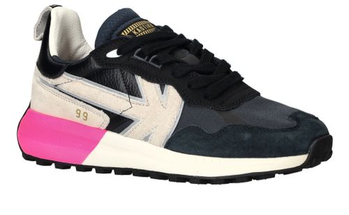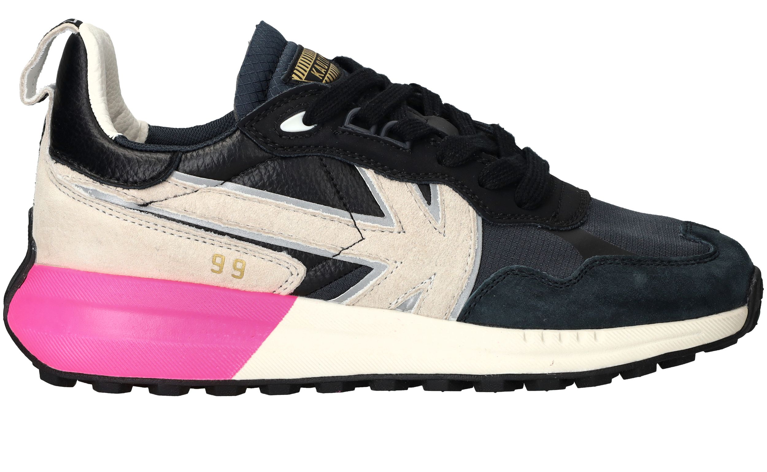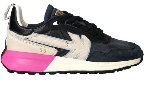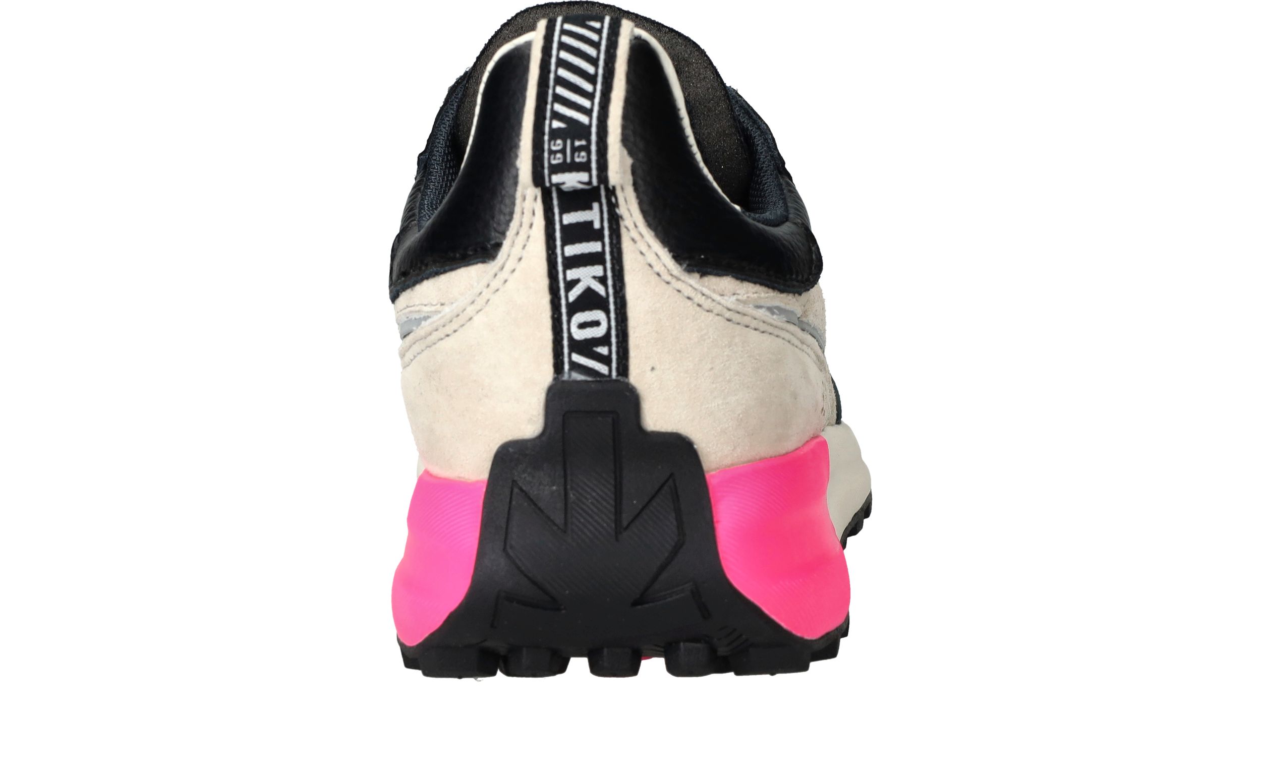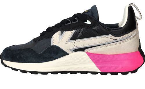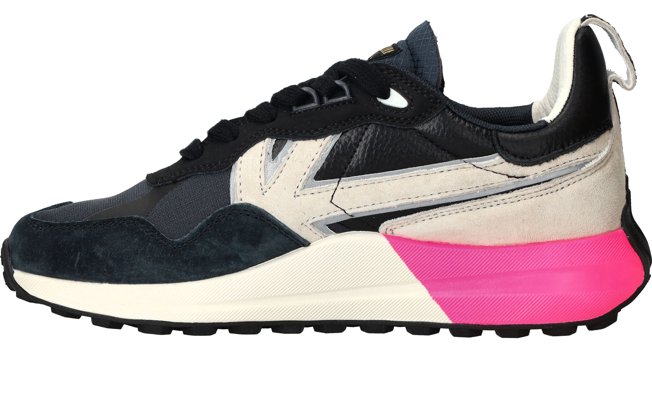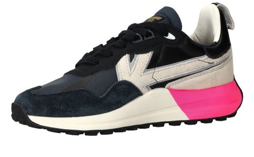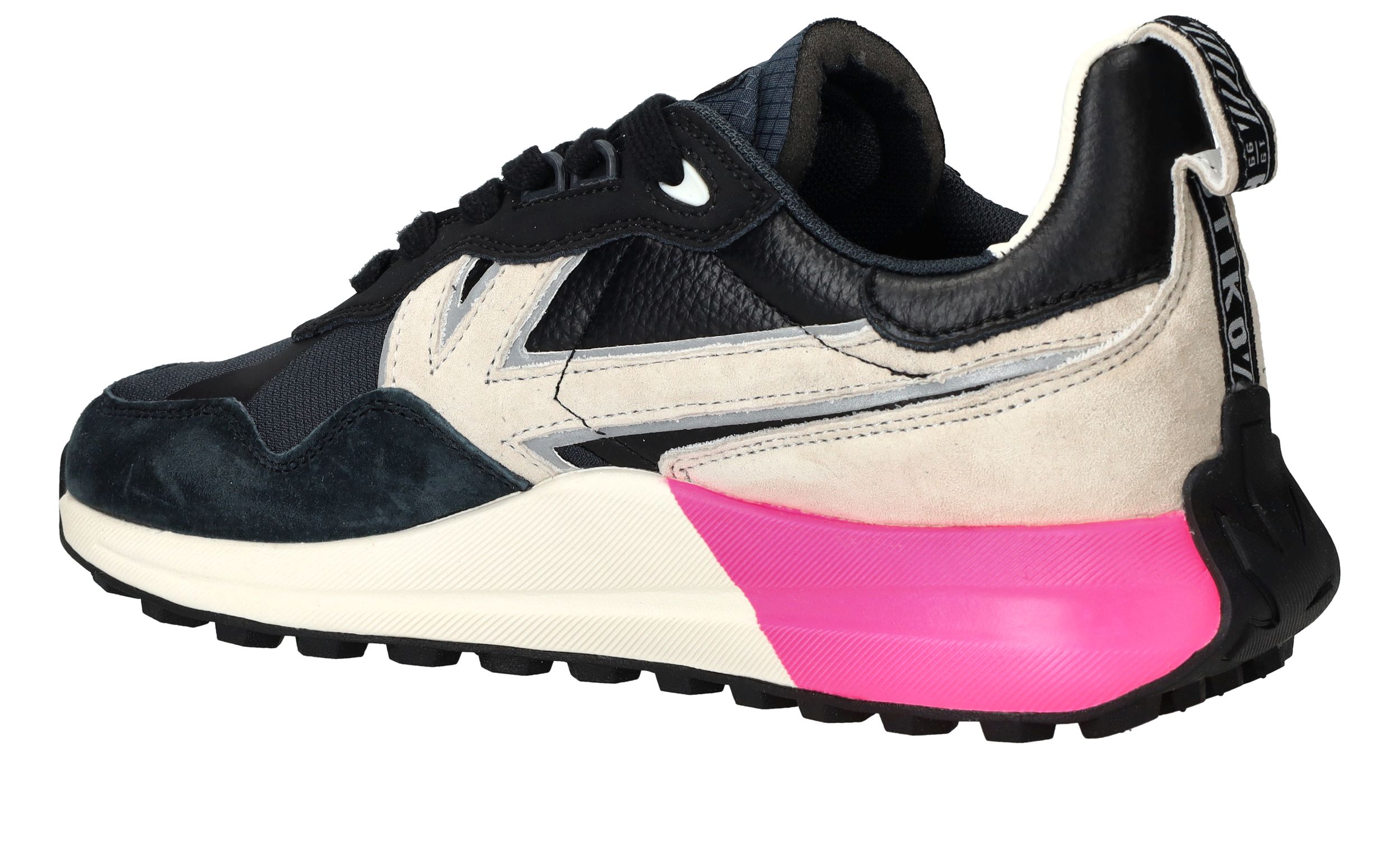 Chunky Kaotiko sneaker voor dames in het zwart met blauwe en neon roze accenten. De sneaker loopt heel comfortabel omdat hij heel licht van gewicht is.