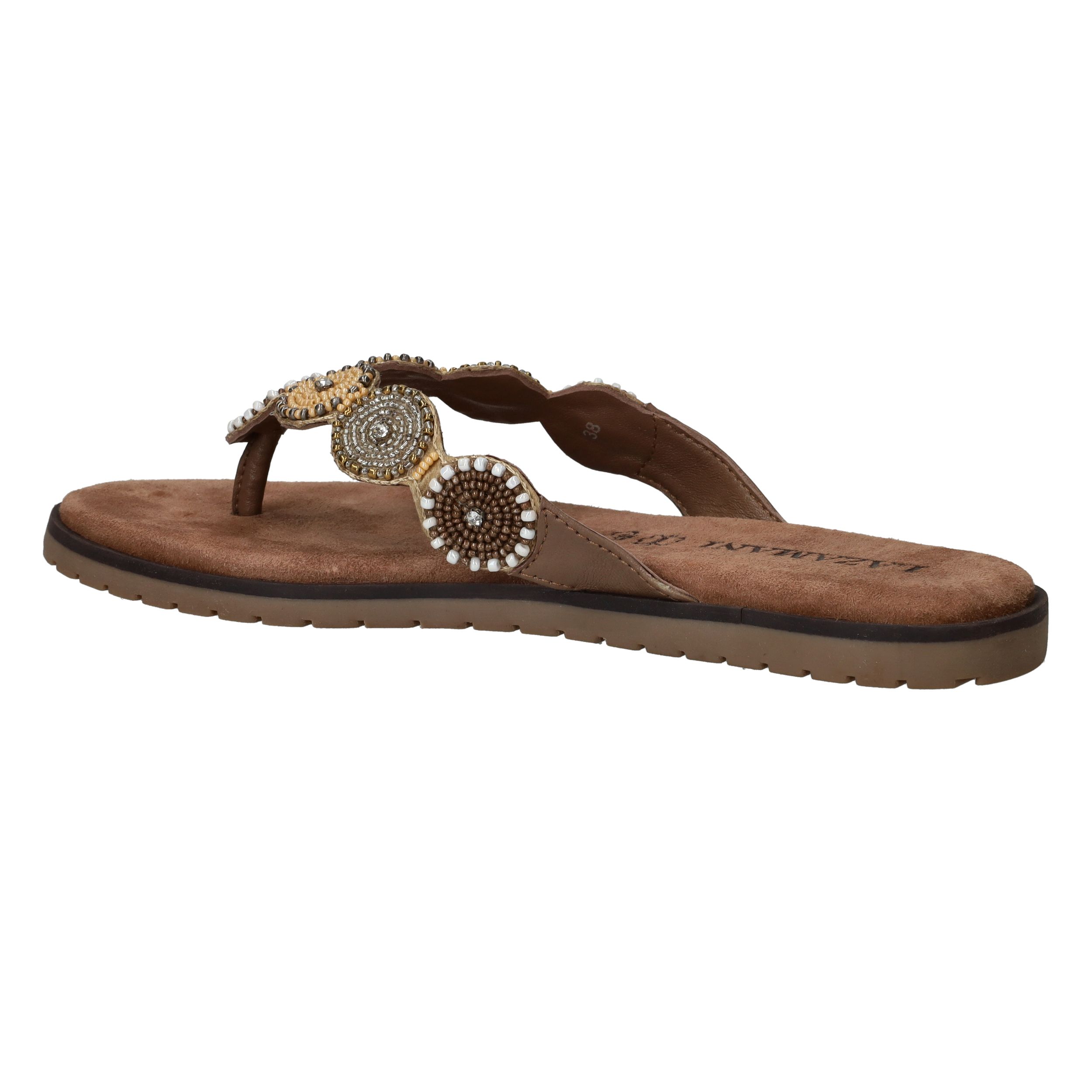 Stap comfortabel en stijlvol de zomer in met deze prachtige beige slippers van het populaire merk Lazamani. De combinatie van leer en textiel zorgt voor een trendy uitstraling en heerlijk draagcomfort. De elegante beige kleur maakt deze slippers eenvoudig te combineren met iedere zomerse outfit. Ideaal voor dames die graag genieten van stijlvol gemak op warme dagen.