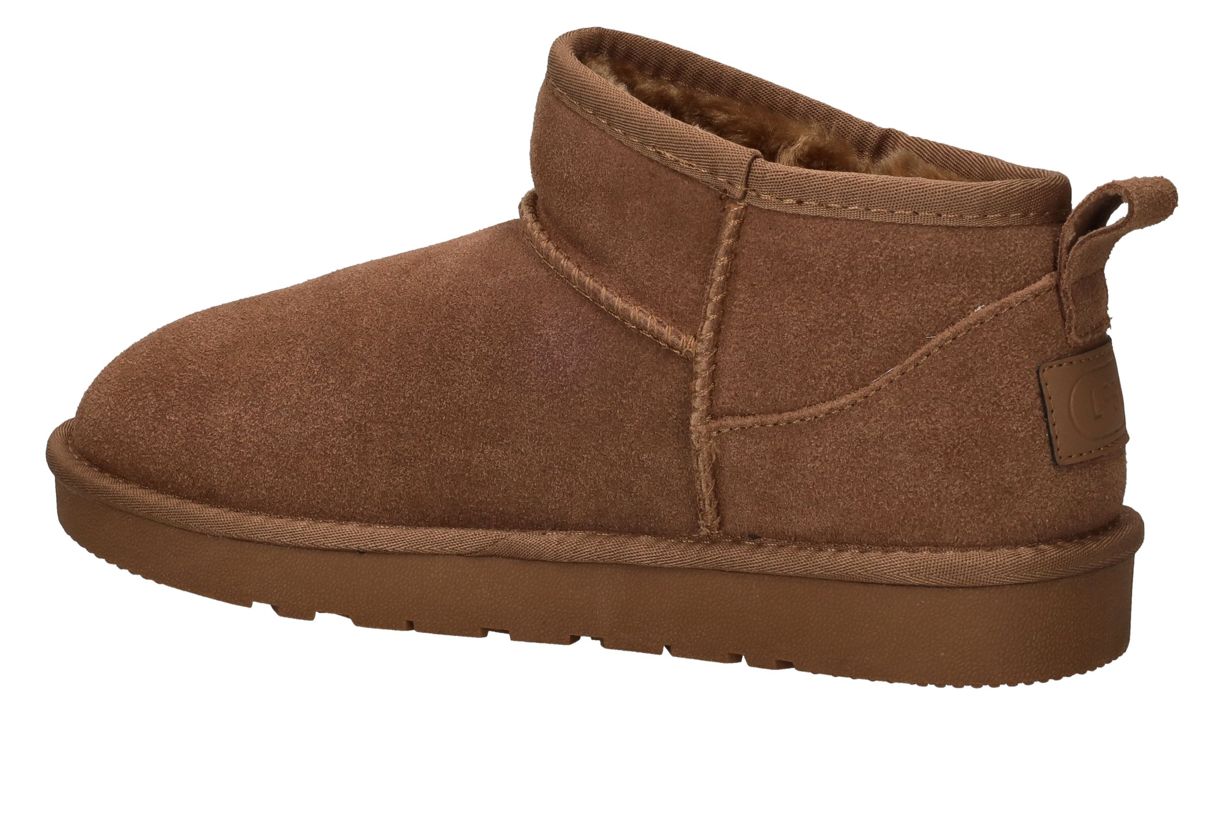 Cozy cognac LOFF 1881 damesboot met warme voering van zacht textiel. Lekker comfortabel want je stapt zo in de schoen.