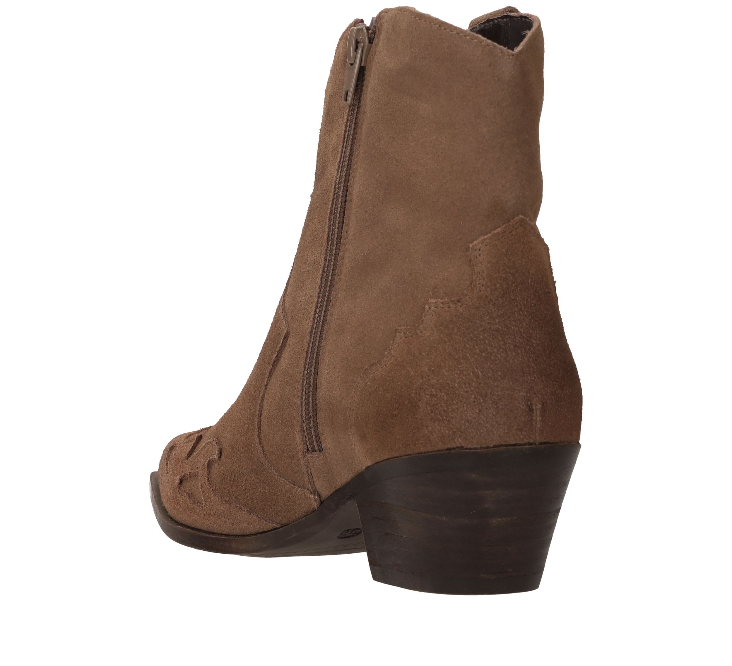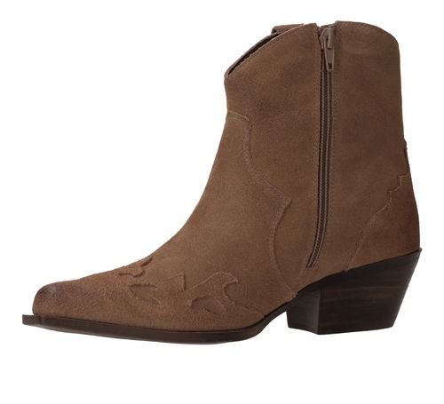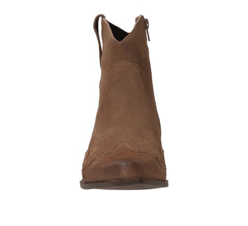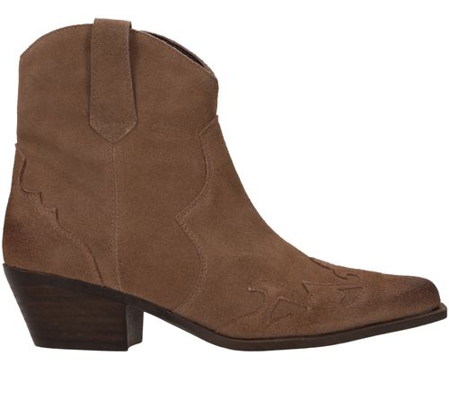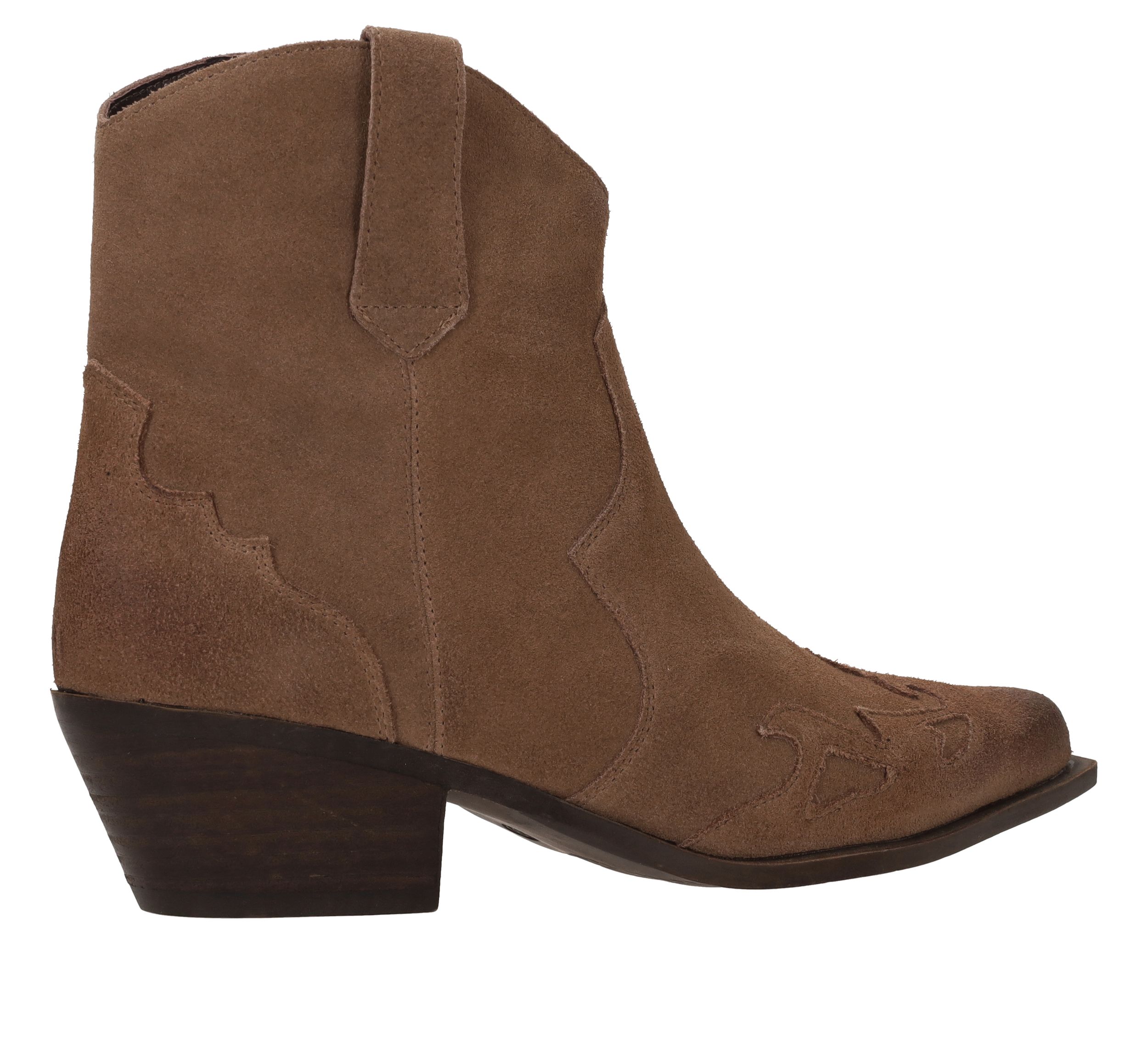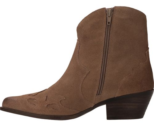 Prachtige bruine enkellaarsjes voor dames van ons merk LOFF 1881 met cowboy look. De laarsjes zijn geheel gemaakt van leer en hebben een verfijnde afwerking.