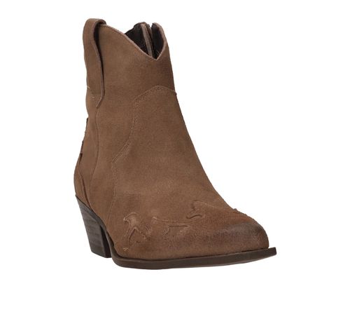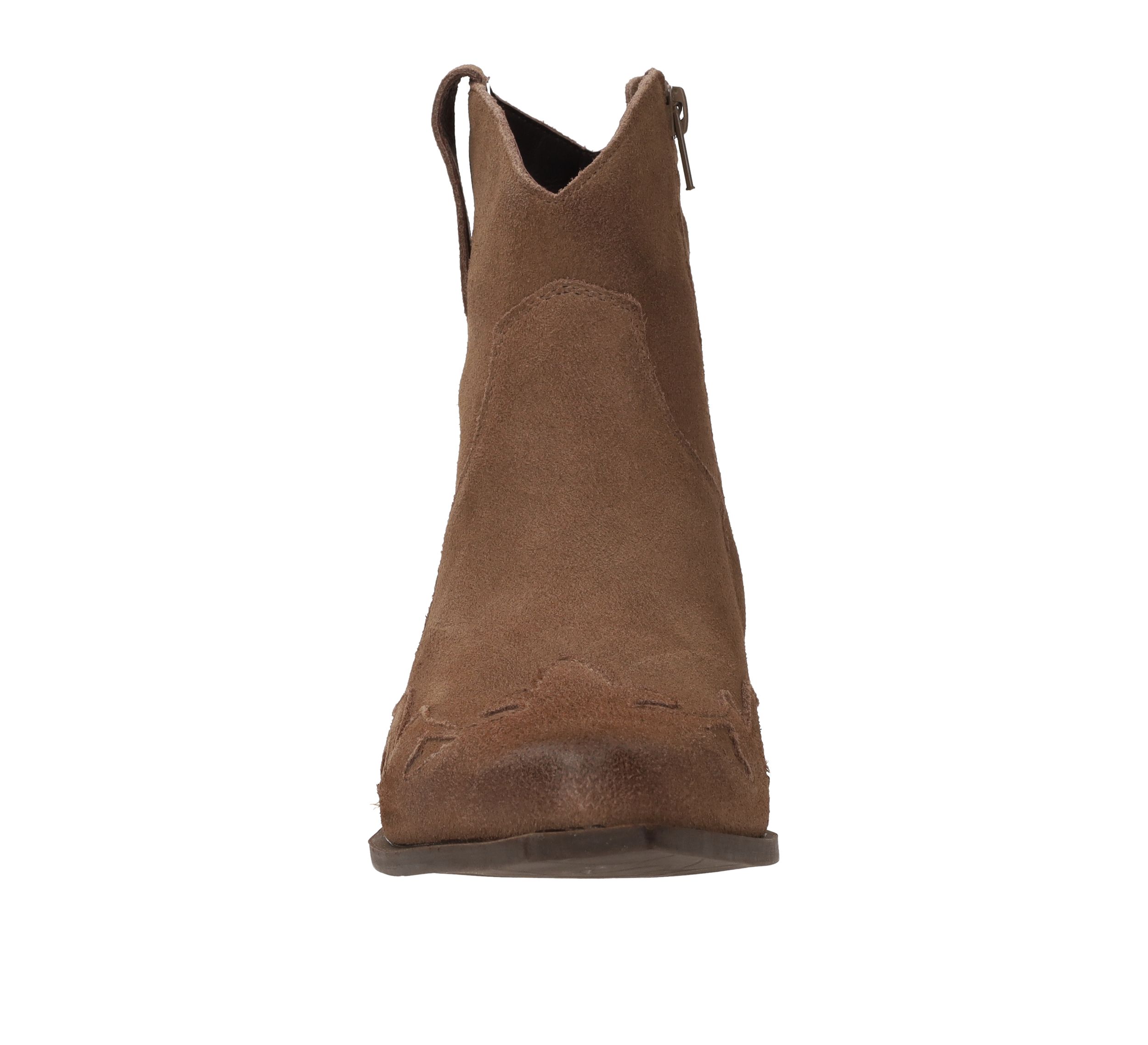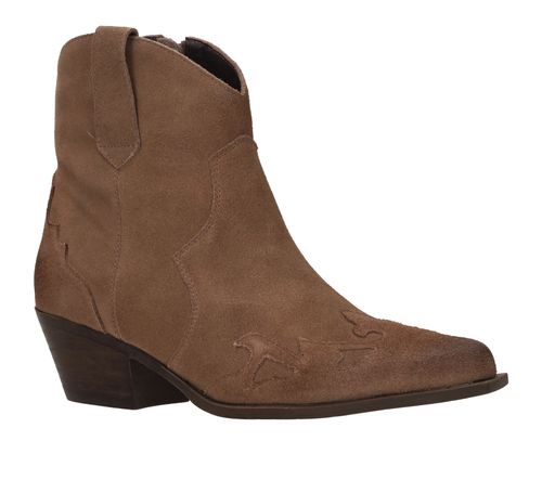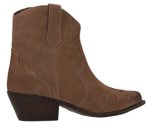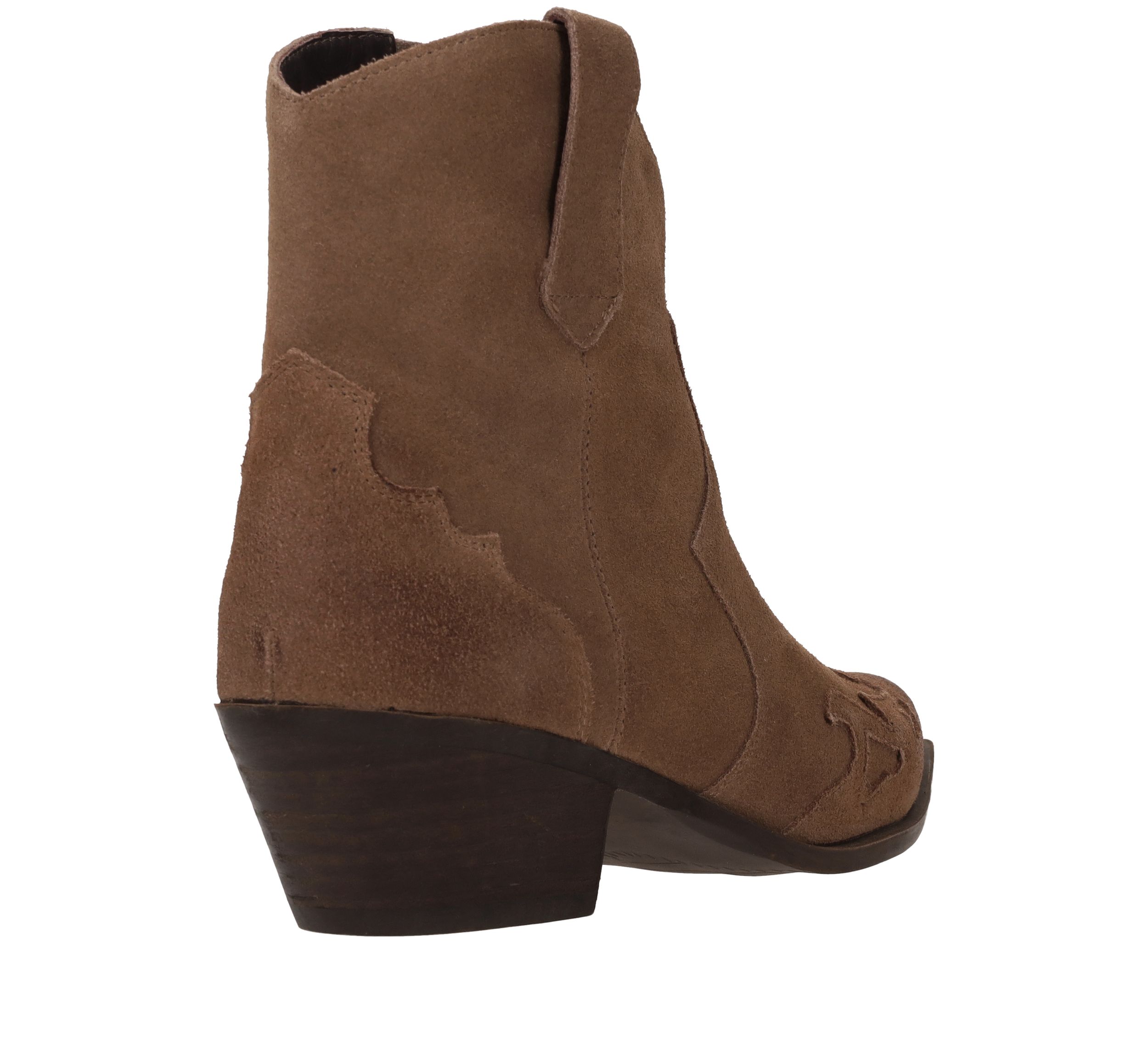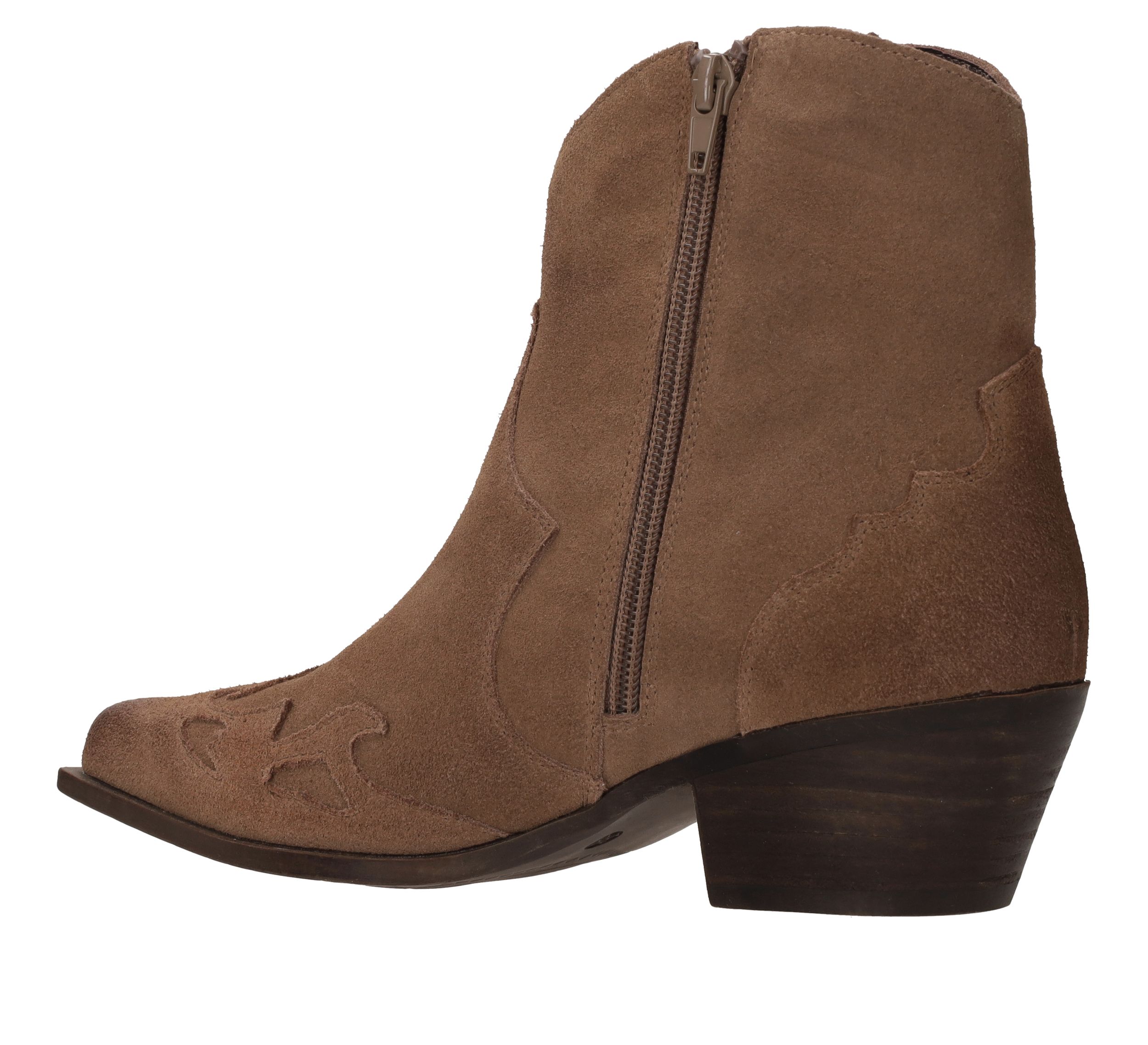 Prachtige bruine enkellaarsjes voor dames van ons merk LOFF 1881 met cowboy look. De laarsjes zijn geheel gemaakt van leer en hebben een verfijnde afwerking.
