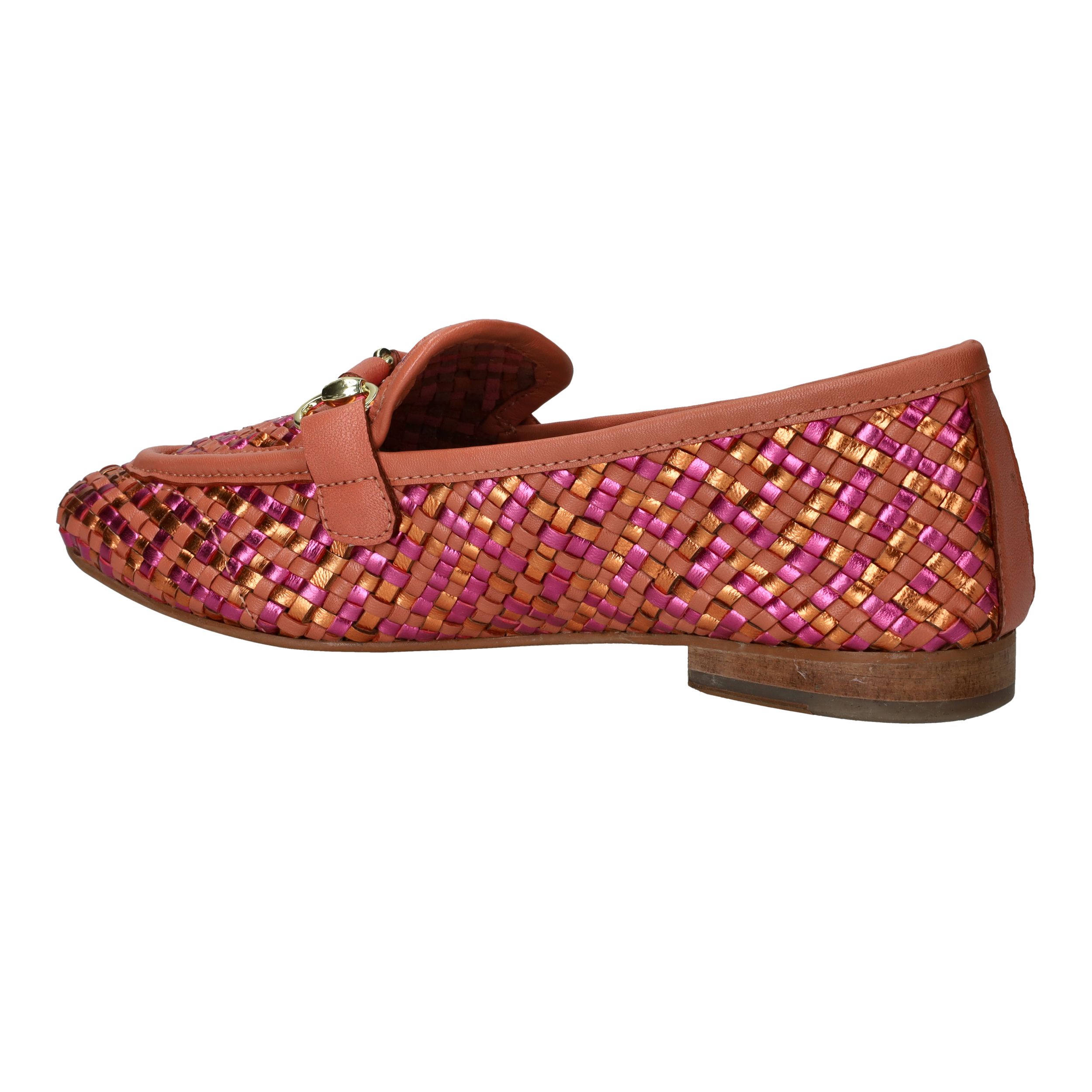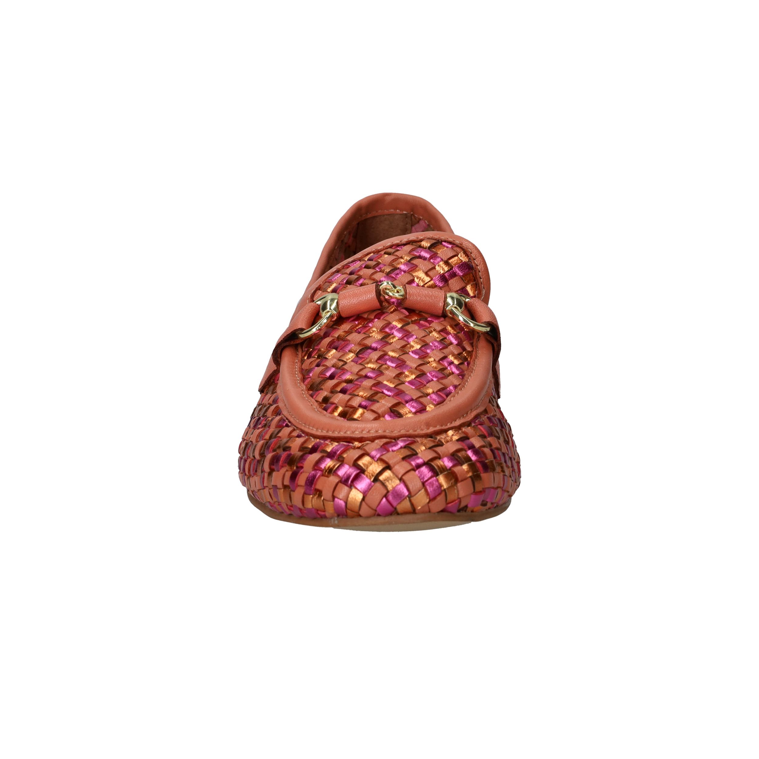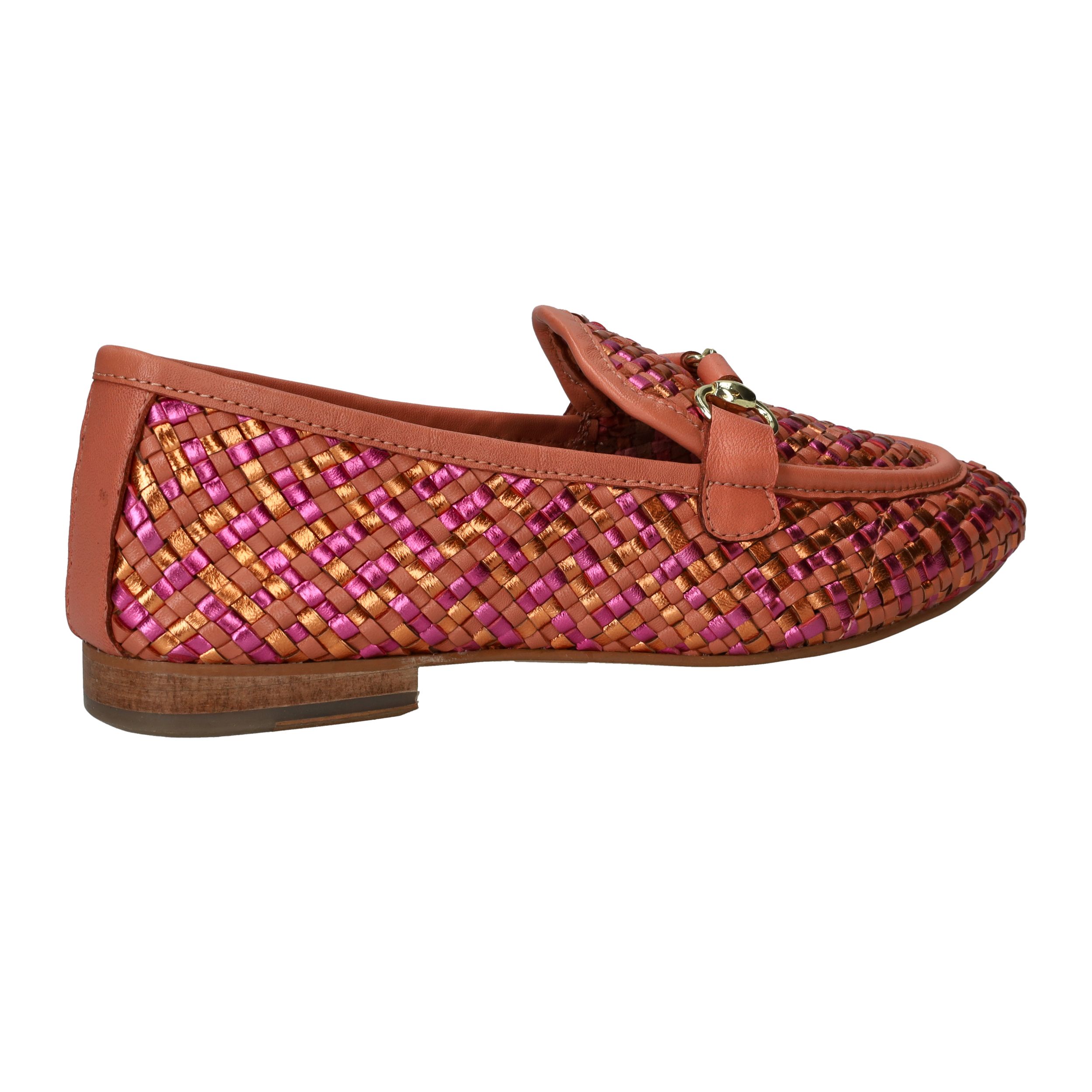 Op zoek naar vrolijke en luchtige dames loafers die je outfit direct laten stralen? Deze oranje-roze LOFF 1881 loafers combineren speelse elegantie met heerlijk draagcomfort. Door het ademende vlechtwerk en de soepele instap voelen deze loafers licht en flexibel aan, ideaal voor zomerse dagen en vrolijke uitstapjes. Geef je look een kleurrijke boost en geniet van elke stap!