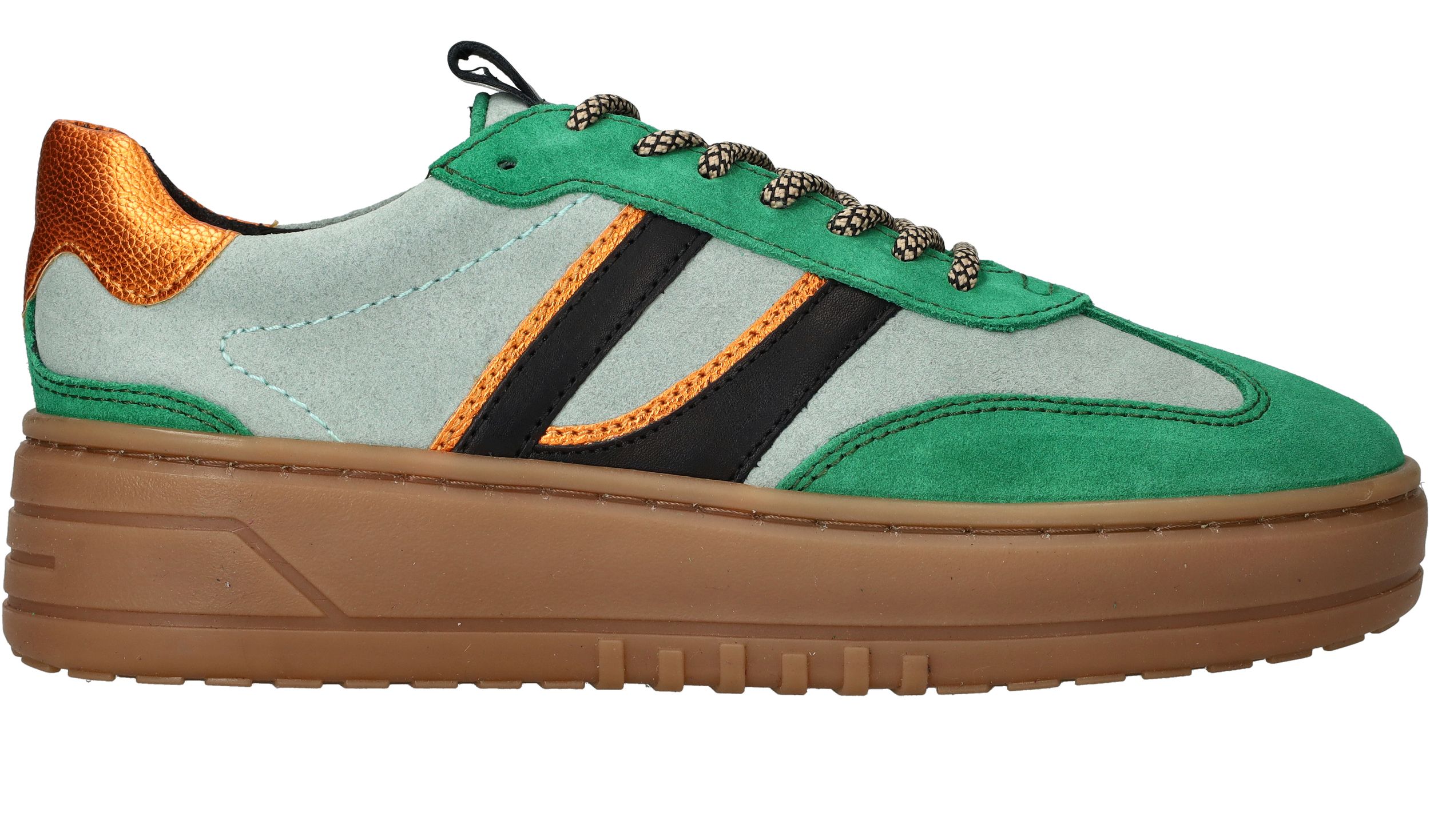 Leuke groene sneaker van LOFF 1881 voor dames. De sneaker is gemaakt van leer en heeft gave metallic kleuren.