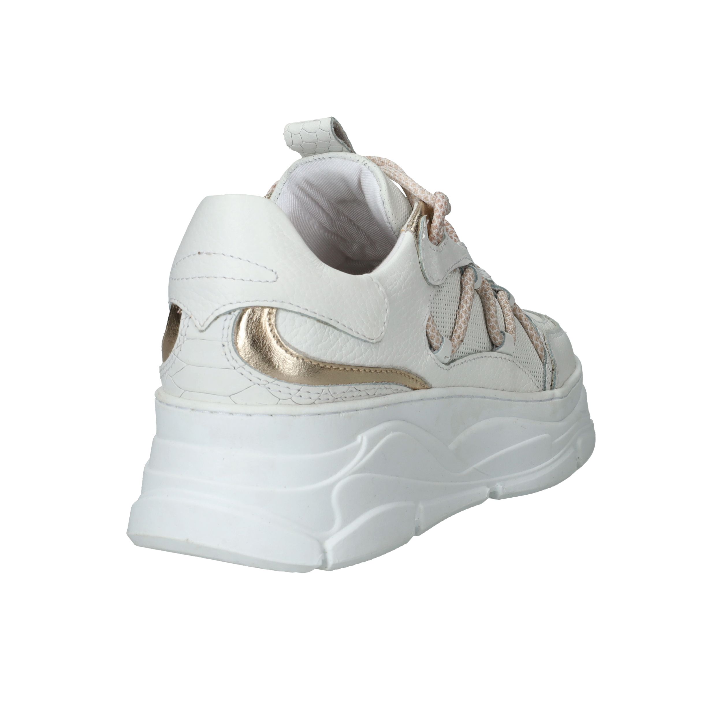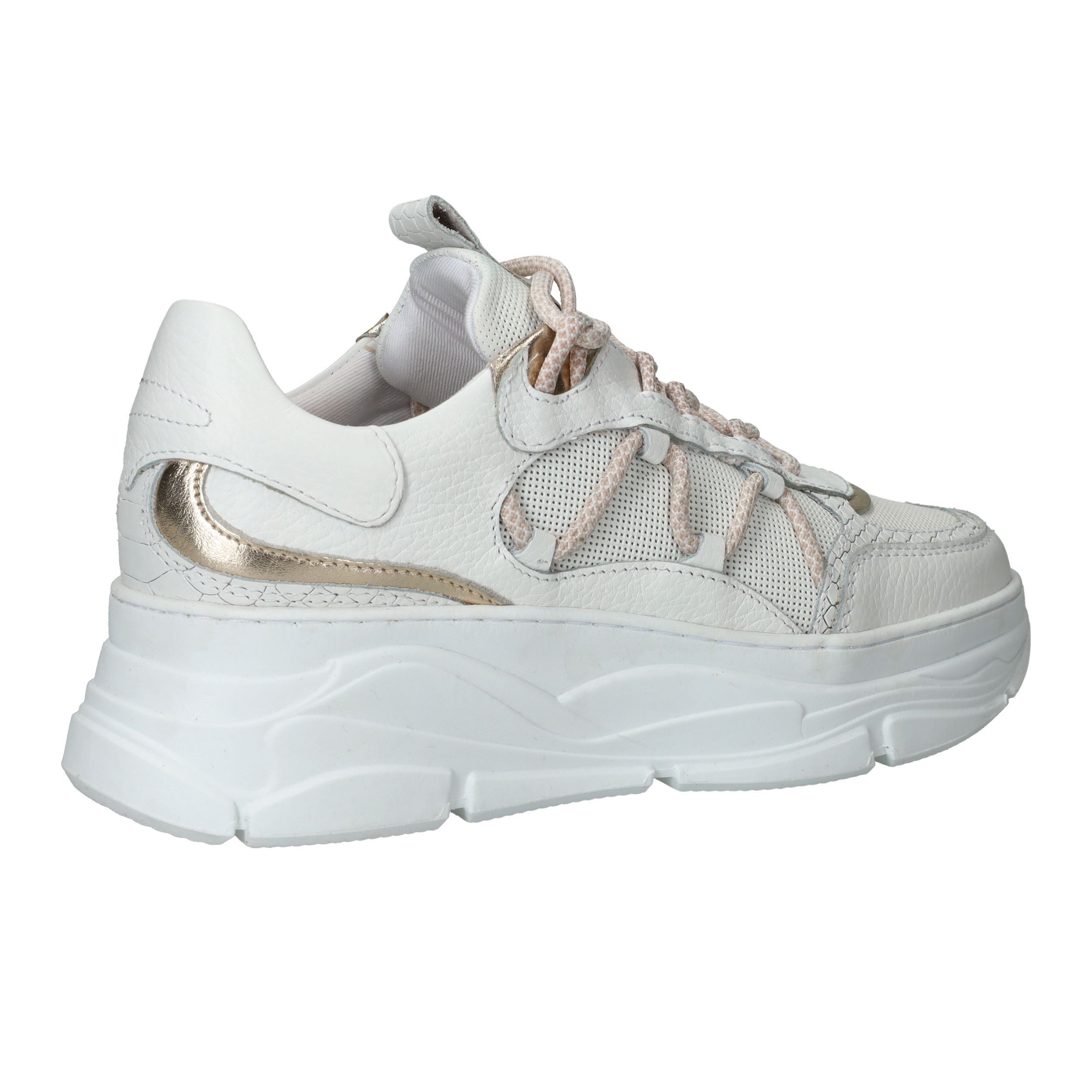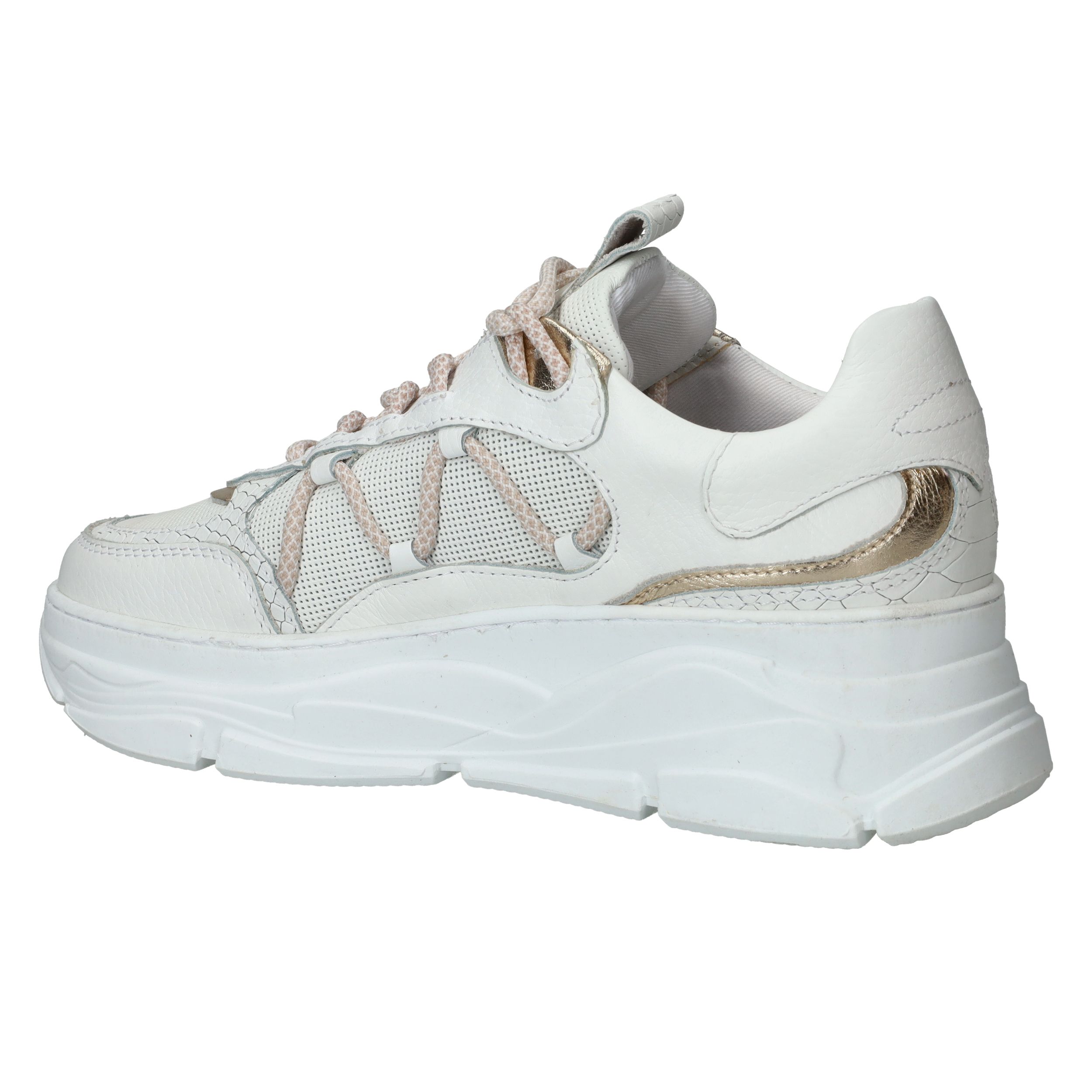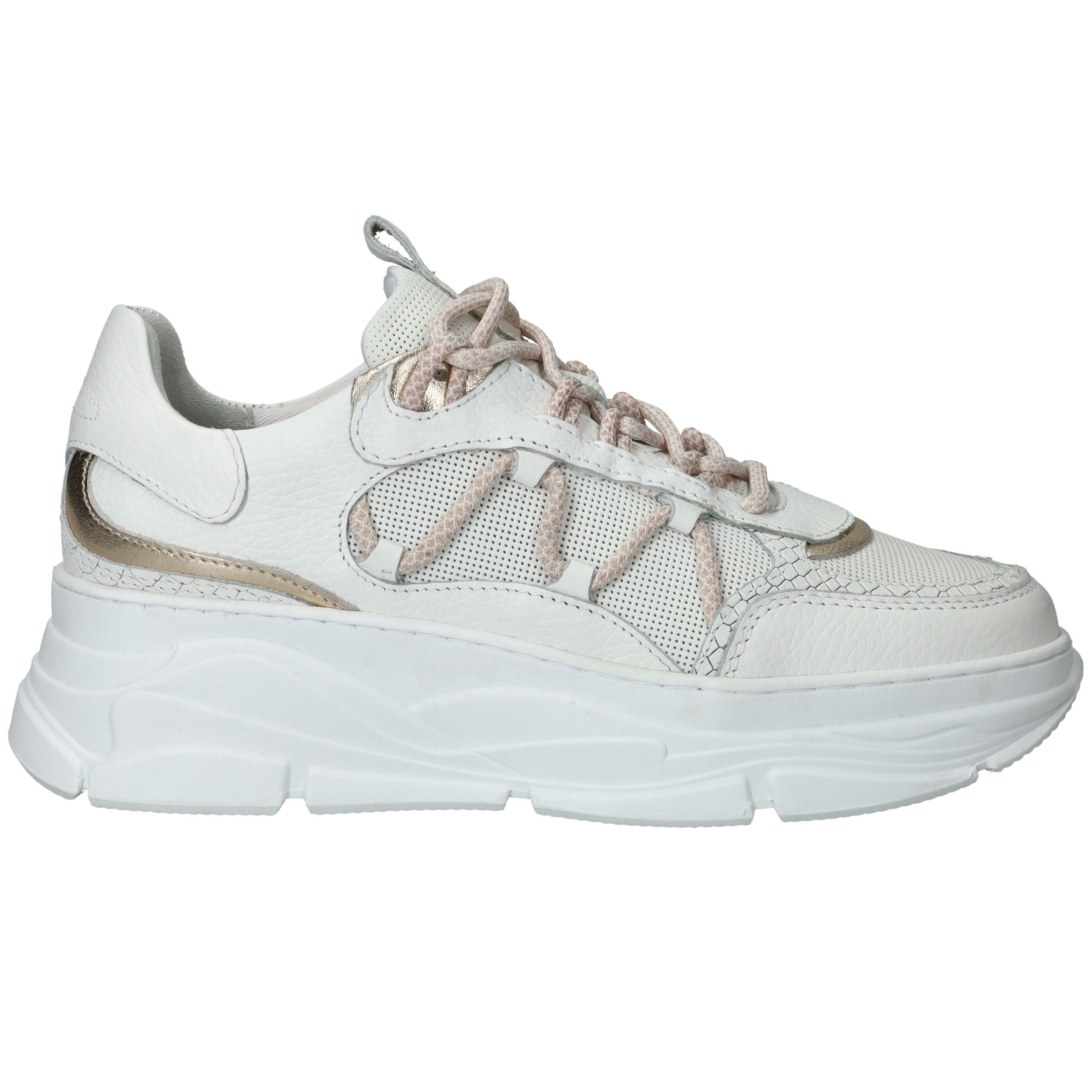 Chuncky LOFF 1881 sneaker voor dames. De witte sneaker heeft leuke metallic gouden accenten.