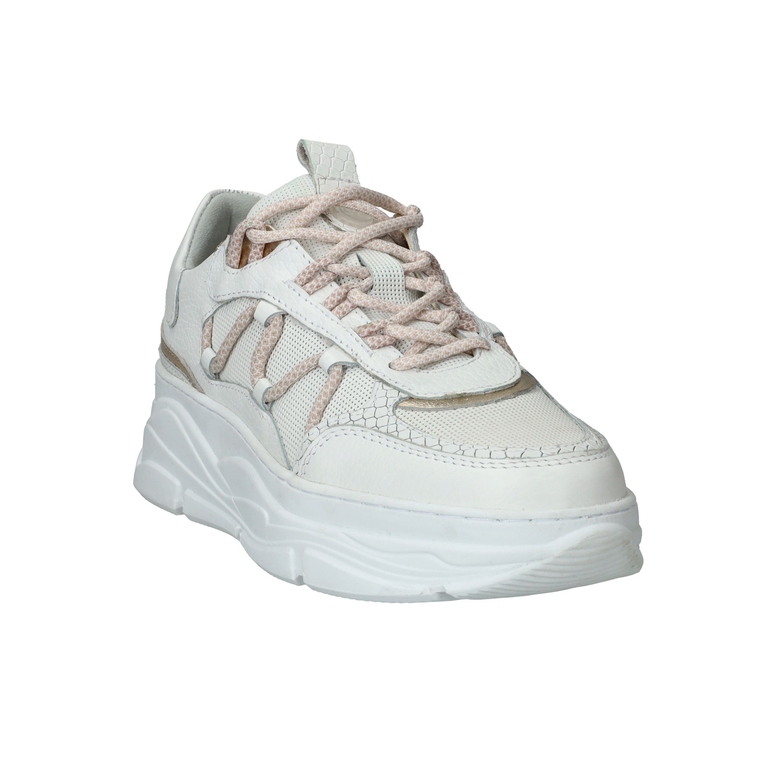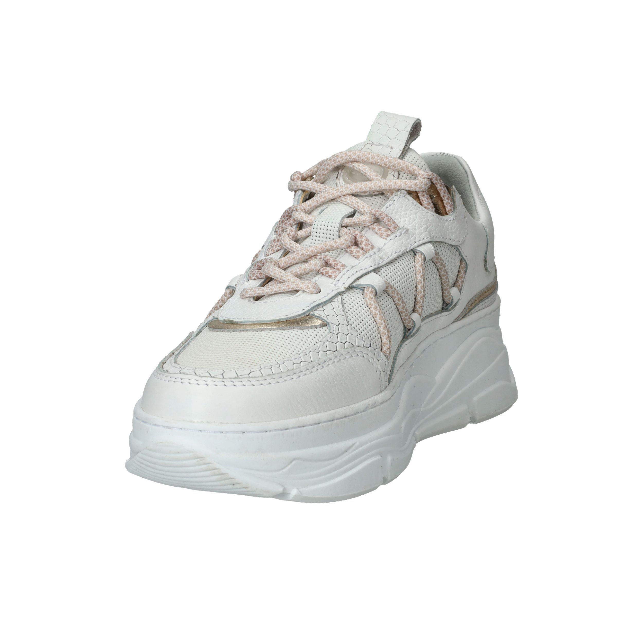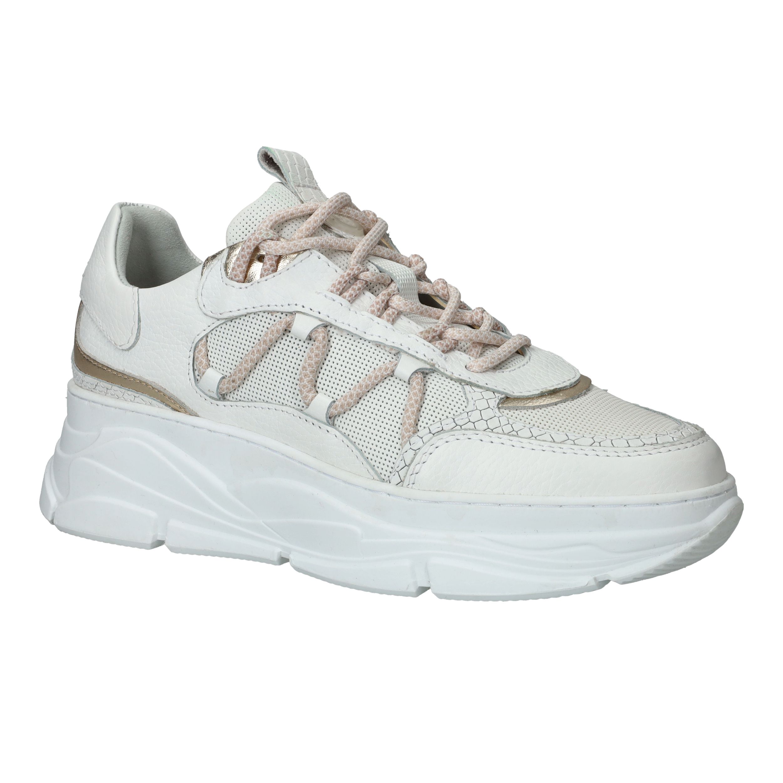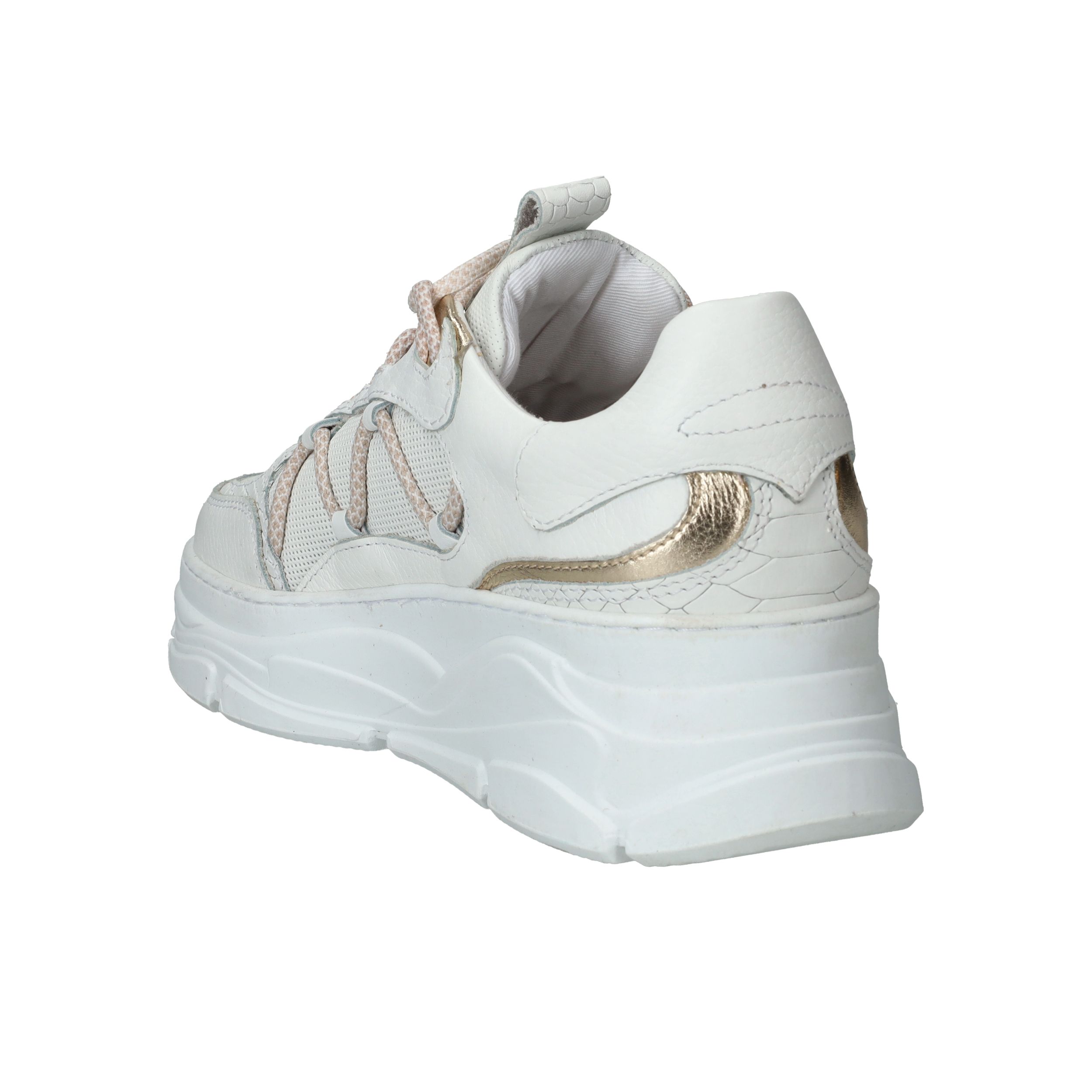 Chuncky LOFF 1881 sneaker voor dames. De witte sneaker heeft leuke metallic gouden accenten.