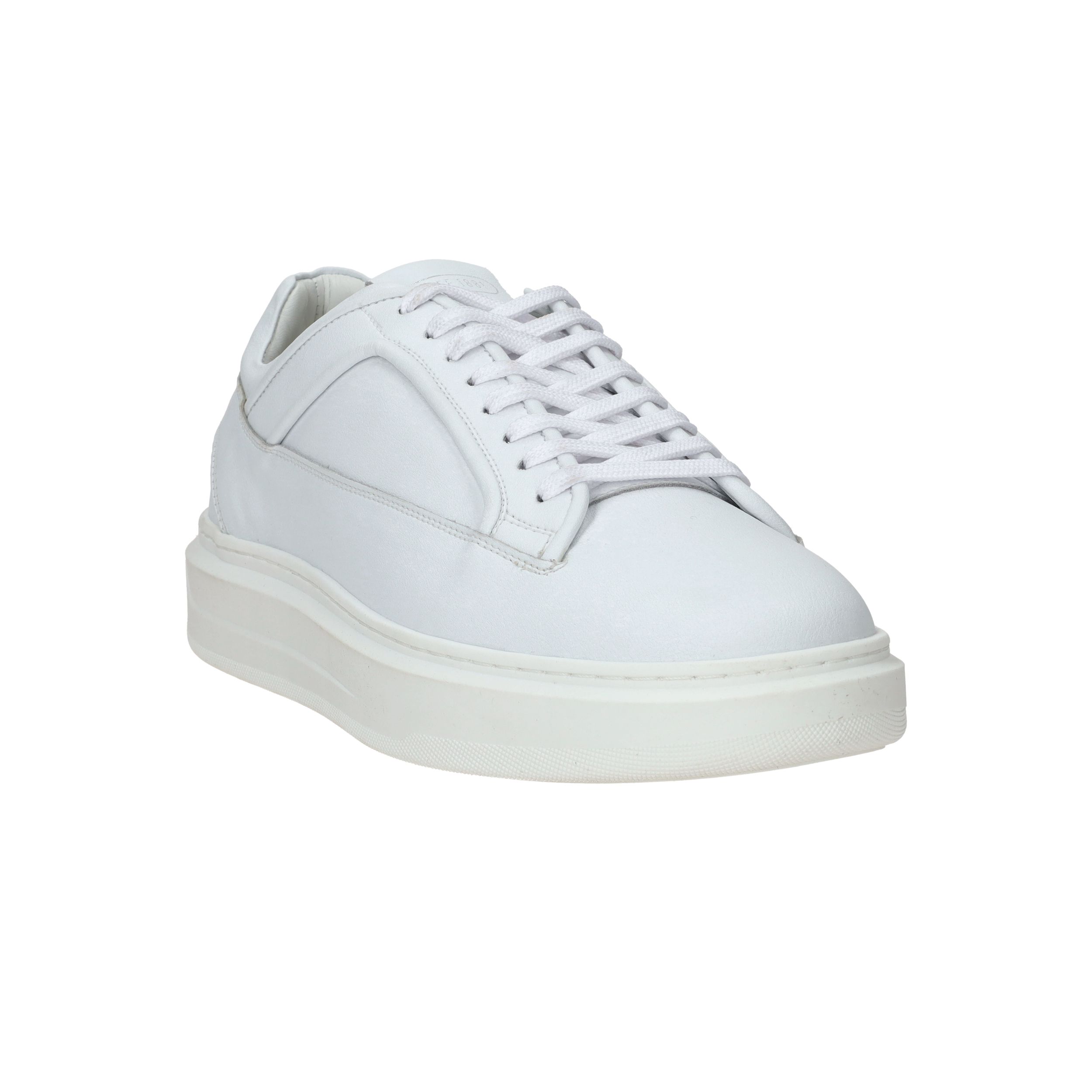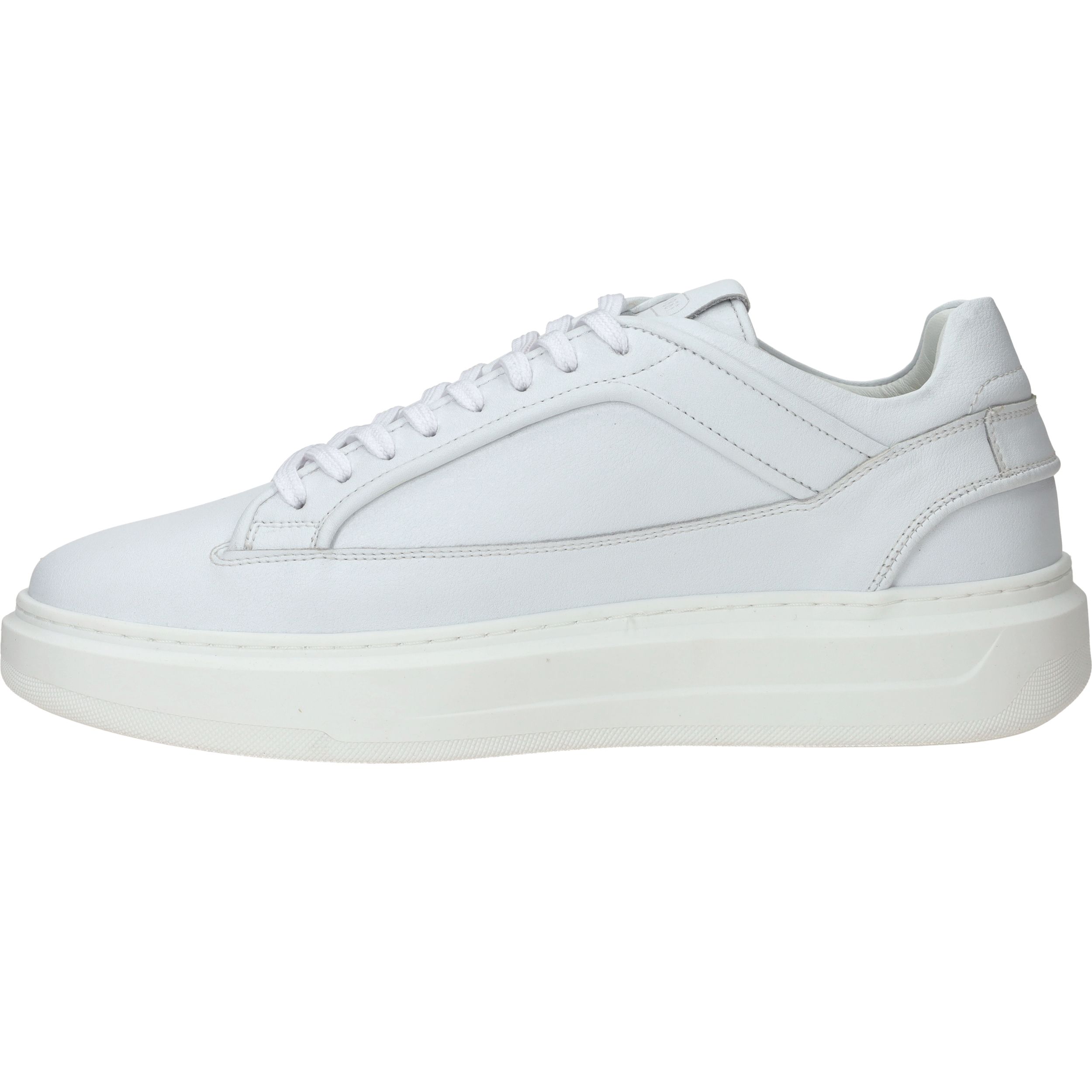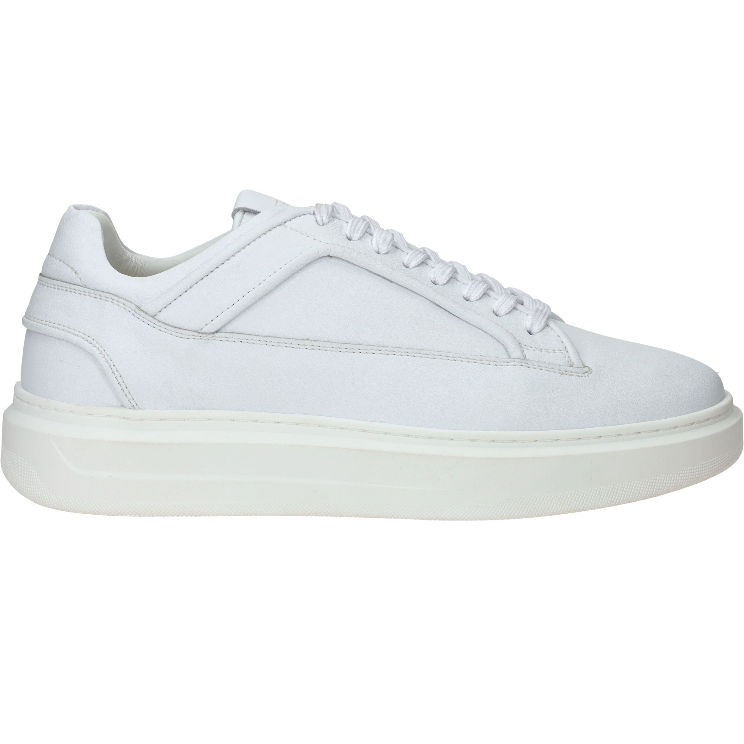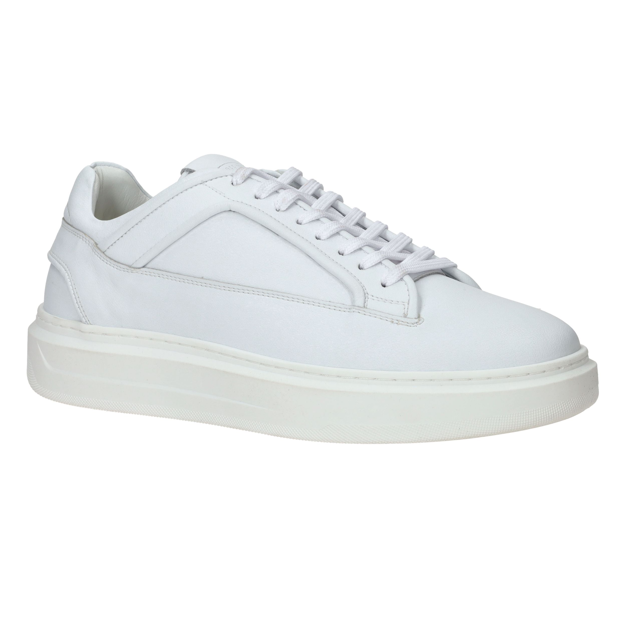 - De sneakers zijn helemaal gemaakt van leer.