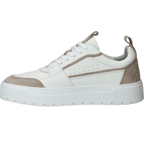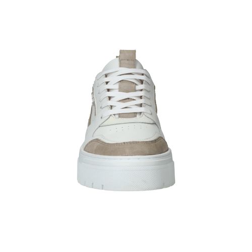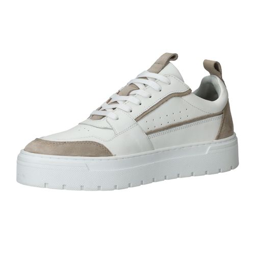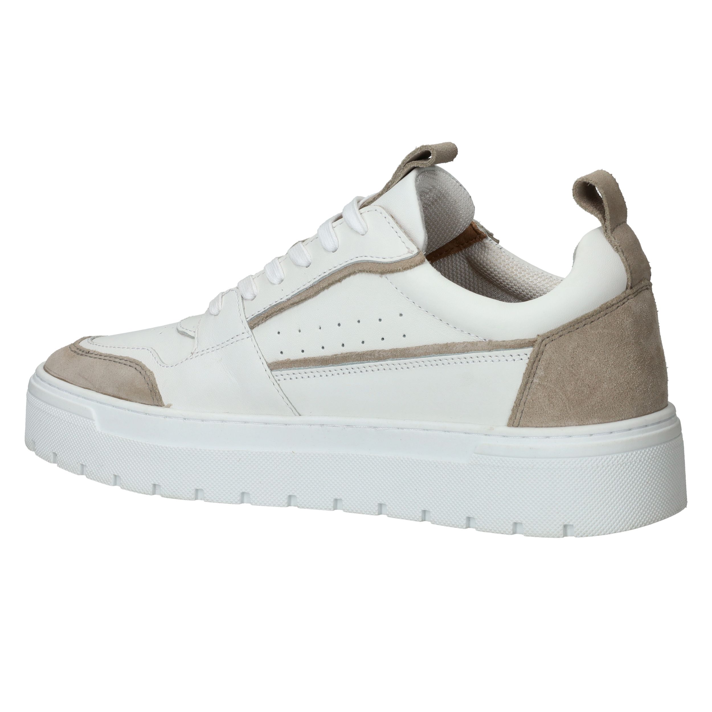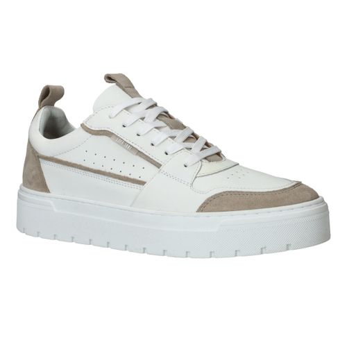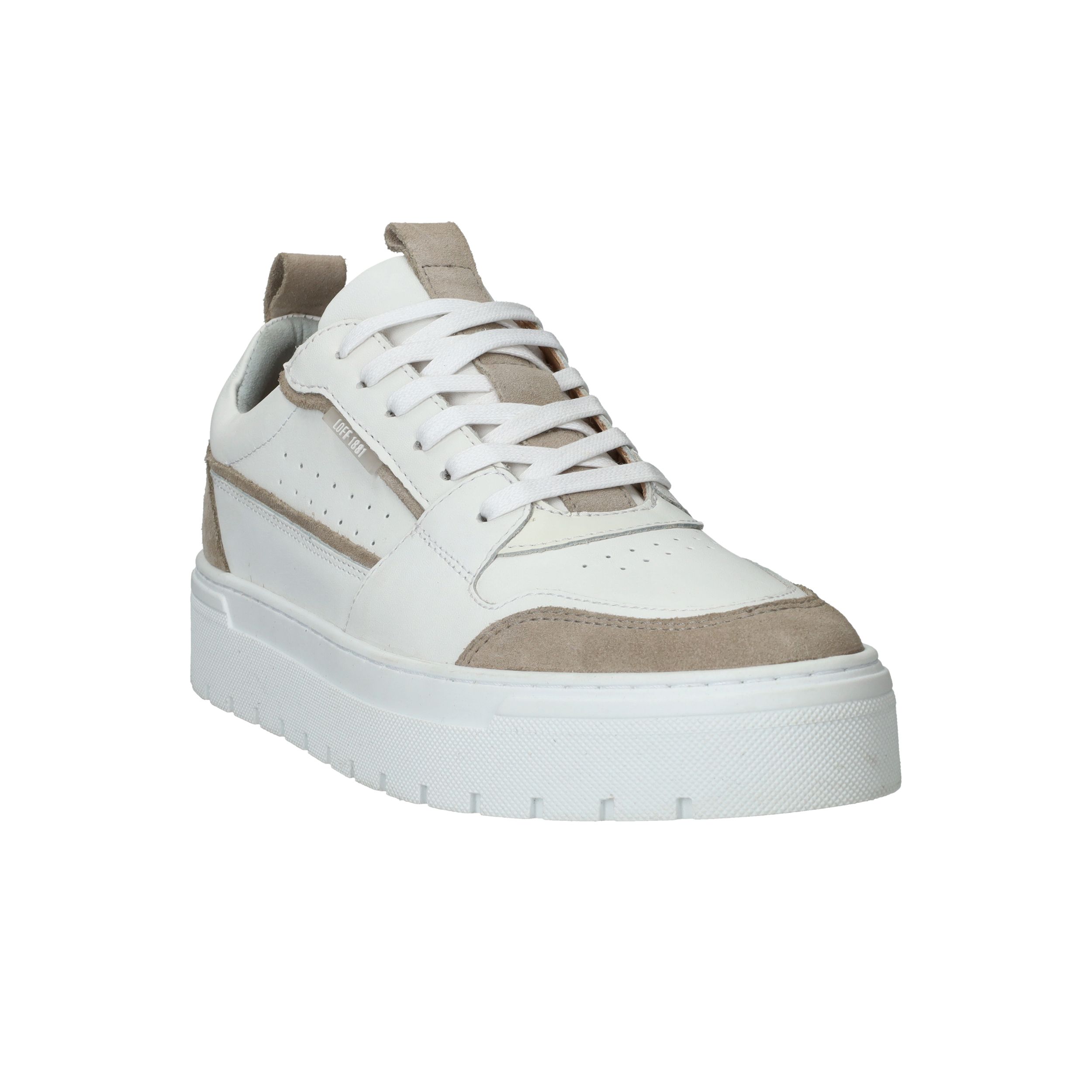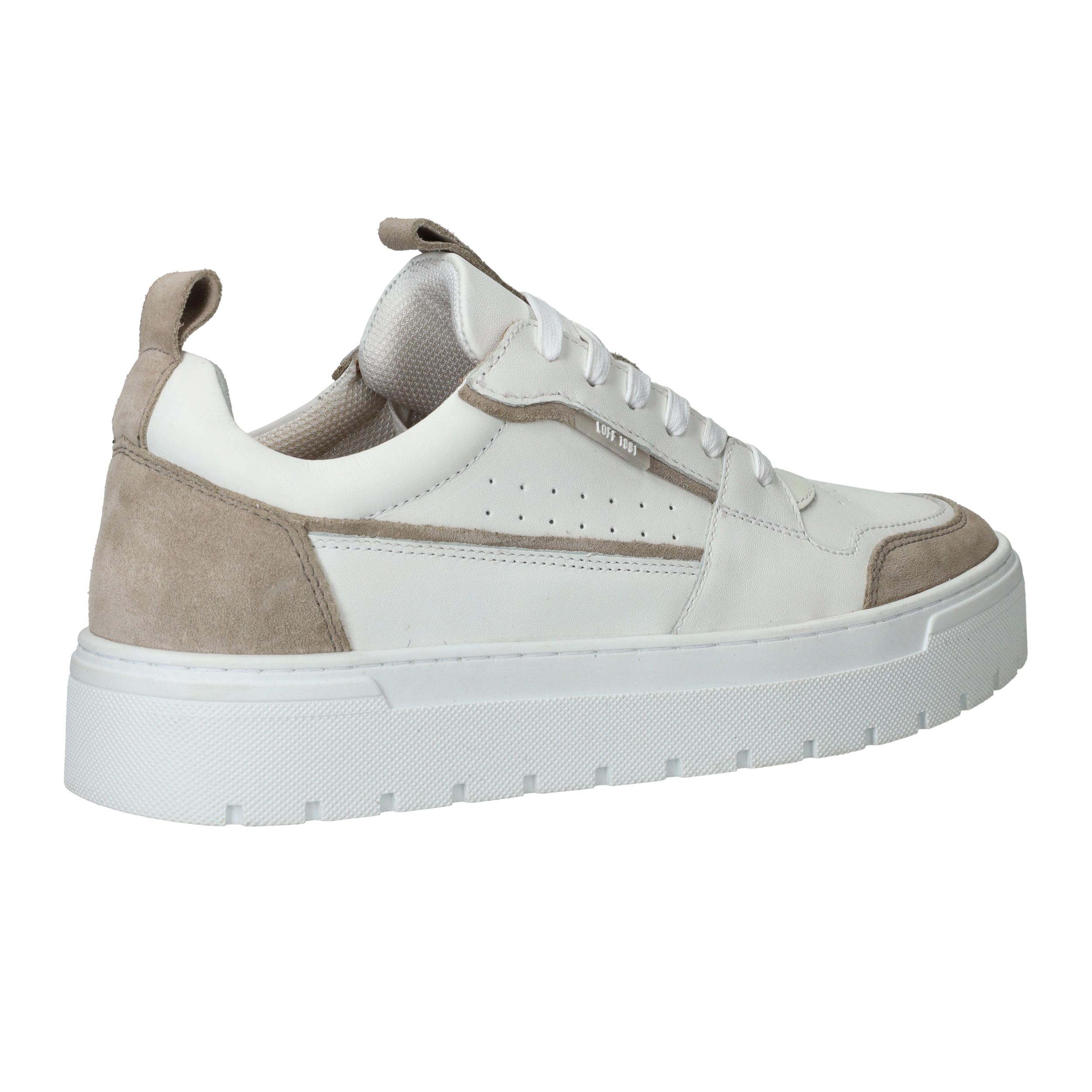 Deze trendy witte LOFF 1881 sneaker heeft beige suède details. Super tof is de platformzool.