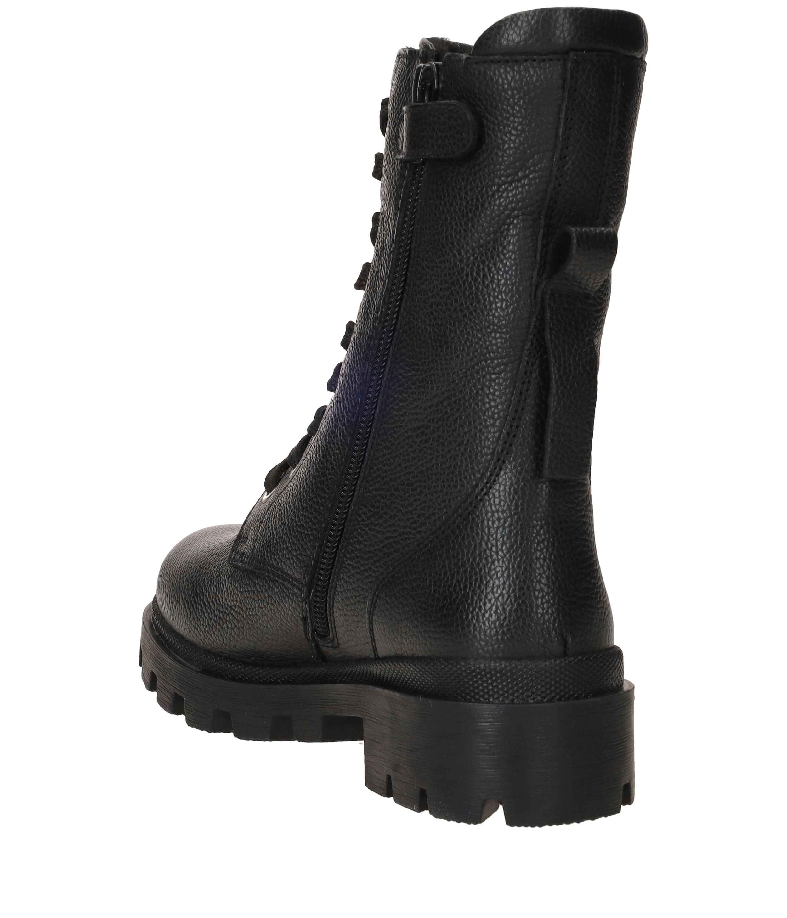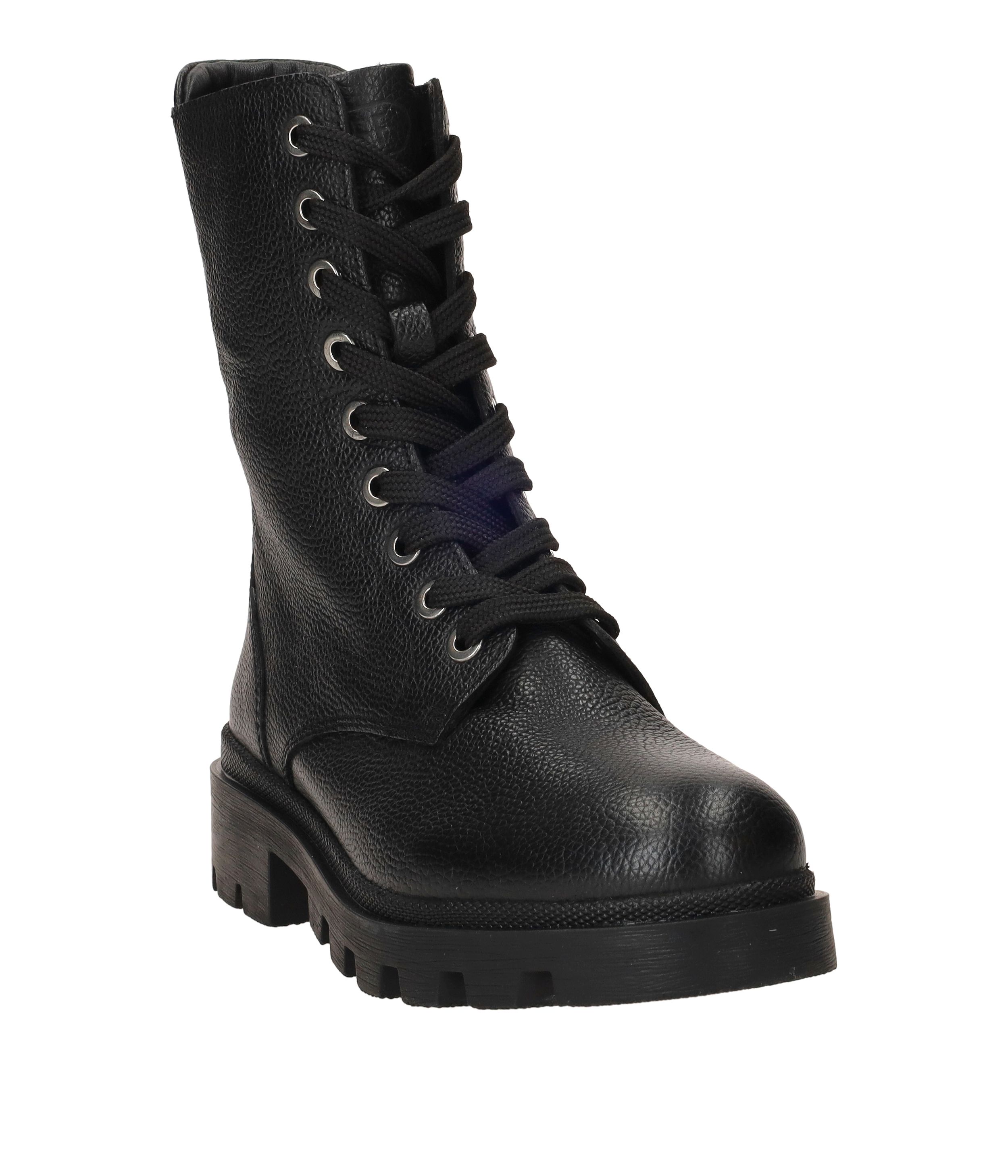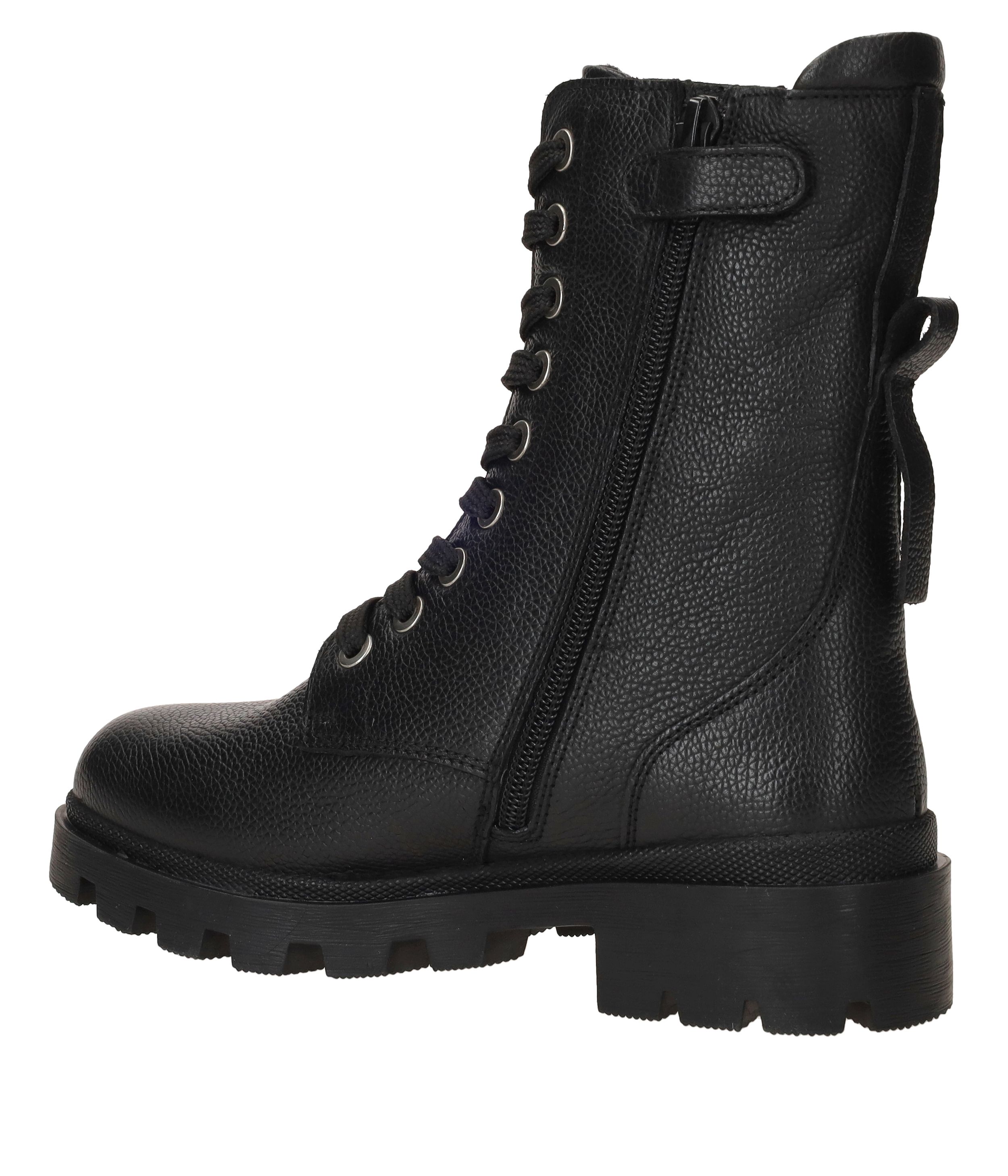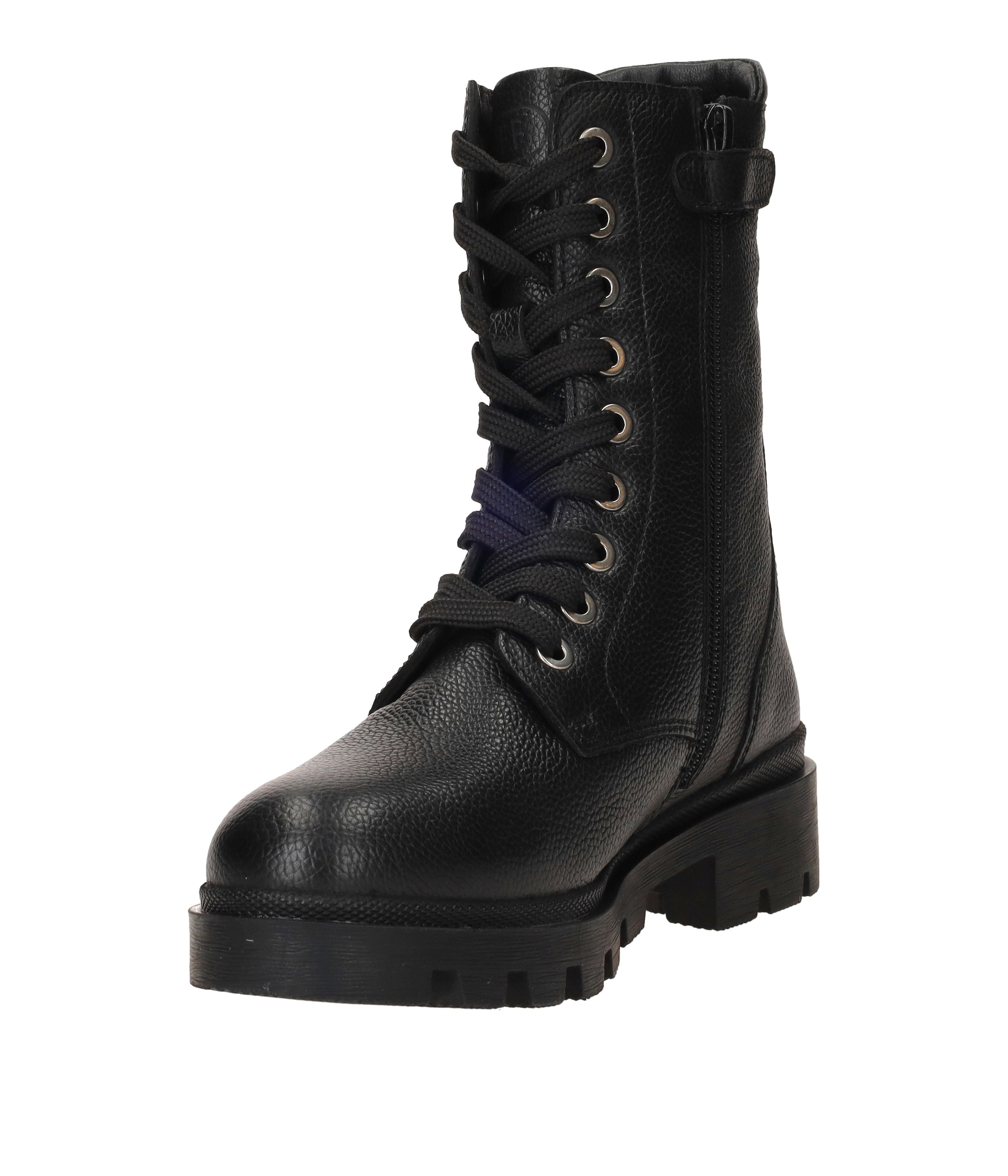 Stoere leren LOFF 1881 veterboot voor meiden. De zwarte meidenboot combineer je leuk met een broek of jurk.