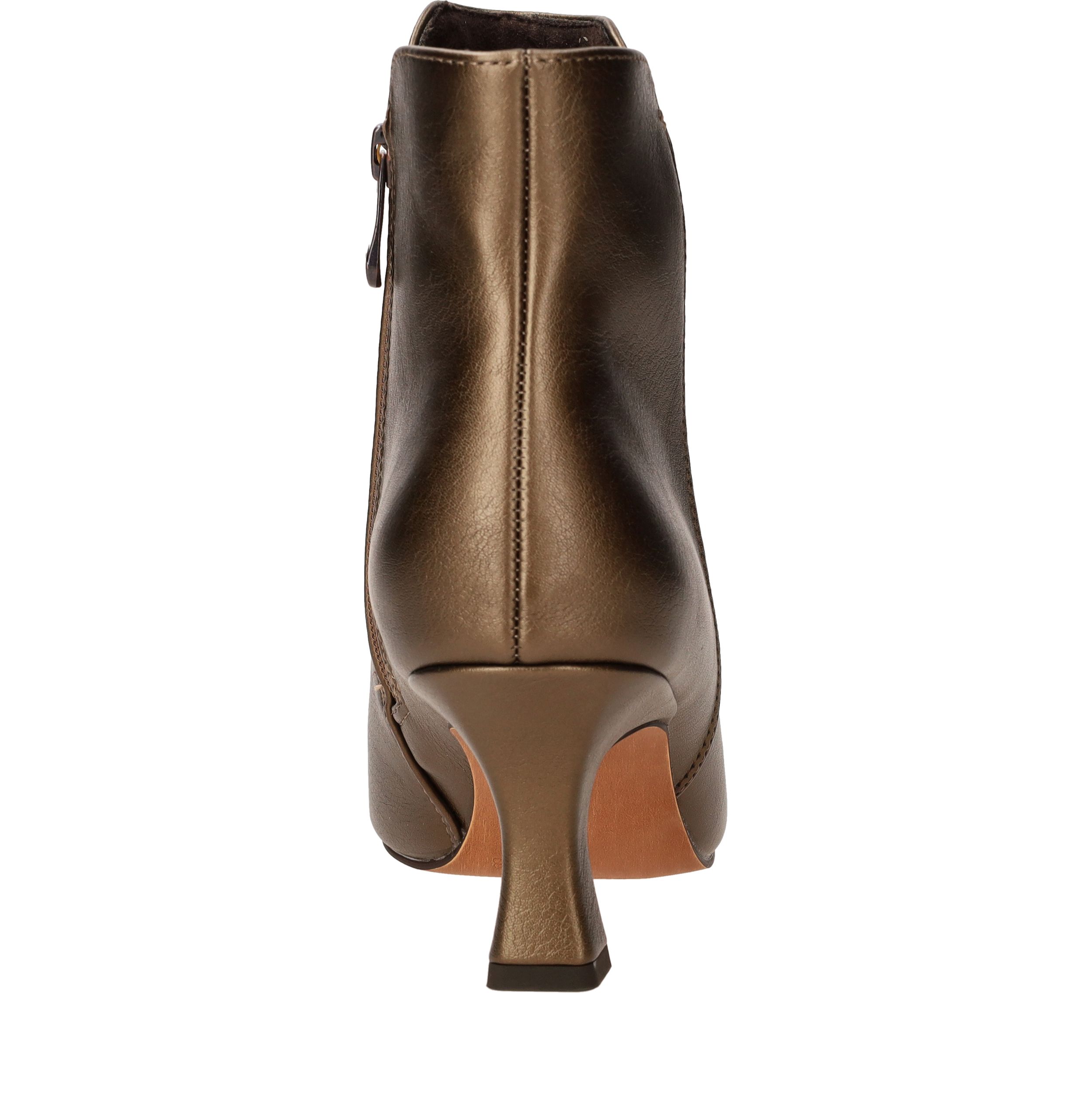 Dit MARCO TOZZI enkellaarsje heeft een prachtige donkergouden kleur en een uniek hakje van 6,5 cm. De damesschoen is helemaal gemaakt van vegan materiaal.