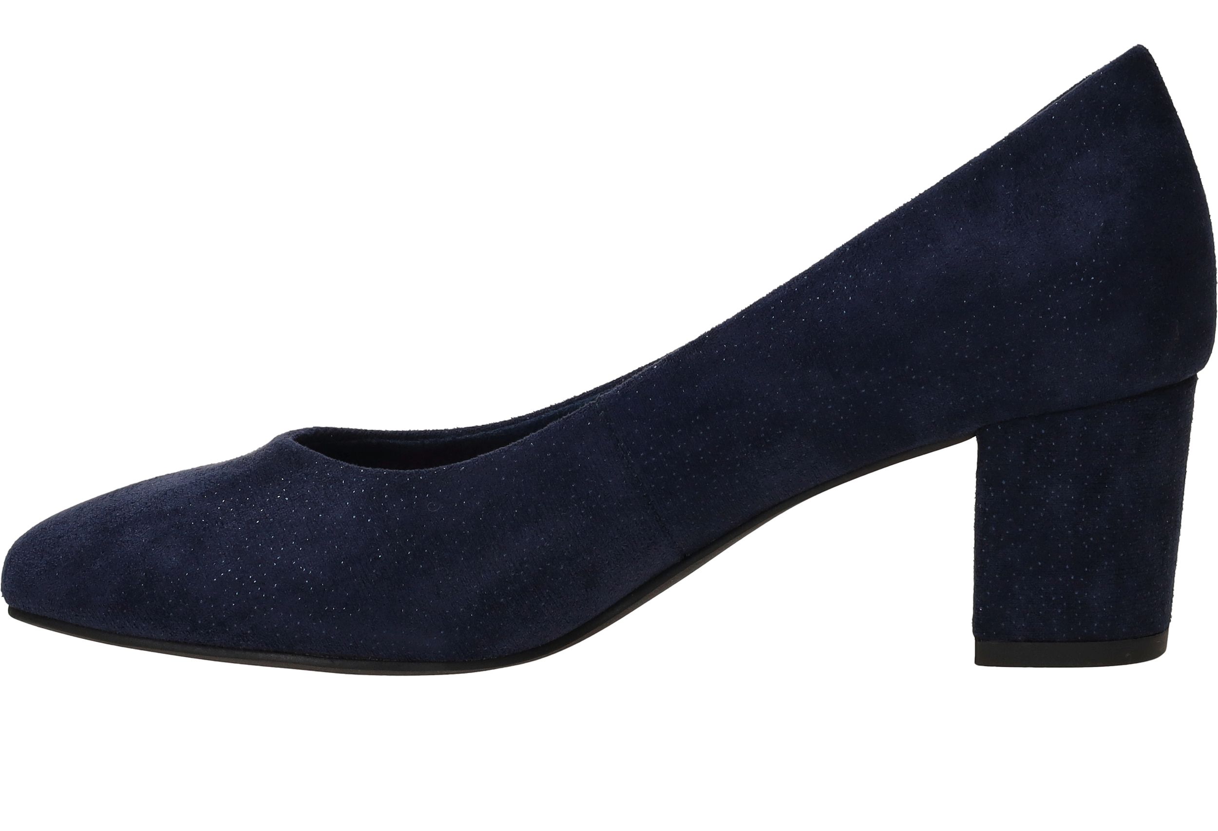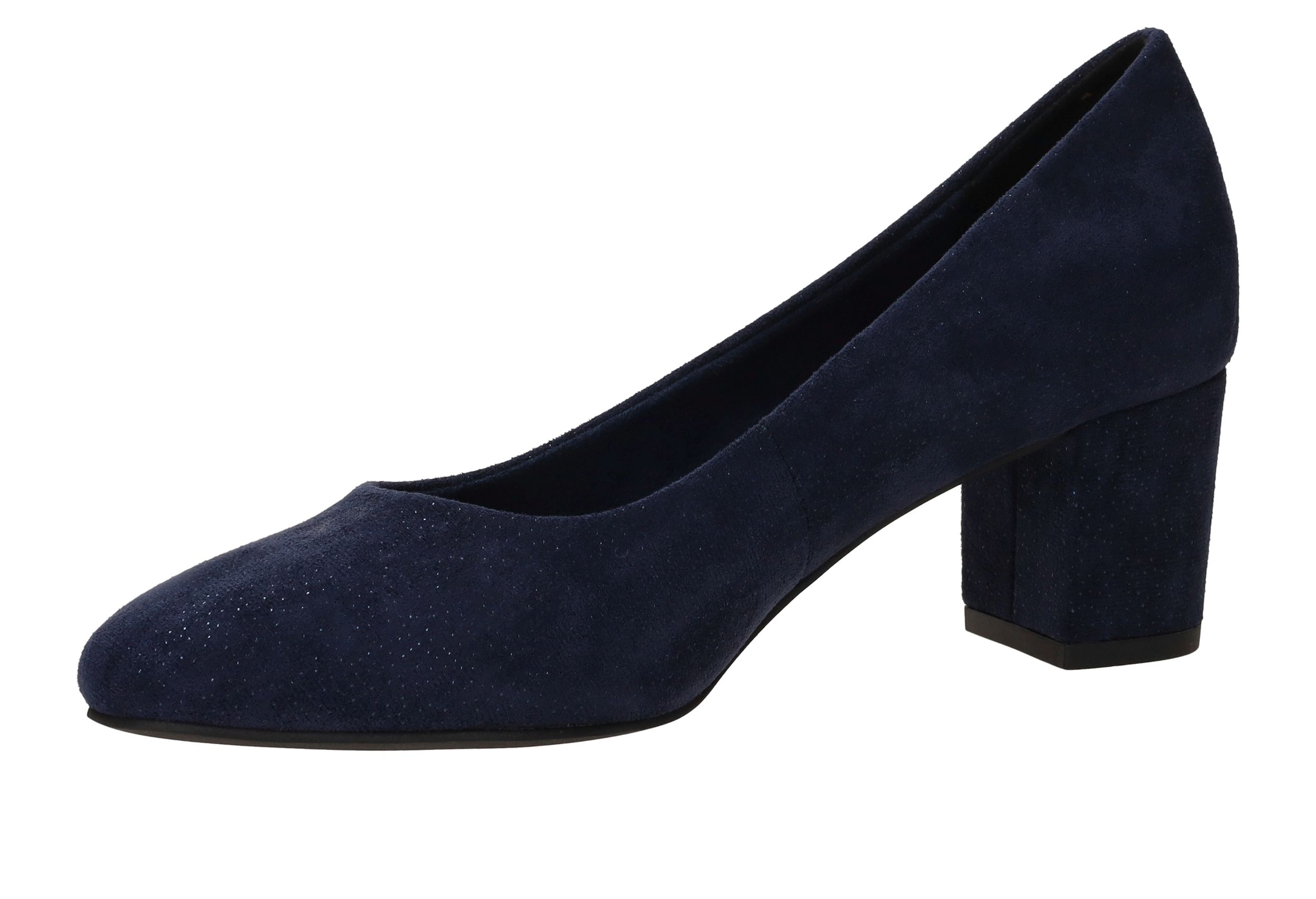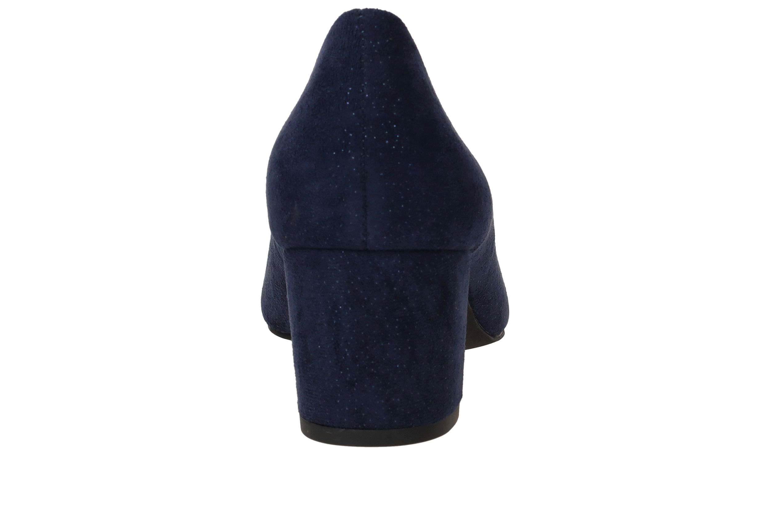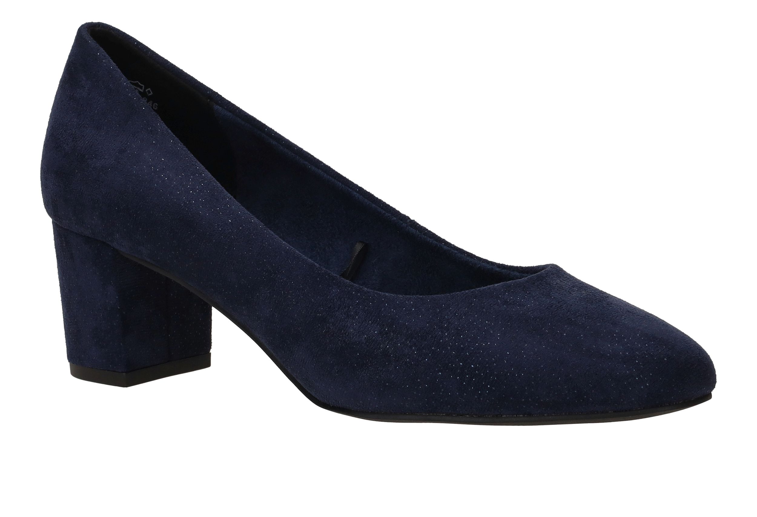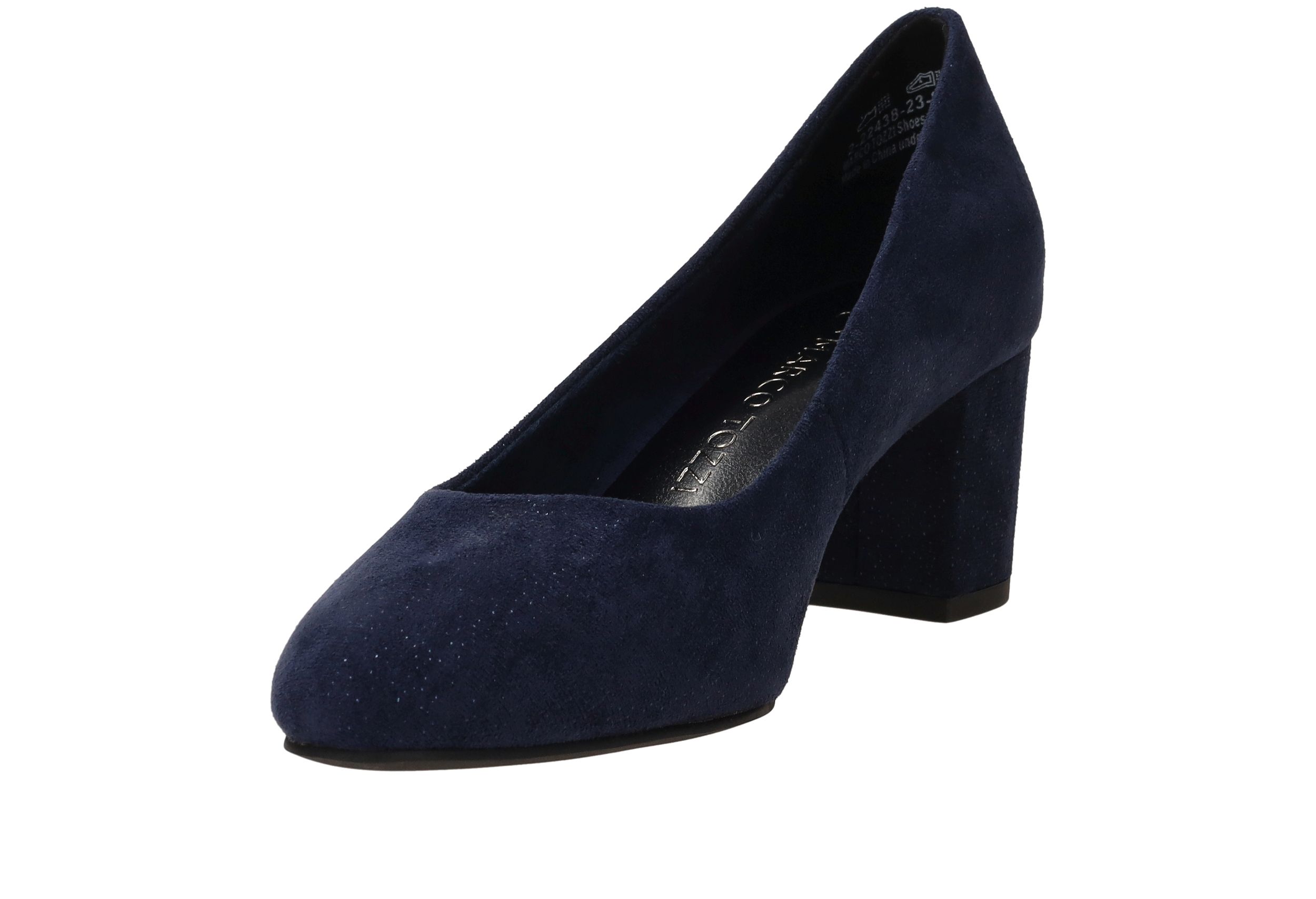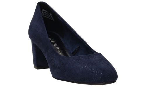 Hele stijlvolle blauwe MARCO TOZZI pump met een patroon van stralende metallic blauwe stipjes.