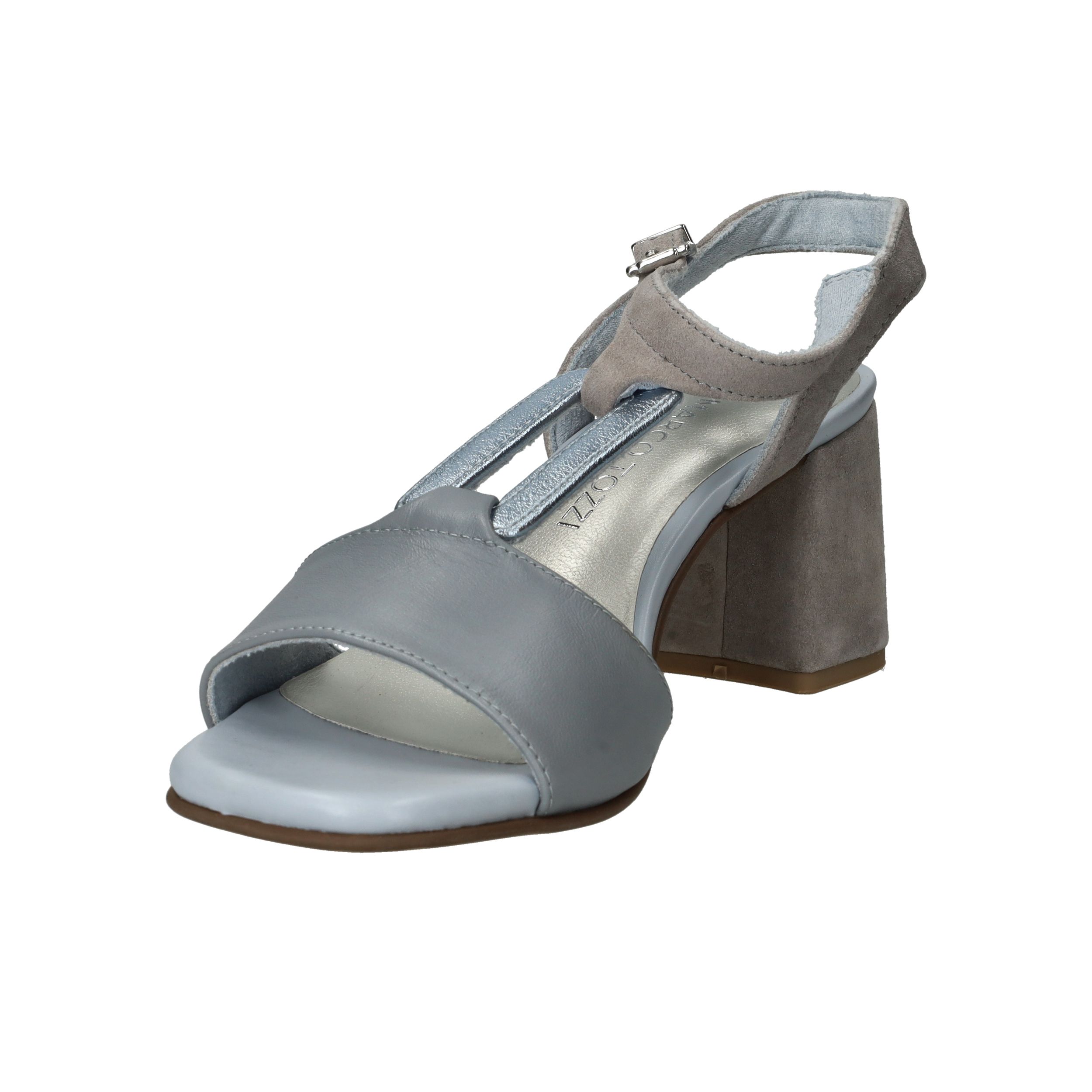 Deze grijze sandalen van Marco Tozzi combineren moderne elegantie met heerlijk comfort. De stevige blokhak biedt stabiliteit, terwijl het zachte voetbed zorgt voor een fijn loopgevoel. Dankzij de neutrale blauwe kleur passen ze bij vrijwel elke zomerse outfit. De sandaal is uitgevoerd in een combinatie van leer en synthetisch materiaal voor een stijlvolle en duurzame look, speciaal ontworpen voor dames.