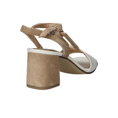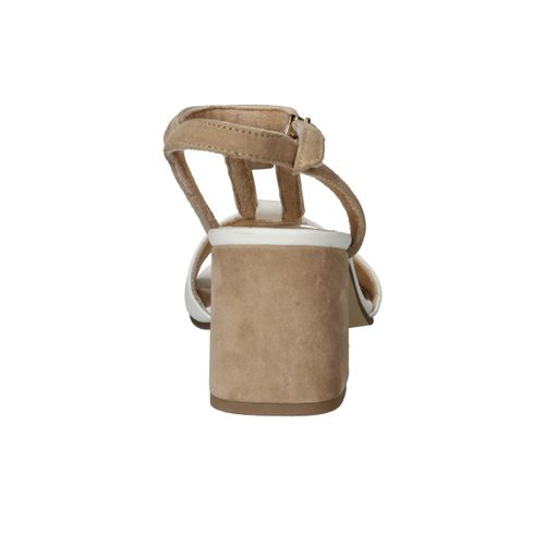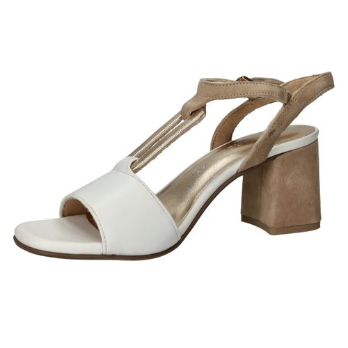 Met deze sandalen van Marco Tozzi geef je jouw zomerse outfit een vrouwelijke en stijlvolle upgrade. De combinatie van wit leer en beige synthetisch materiaal zorgt voor een frisse look en een fijne pasvorm. Dankzij de middelhoge hak loop je comfortabel én elegant, perfect voor elke gelegenheid. Deze dames sandalen zijn een must-have voor de zonnige dagen.
