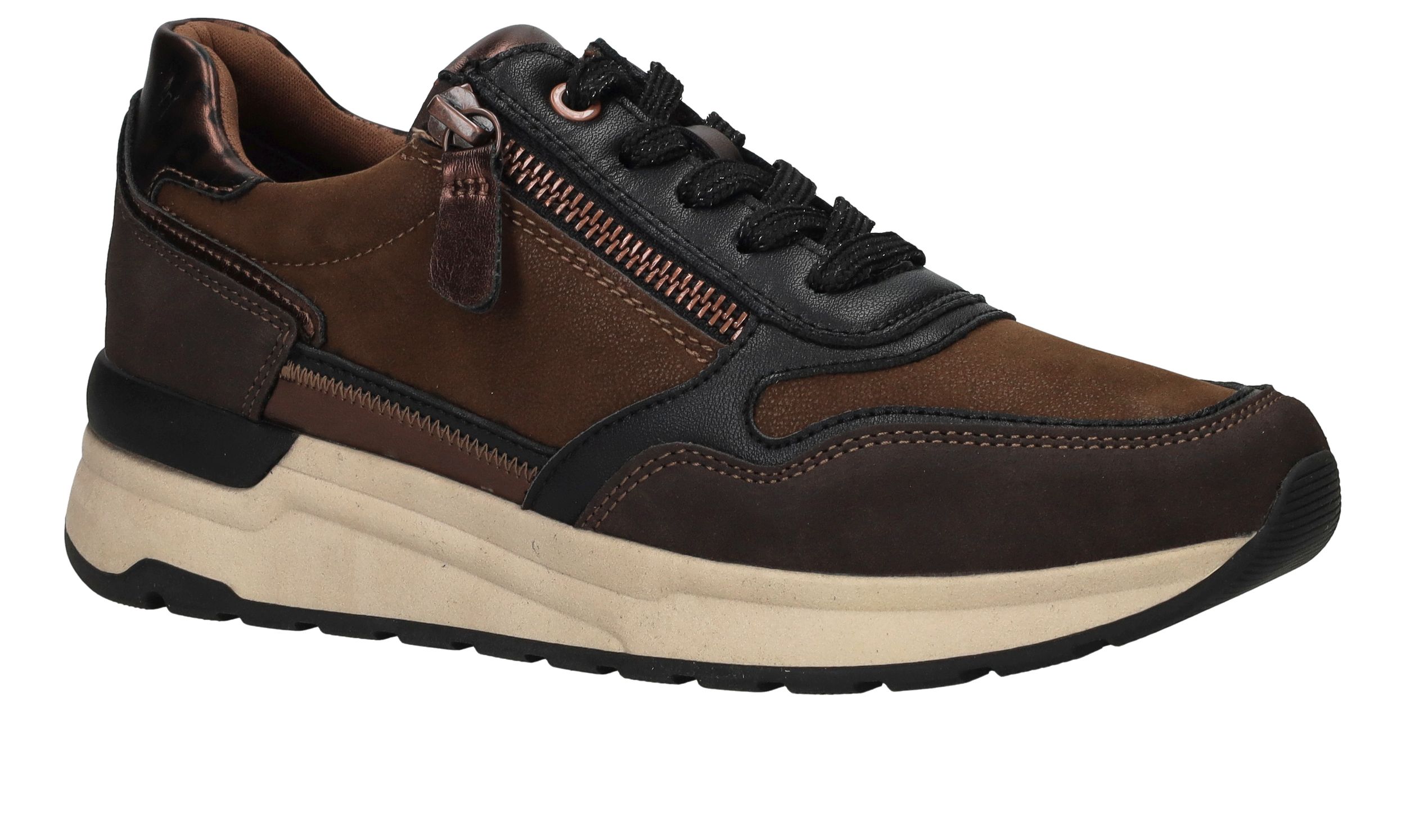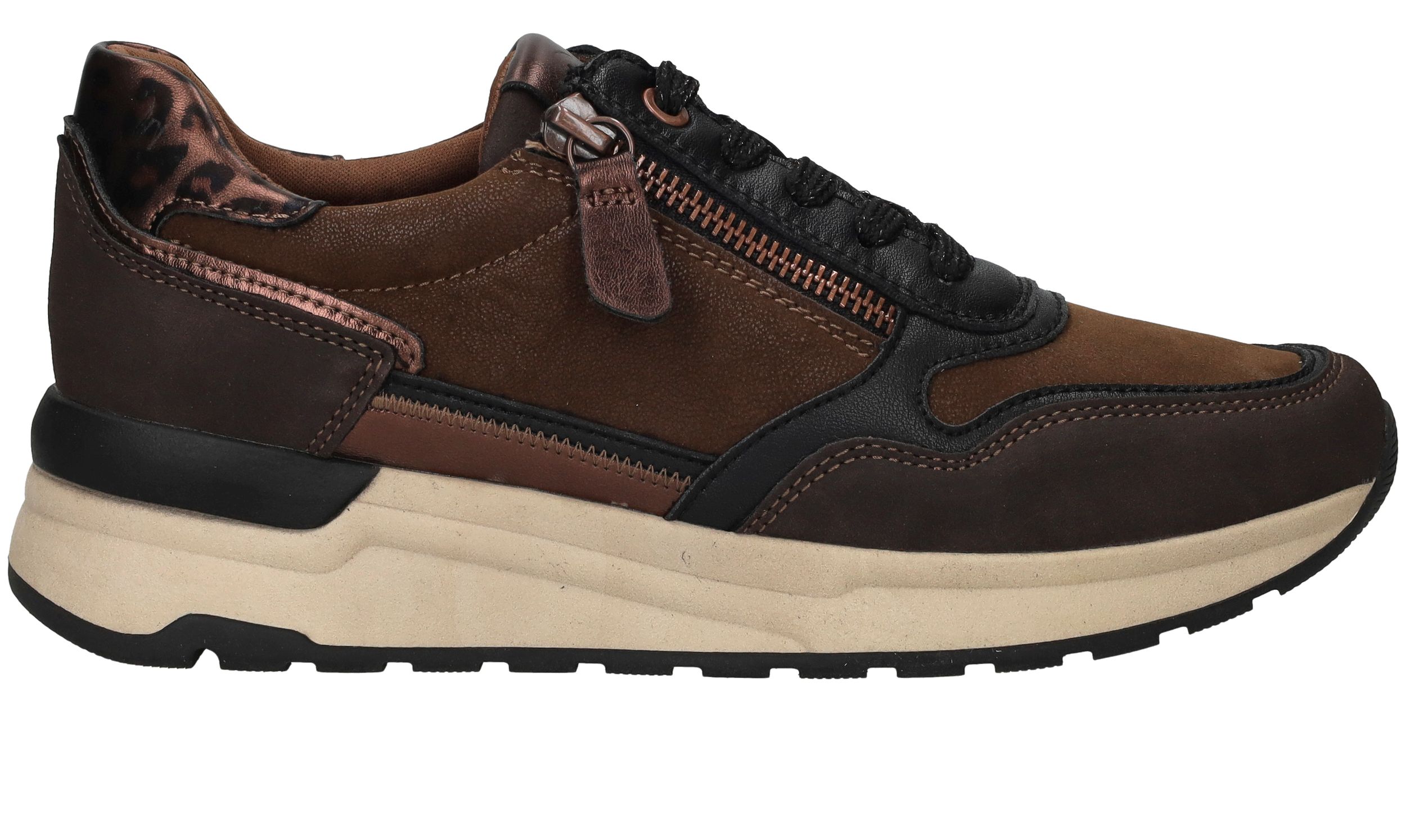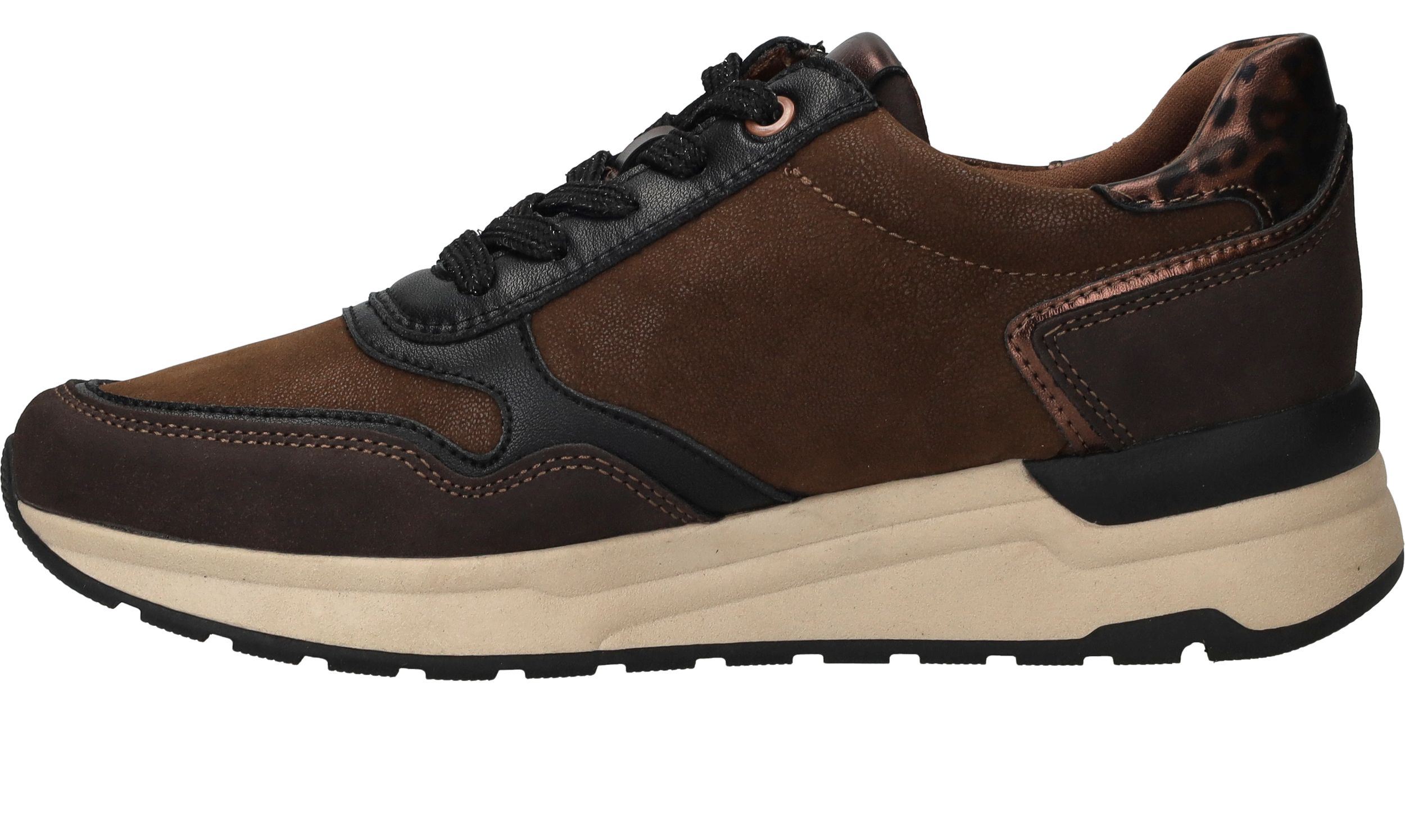 Mooie MARCO TOZZI sneaker in bruintinten. De damesschoen is helemaal gemaakt van vegan materiaal..