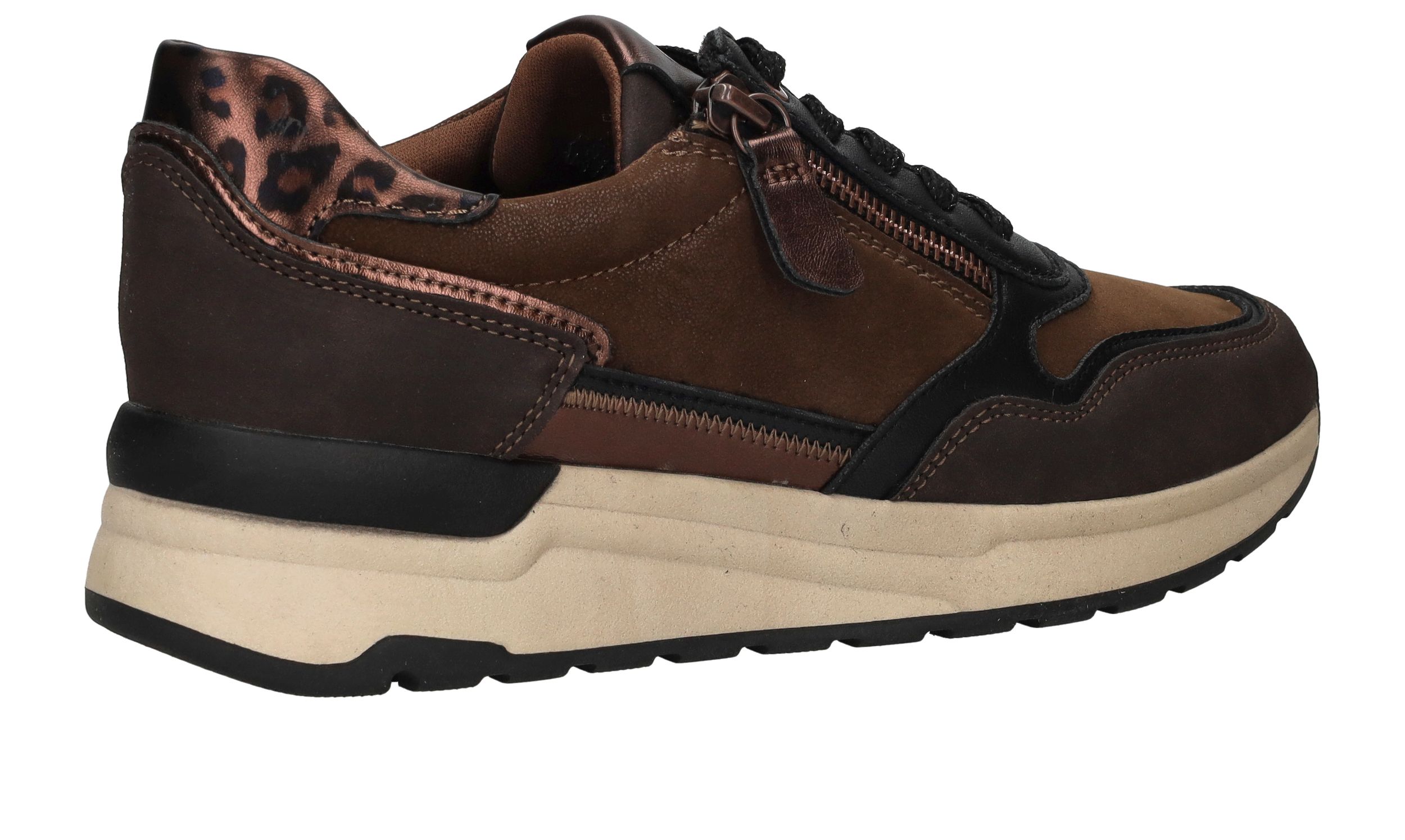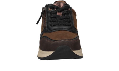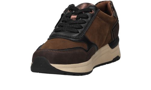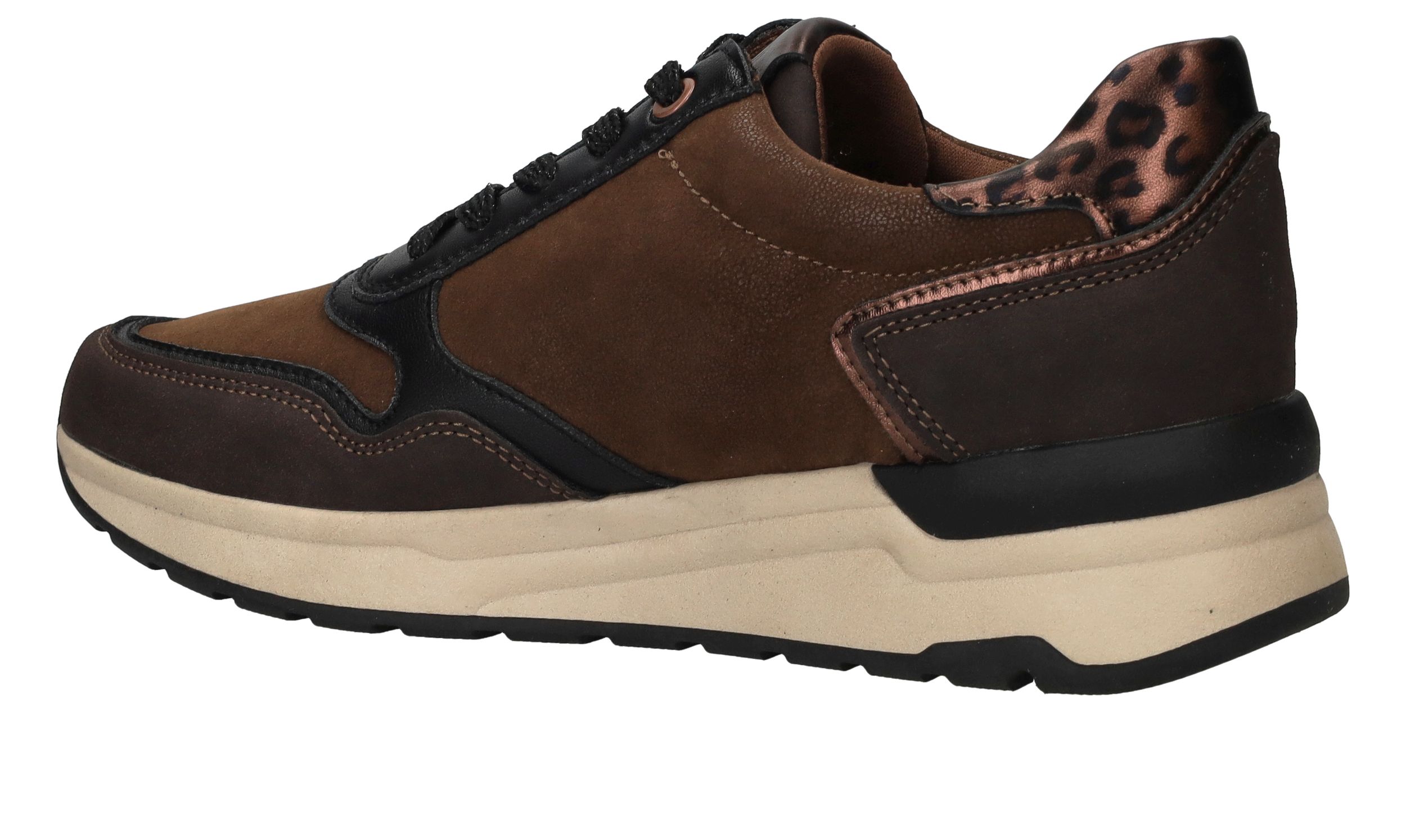 Mooie MARCO TOZZI sneaker in bruintinten. De damesschoen is helemaal gemaakt van vegan materiaal..