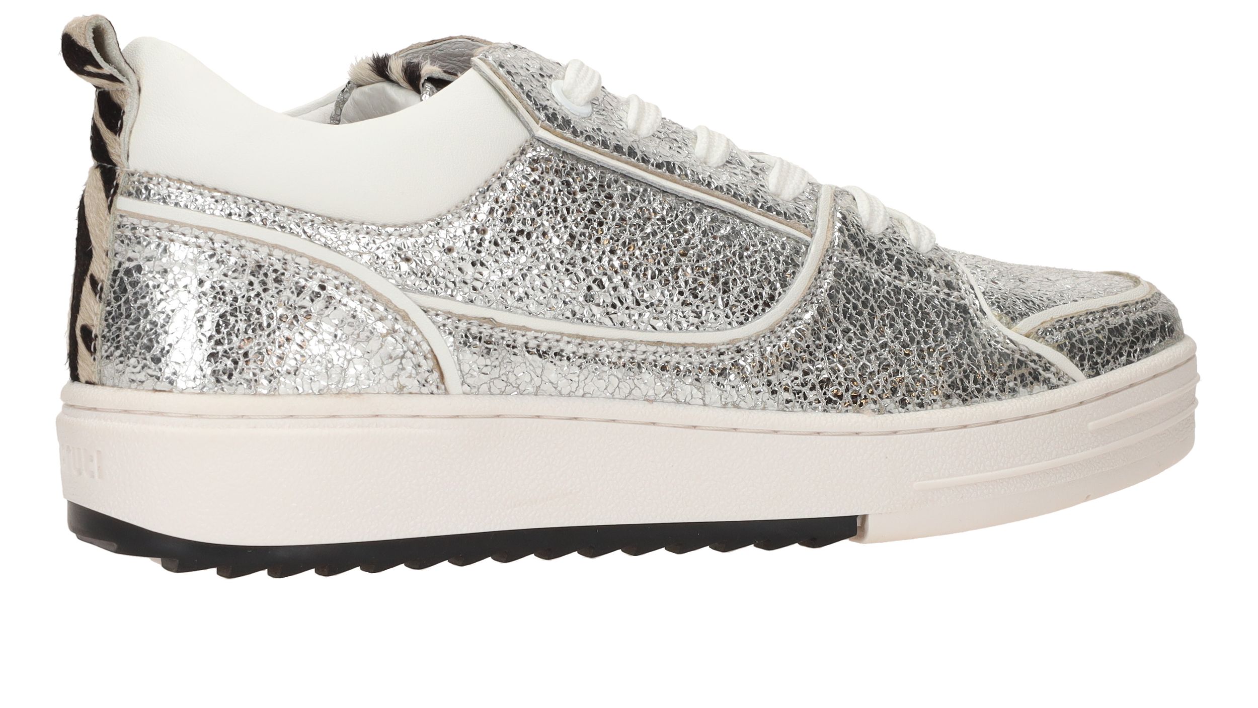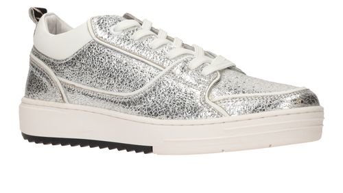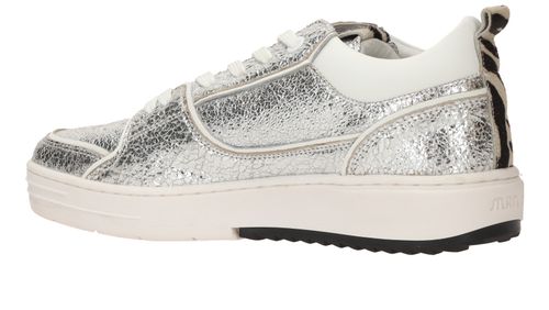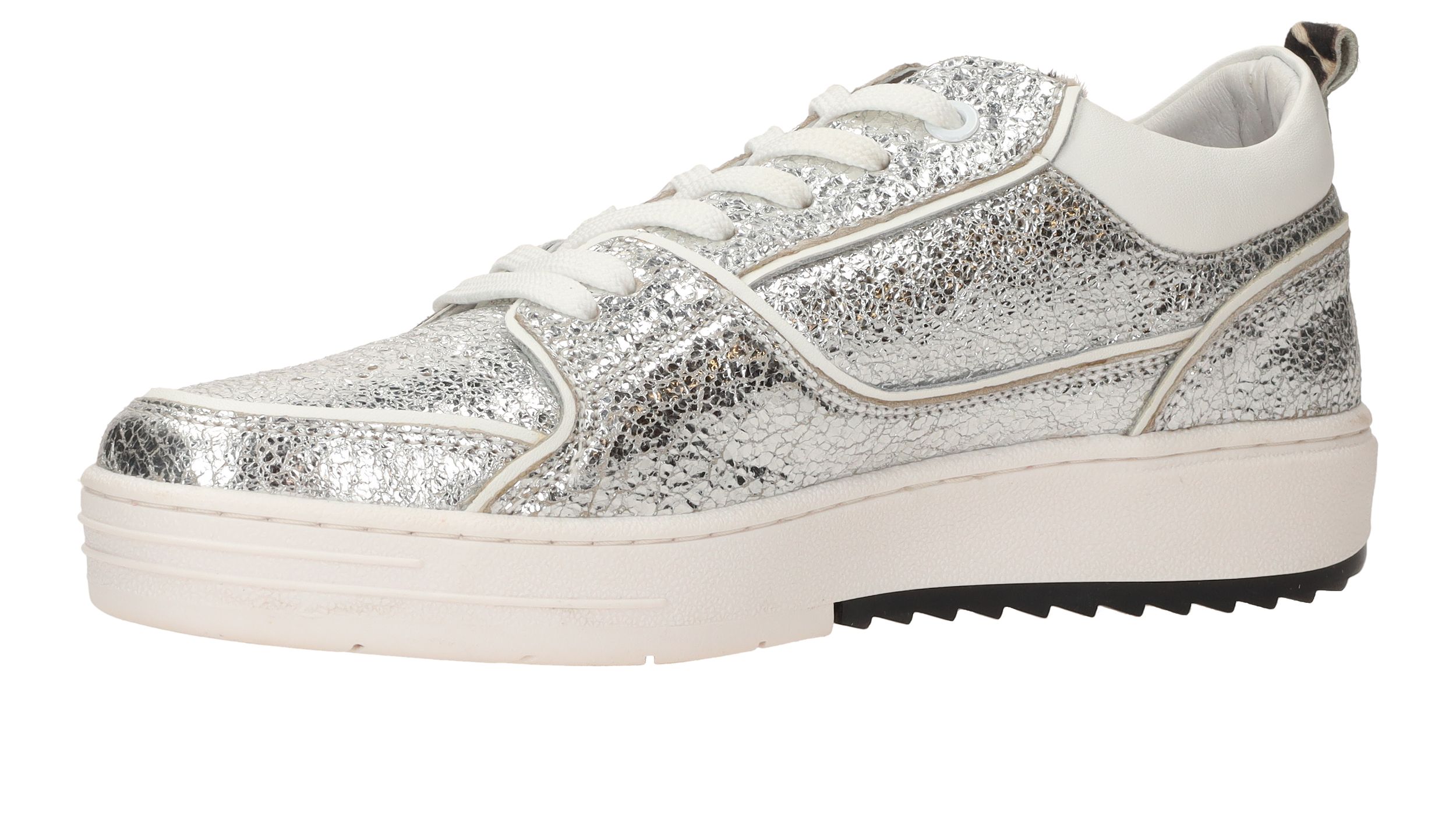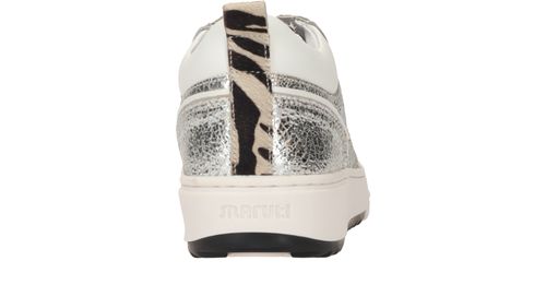 Hoe gaaf is deze Maruti Anna sneaker met een stralende metallic zilveren kleur! Deze stevige damessneaker is gemaakt van leer en het leuke dierenprintje maakt deze schoen helemaal af.
