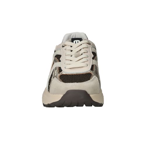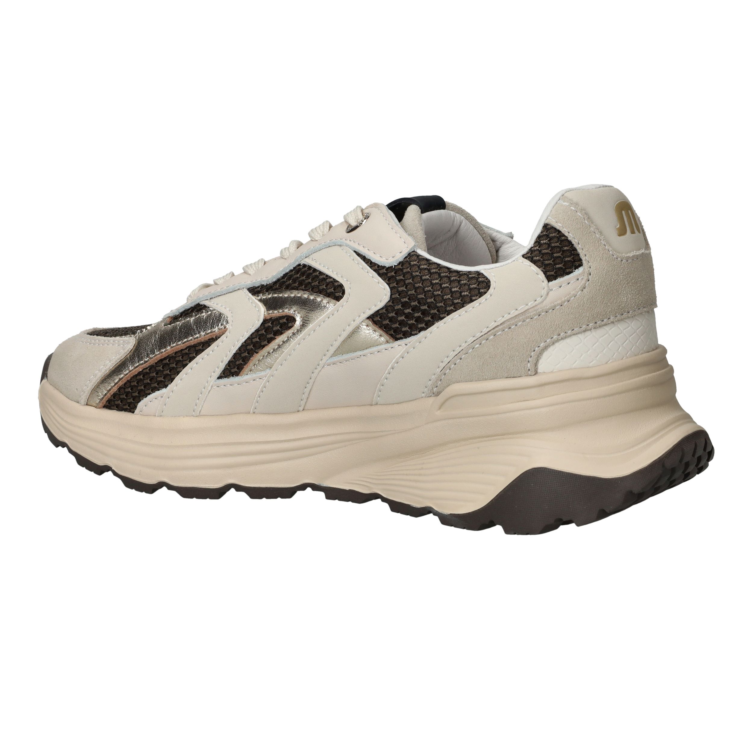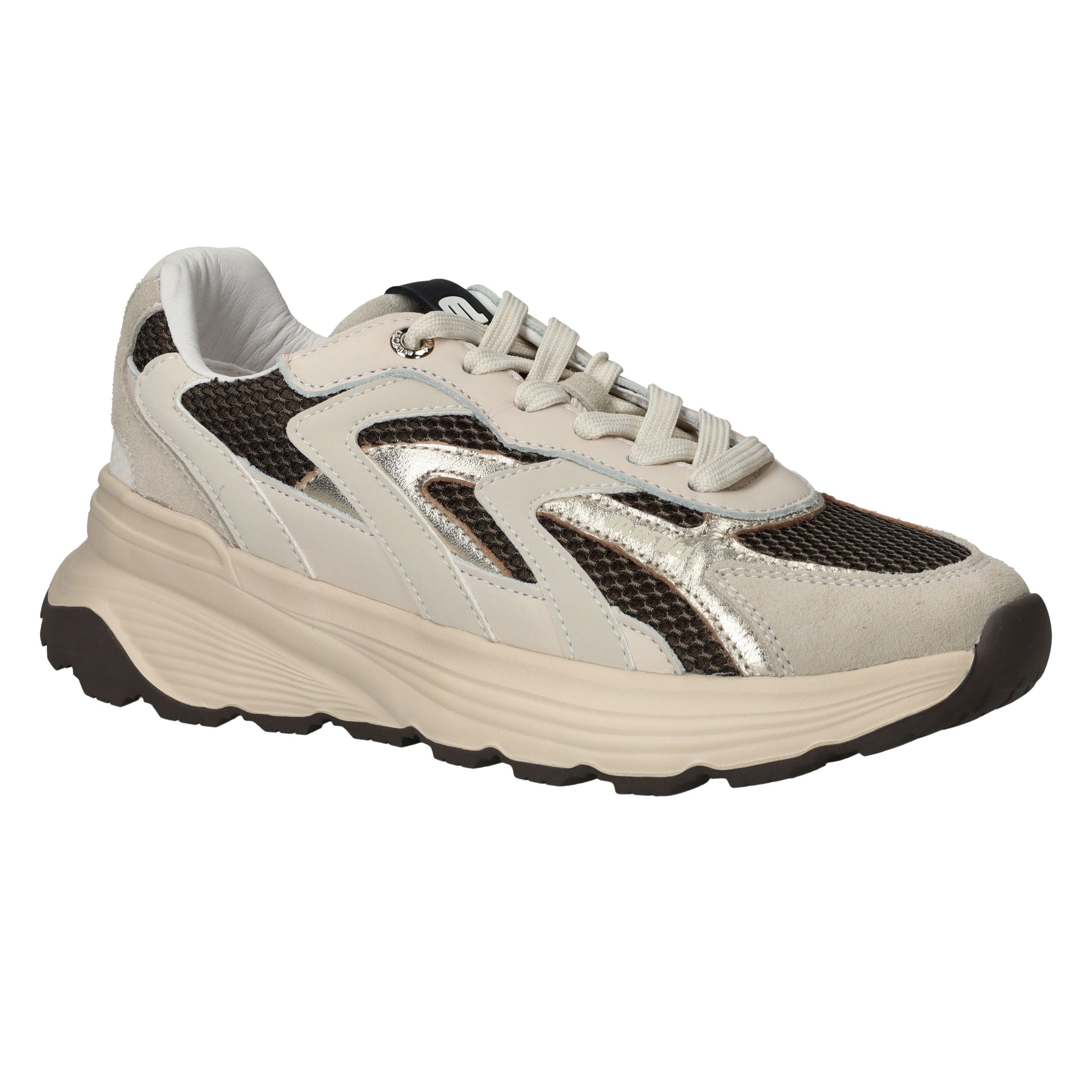 Deze stijlvolle sneakers van het eigentijdse merk Maruti zijn een echte blikvanger. De Dora sneakers combineren verschillende texturen en materialen, waaronder hoogwaardig glad leer, voor een unieke en luxe uitstraling. De neutrale kleuren zorgen ervoor dat je ze makkelijk combineert, terwijl de sportieve zool zorgt voor extra draagcomfort. Perfect voor dames die stijlvol én comfortabel de dag door willen.