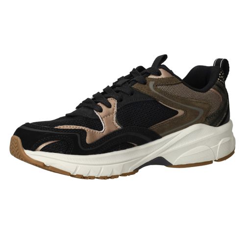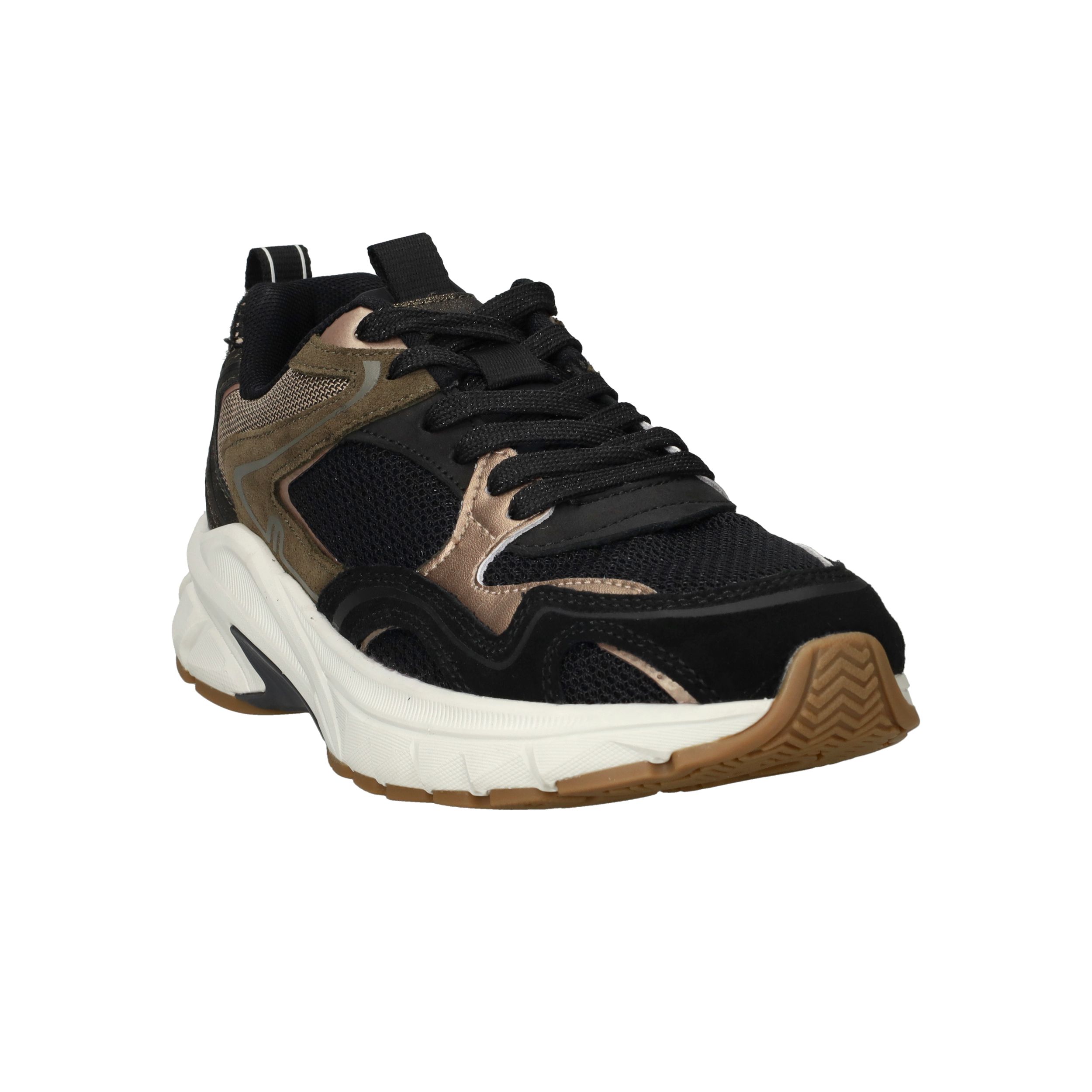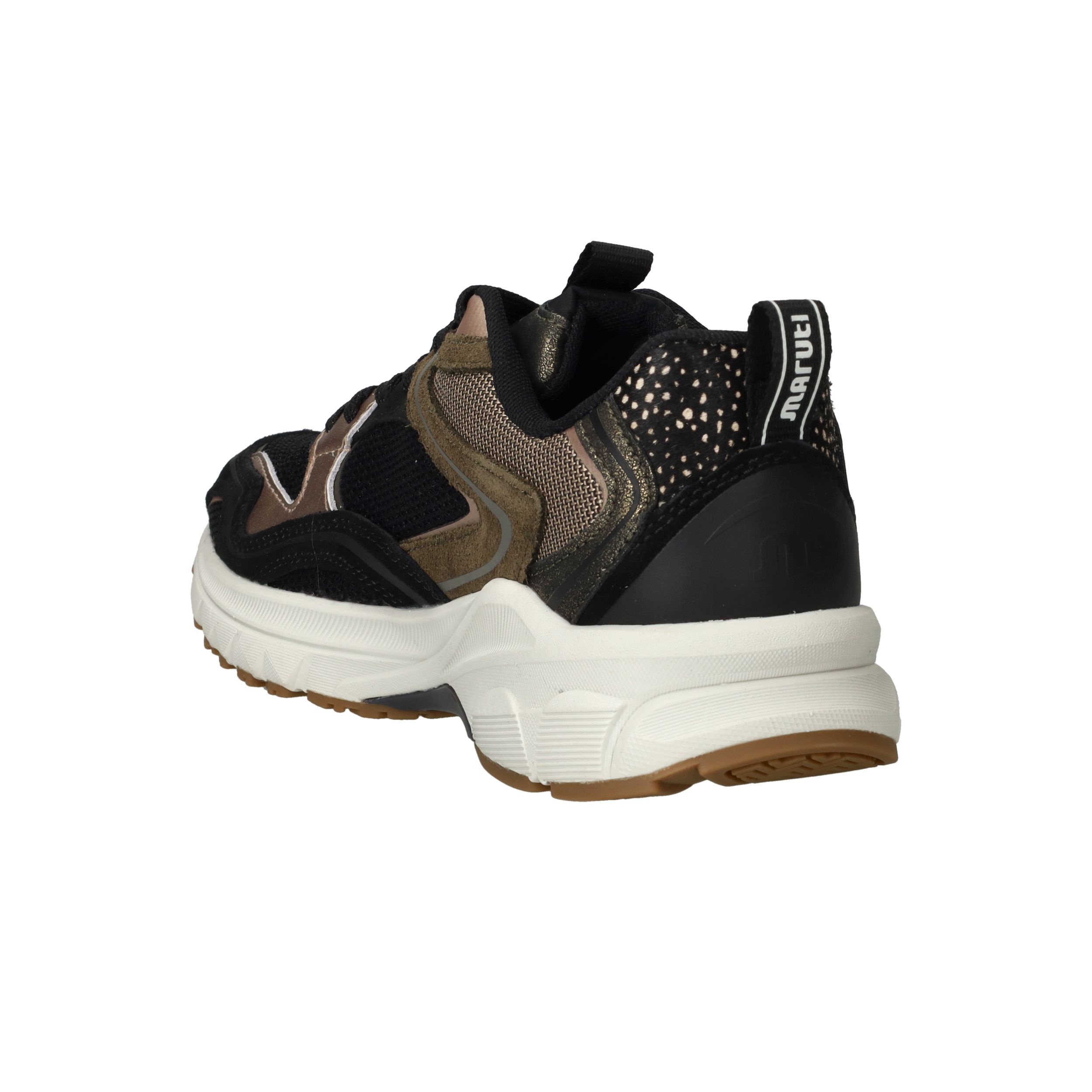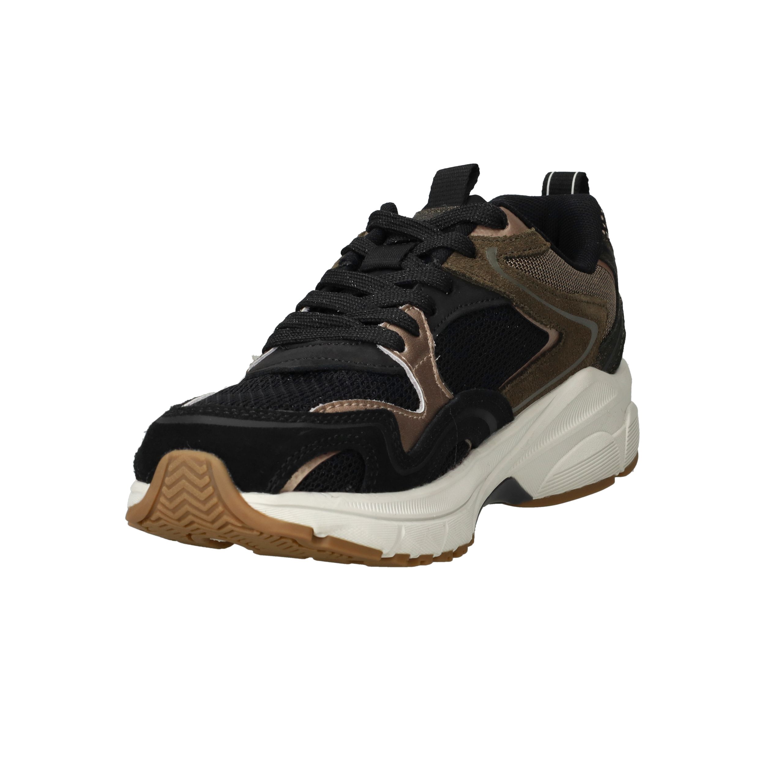 Stijl ontmoet comfort in deze Maruti Novi sneaker voor dames. De combinatie van suède en textiel zorgt voor een rijke uitstraling, terwijl de binnenzijde van leer en textiel heerlijk aanvoelt aan de voet. De donkerblauwe kleur met metallic accenten geeft een sportieve en tegelijk chique touch aan je outfit.