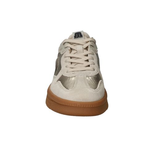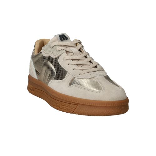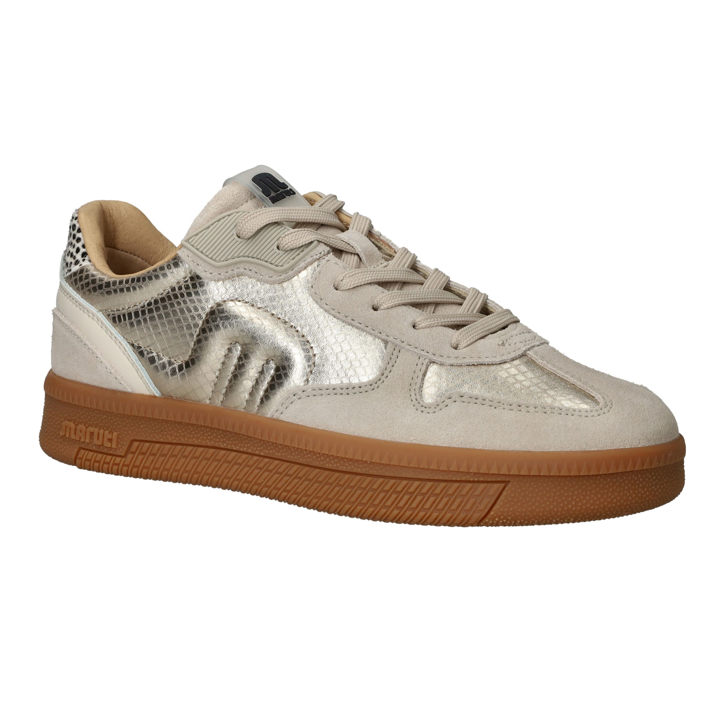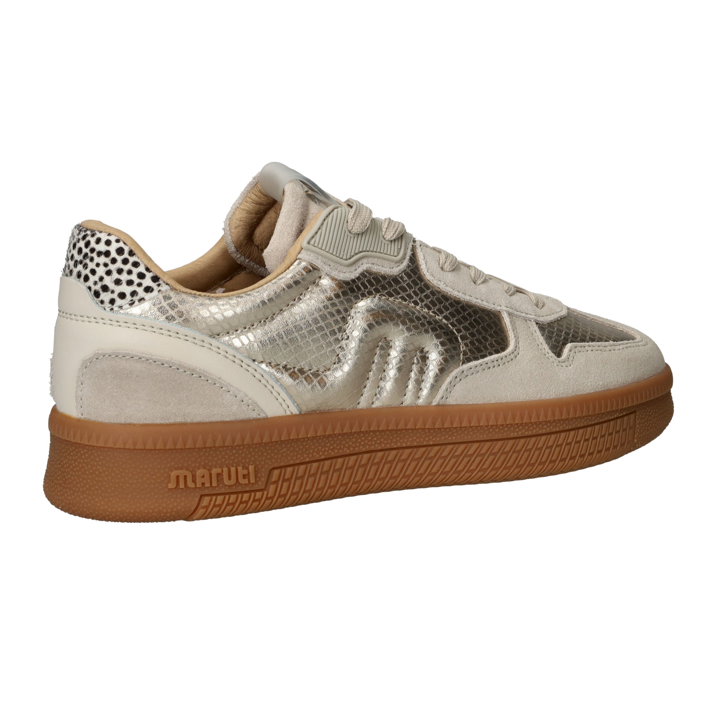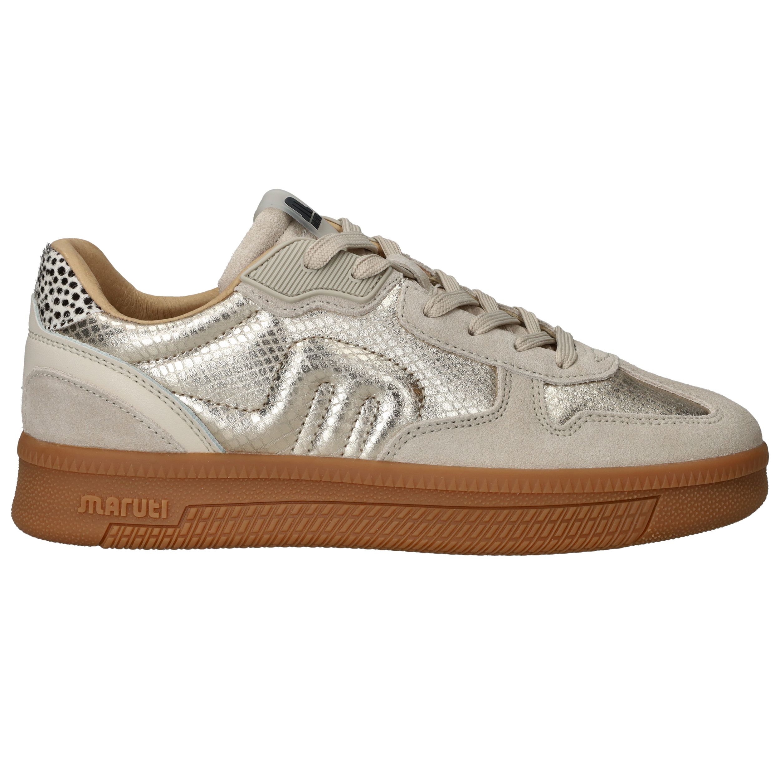 De Maruti Yale veterschoen voor dames is een stijlvolle mix van casual en chic. Het bovenwerk van suède en metallic leer zorgt voor een opvallende, luxueuze uitstraling. Dankzij de leren voering voelt de schoen prettig aan tijdens het dragen en blijf je de hele dag comfortabel lopen.