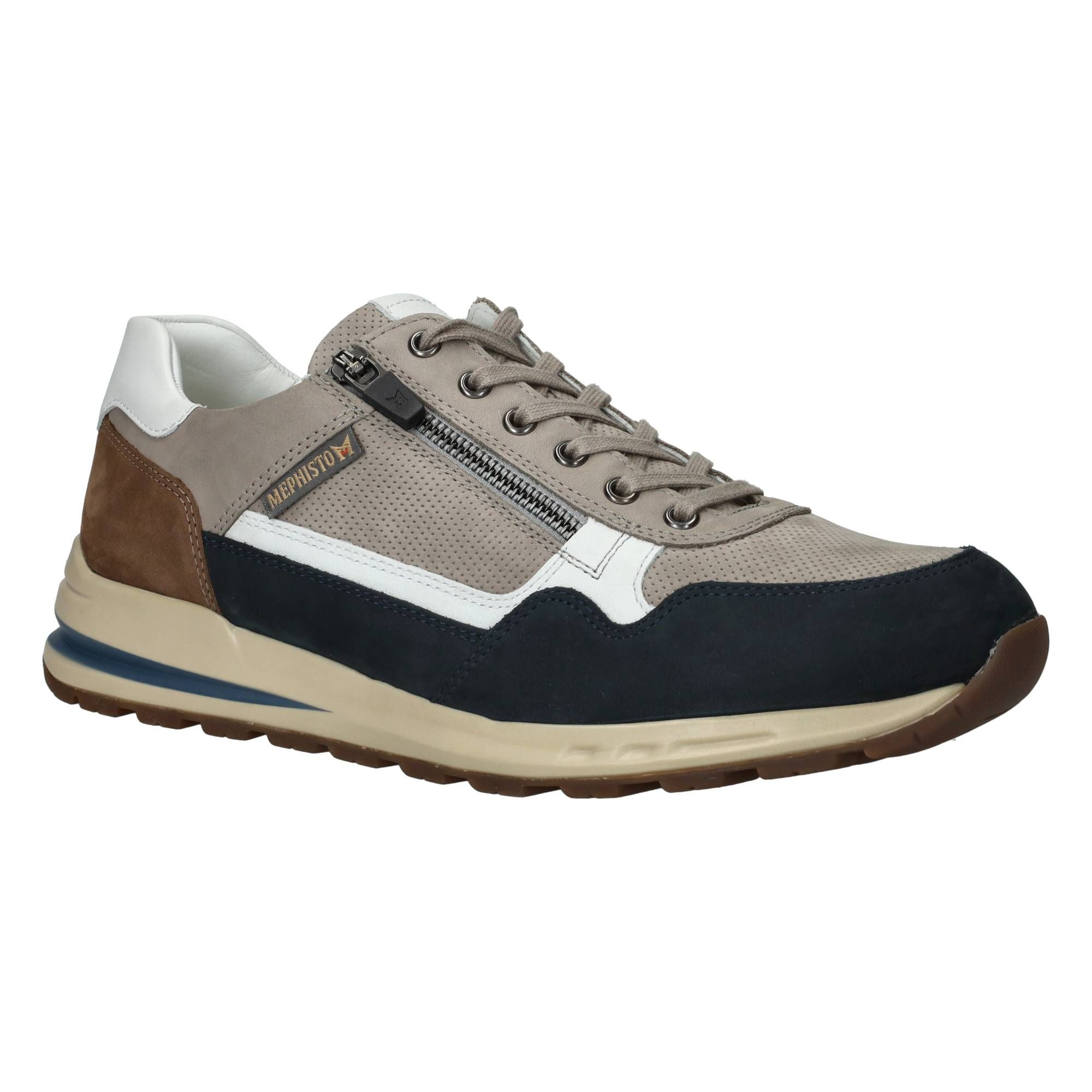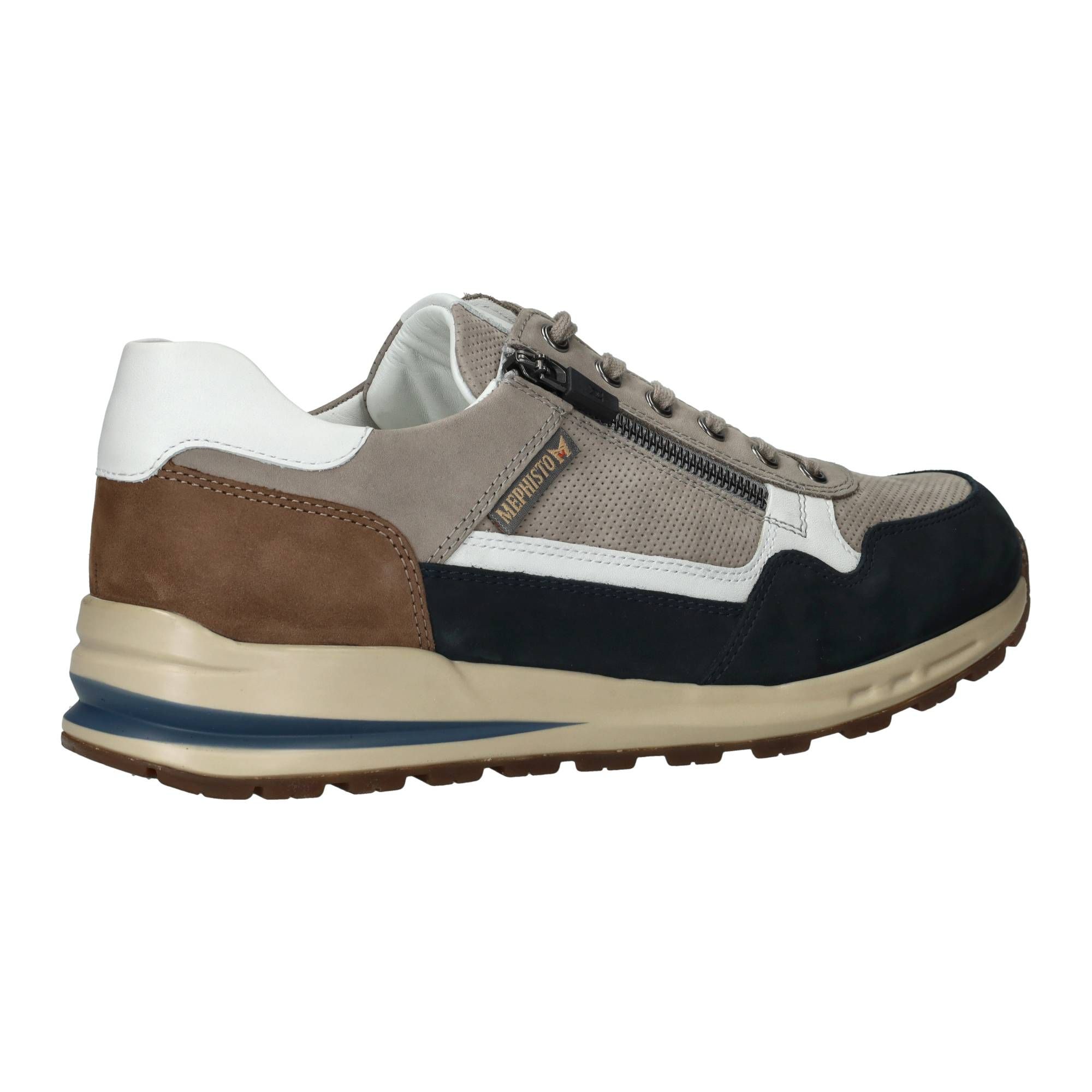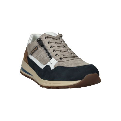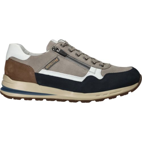 De heren sneakers van Mephisto in een warme taupekleur met subtiele blauwe accenten, zijn een fijne aanvulling op elke garderobe. Deze Mephisto Bradley combineert moeiteloos een sportieve uitstraling met klassiek comfort. Het model is gemaakt van een mix van leer en suède, wat de schoen een rijke textuur geeft. De soepele materialen zorgen voor een zachte omsluiting van de voet, terwijl de speciale zoolconstructie de druk bij elke stap gelijkmatig verdeelt. Dit betekent dat je de hele dag door kunt blijven bewegen zonder vermoeide voeten te krijgen.- De veters zorgen voor een goede aansluiting en de rits maakt het gemakkelijk om de schoen snel aan en uit te trekken, wat bijdraagt aan het dagelijkse gemak.
