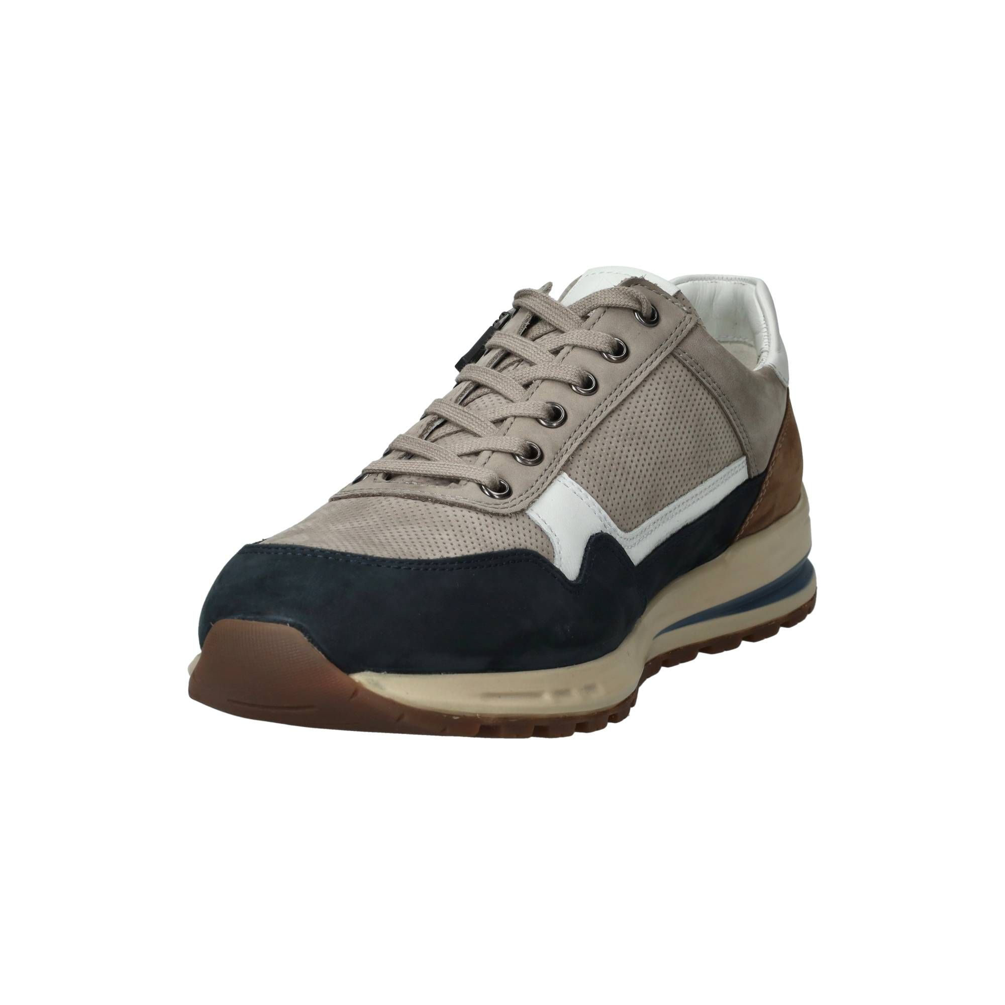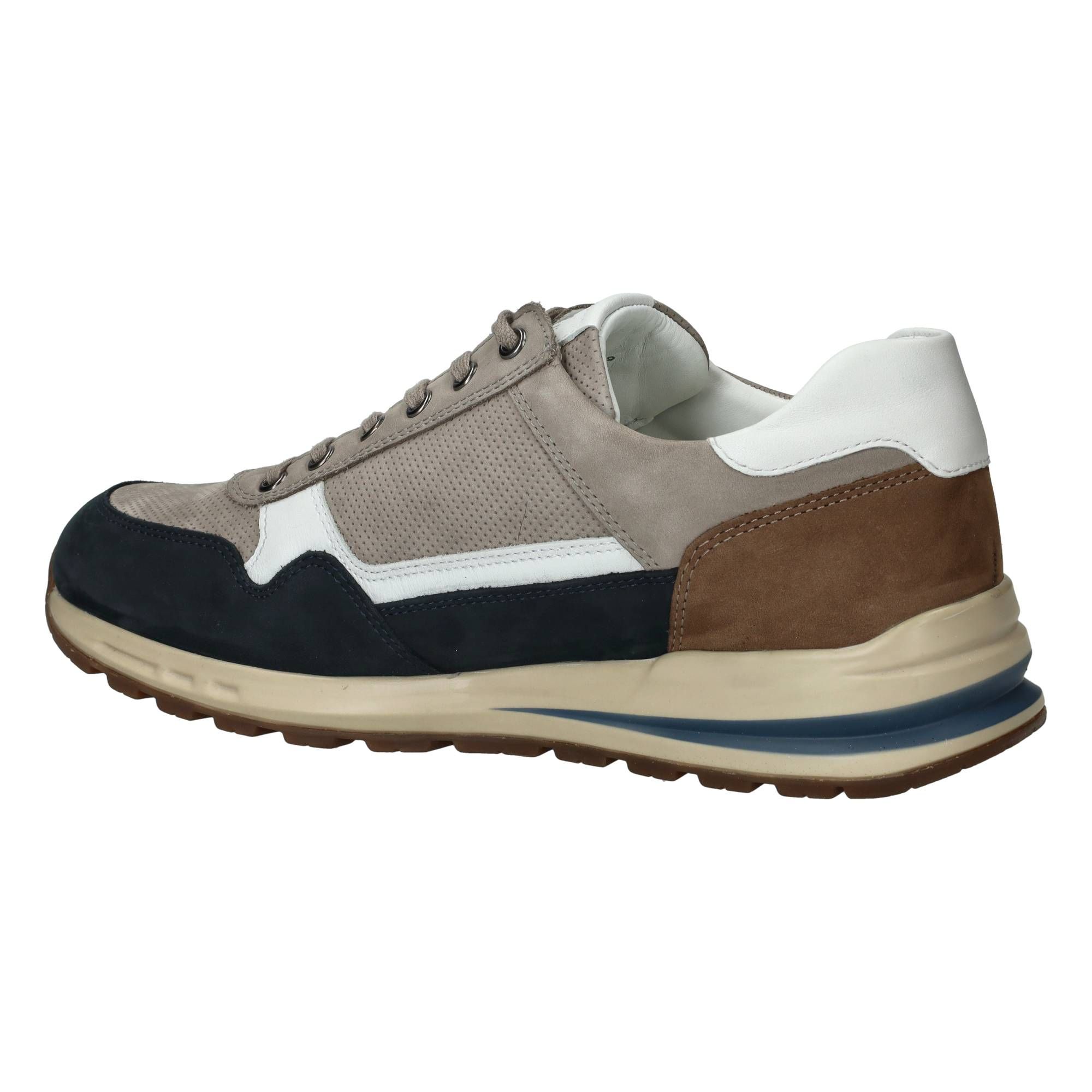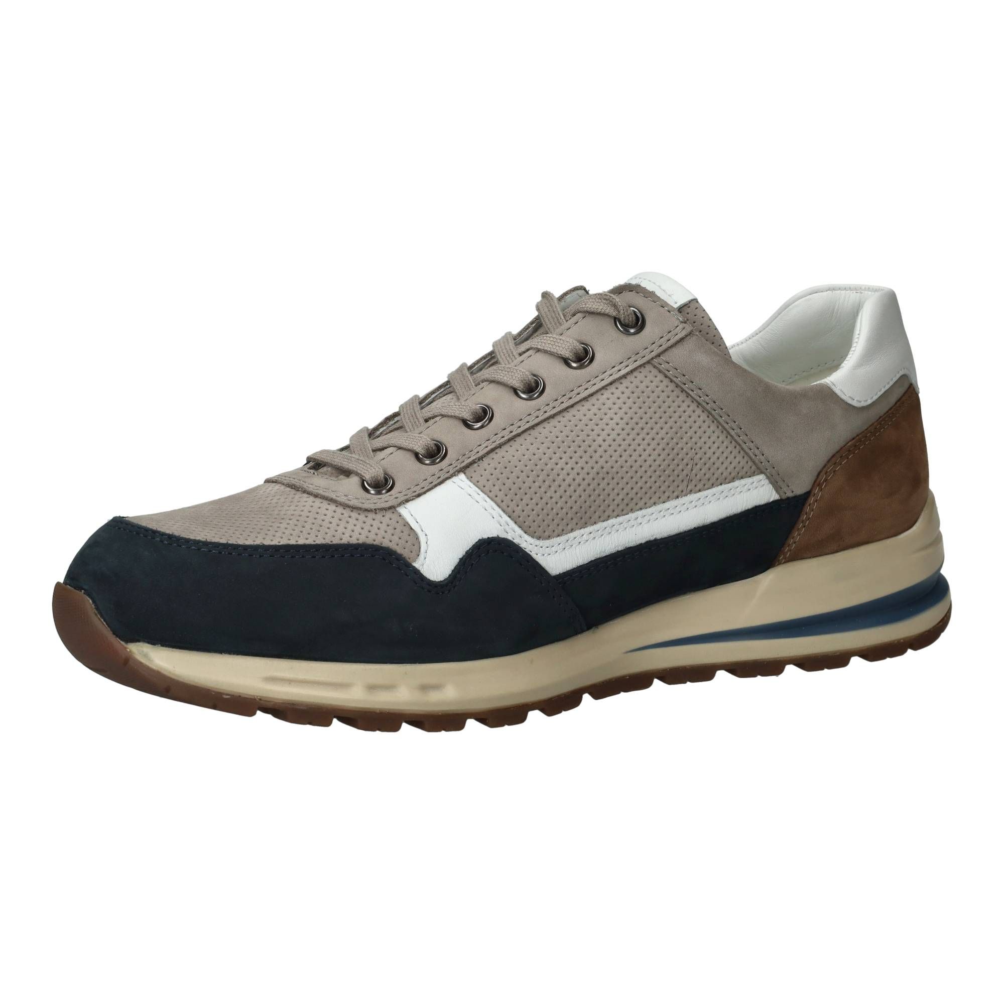 De heren sneakers van Mephisto in een warme taupekleur met subtiele blauwe accenten, zijn een fijne aanvulling op elke garderobe. Deze Mephisto Bradley combineert moeiteloos een sportieve uitstraling met klassiek comfort. Het model is gemaakt van een mix van leer en suède, wat de schoen een rijke textuur geeft. De soepele materialen zorgen voor een zachte omsluiting van de voet, terwijl de speciale zoolconstructie de druk bij elke stap gelijkmatig verdeelt. Dit betekent dat je de hele dag door kunt blijven bewegen zonder vermoeide voeten te krijgen.- De veters zorgen voor een goede aansluiting en de rits maakt het gemakkelijk om de schoen snel aan en uit te trekken, wat bijdraagt aan het dagelijkse gemak.
