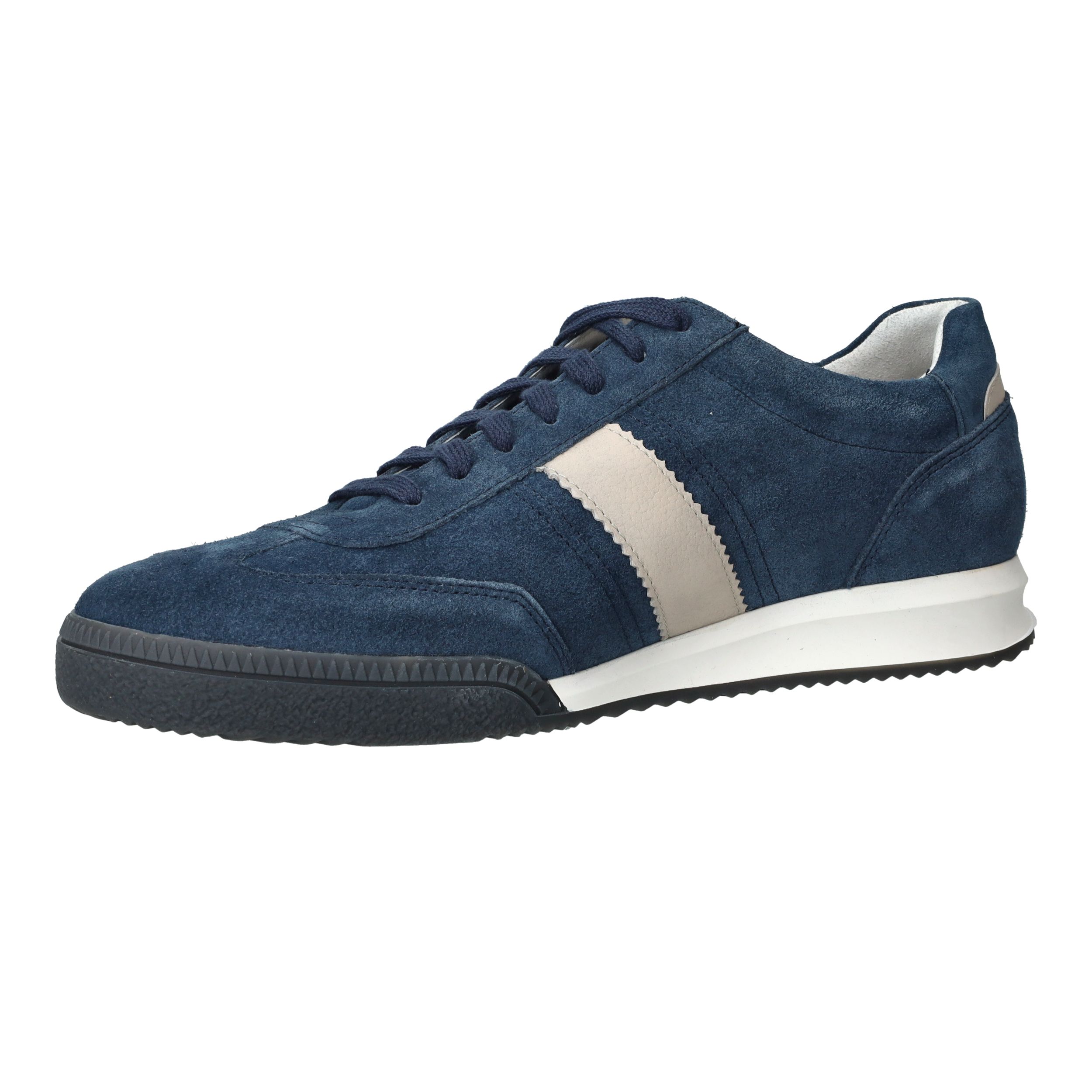 - De sneakers zijn gemaakt van suède.