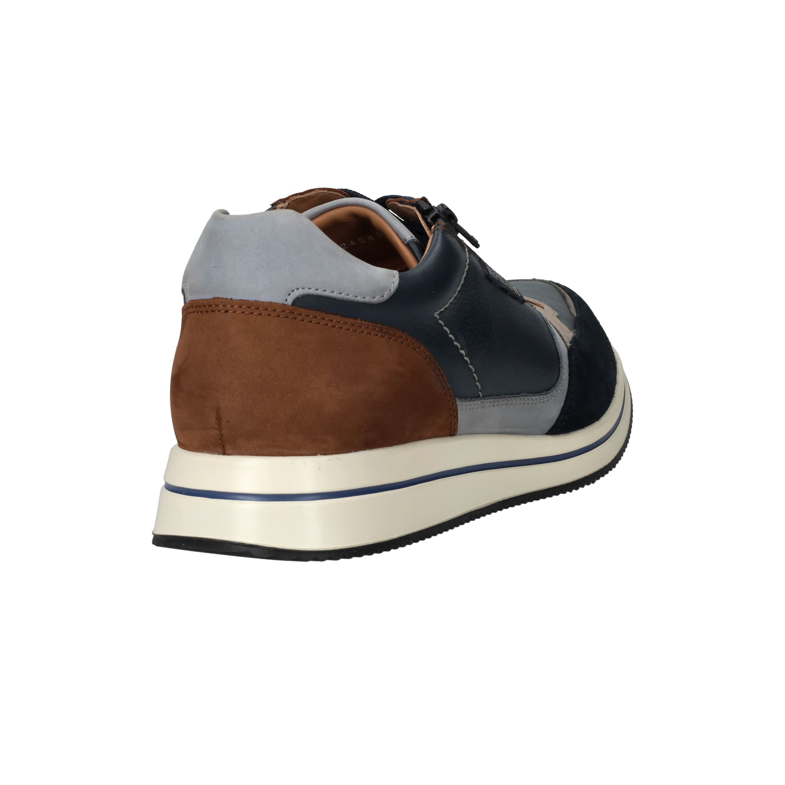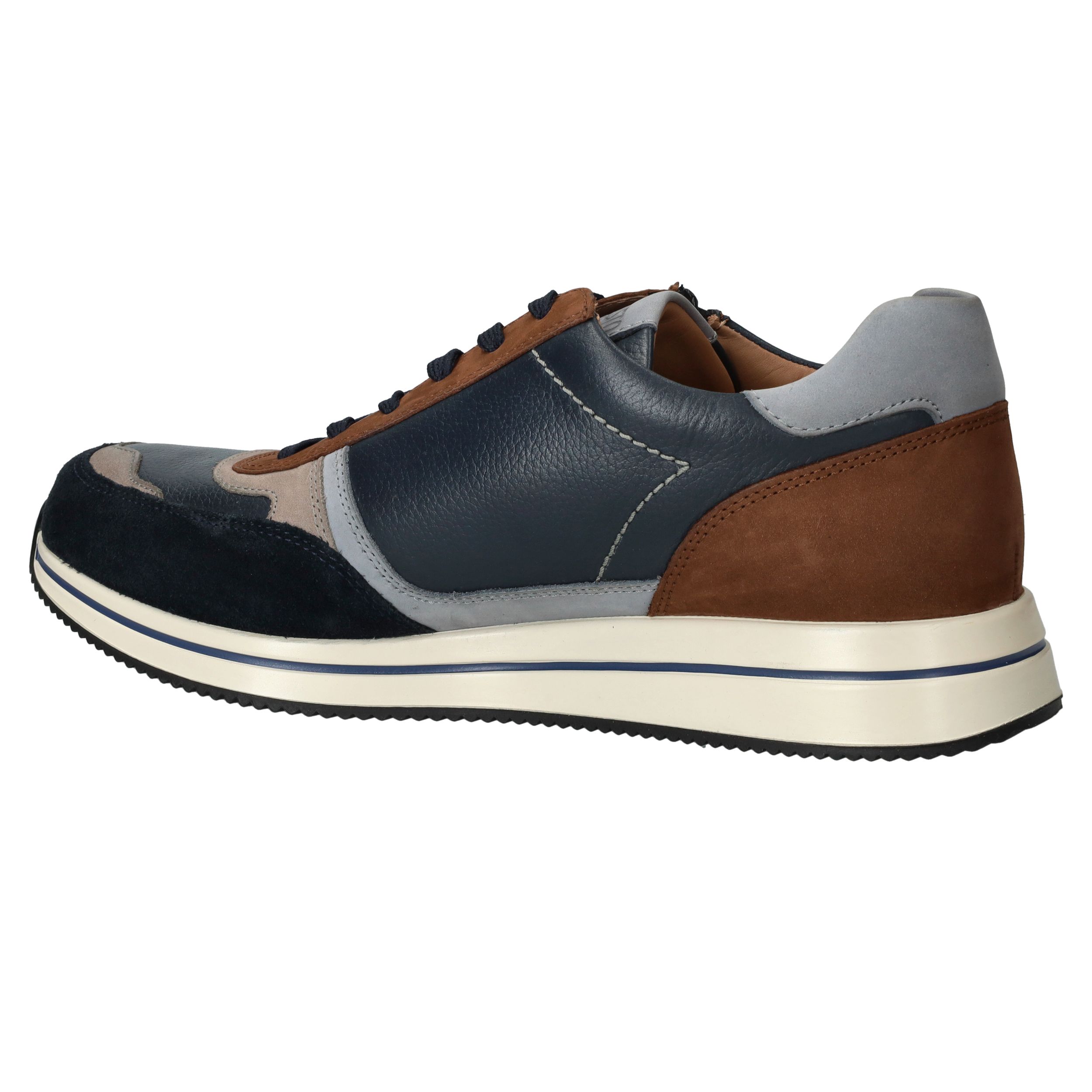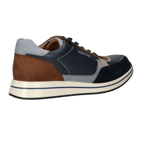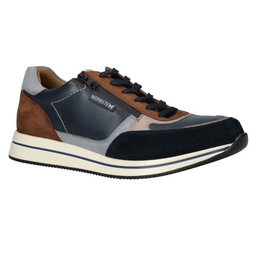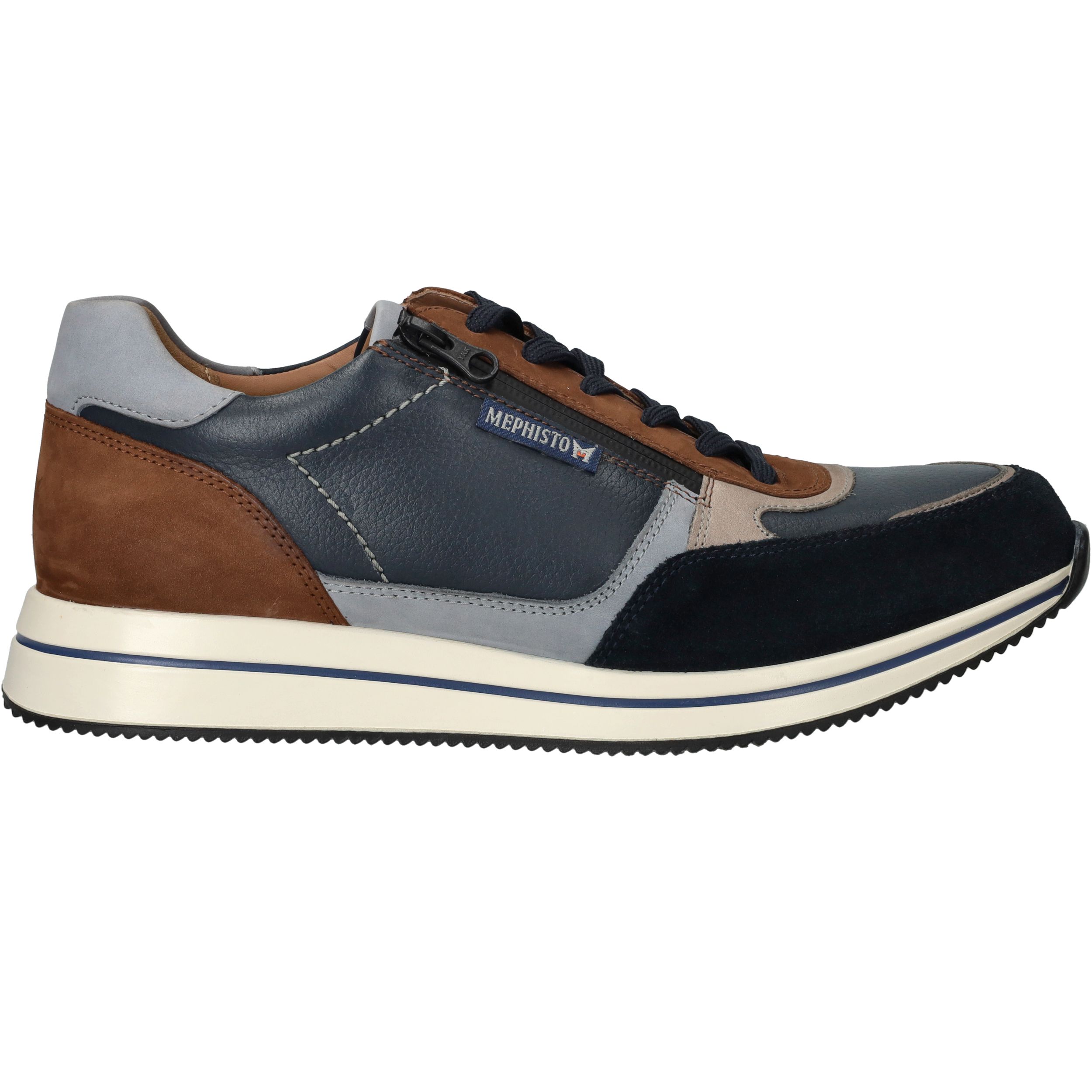Sportieve Mephisto Gilford sneaker voor heren. De blauwe sneaker heeft bruine en grijze details en heeft een veter- en ritssluiting voor een makkelijke instap.