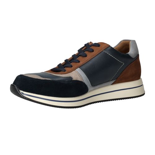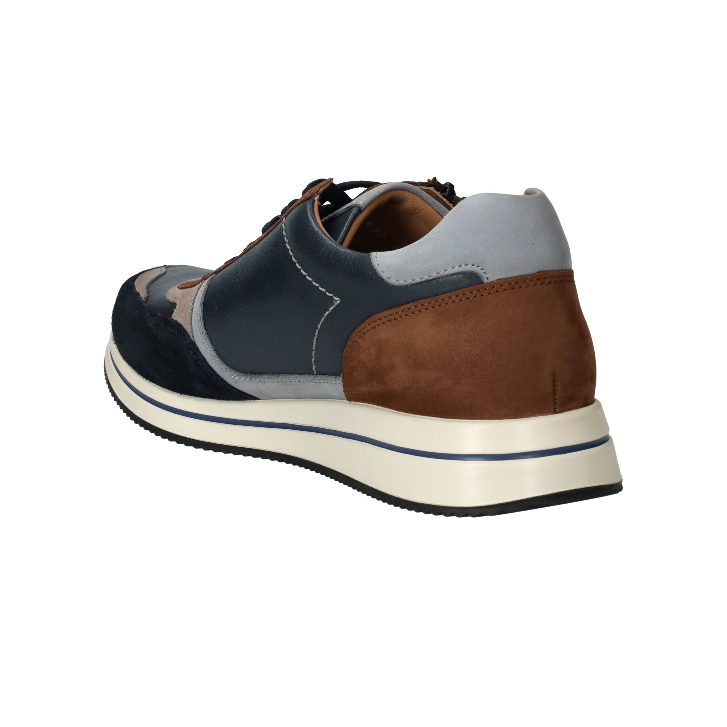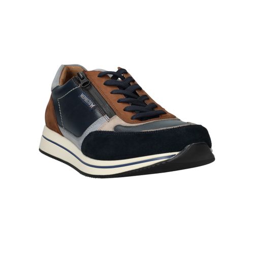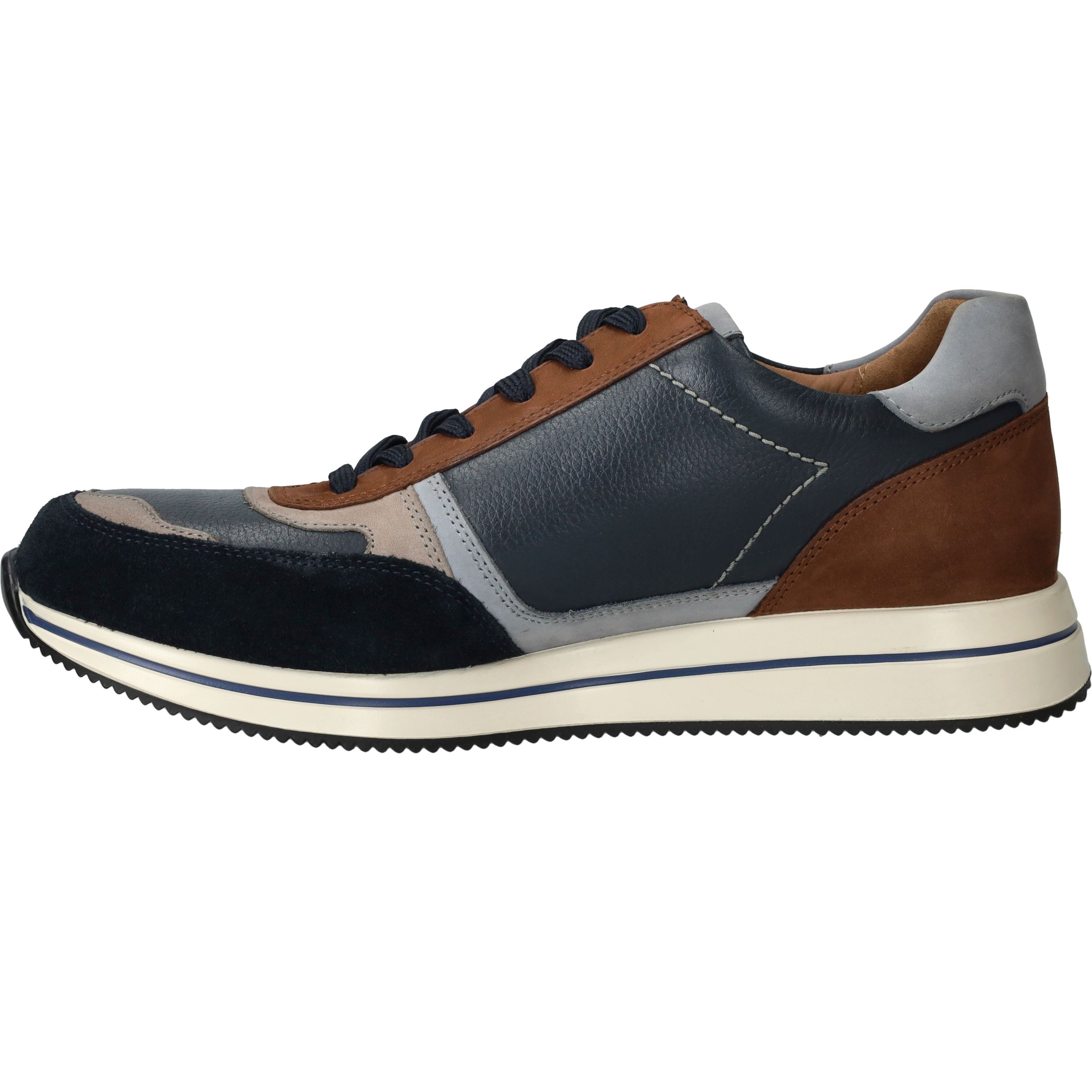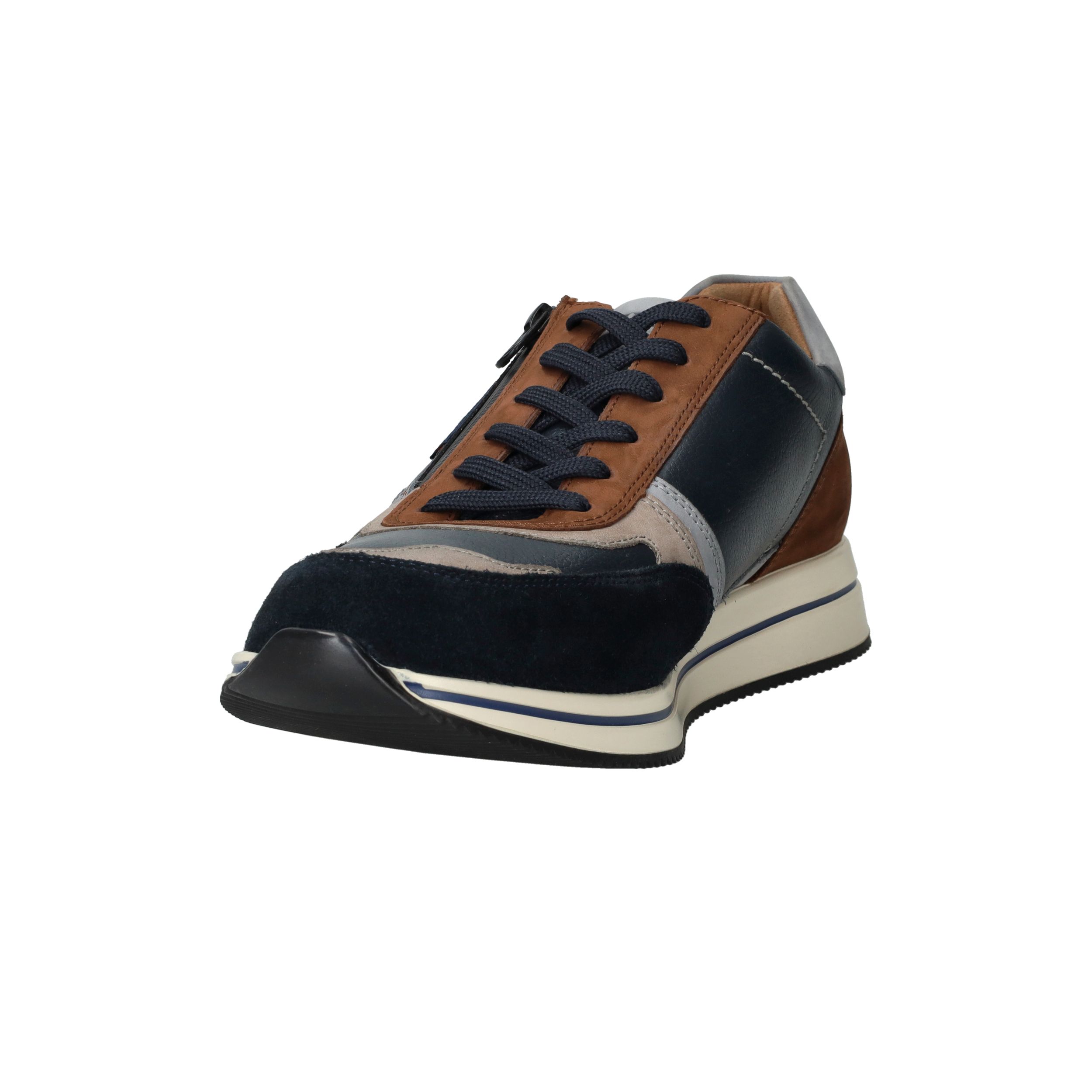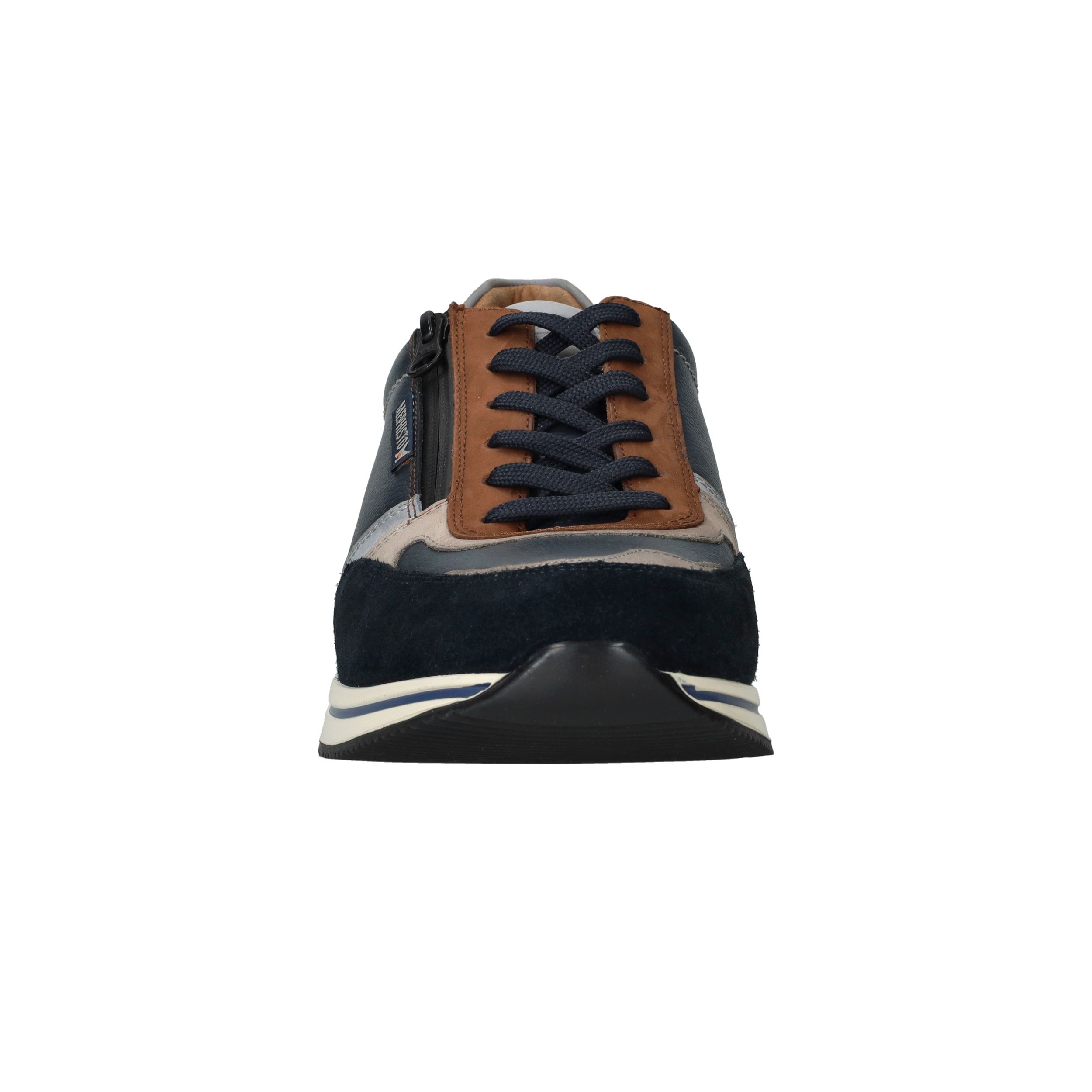 Sportieve Mephisto Gilford sneaker voor heren. De blauwe sneaker heeft bruine en grijze details en heeft een veter- en ritssluiting voor een makkelijke instap.