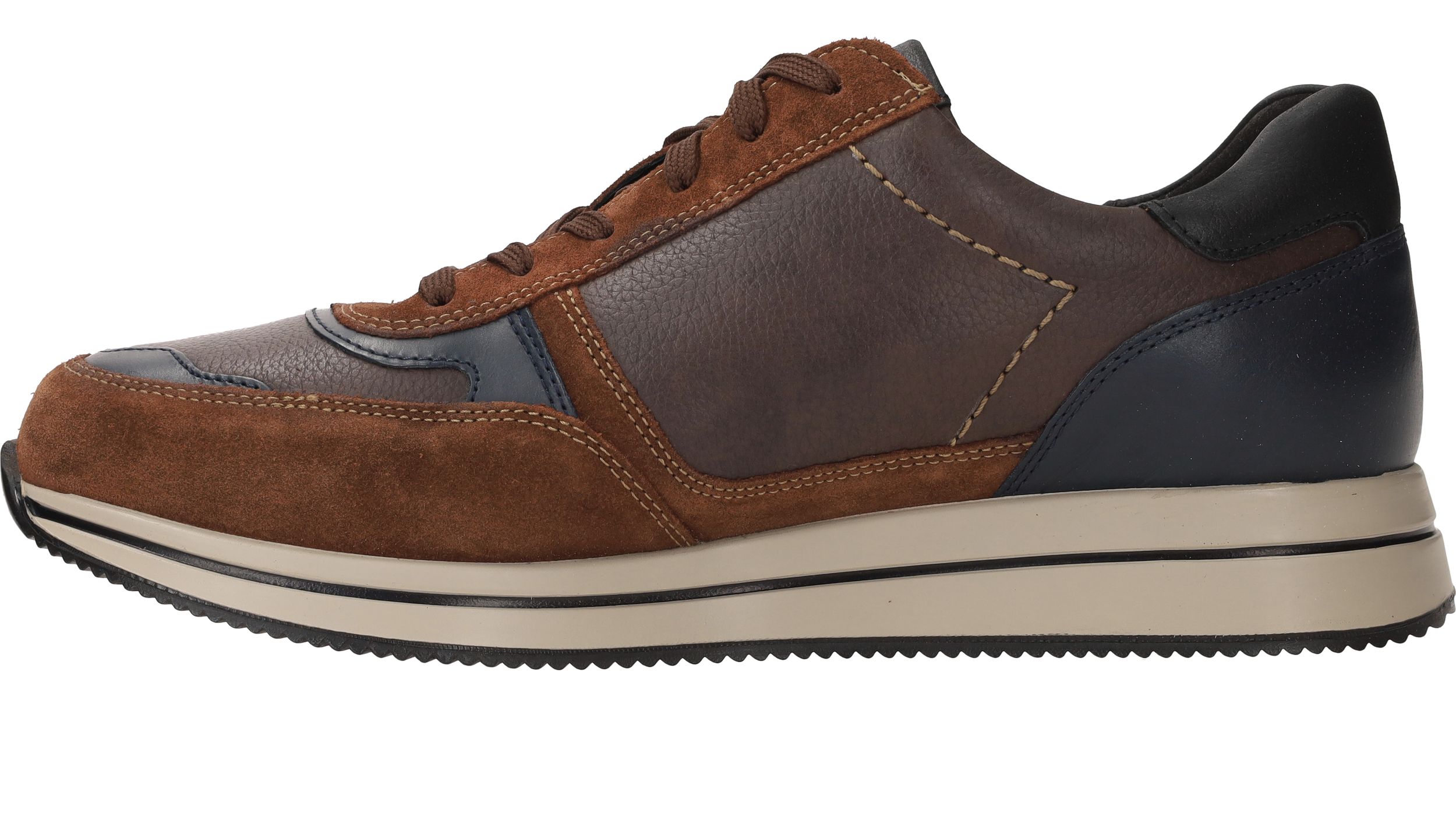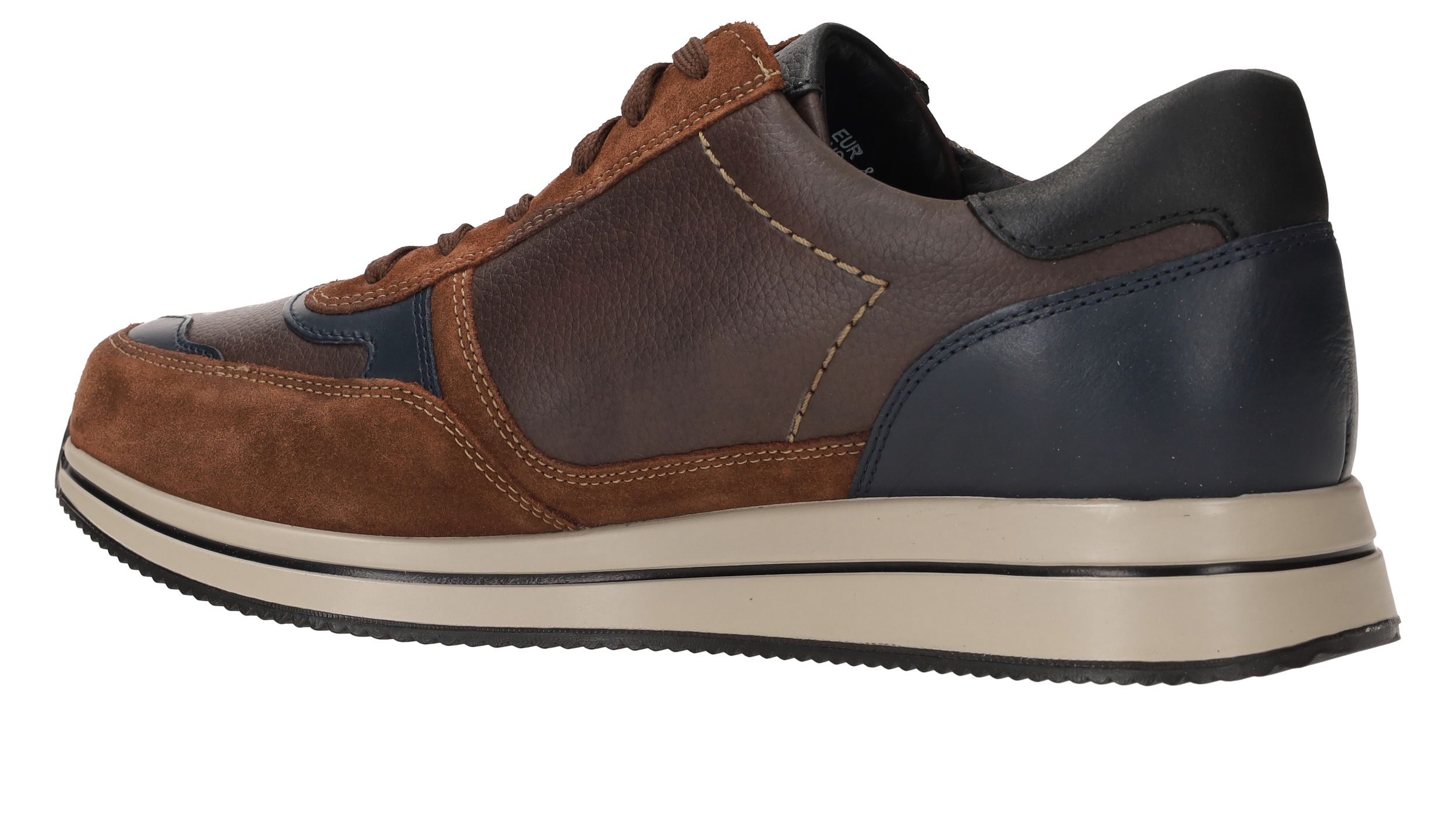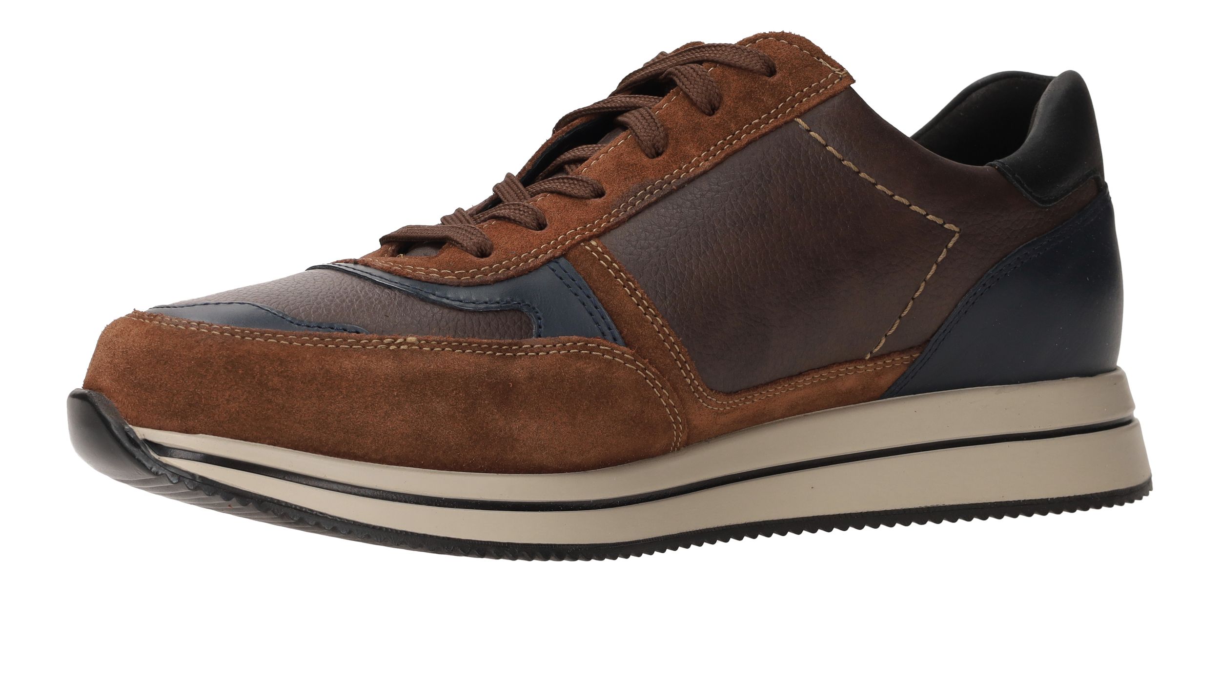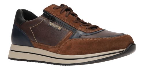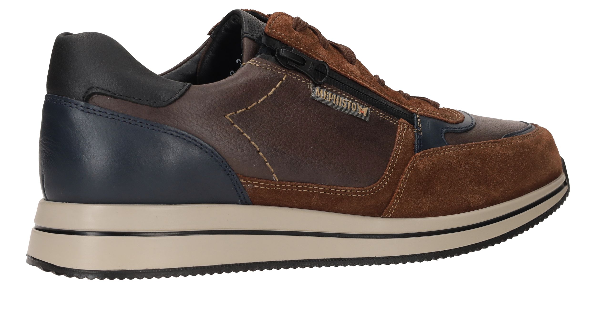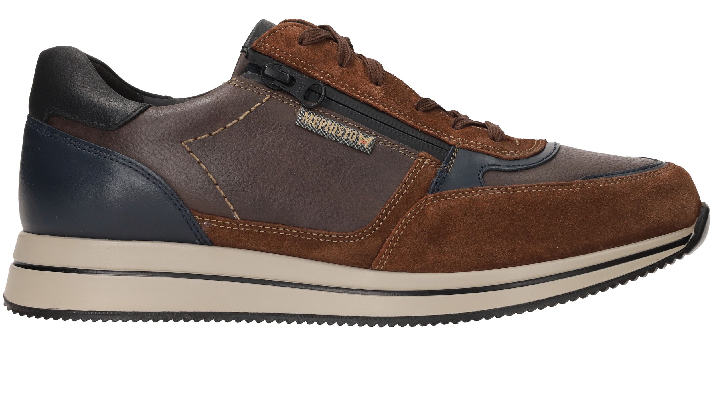 Sportieve Mephisto Gilford sneaker in mooie bruintinten. De sneaker is helemaal gemaakt van leer en je stapt er makkelijk in door de veter- en ritssluiting.