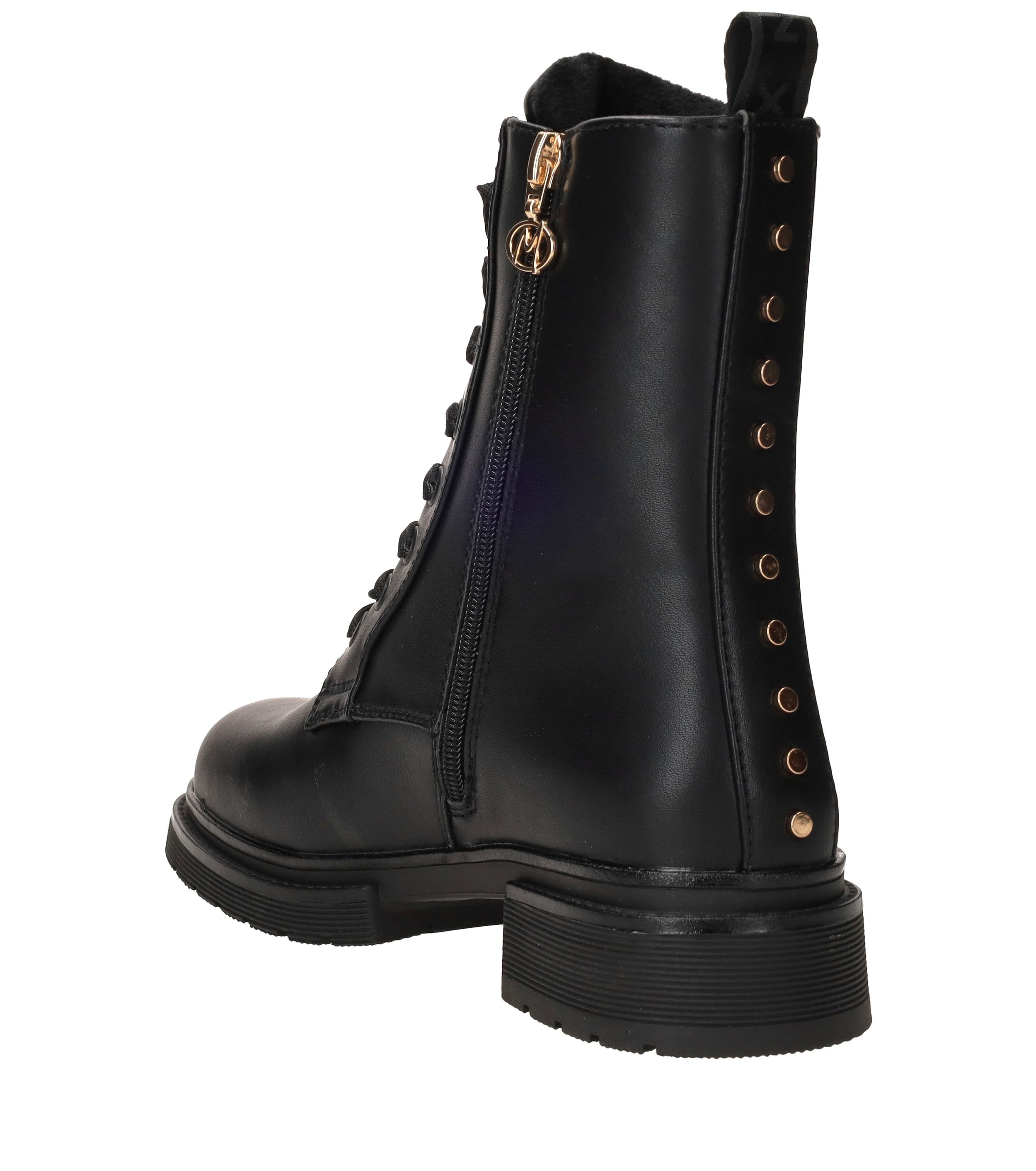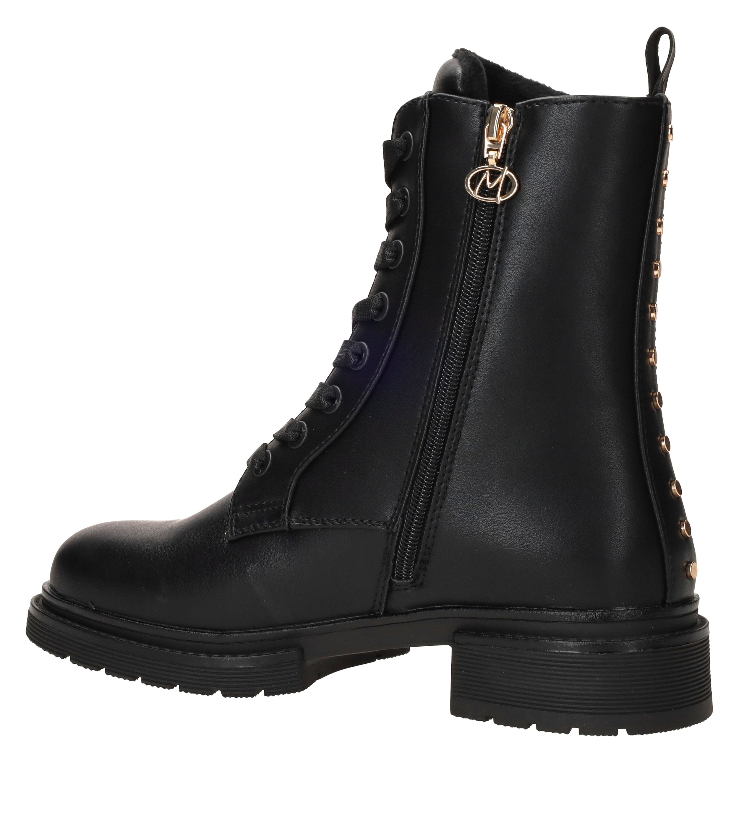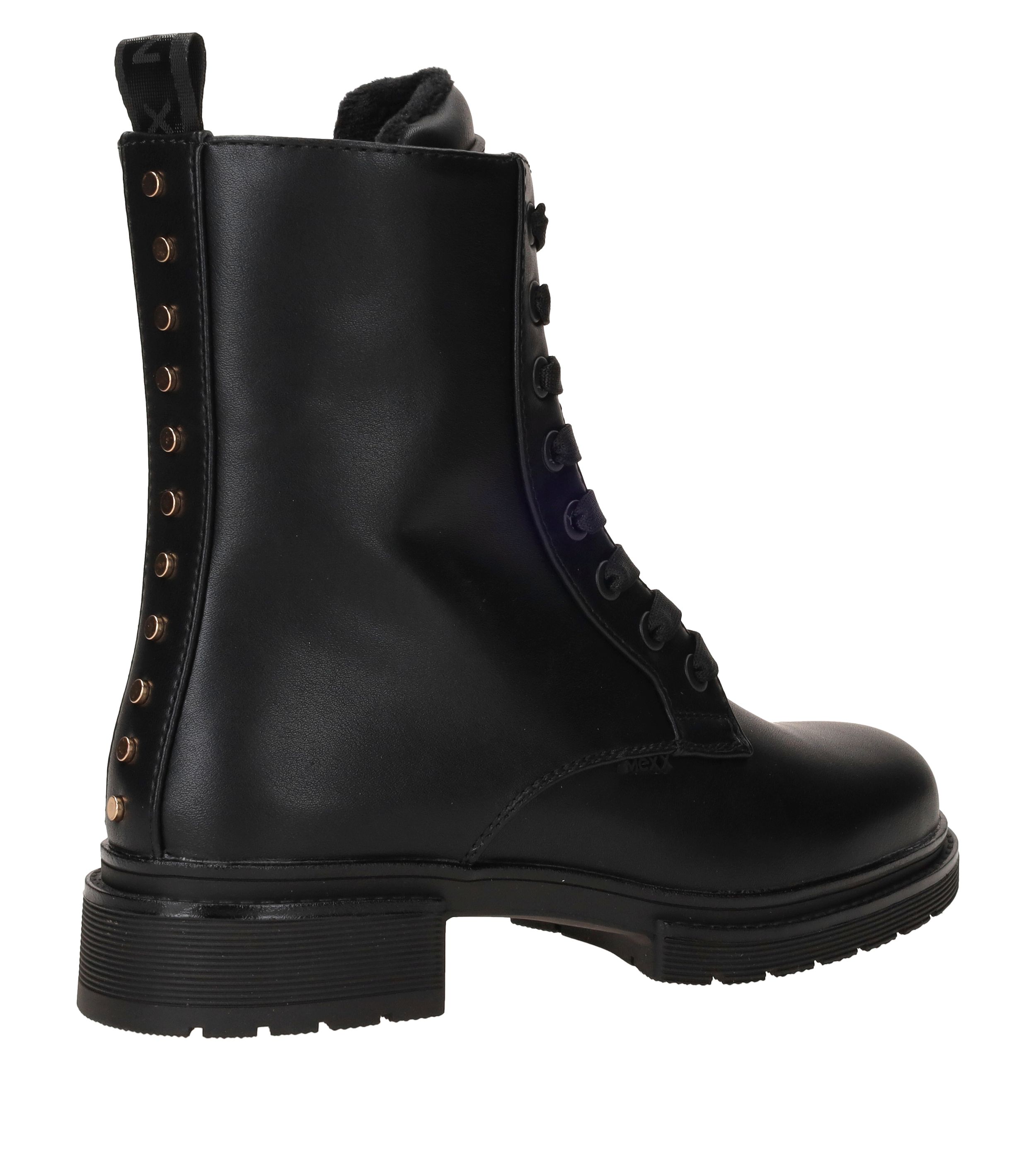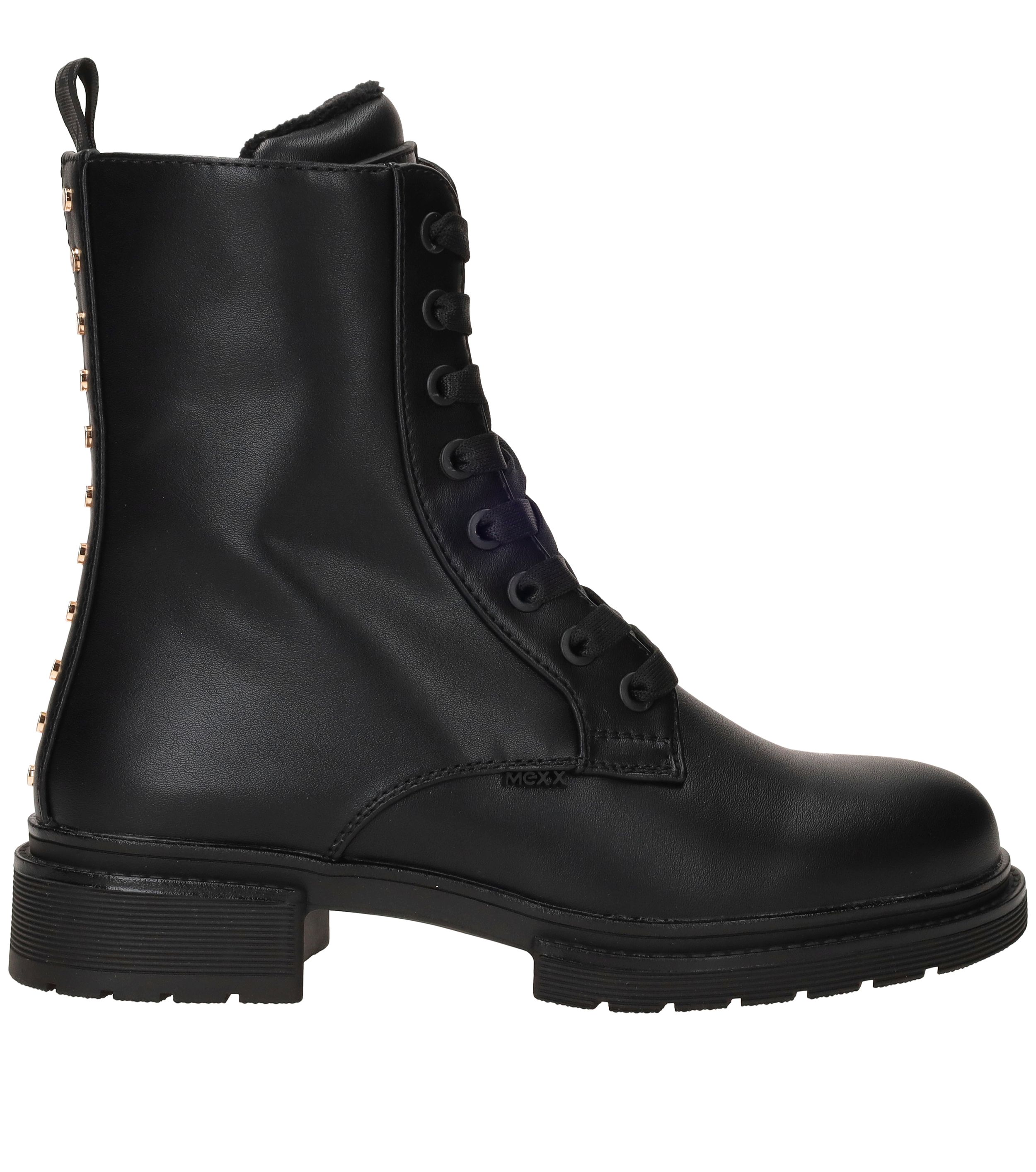 Deze zwarte Mexx Holea veterboot heeft gave gouden studs aan de achterkant.