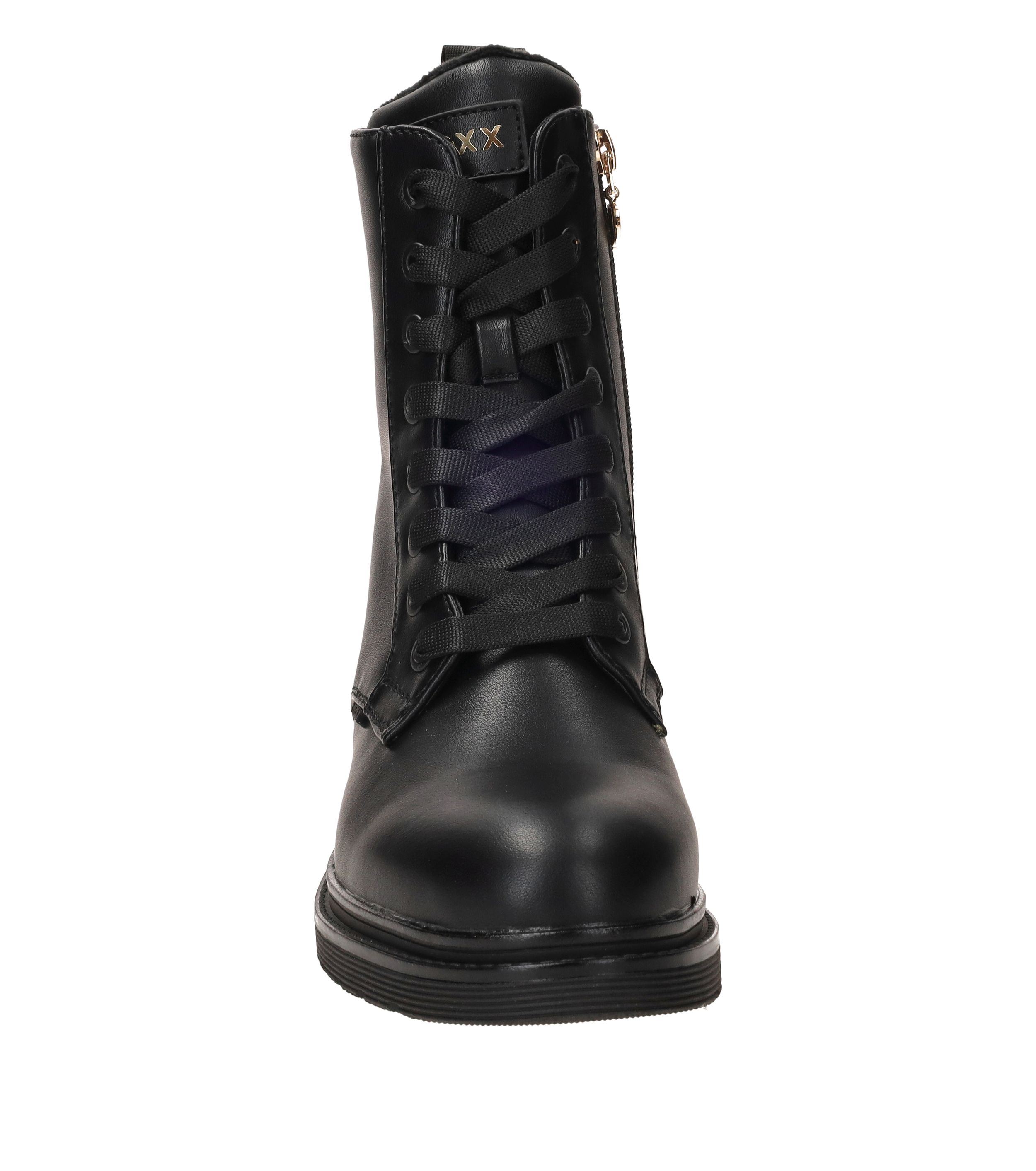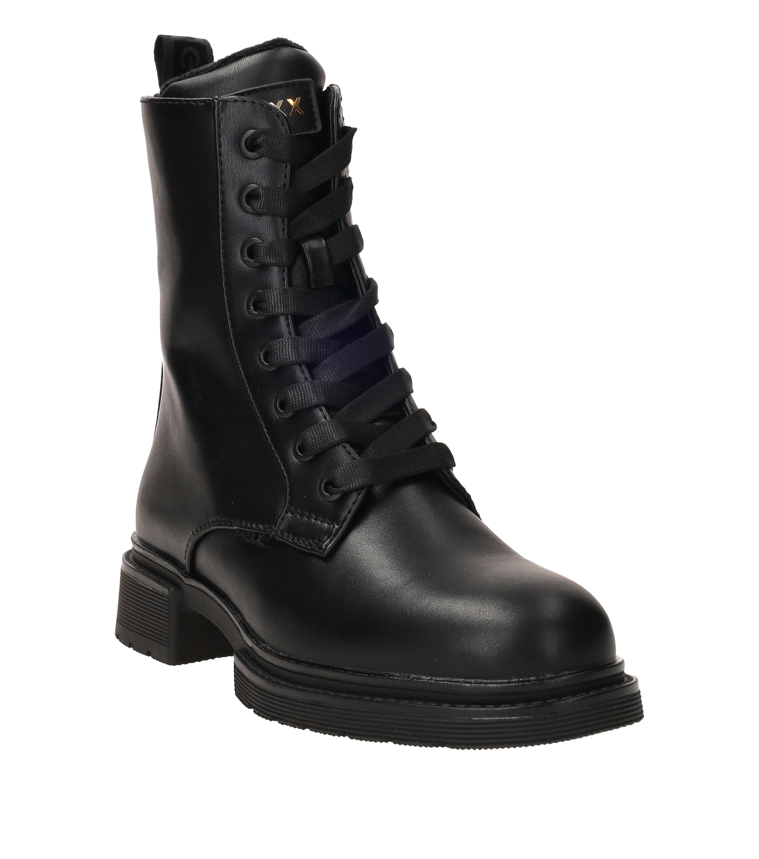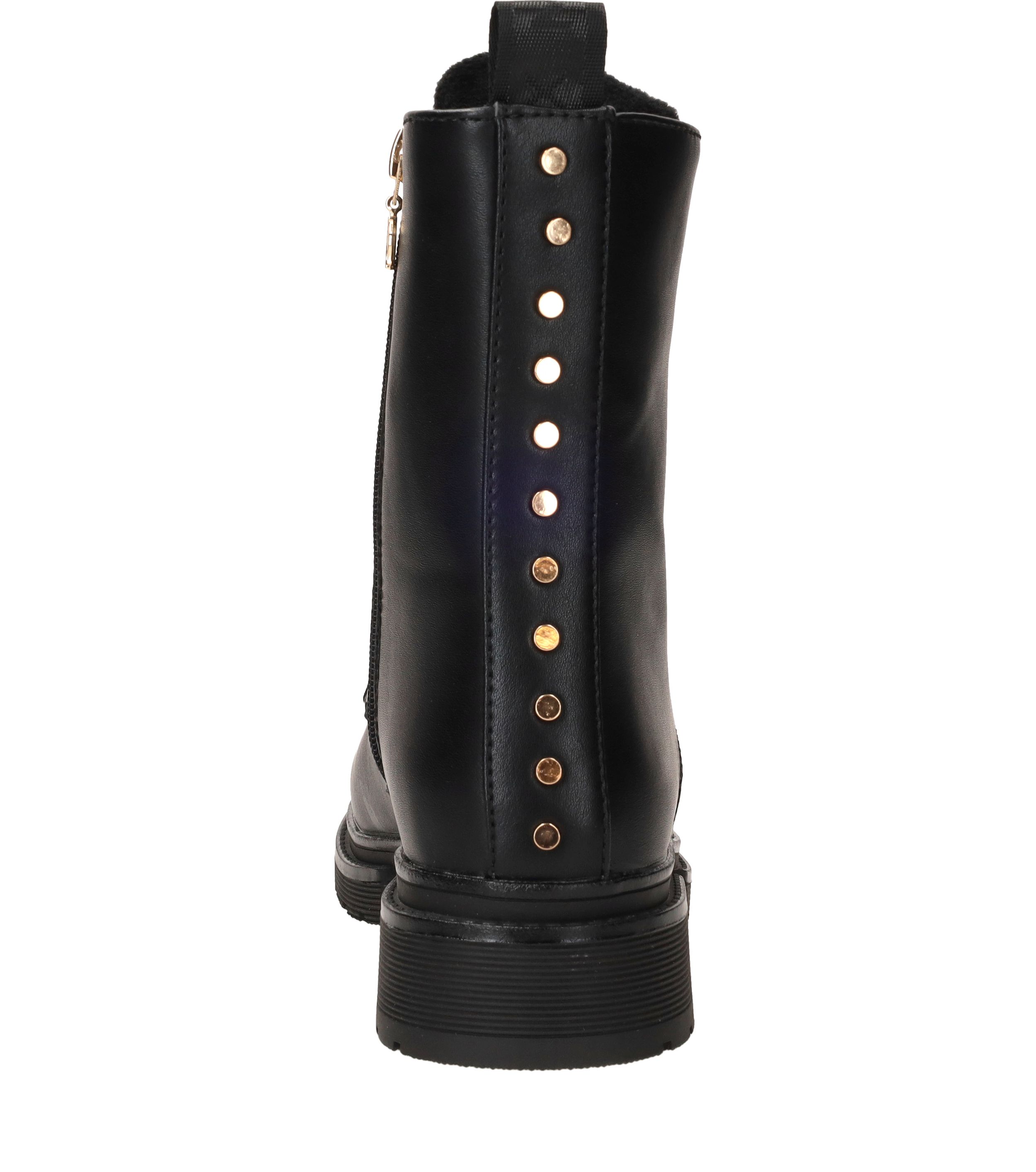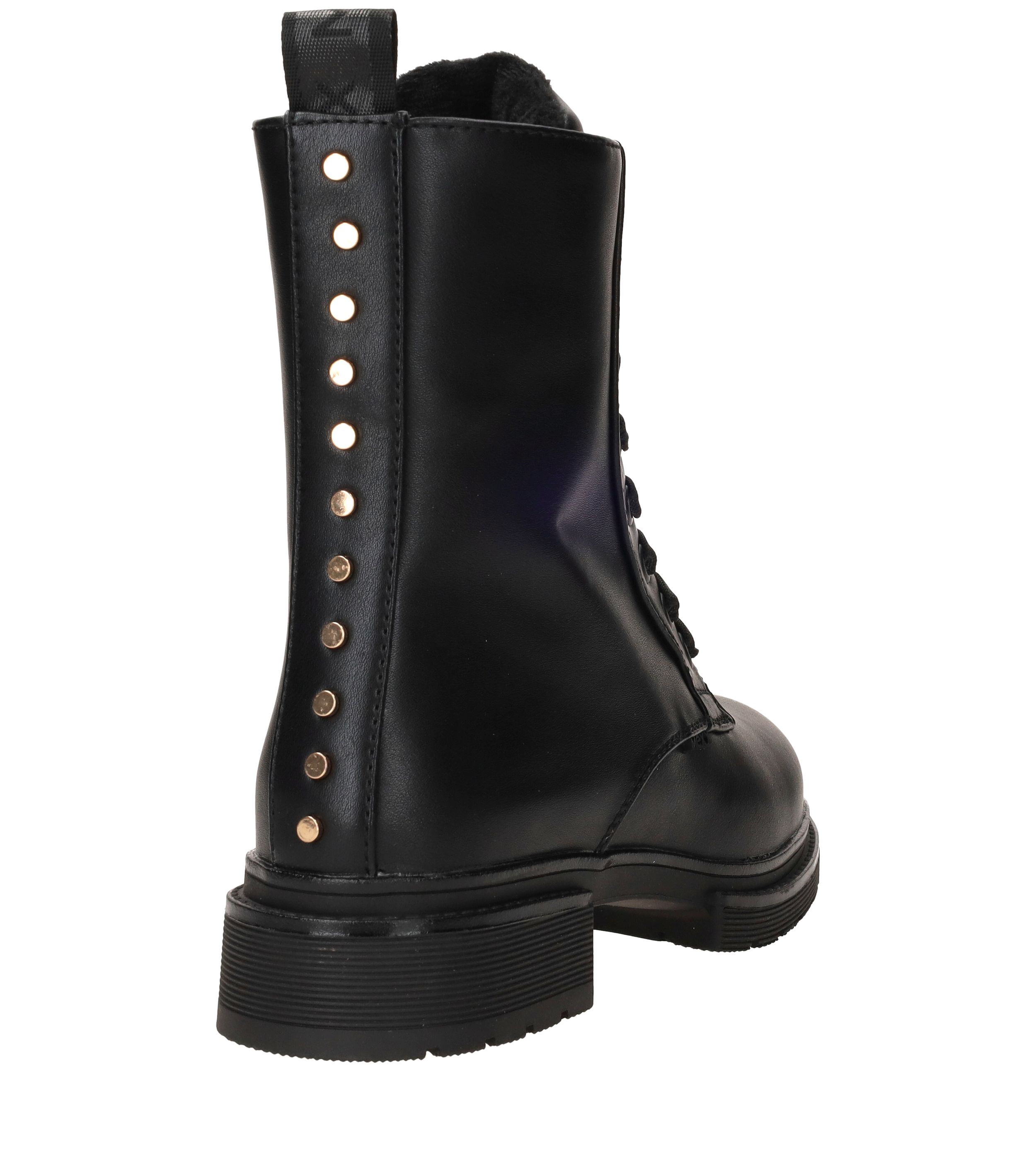 Deze zwarte Mexx Holea veterboot heeft gave gouden studs aan de achterkant.
