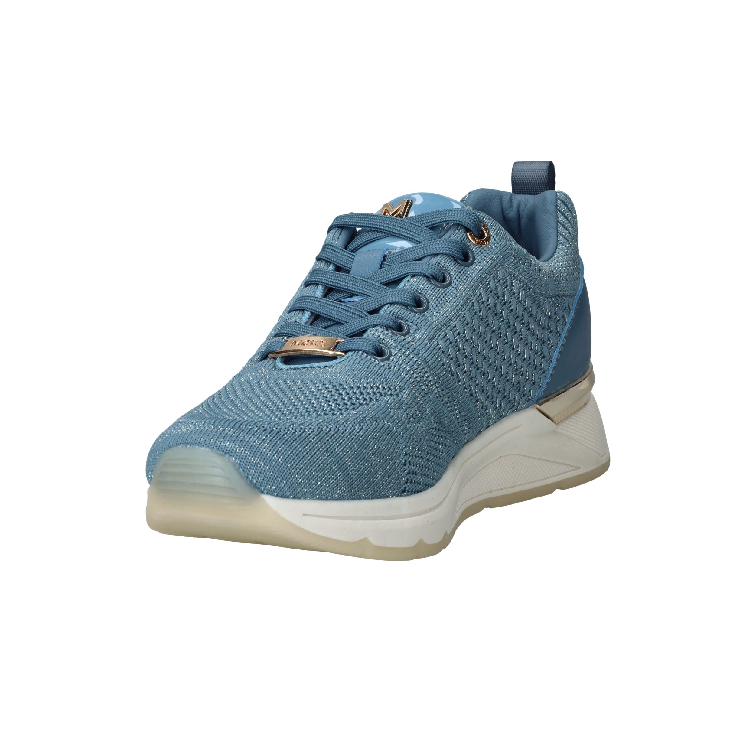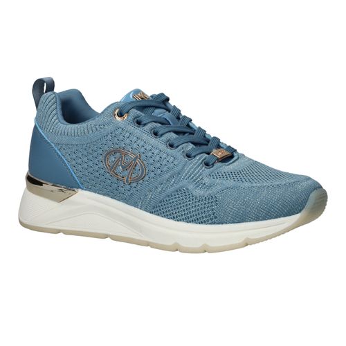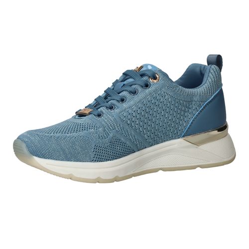 Sportieve Mexx Rox sneaker voor dames in het jeans blauw met subtiele glitter.