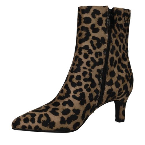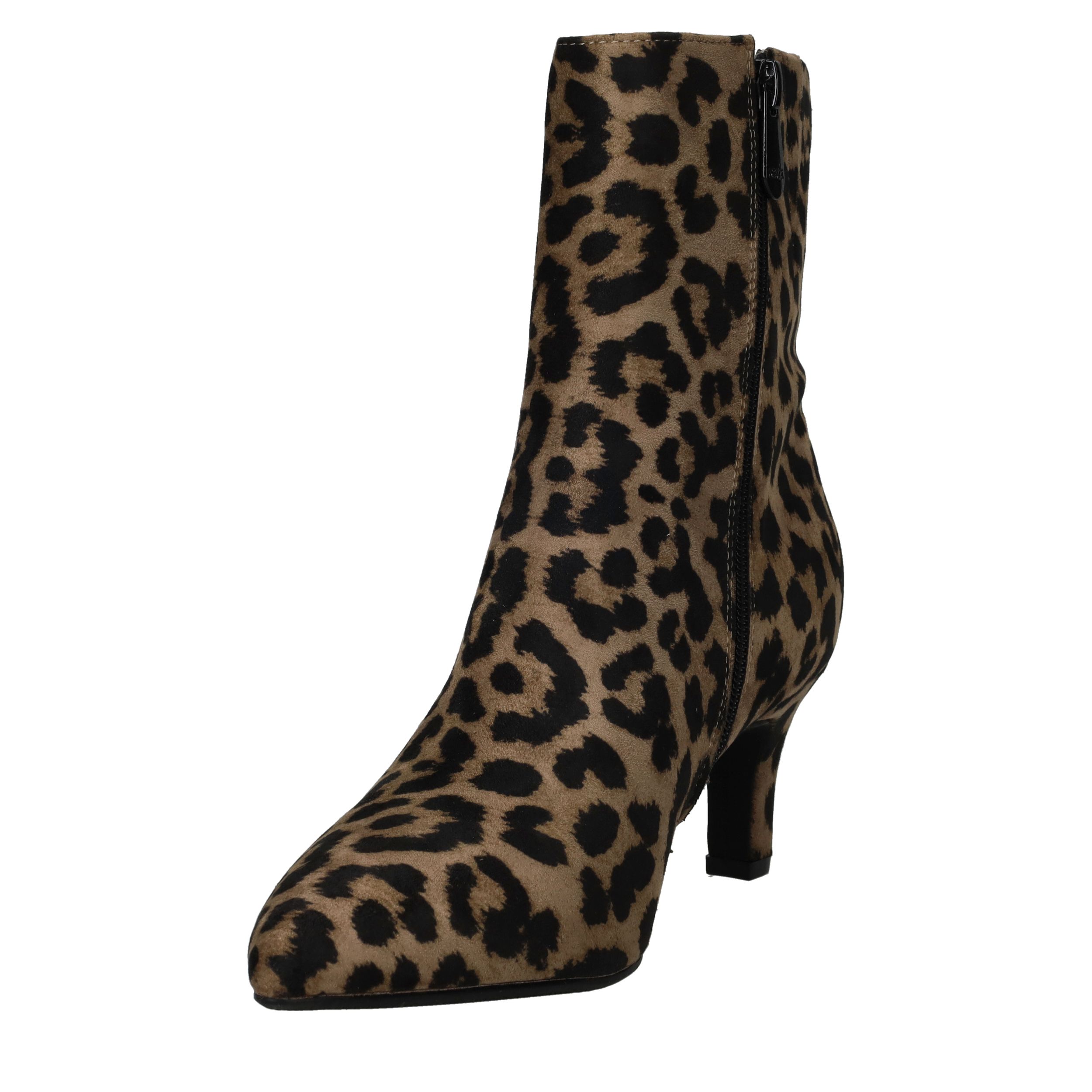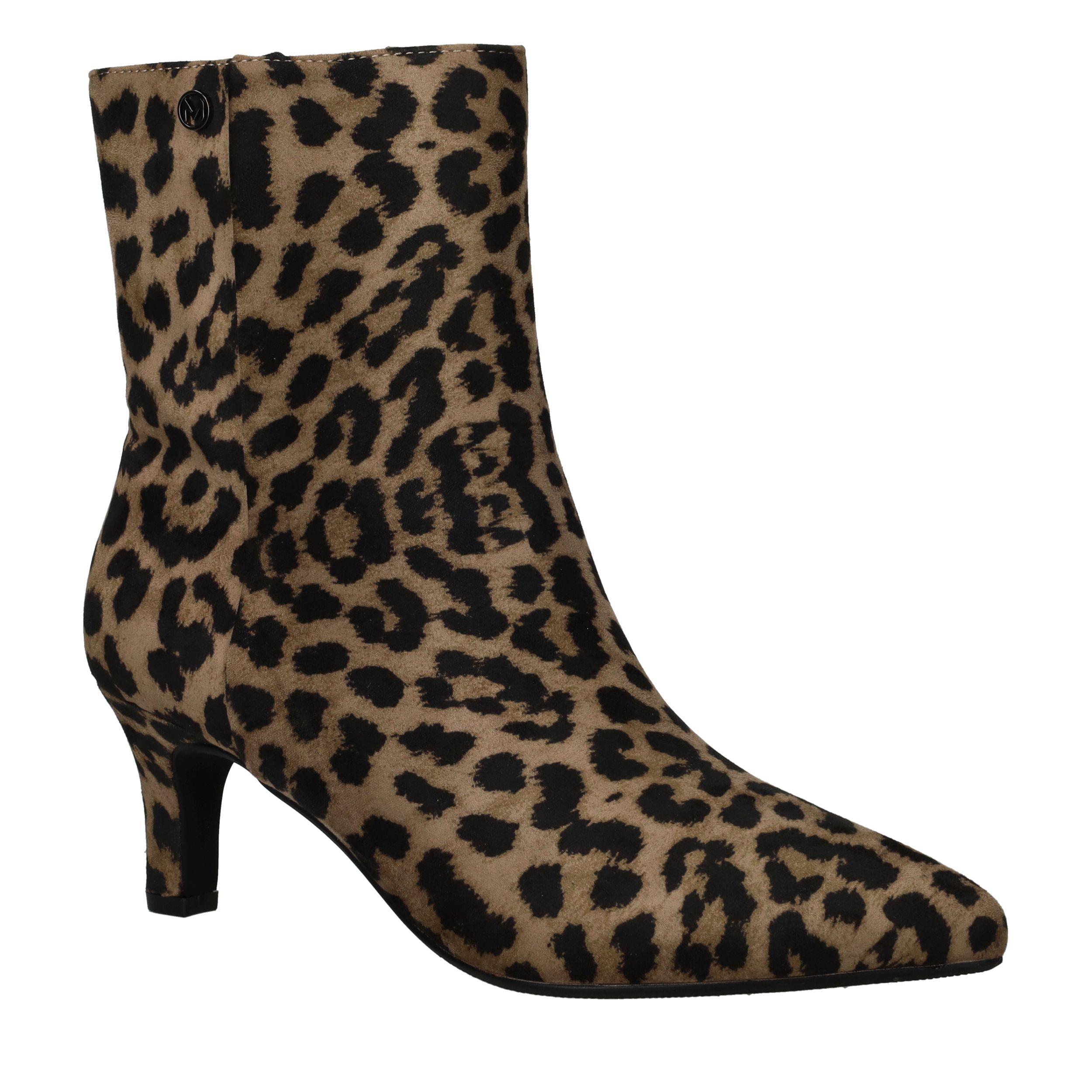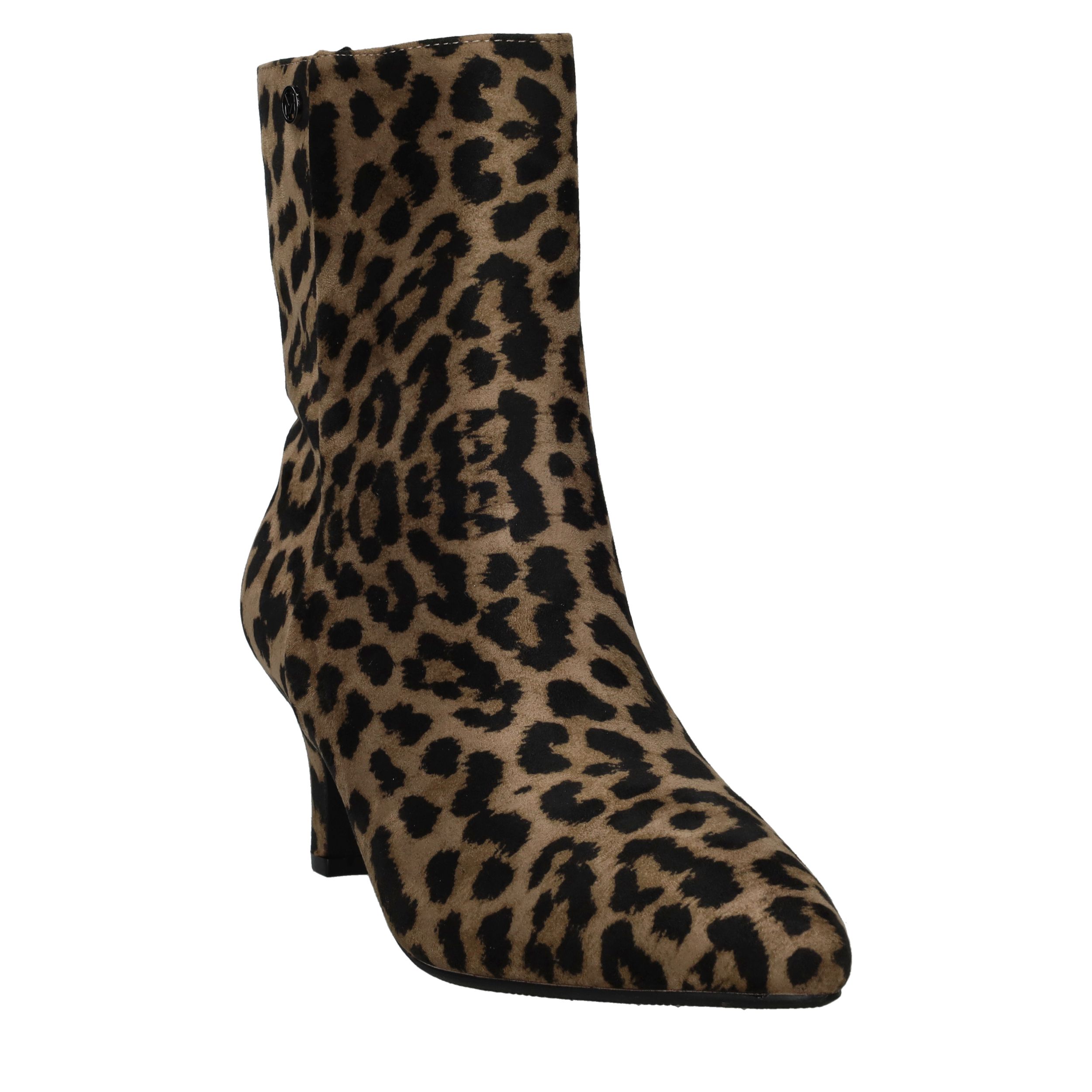 De Mexx Sodar Regal enkellaarsjes brengen een vleugje lef en elegantie in je garderobe. Deze dames laarzen zijn uitgevoerd in kunstsuède met een opvallende panterprint en een slanke hak, waardoor ze ideaal zijn voor een modieuze en krachtige look. De comfortabele pasvorm en stevige zool zorgen ervoor dat je ze moeiteloos de hele dag kunt dragen.