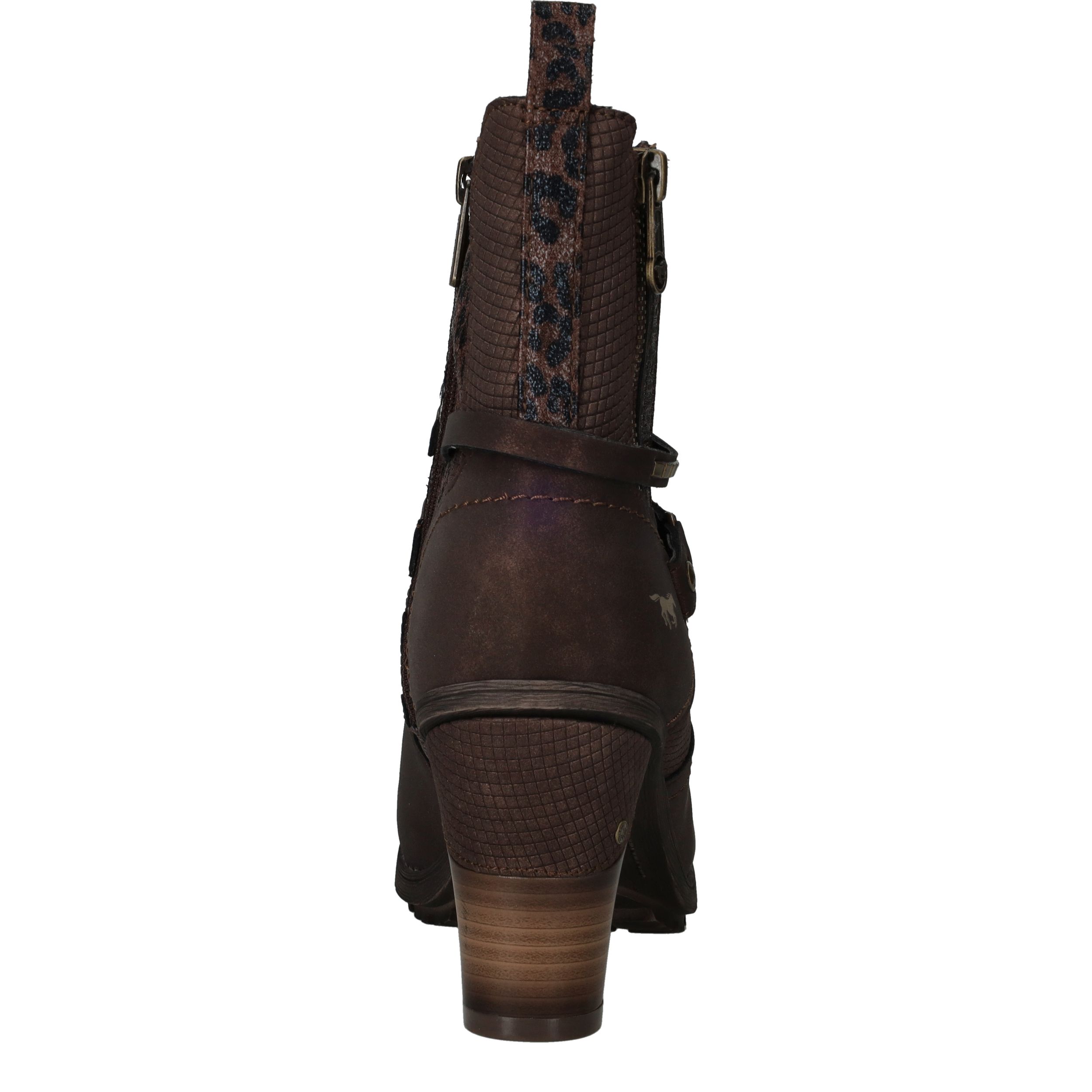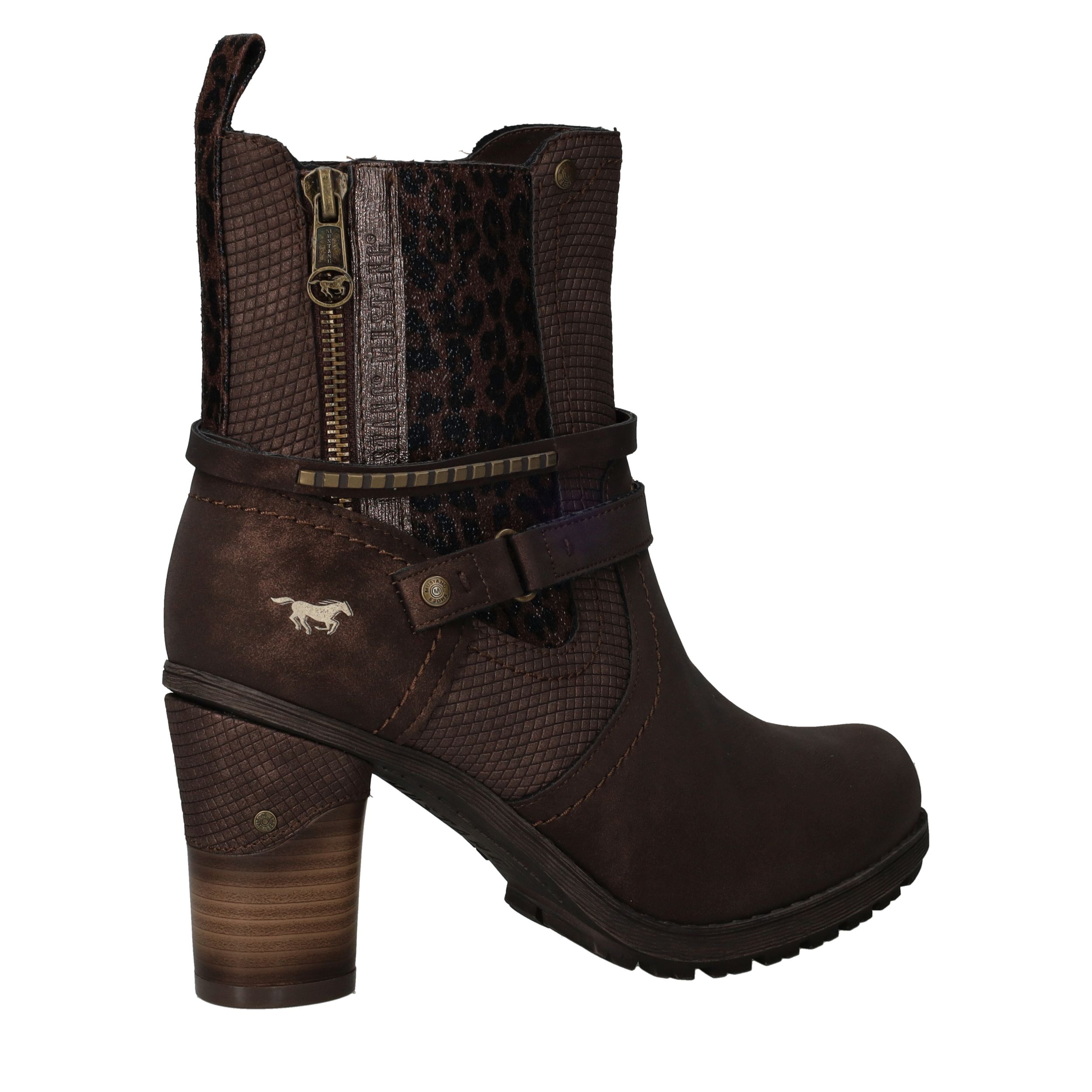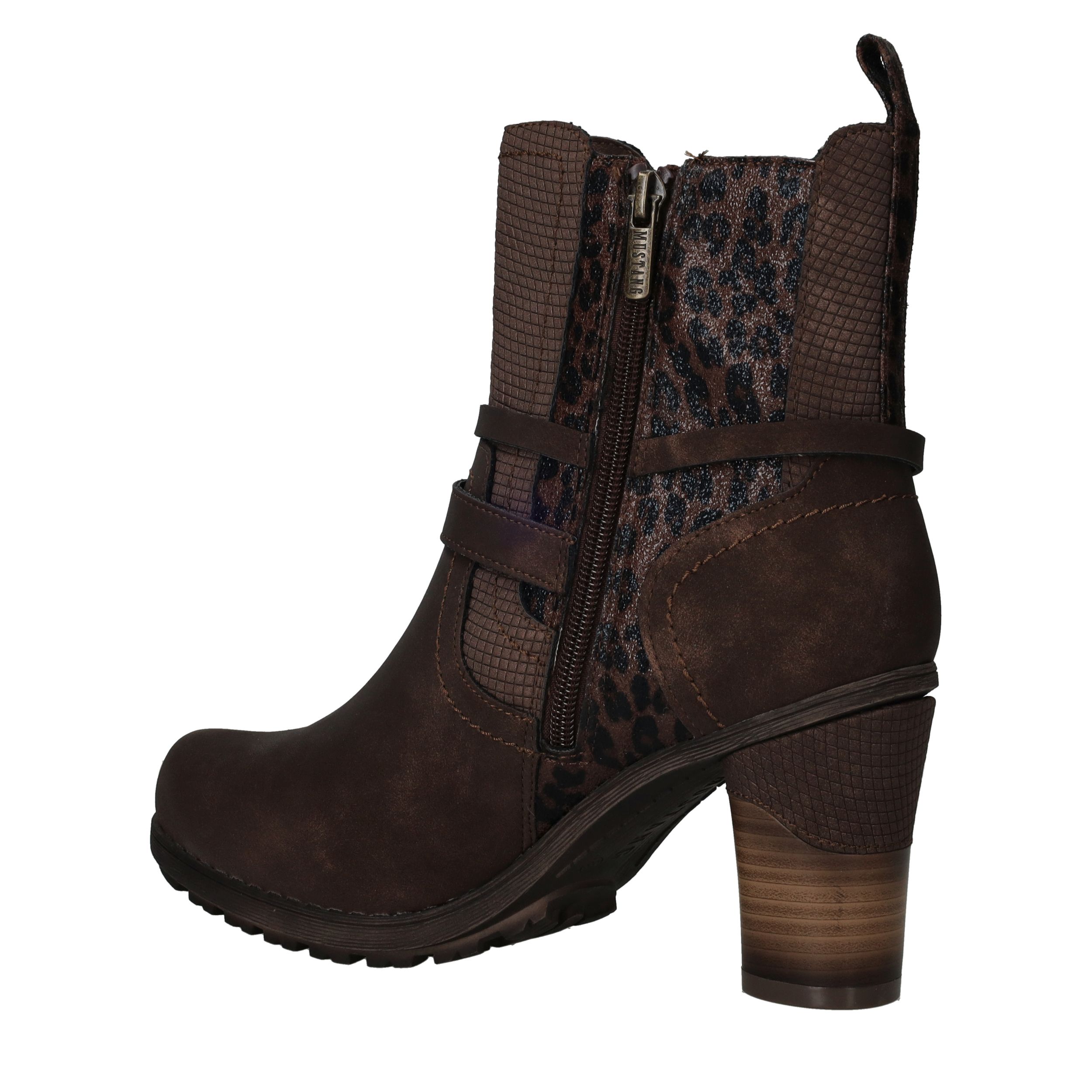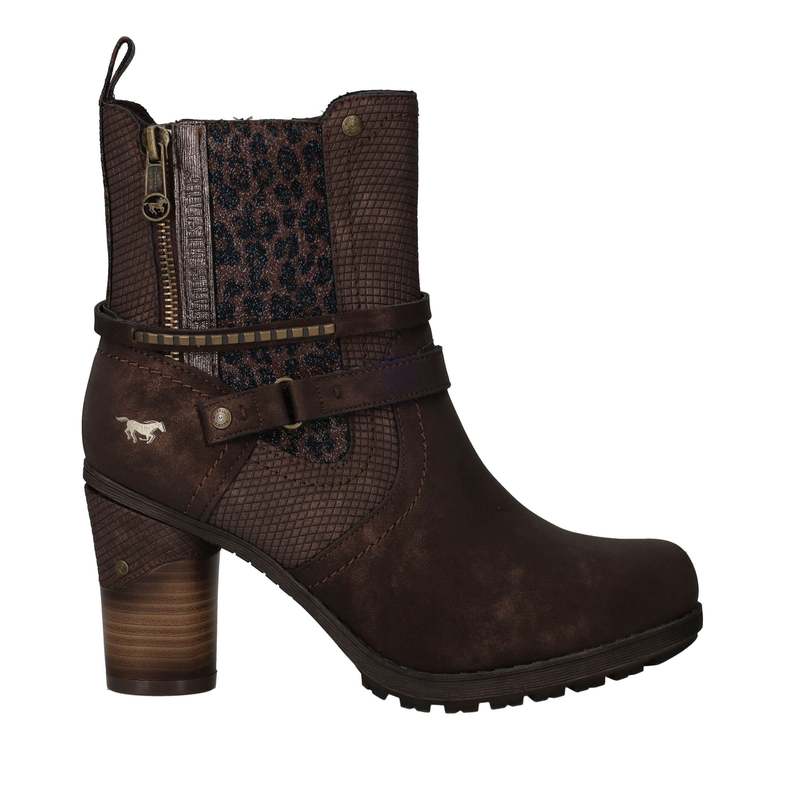 Deze stoere Mustang enkellaarsjes in donkerbruin kunstleer zijn een perfecte combinatie van robuustheid en elegantie. De subtiele luipaardprint aan de zijkant geeft de laarsjes een speelse twist. Met de comfortabele voetbreedte G zijn ze ideaal voor dagelijks gebruik. Perfect voor dames die houden van een trendy look met een stoere uitstraling.