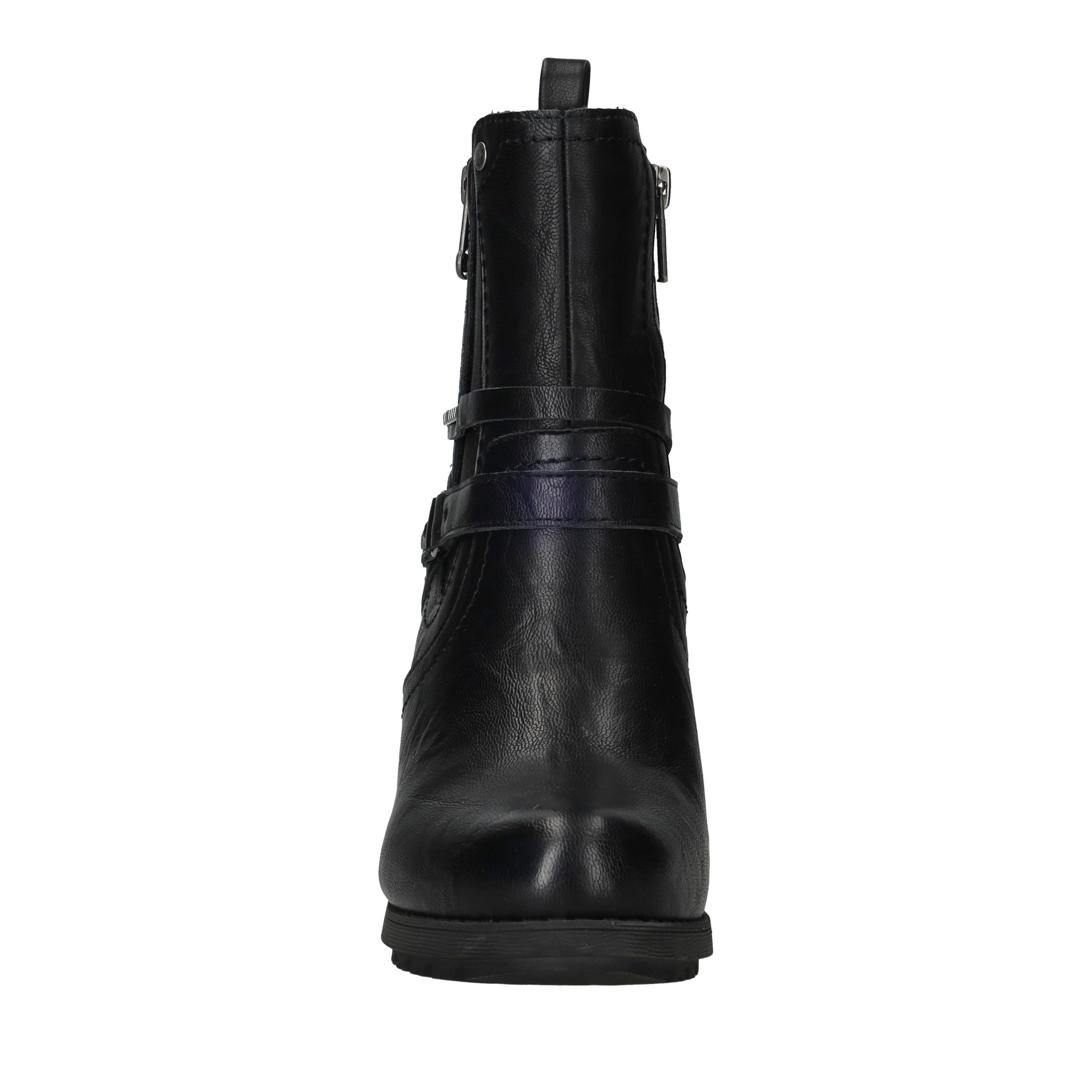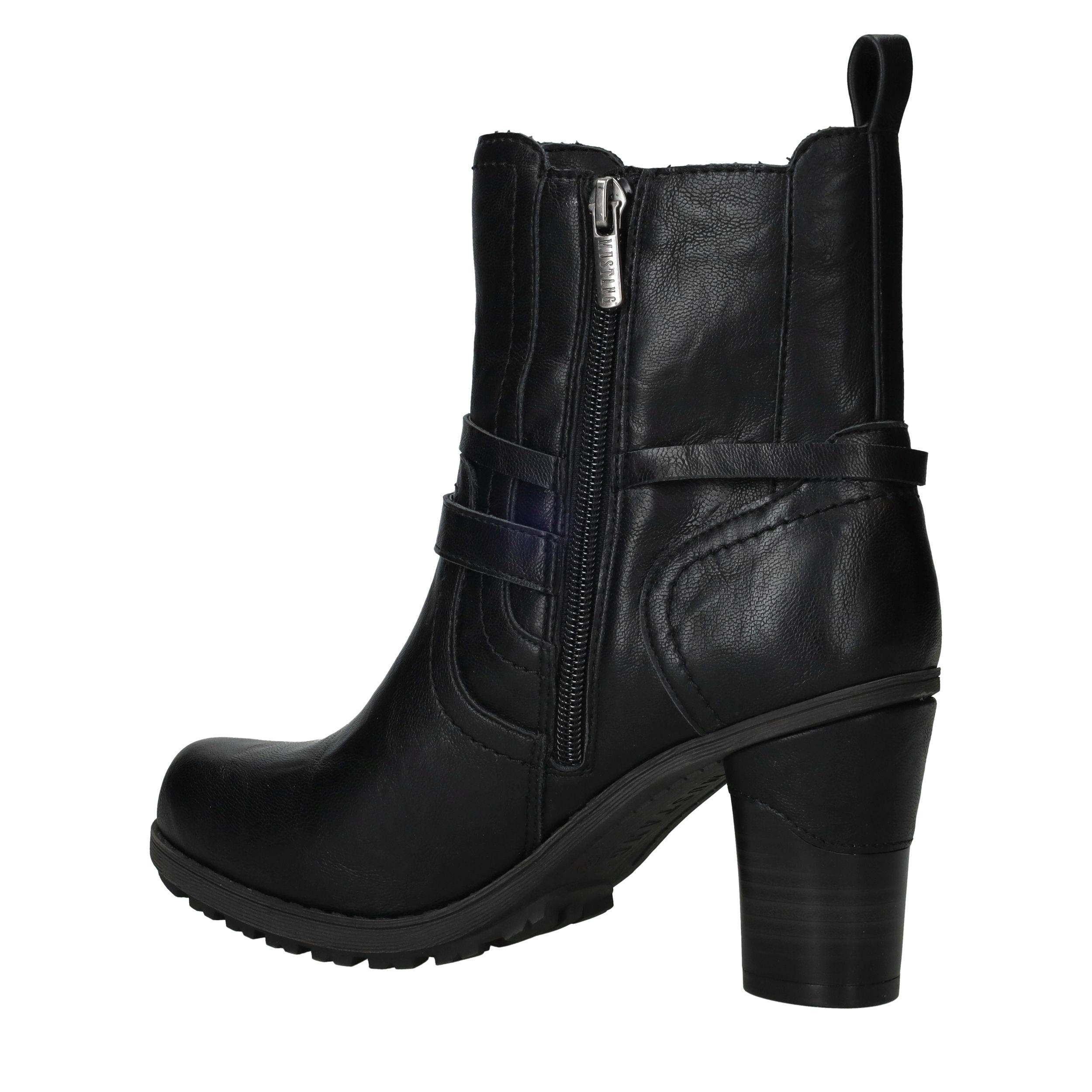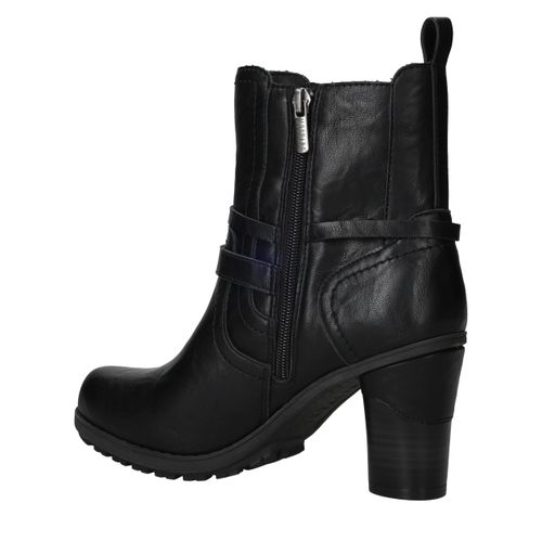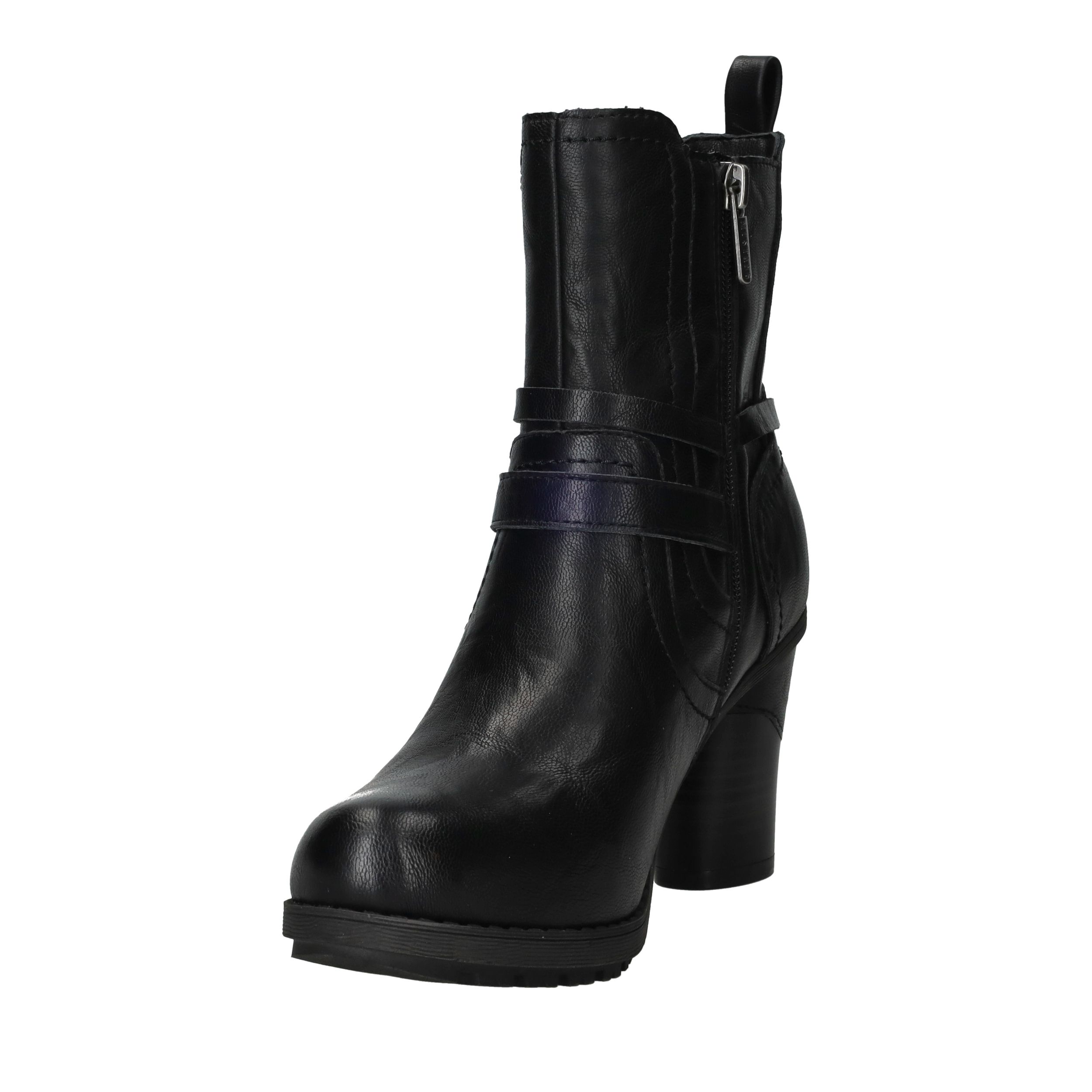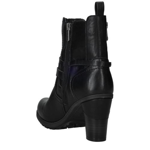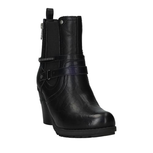 Deze stoere Mustang enkellaarsjes in zwart kunstleer zijn een absolute must-have voor iedere garderobe. De klassieke kleur maakt ze eindeloos te combineren en geeft elke outfit een stijlvolle, krachtige uitstraling. Dankzij de comfortabele voetbreedte G geniet je van een fijne pasvorm. Perfect voor dames die houden van een stoere look met vrouwelijk detail.