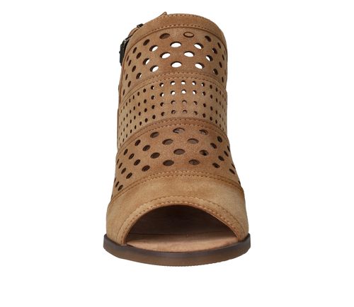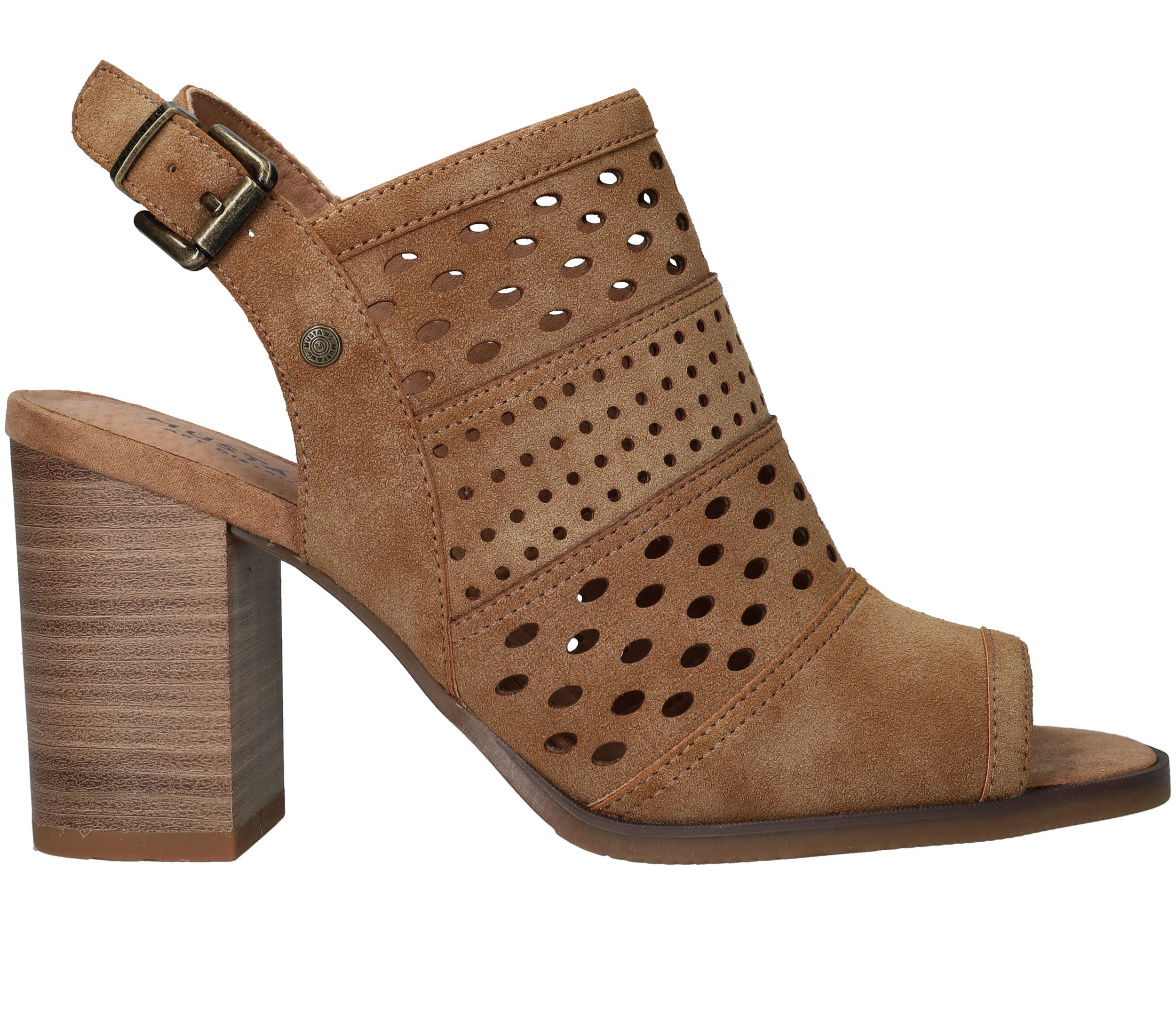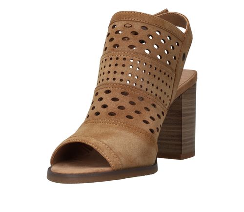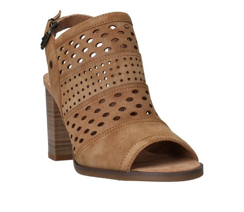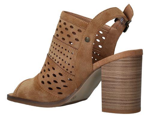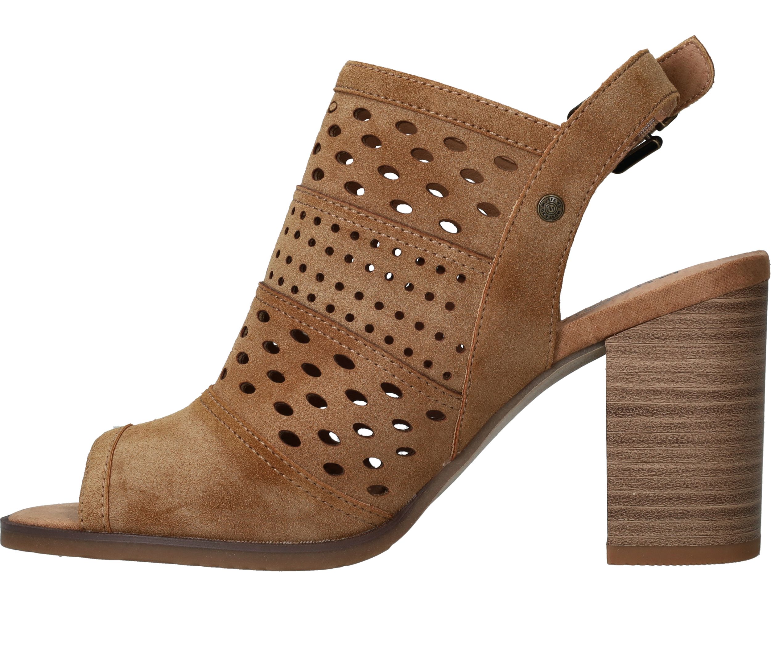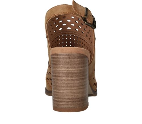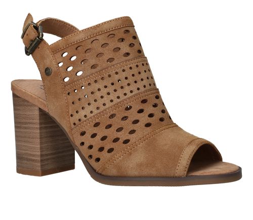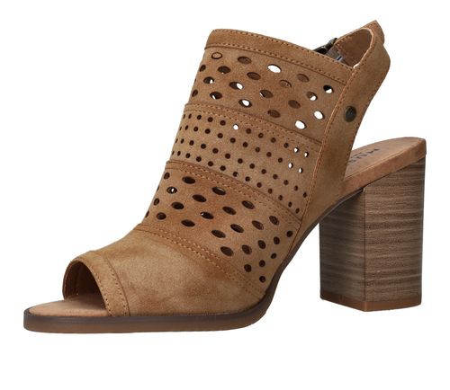 Deze Mustang sandalette is de perfecte geklede schoen voor de zomer! De cognac kleur sandalette heeft een leuk patroon van geperforeerde rondjes.