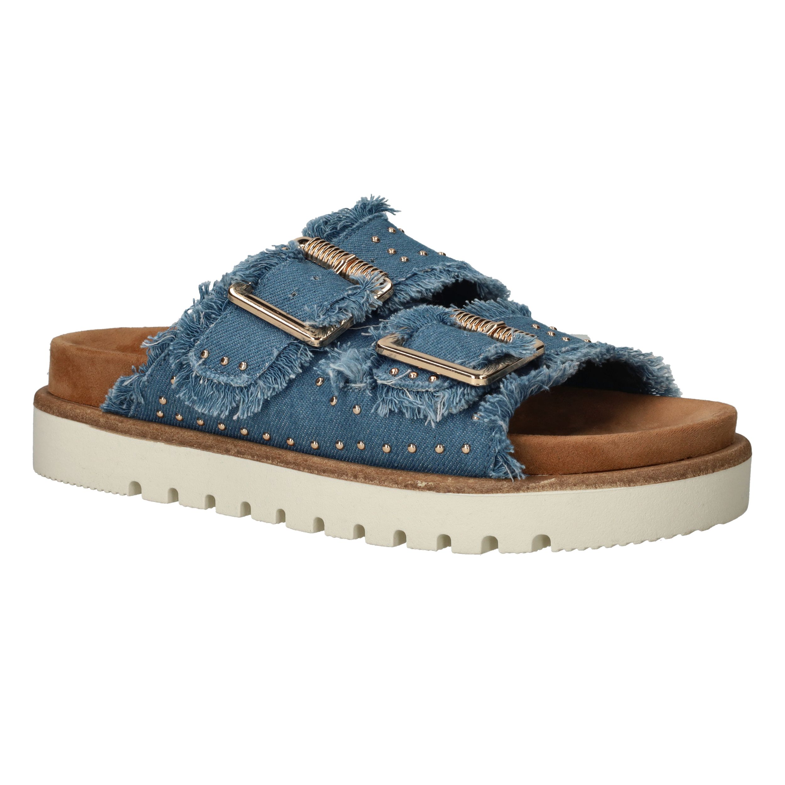 Geef je zomerse outfit een trendy upgrade met de Mustang sandalen, model 1461708. Deze damessandalen in een opvallende denim blauwe kleur zijn vervaardigd uit hoogwaardig textiel, wat zorgt voor een comfortabele en stijlvolle uitstraling. De sandalen zijn voorzien van een comfortabele plateauzool en opvallende gespen, waardoor ze perfect zijn voor een dagje shoppen of een zomerse avond uit. Met deze sandalen loop je niet alleen comfortabel, maar maak je ook een fashion statement.