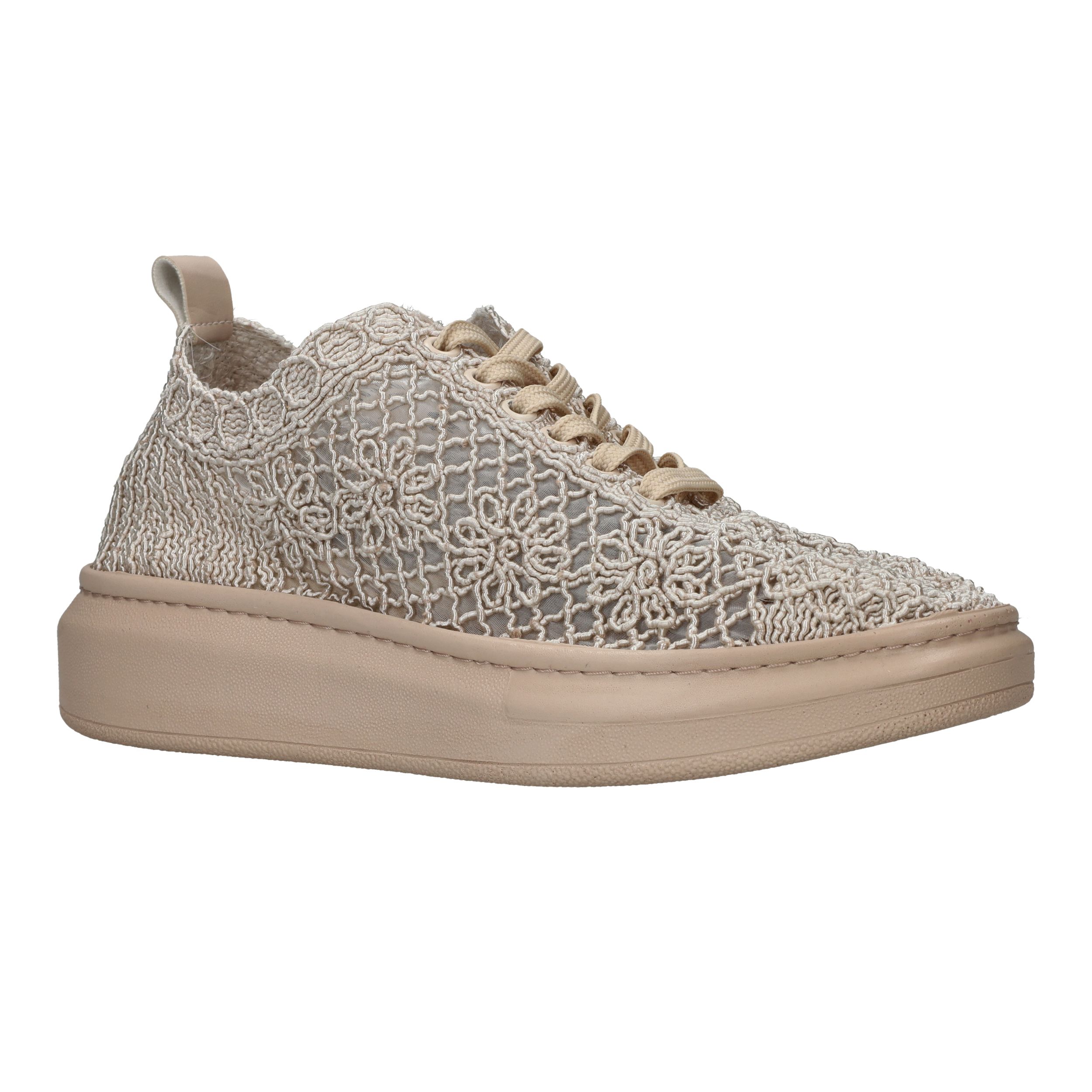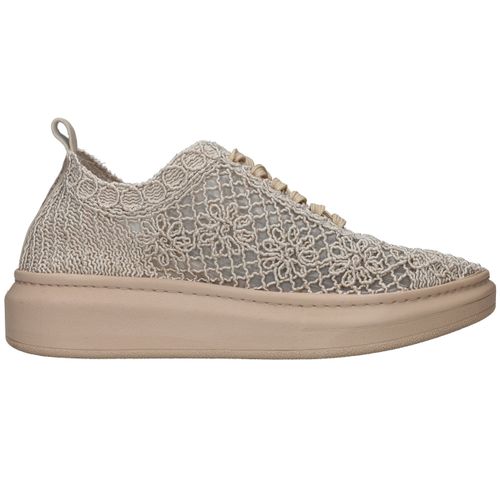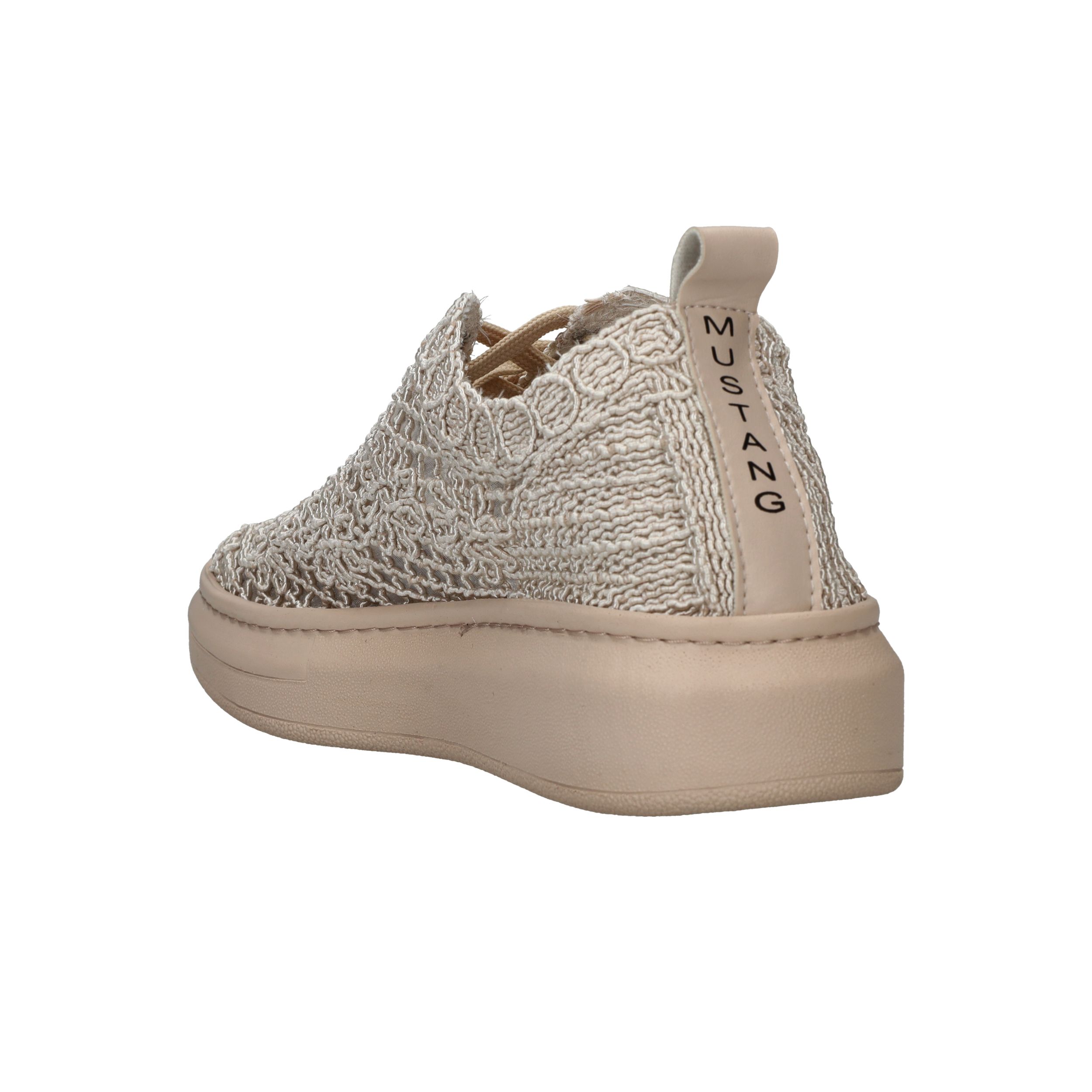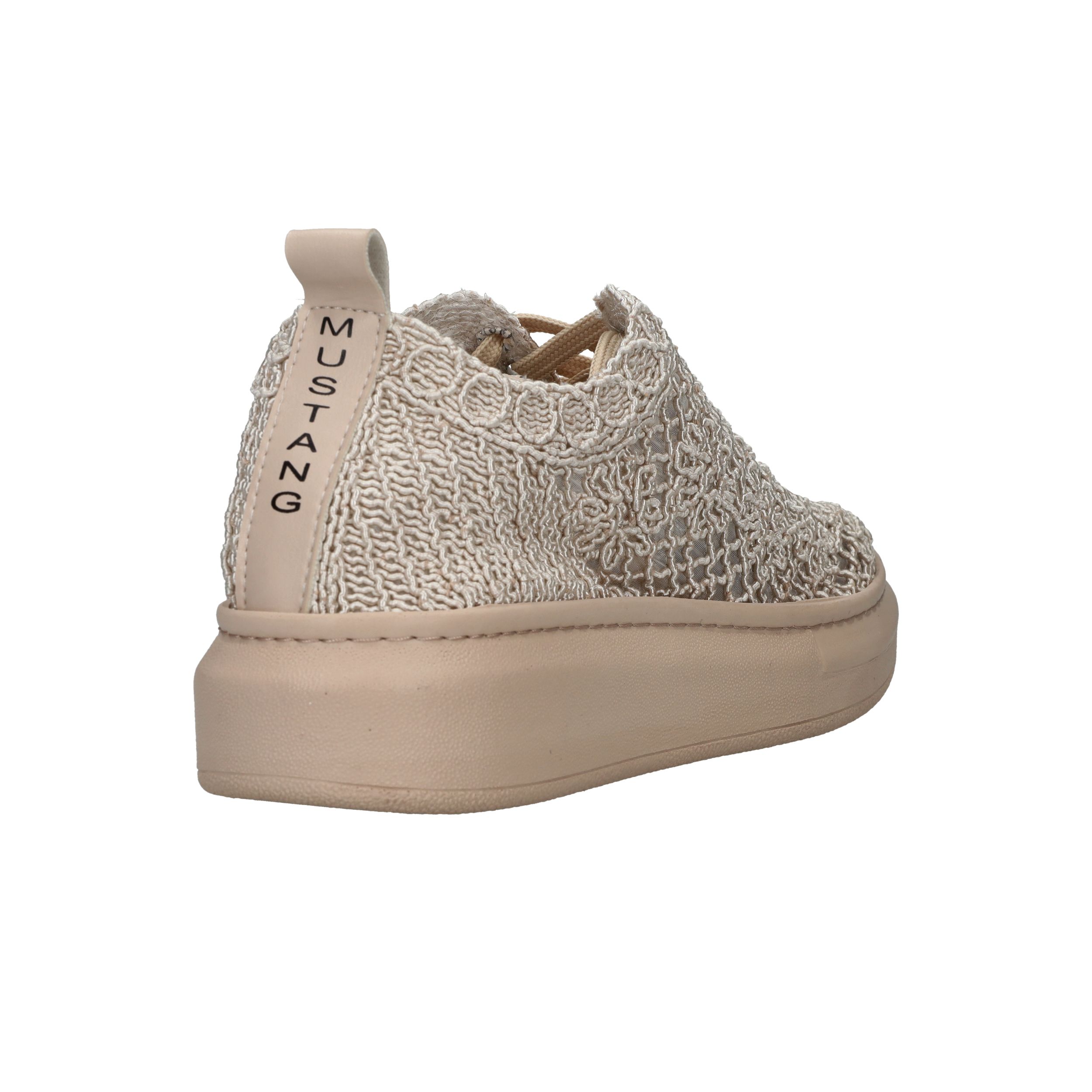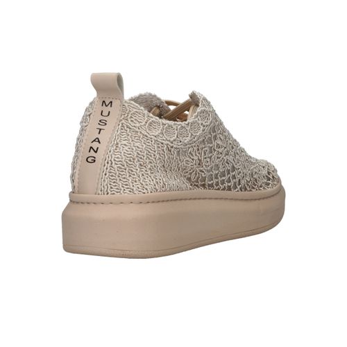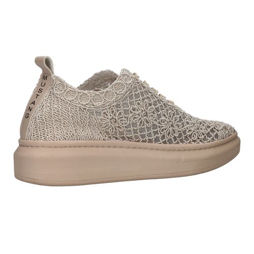 Deze luchtige Mustang veterschoen is perfect voor mooi weer! De damesschoen heeft een uniek bloemmotief van textiel.