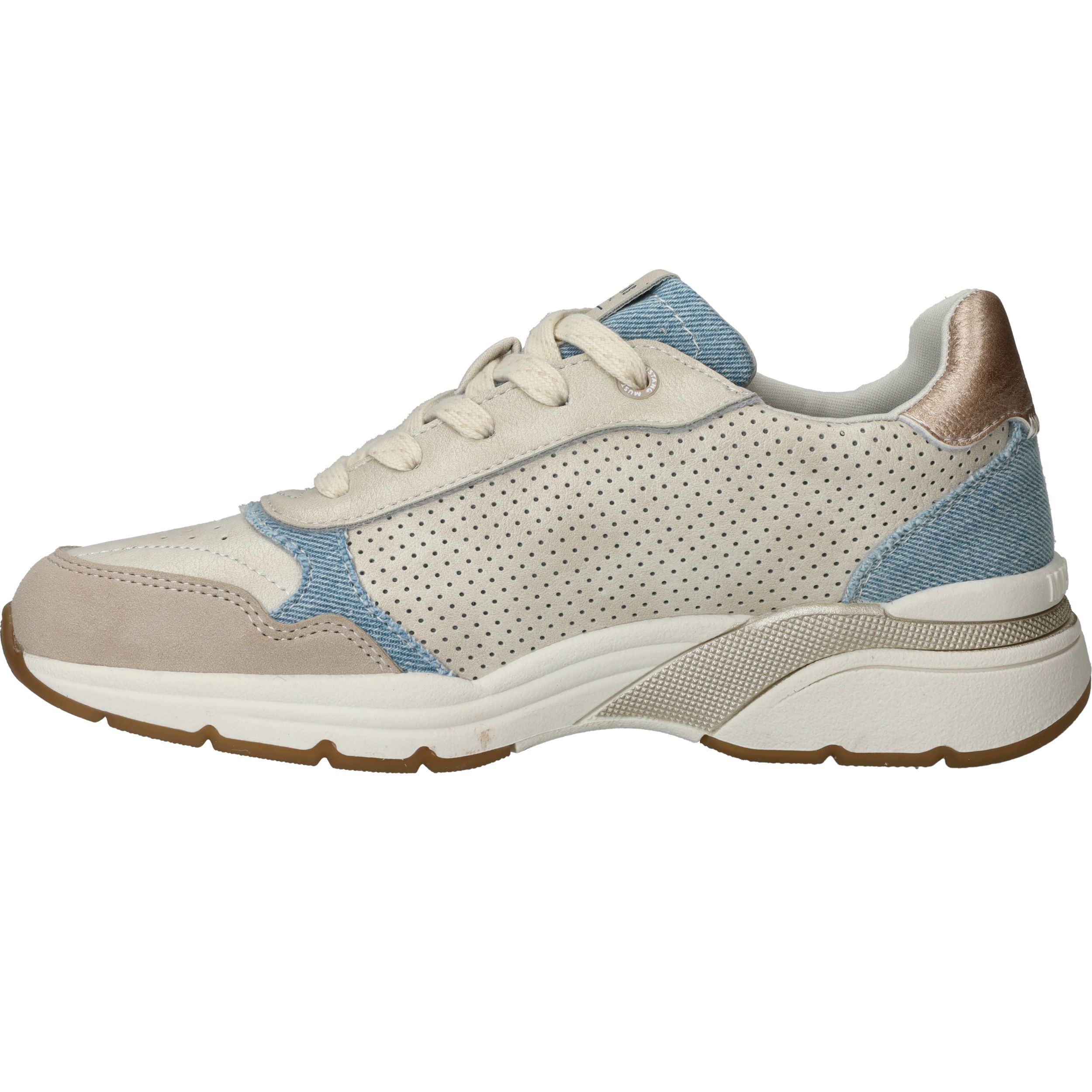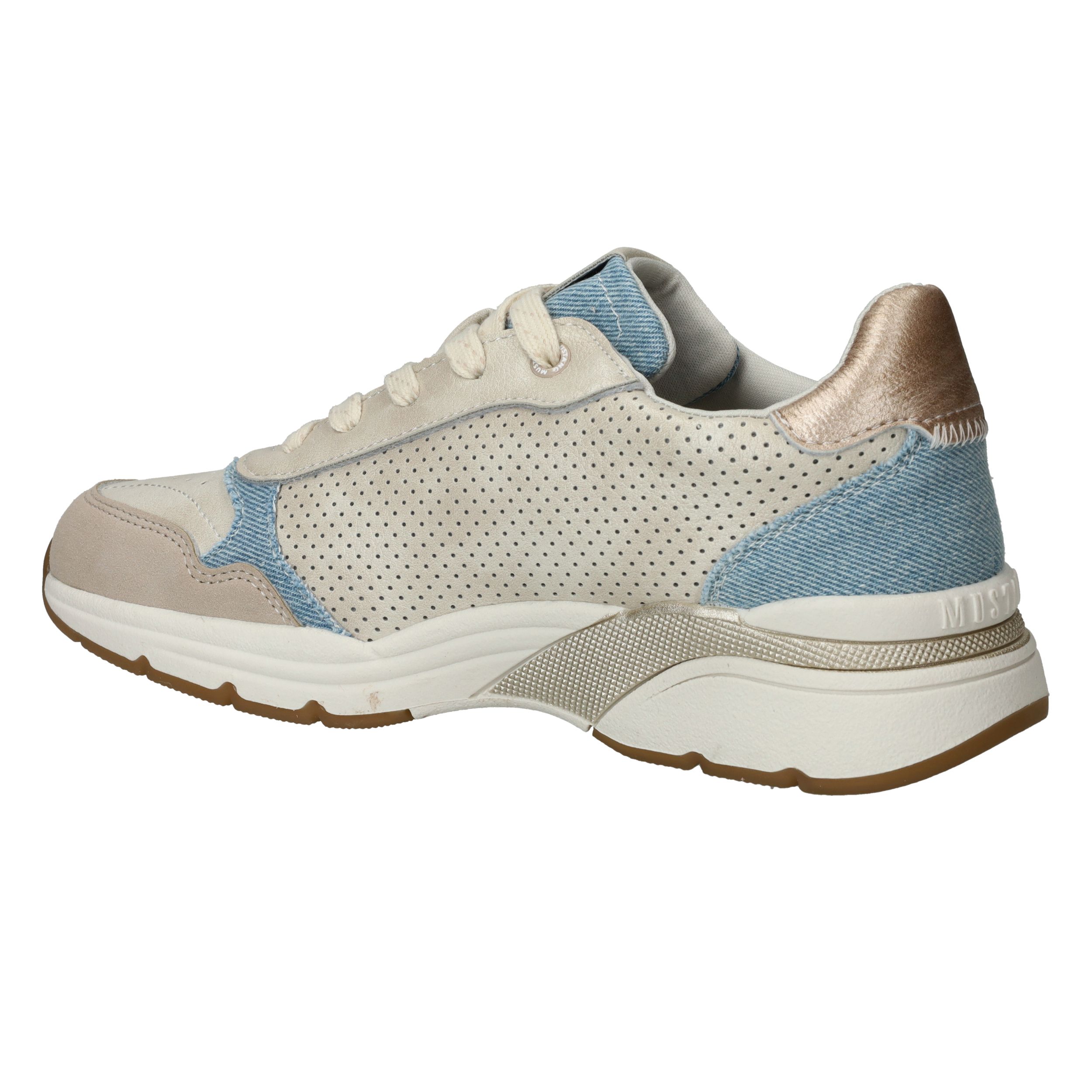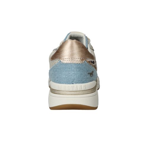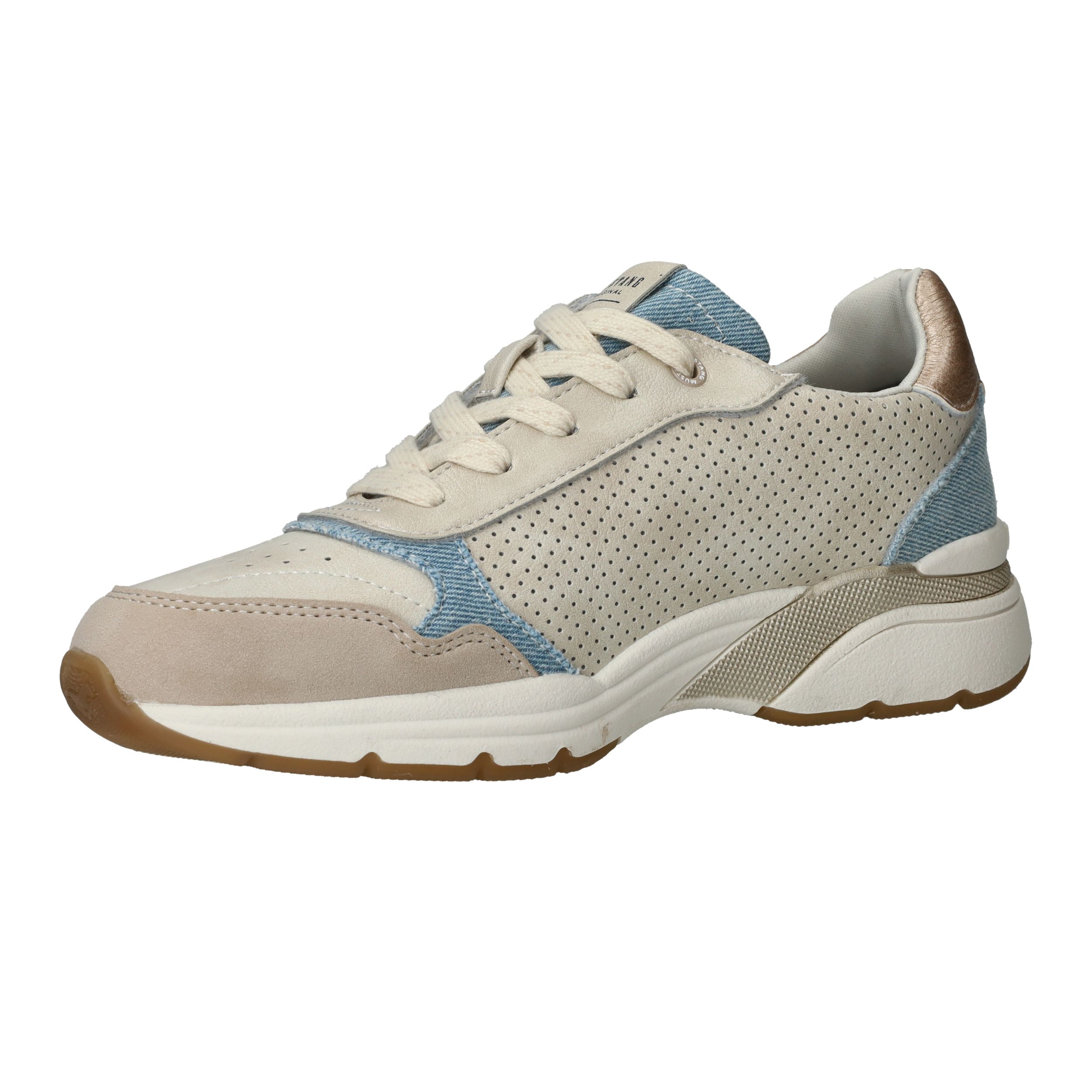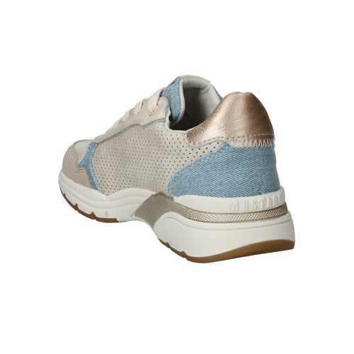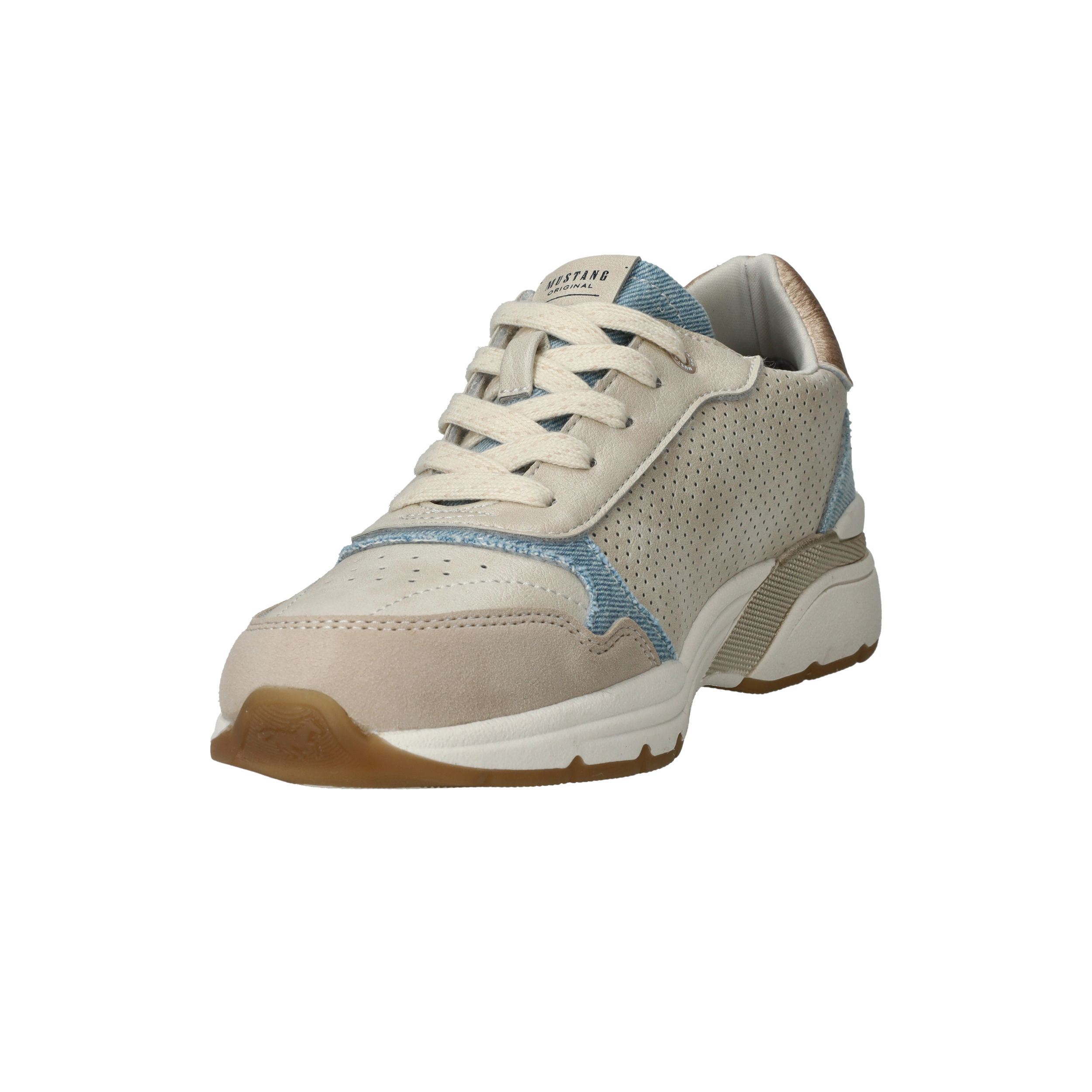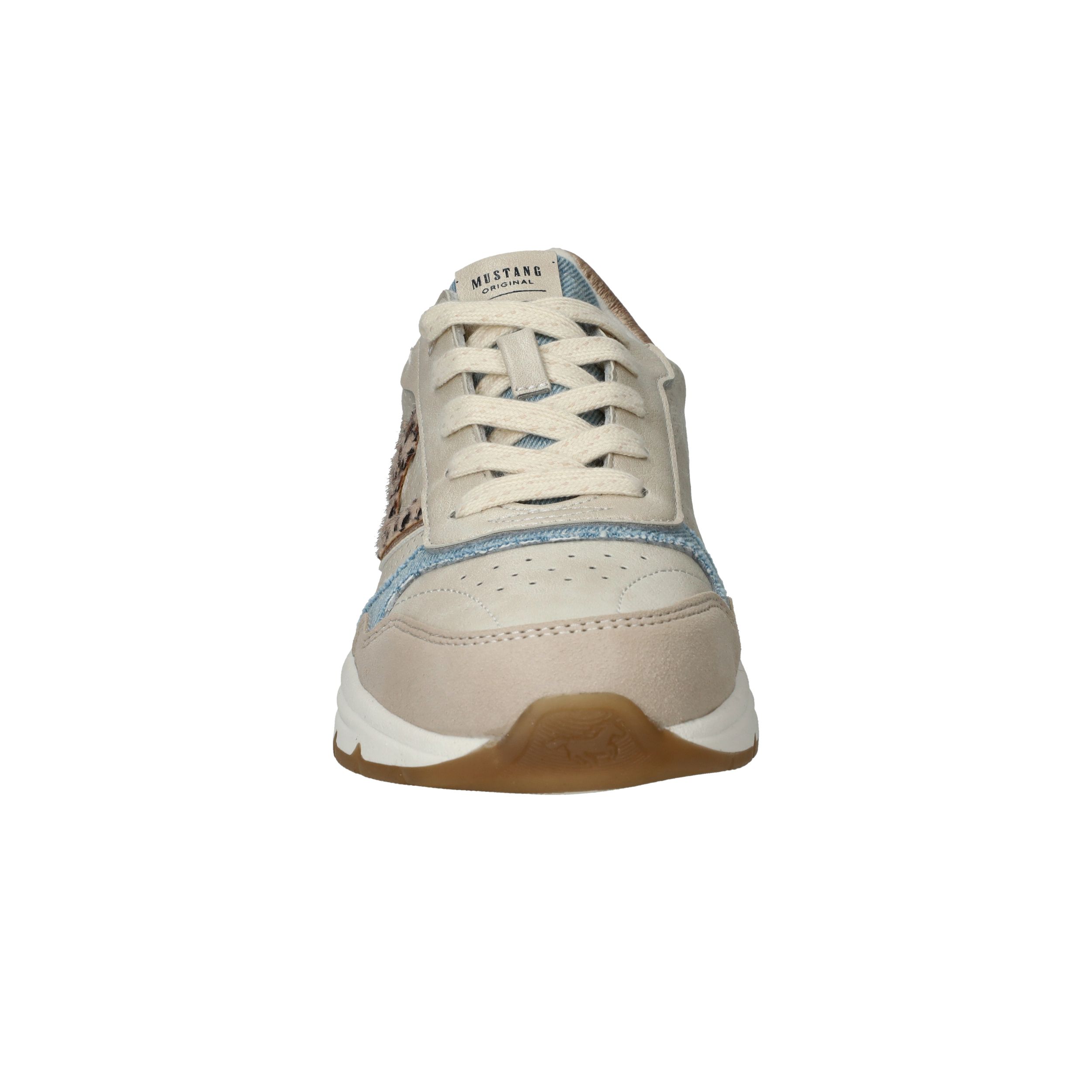 De details van deze Mustang sneaker maken de damesschoen heel speciaal. De beige sneaker heeft leuke jeans en dierenprint accenten.