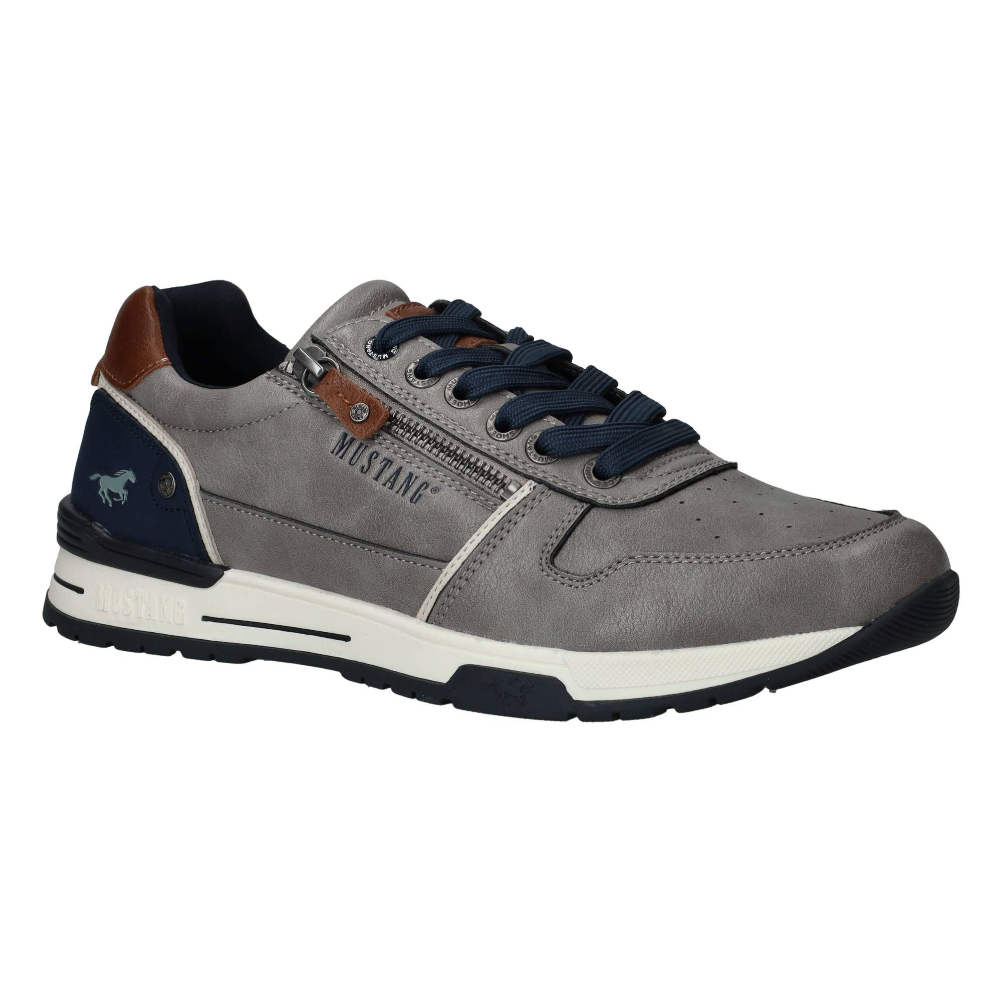 Deze Mustang sneakers in grijs combineren een sportieve uitstraling met een stoere, moderne look. De mix van grijstinten met blauwe en bruine accenten geeft de schoen net dat beetje extra karakter, zonder te overheersen.