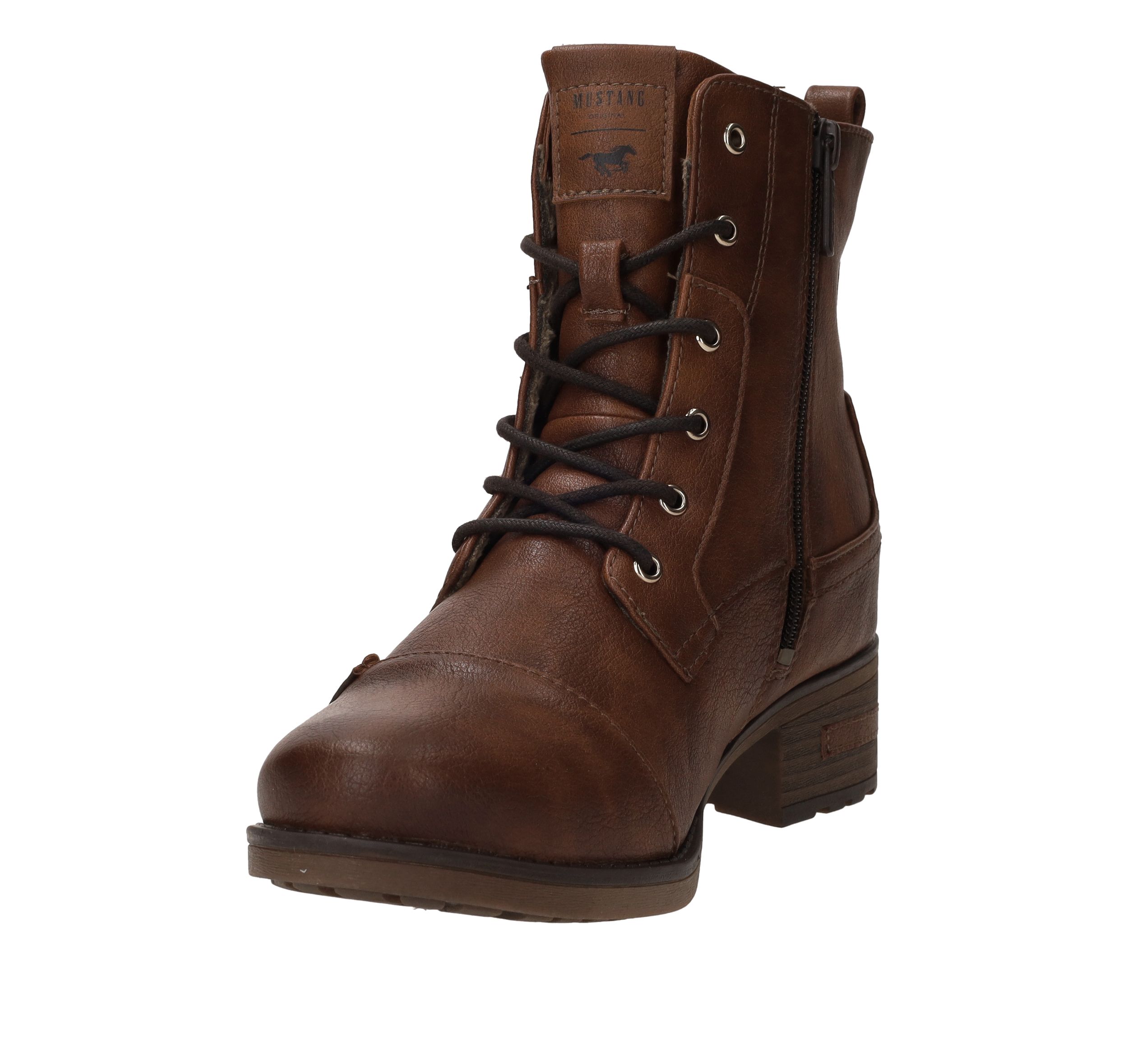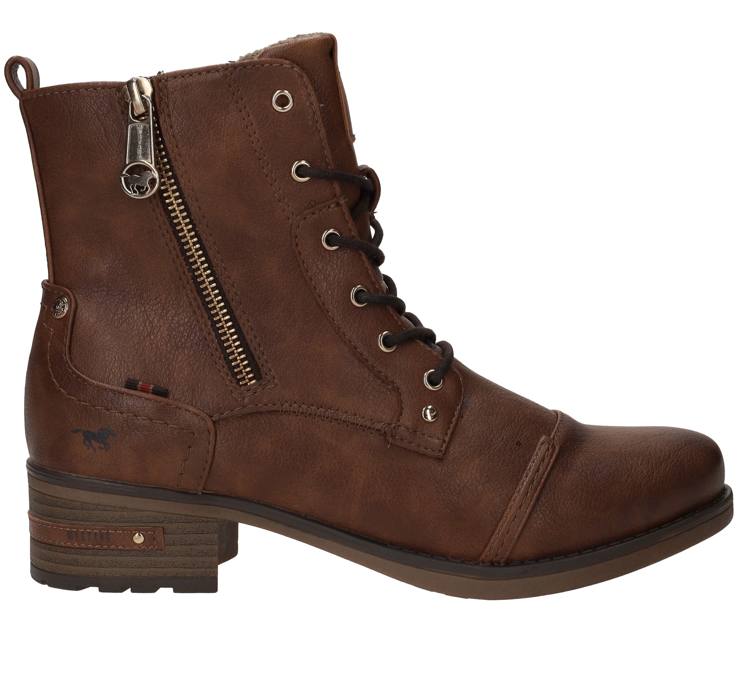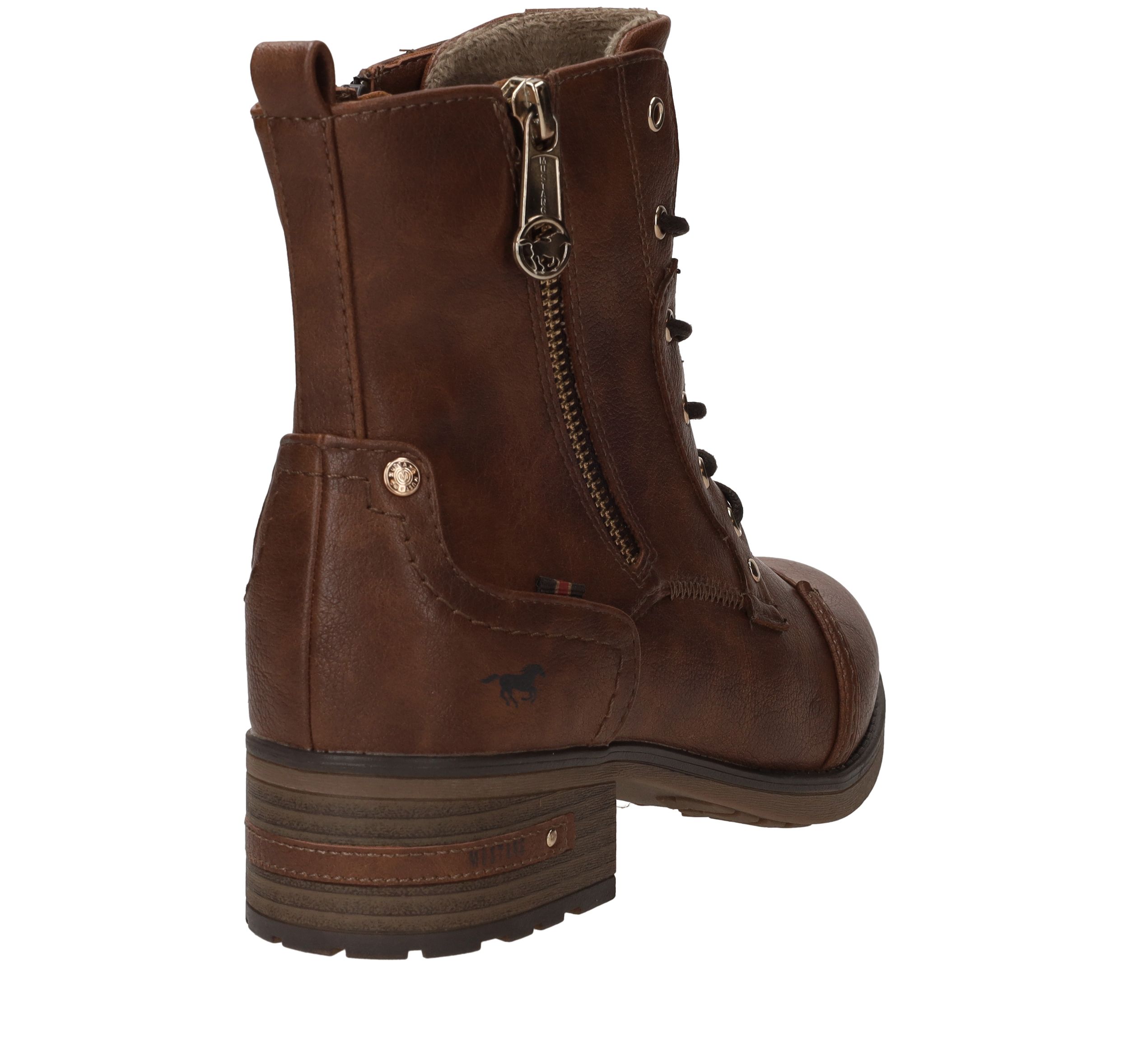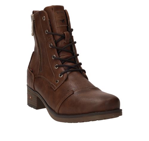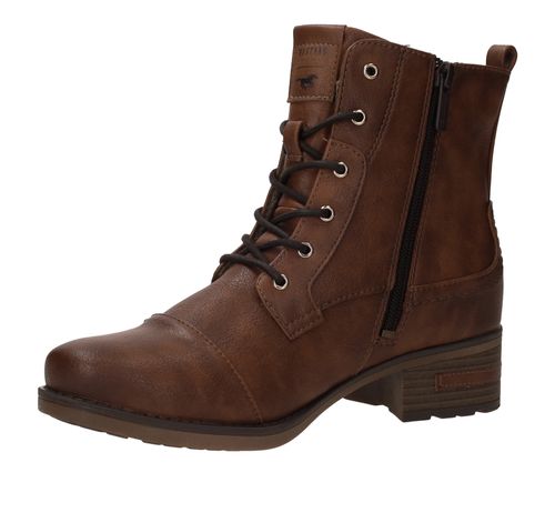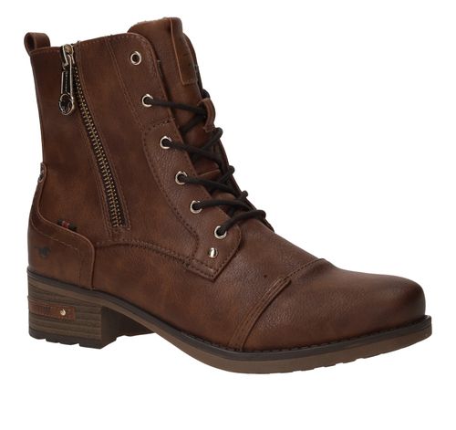 Stoere bruine Mustang veterboot voor dames. Je matcht deze damesboot makkelijk met al je outfits! Een perfecte schoen om iederen dag te dragen.