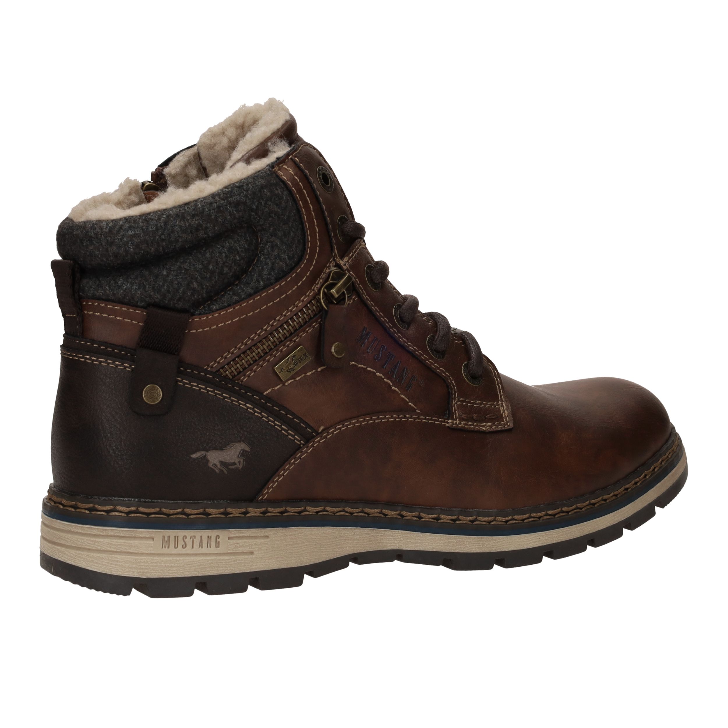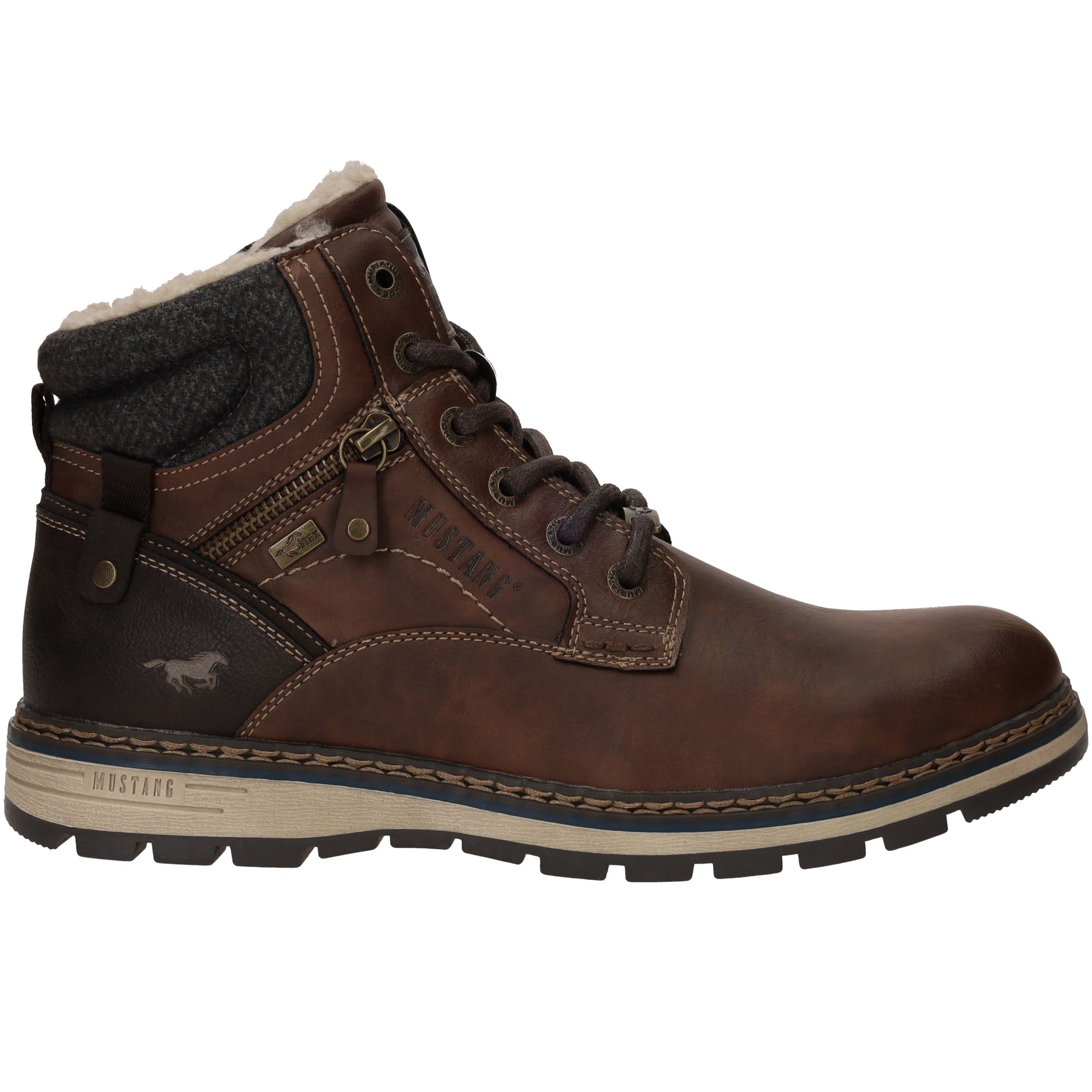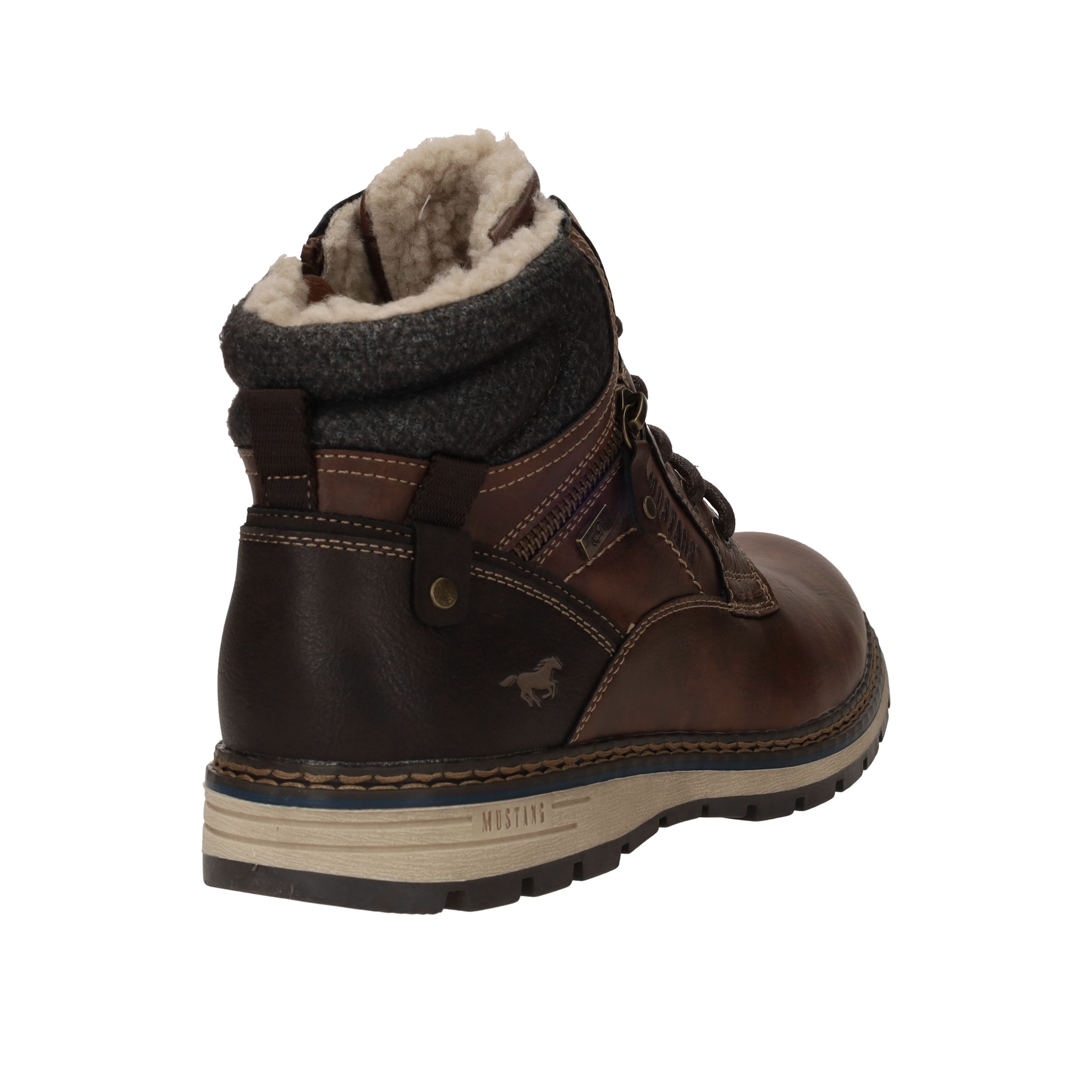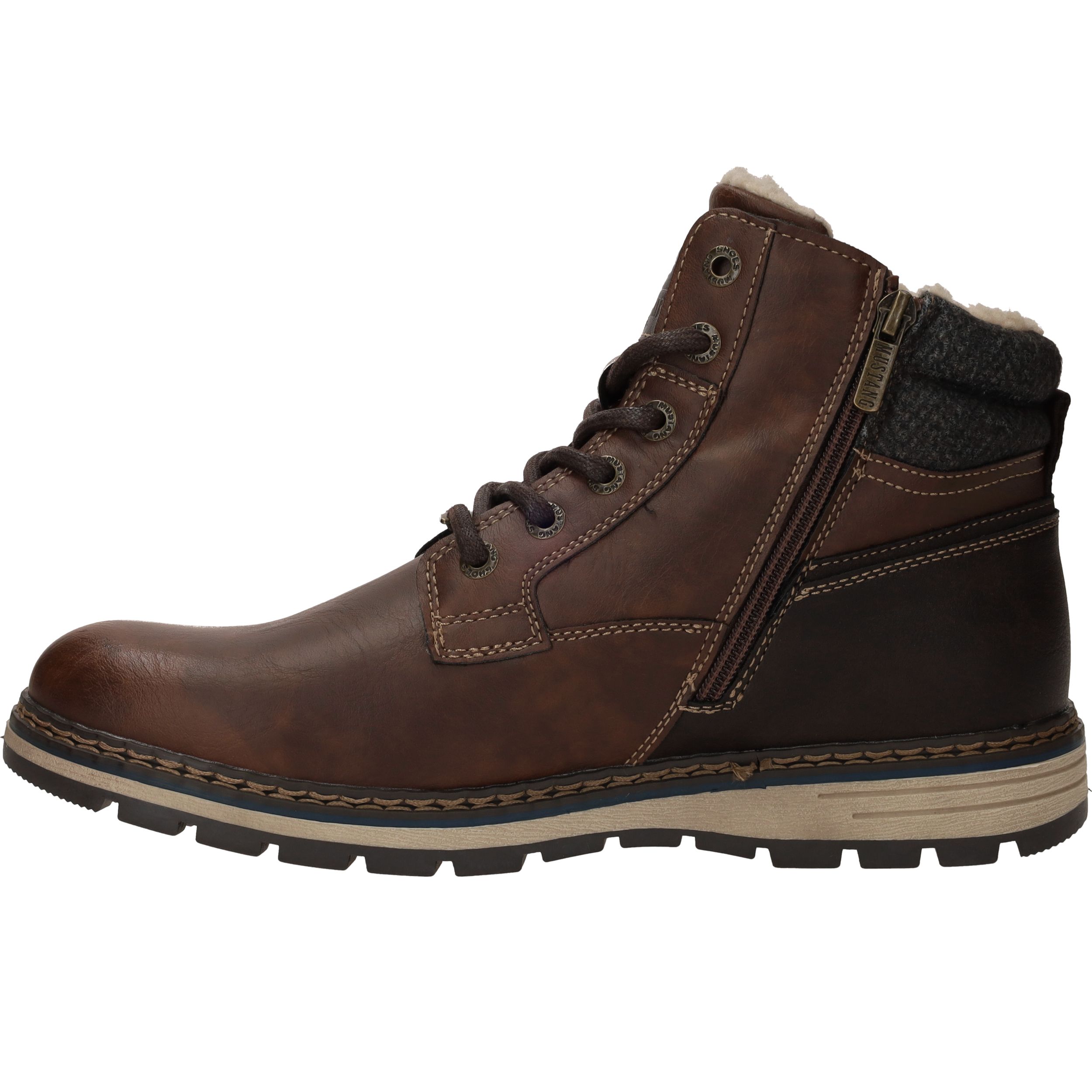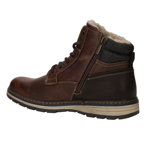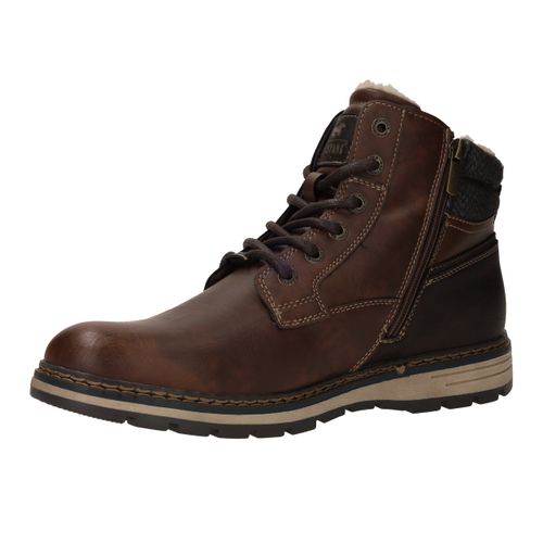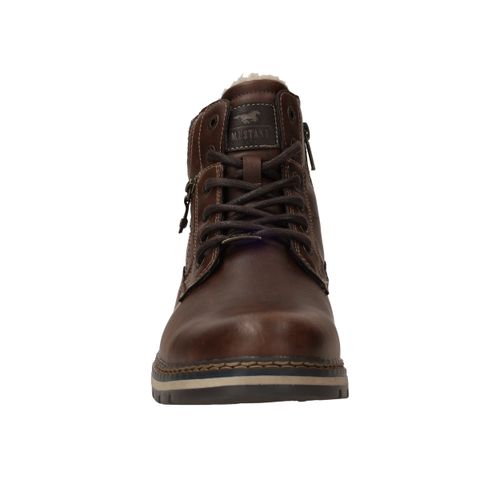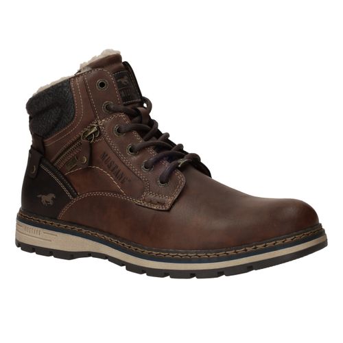 Deze stoere Mustang boots in bruin kunstleer en textiel zijn perfect voor dagelijks gebruik en koude dagen. De warme voering en stevige constructie bieden optimaal comfort en bescherming. Dankzij de comfortabele voetbreedte G geniet je van een fijne pasvorm. Ideaal voor heren die kiezen voor een robuuste look met praktische details.