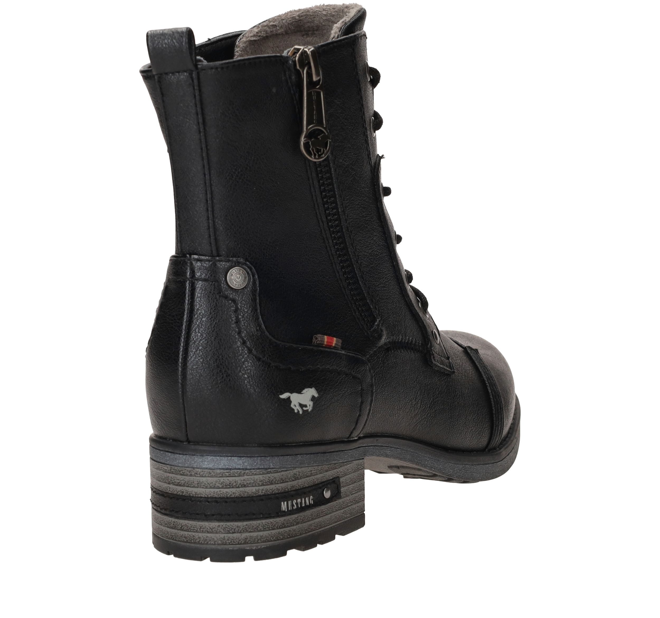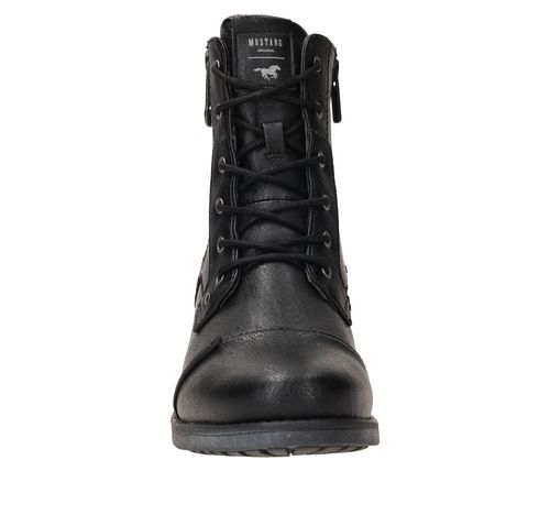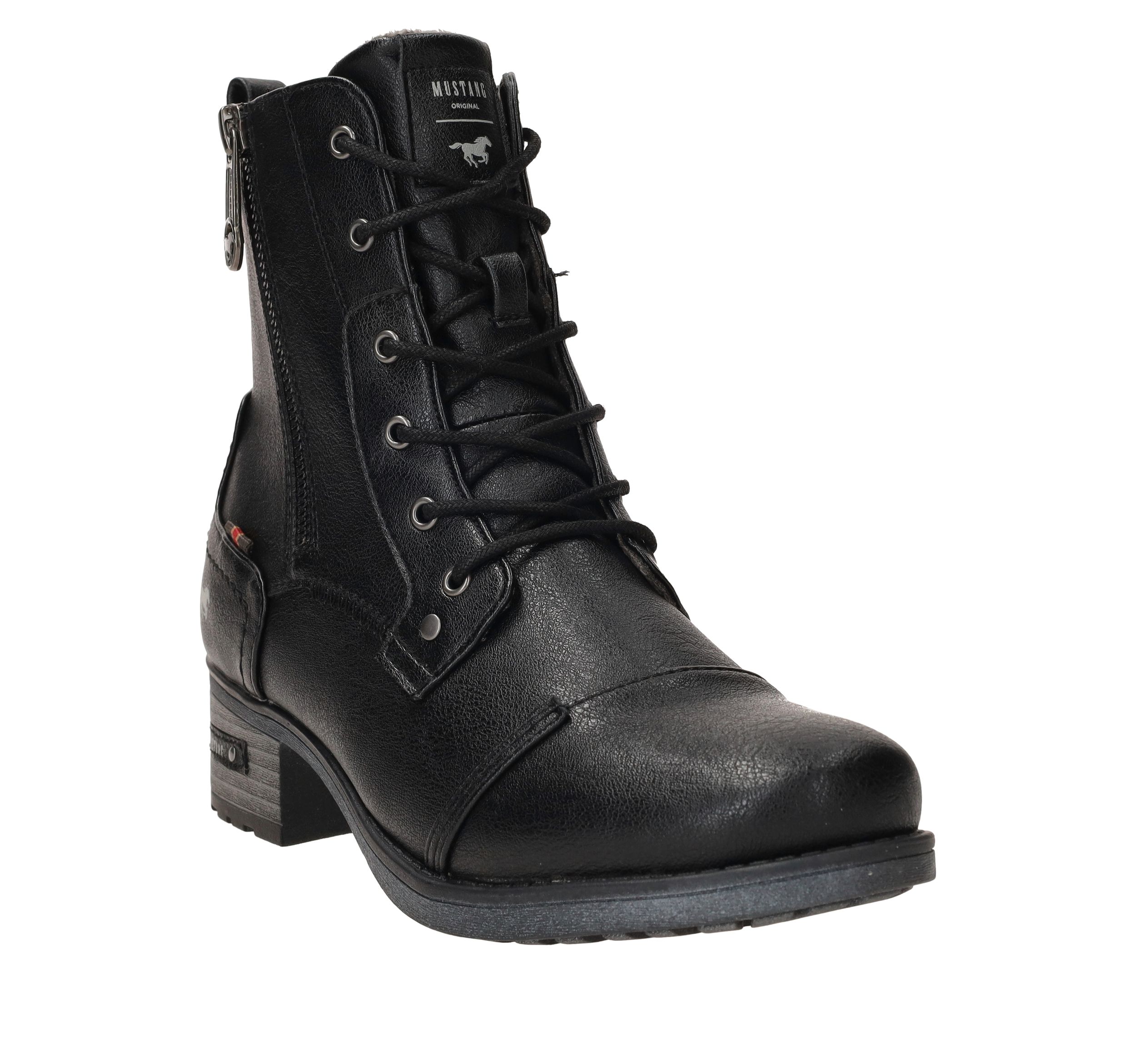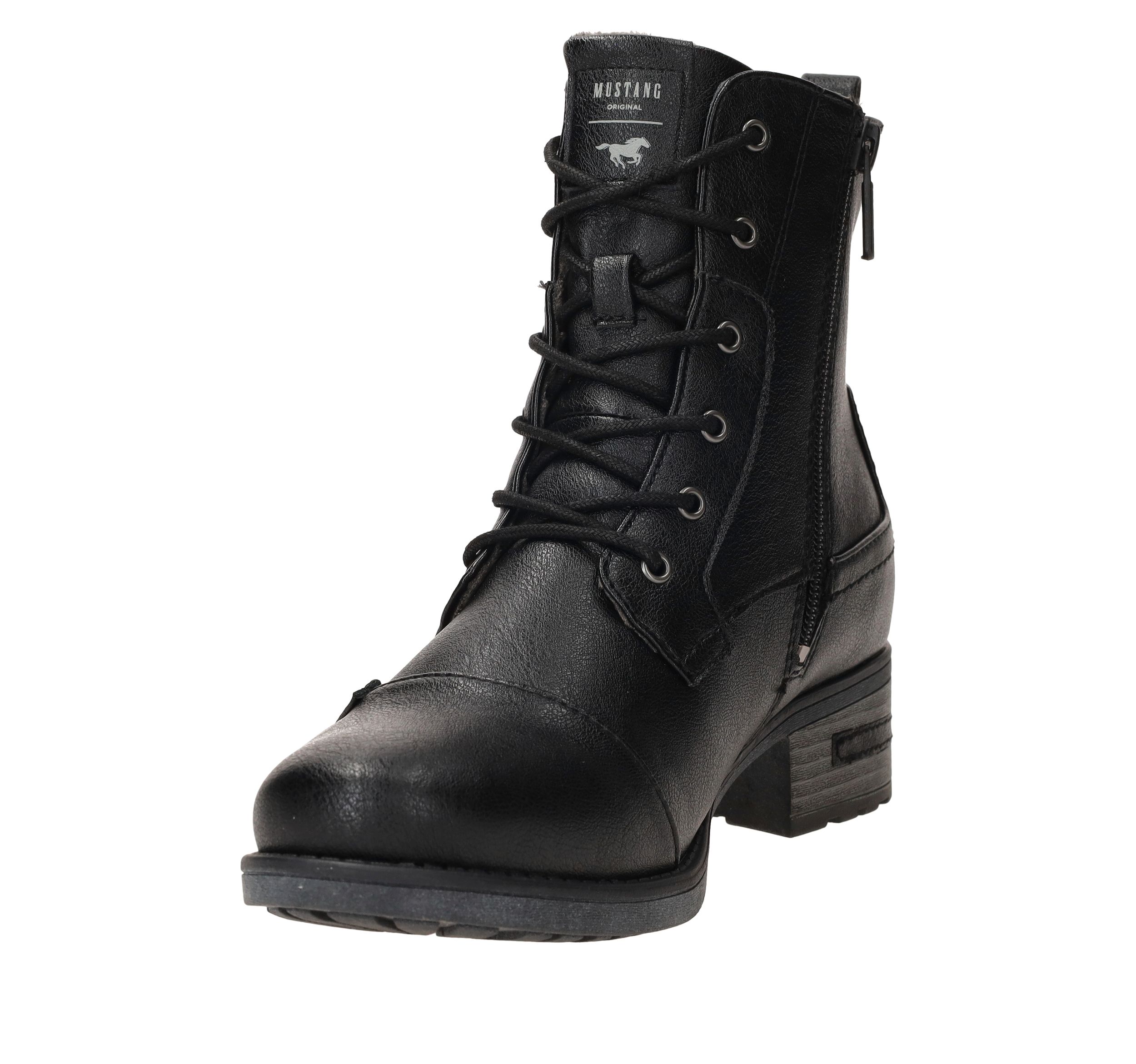 Stoere zwarte Mustang veterboot voor dames. Je matcht deze damesboot makkelijk met al je outfits! Een perfecte schoen om iederen dag te dragen.
