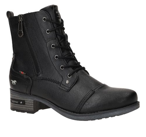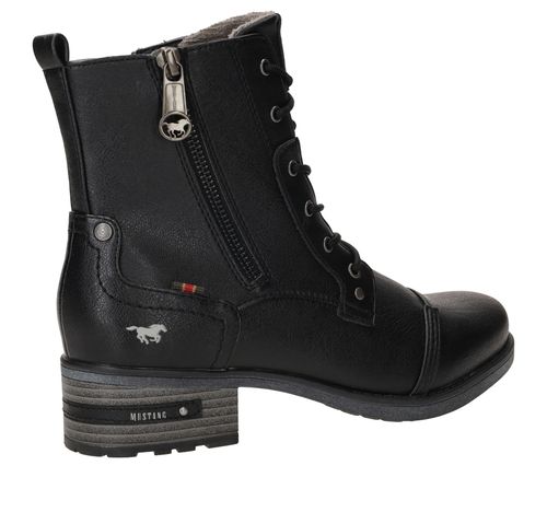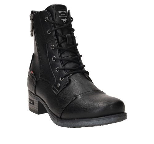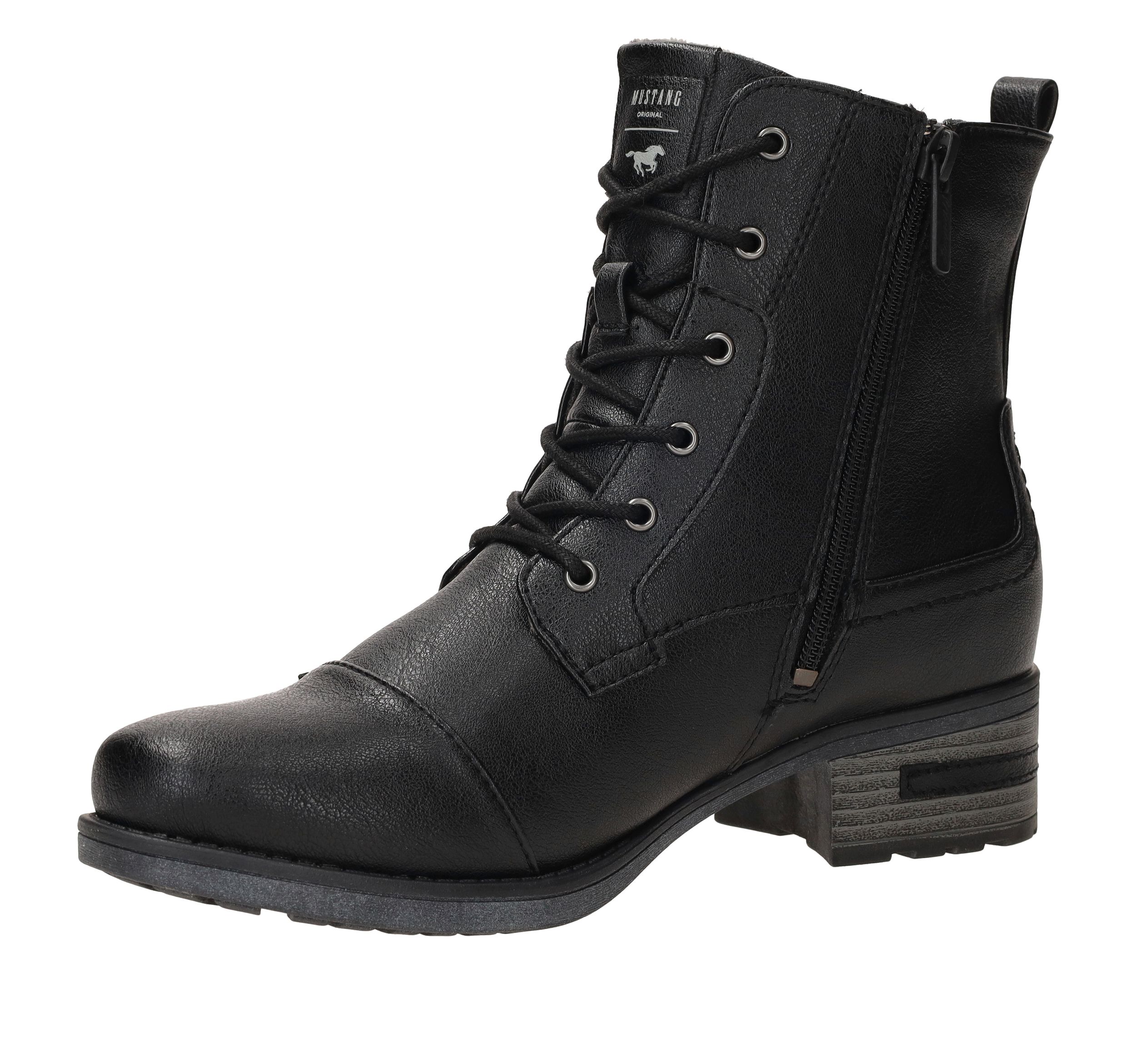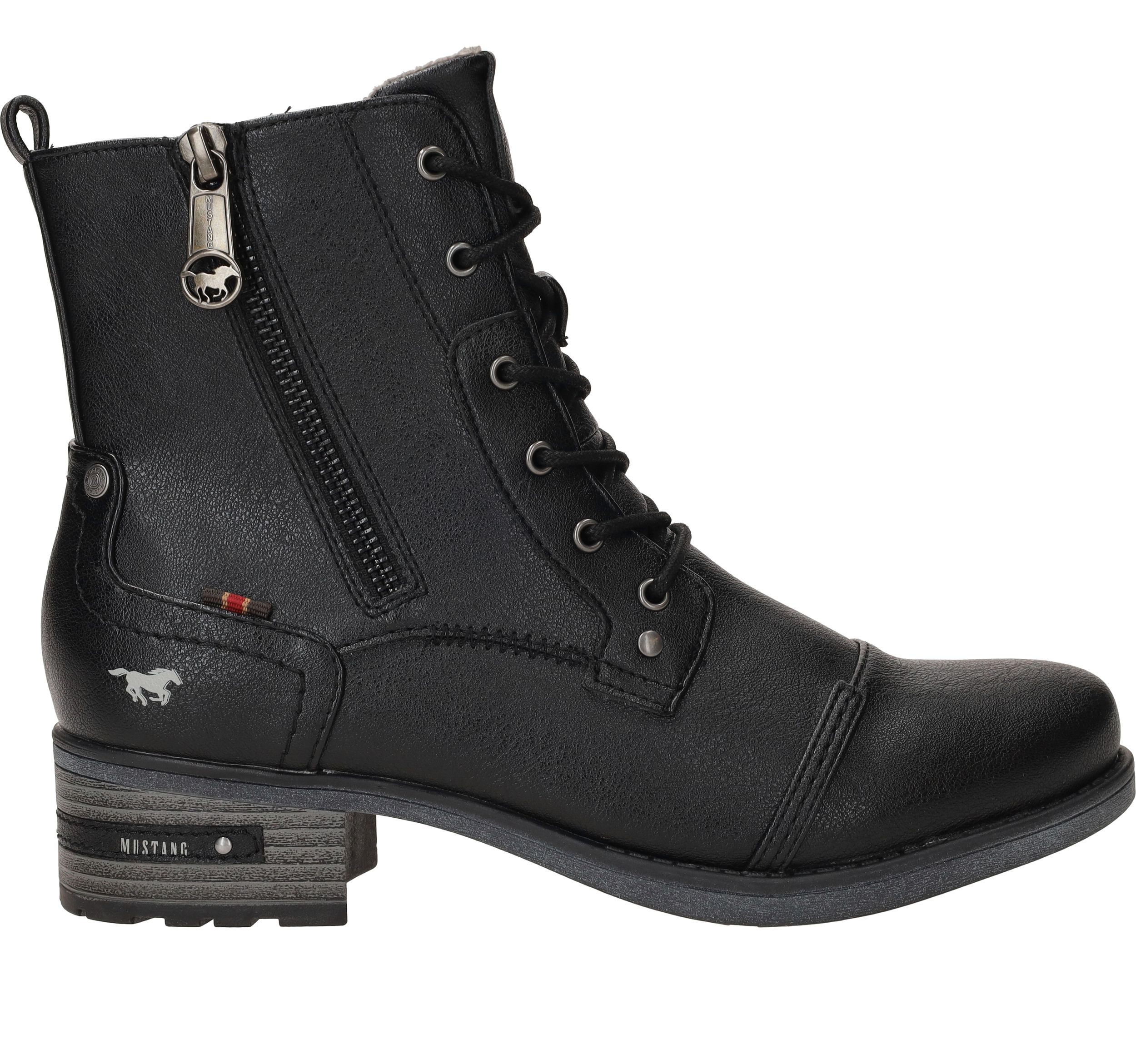 Stoere zwarte Mustang veterboot voor dames. Je matcht deze damesboot makkelijk met al je outfits! Een perfecte schoen om iederen dag te dragen.