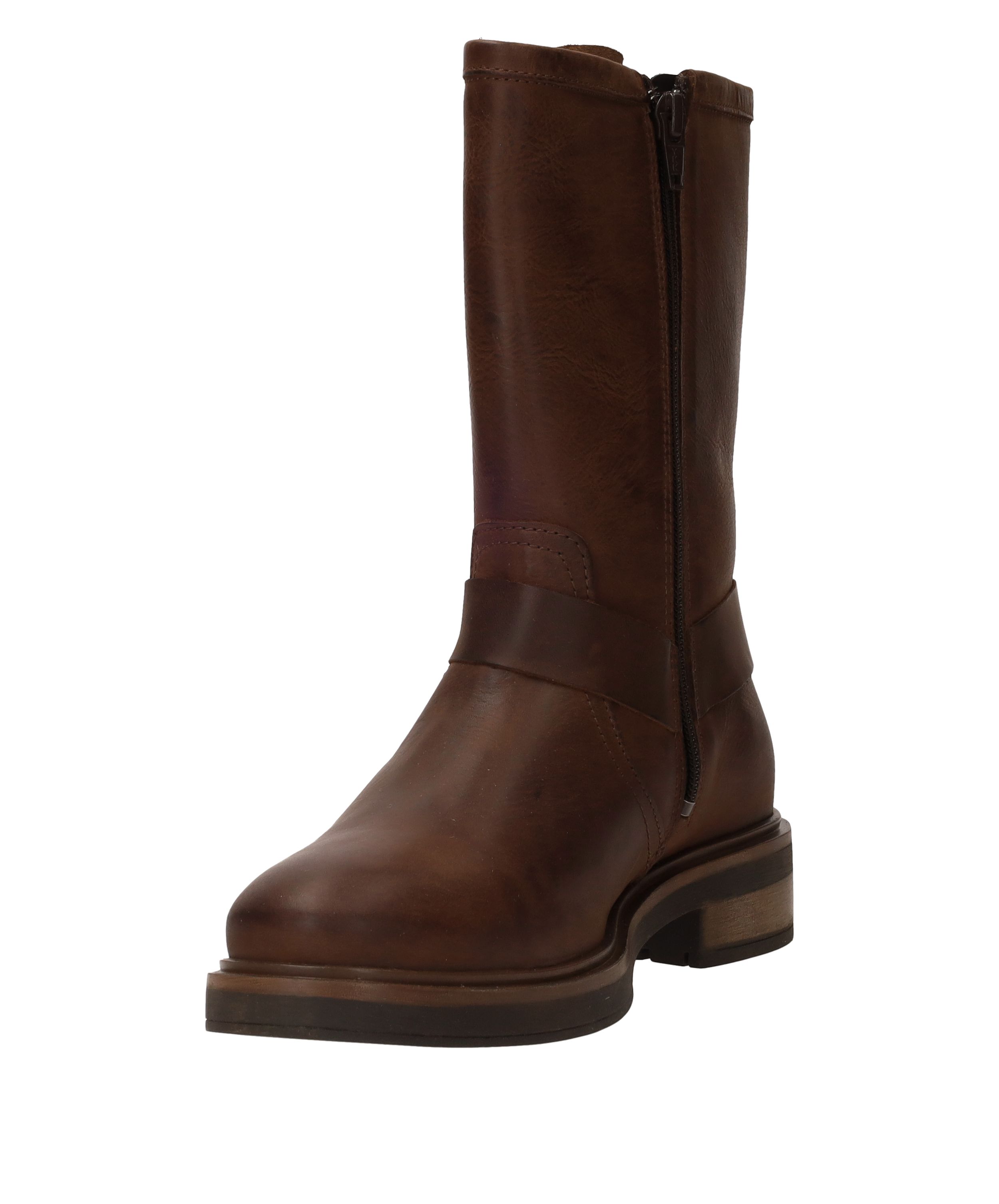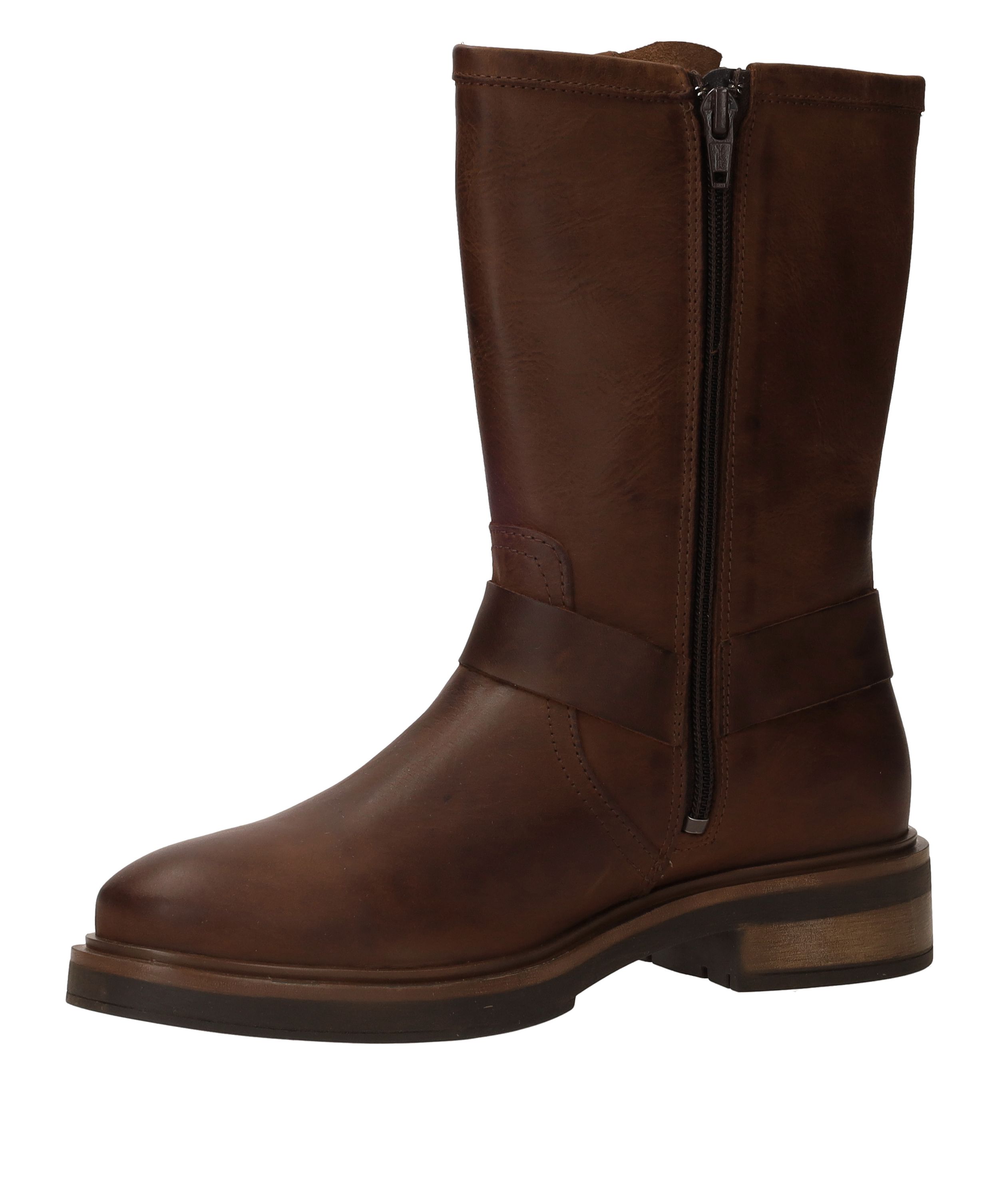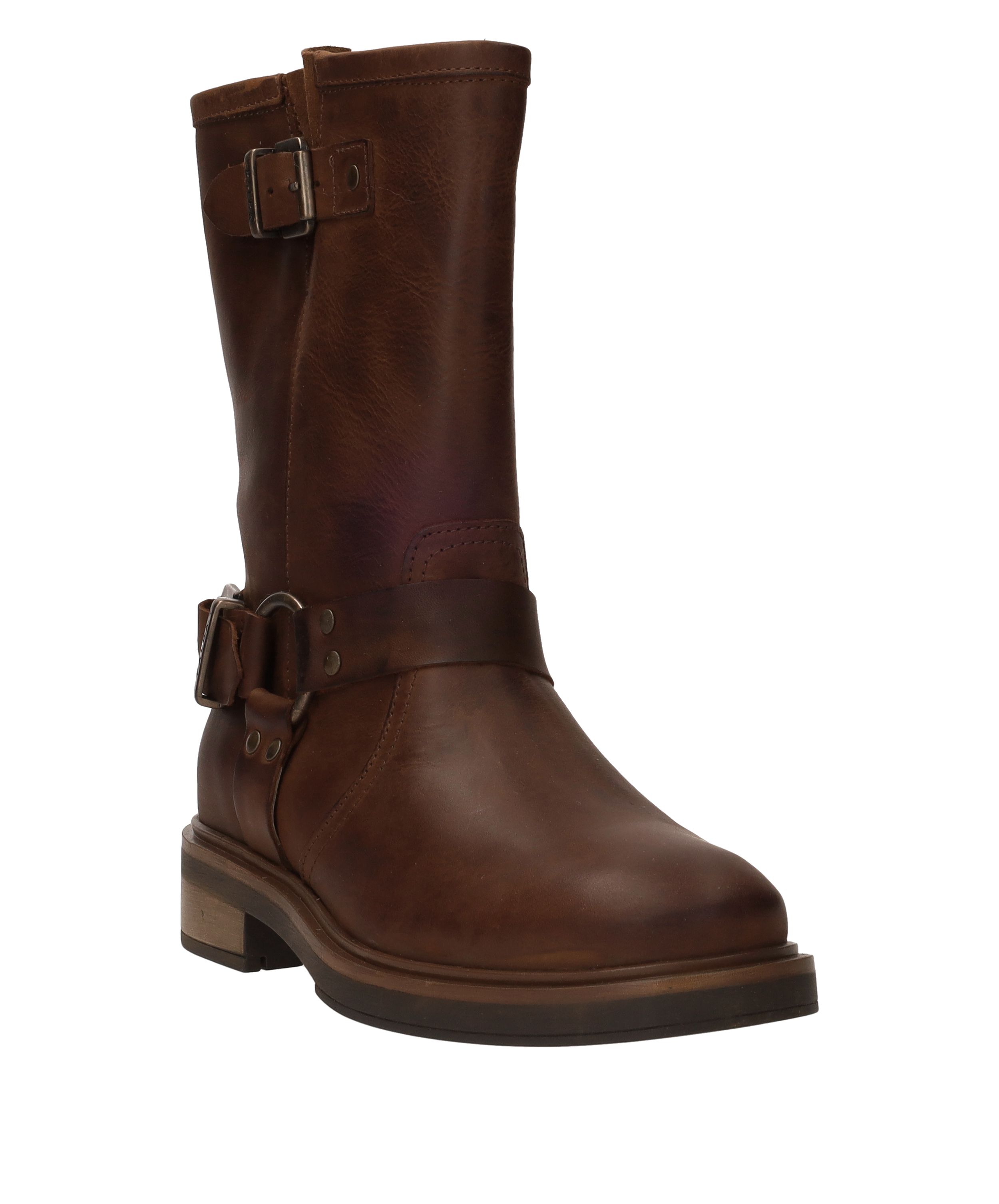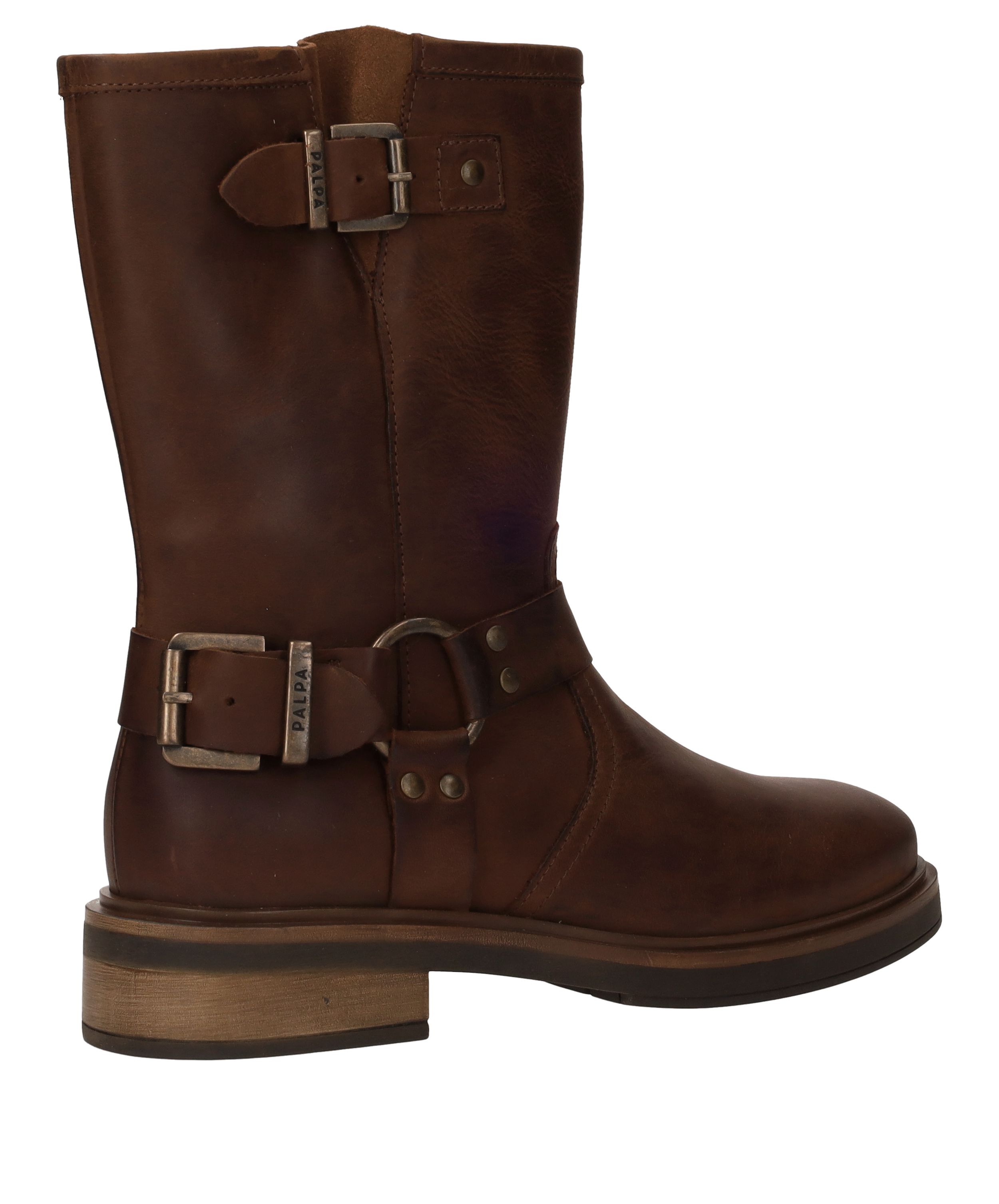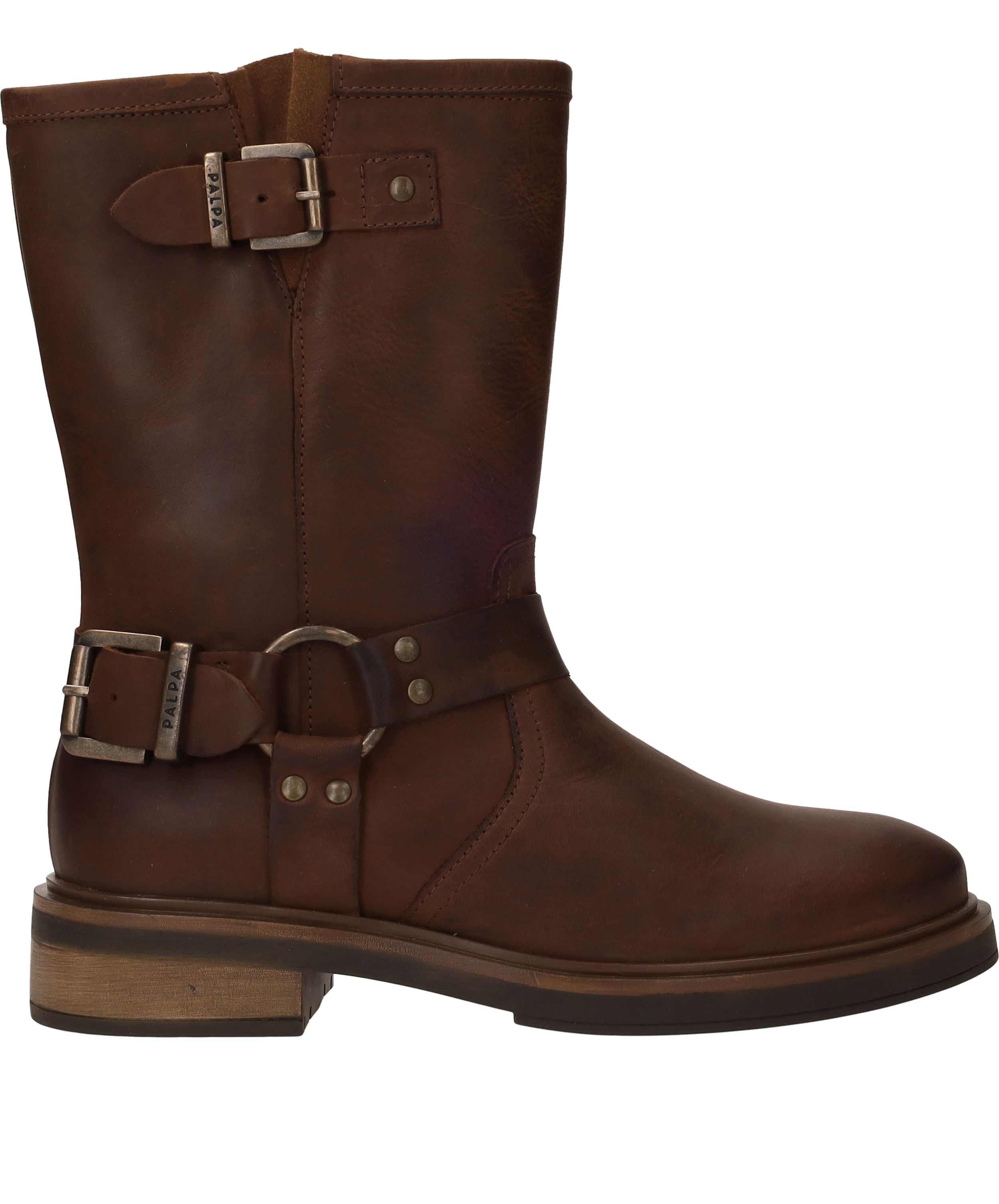 Ben je op zoek naar een stoere bruine damesboot? Kies dan deze bikerboot van Palpa. De bruine schoen is gemaakt van leer en heeft gave gouden gespen.