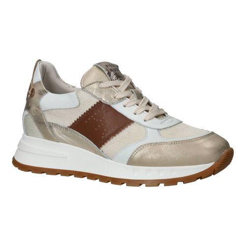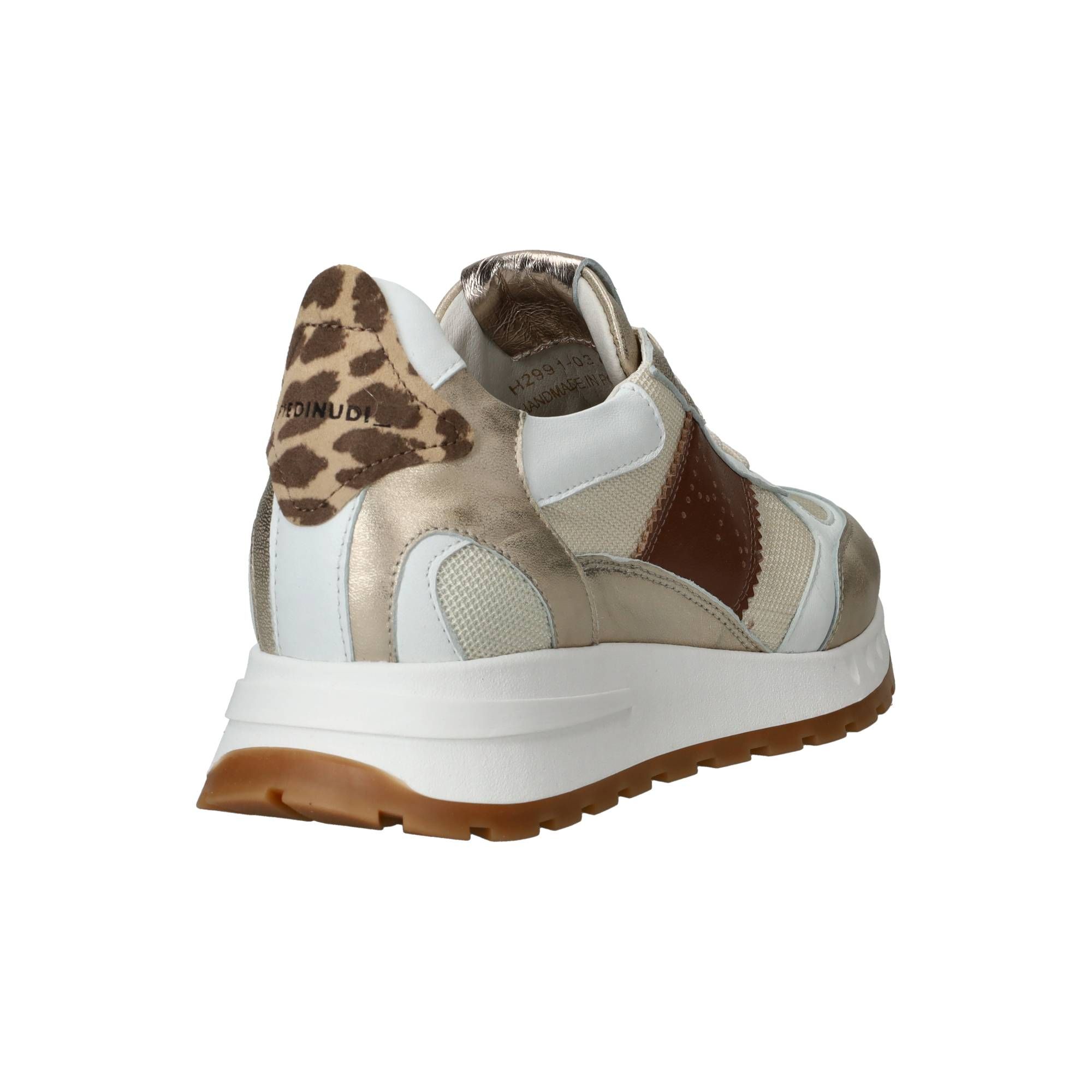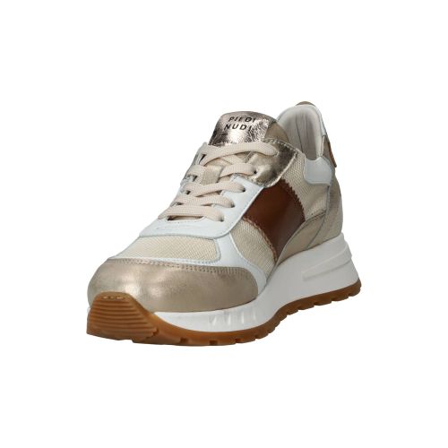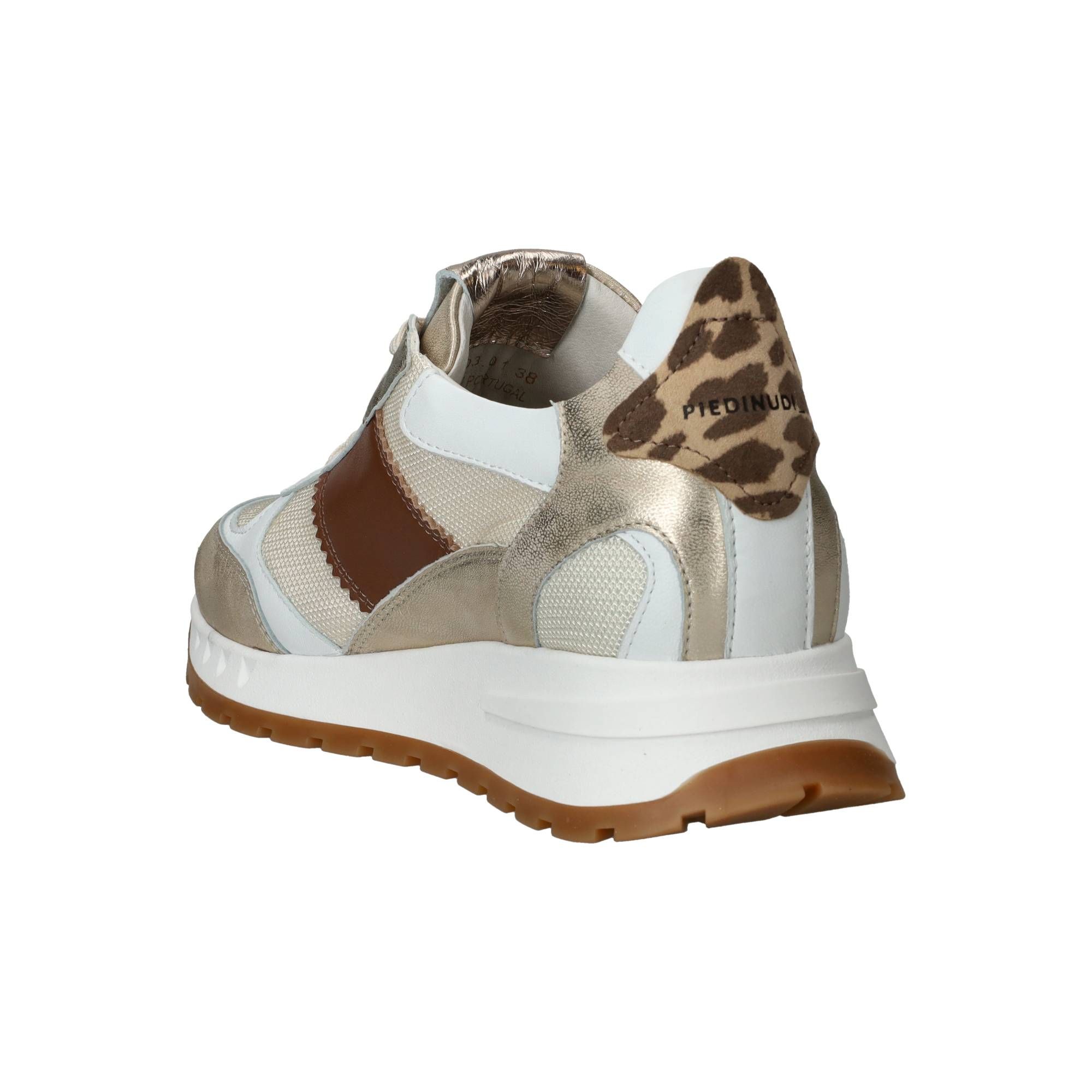 De [dames sneakers](/dames/schoenen/comfort) van Piedinudi stralen een warme en energieke sfeer uit met hun prachtige gouden kleur. Deze schoenen zijn niet zomaar een vrolijke toevoeging aan je garderobe, ze bieden ook een heerlijk draagcomfort. Terwijl je door de dag loopt, voel je hoe de schoen je voet omarmt zonder te knellen, dankzij de zorgvuldige pasvorm. De lichte constructie en de zachte materialen zorgen voor een prettige afwikkeling van de voet, waardoor elke stap moeiteloos aanvoelt.- De vetersluiting zorgt ervoor dat de schoen mooi aansluit op de voet, wat bijdraagt aan een stabiel en vertrouwd loopgevoel.