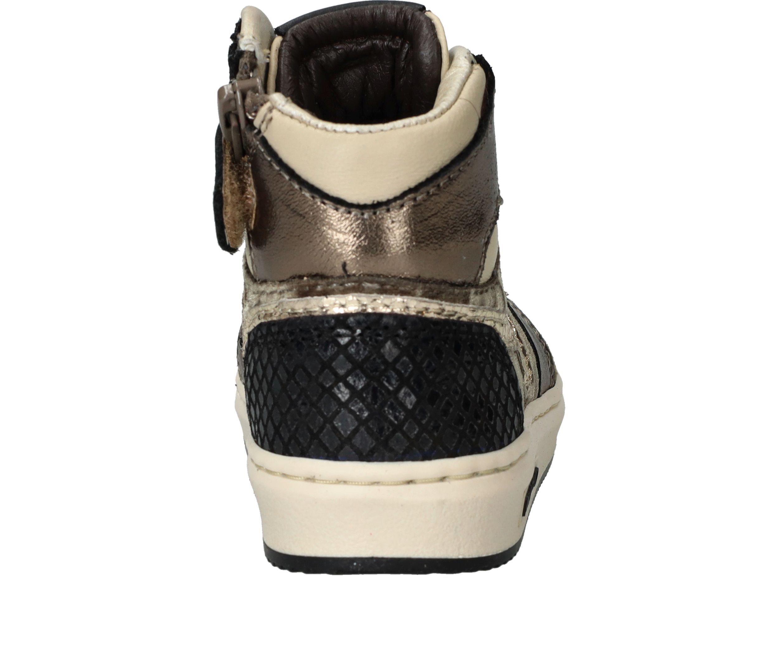 - De sneakers zijn uitgevoerd in een mooie bruine taupe kleur met metallic accenten.