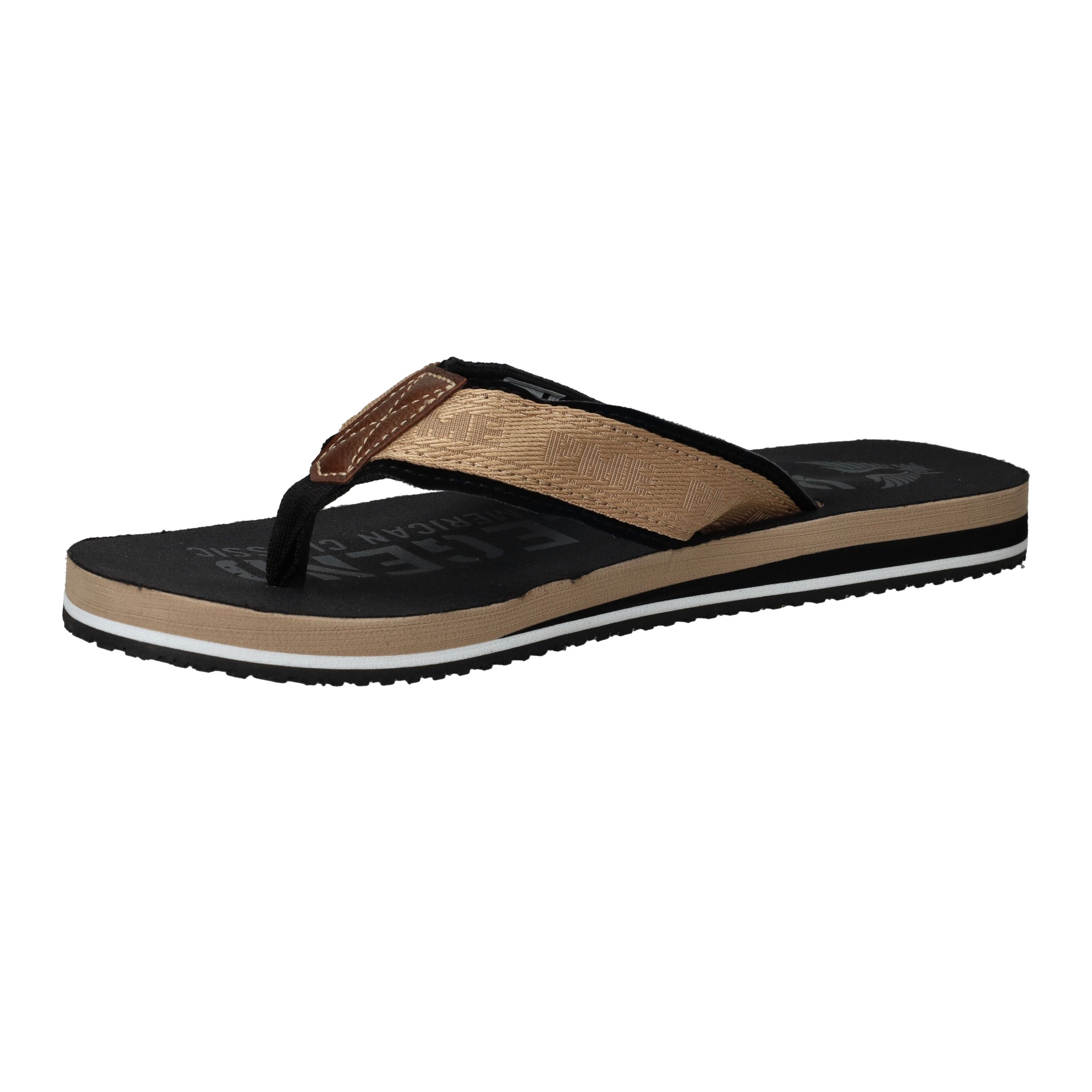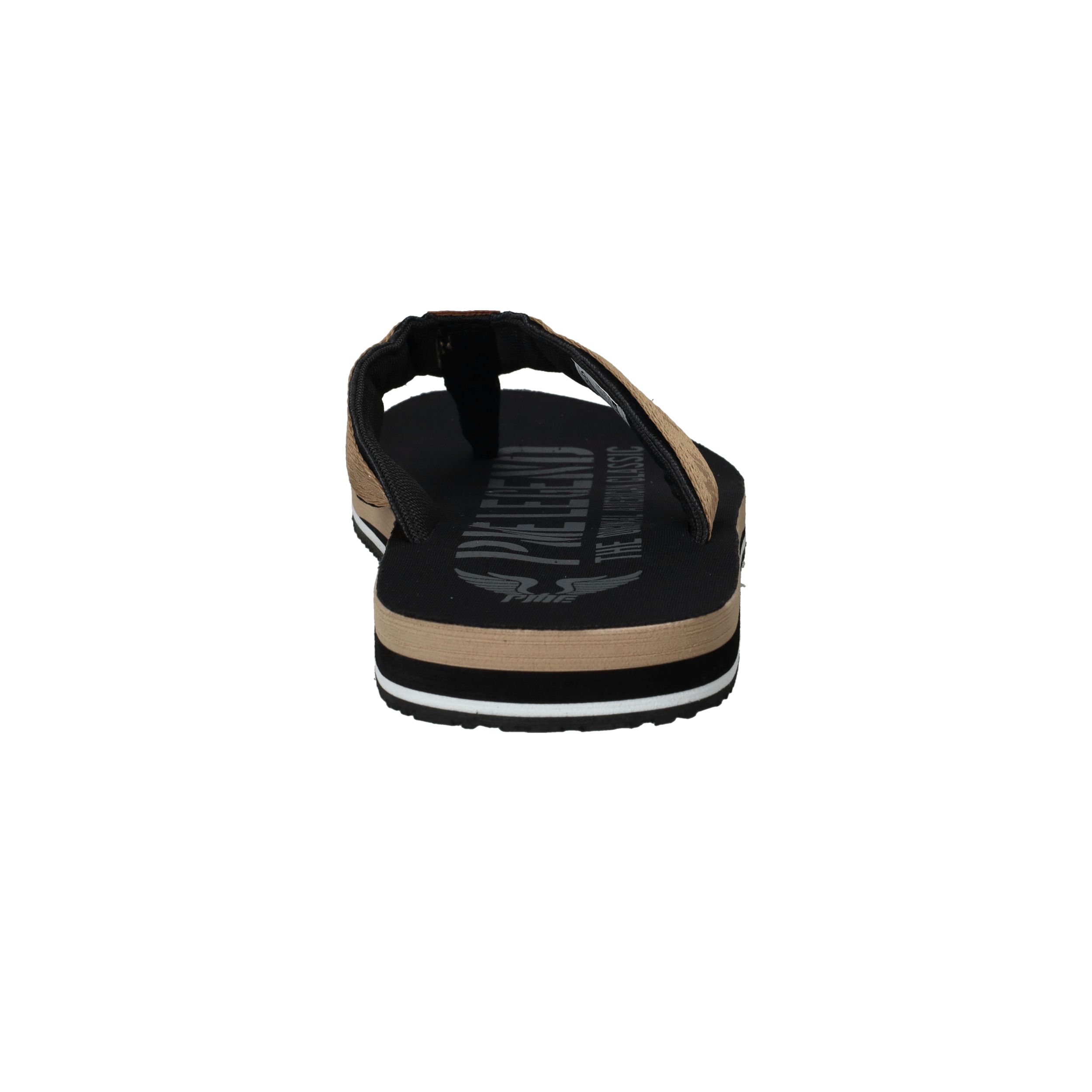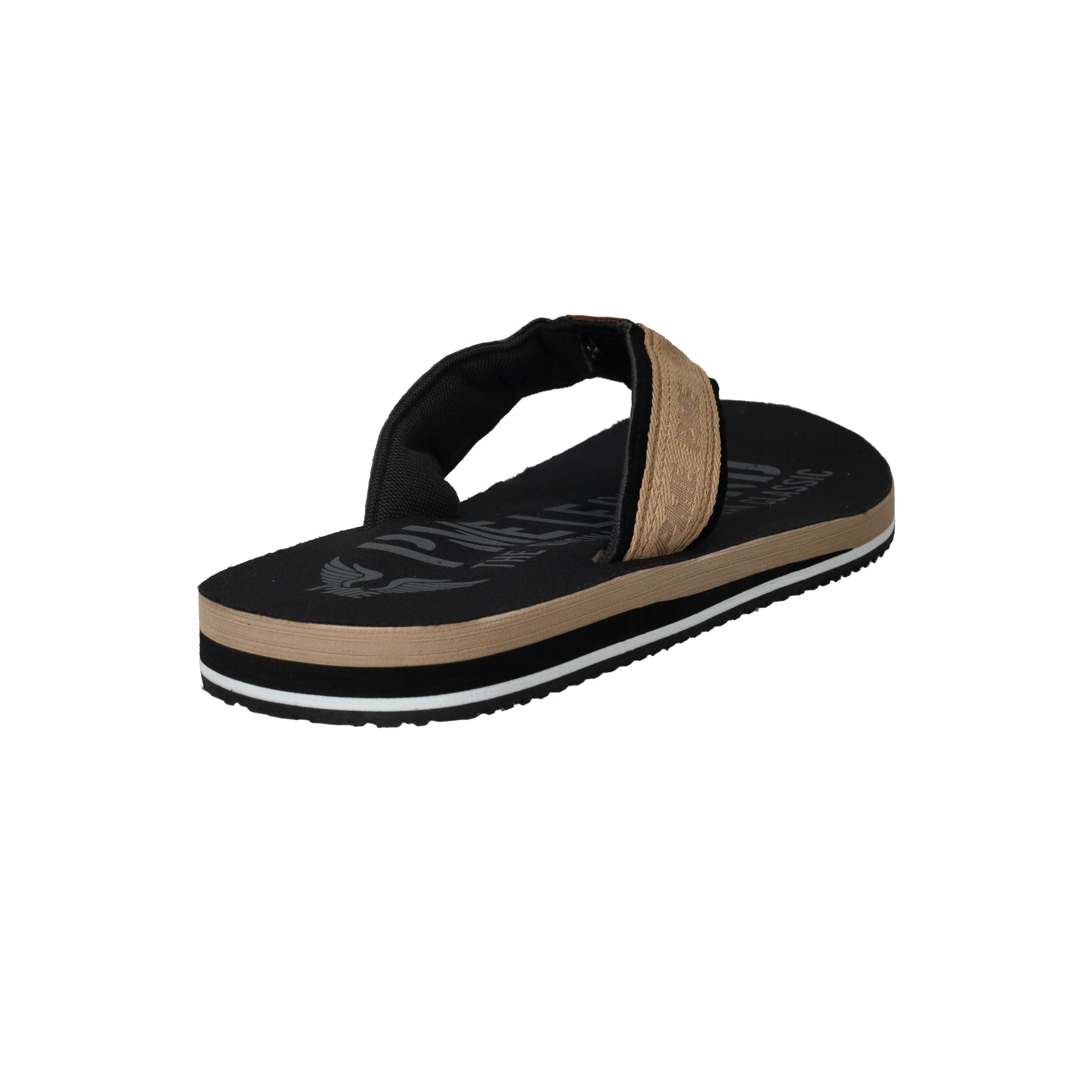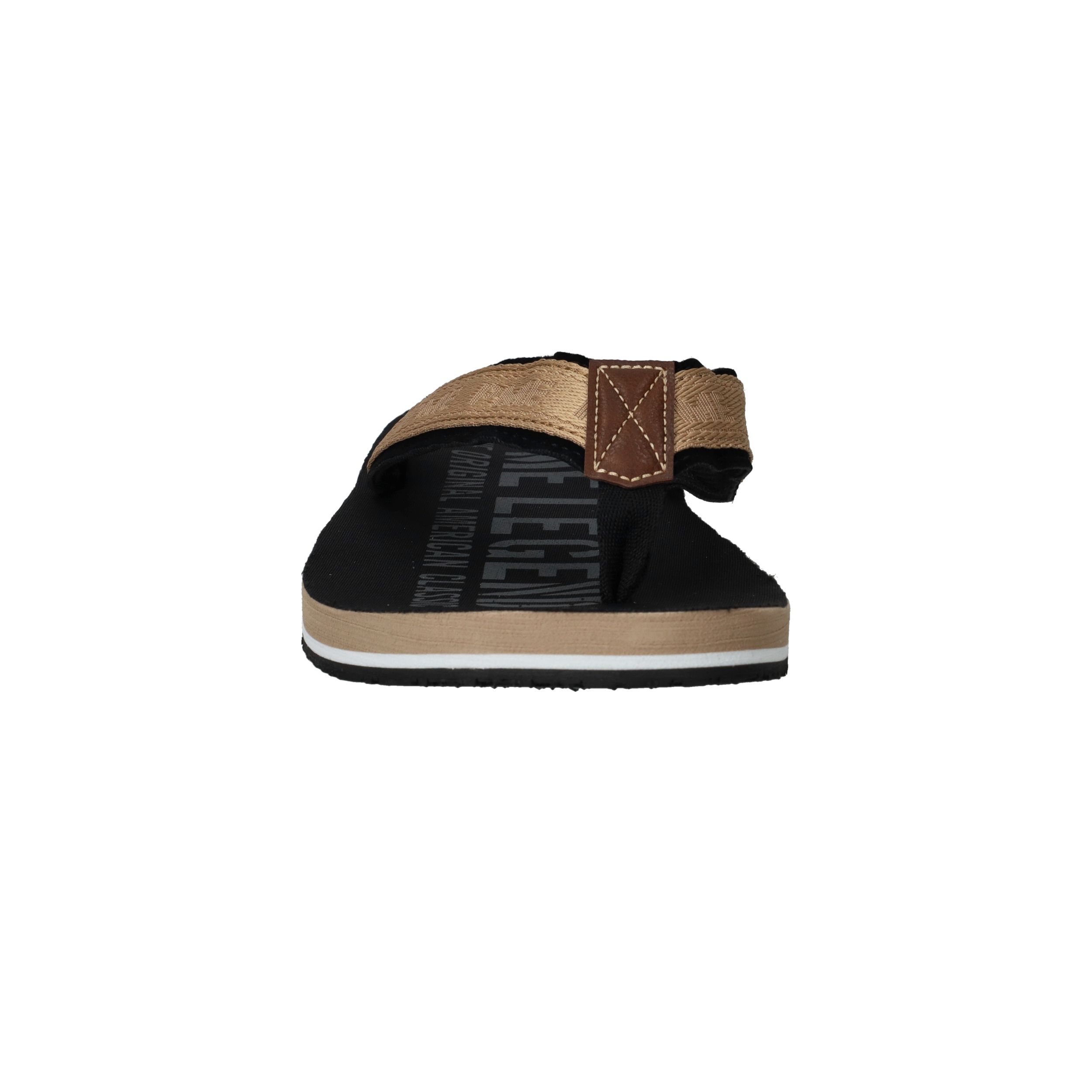 Deze comfortabele heren slippers van PME Legend zijn perfect voor warme dagen, vakanties of gewoon lekker thuis. Het bandje is uitgevoerd in taupekleurig textiel met zwarte accenten voor een stoere look. De zwarte binnenzool is strak en tijdloos, en de normale voetbreedte G zorgt voor een prettige pasvorm.