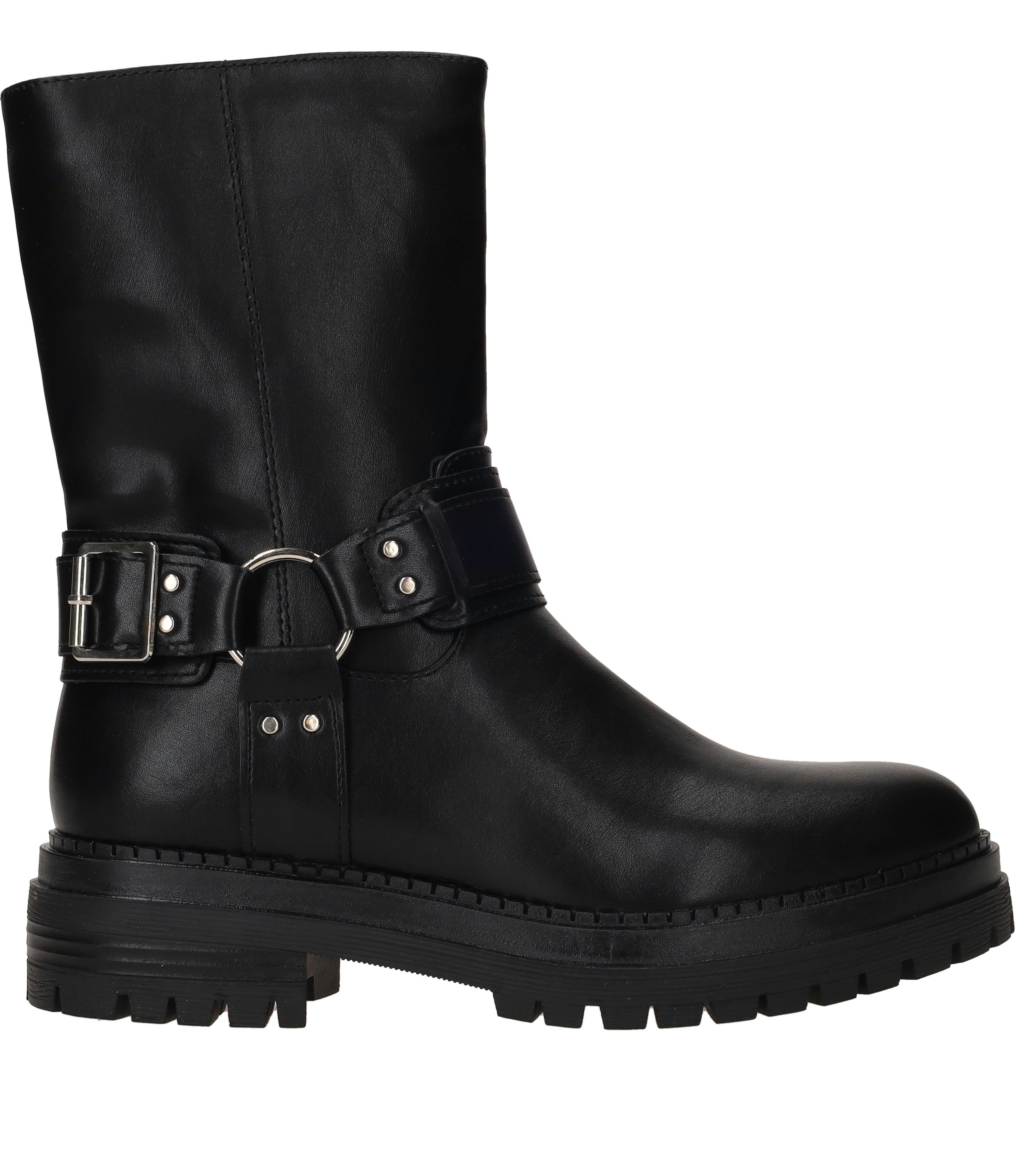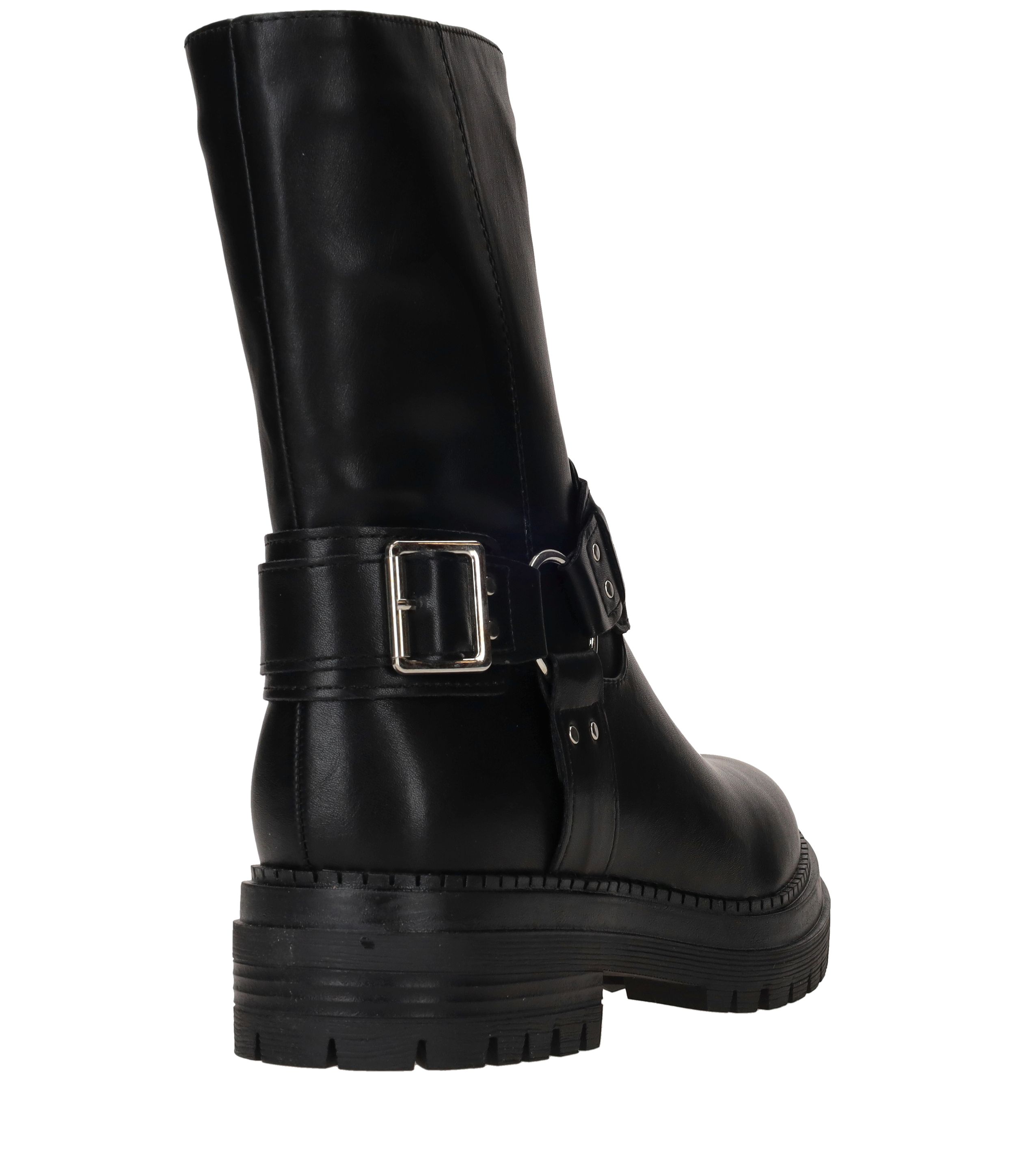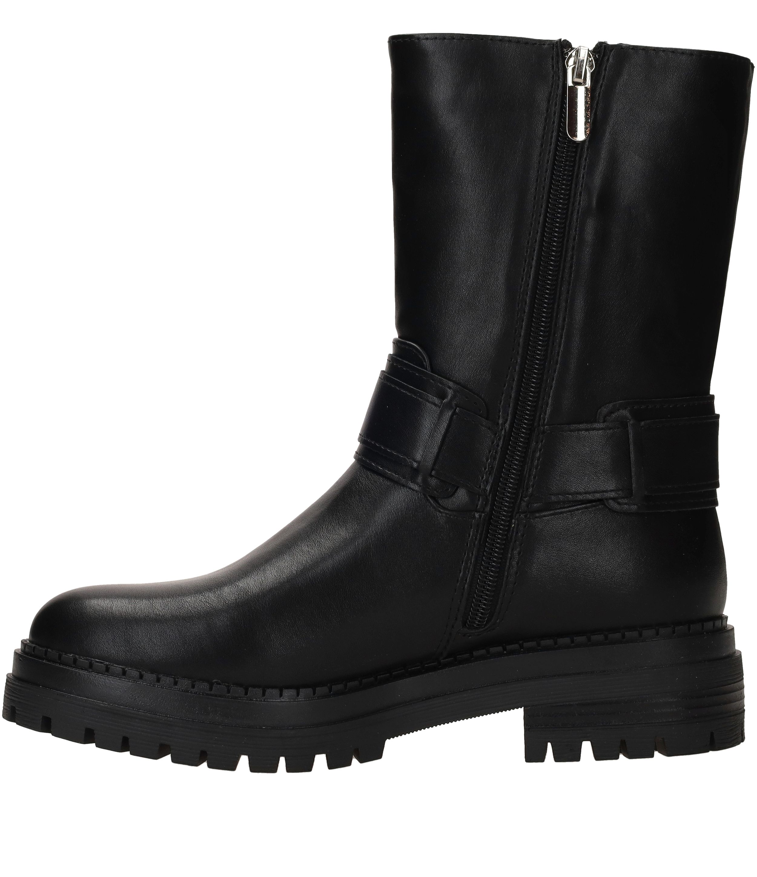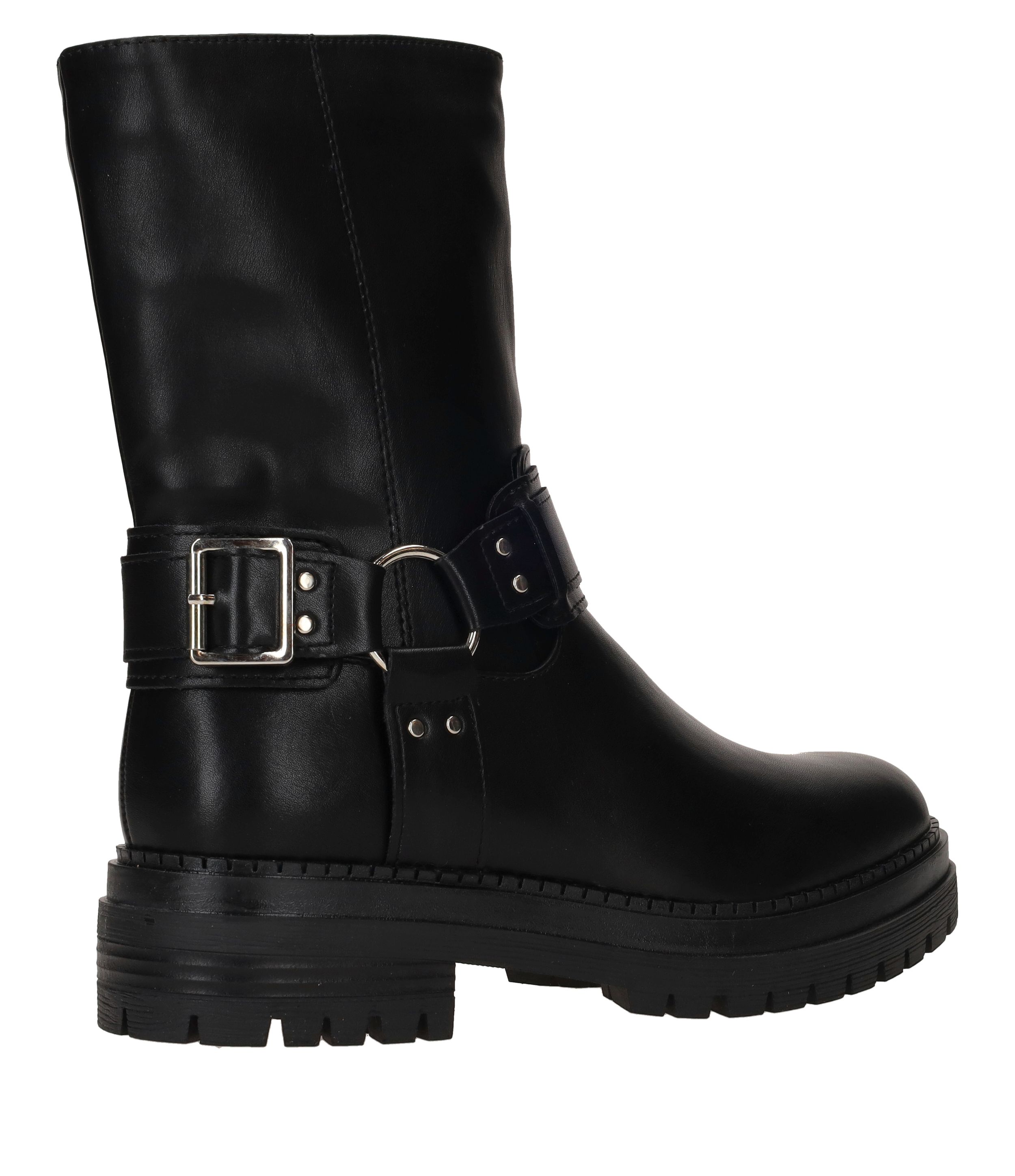 Gave POSH By Poelman bikerboot voor dames. De zwarte bikerboot heeft een stoere gesp aan de zijkant en de binnenkant van de laars heeft een leuke dierenprint.